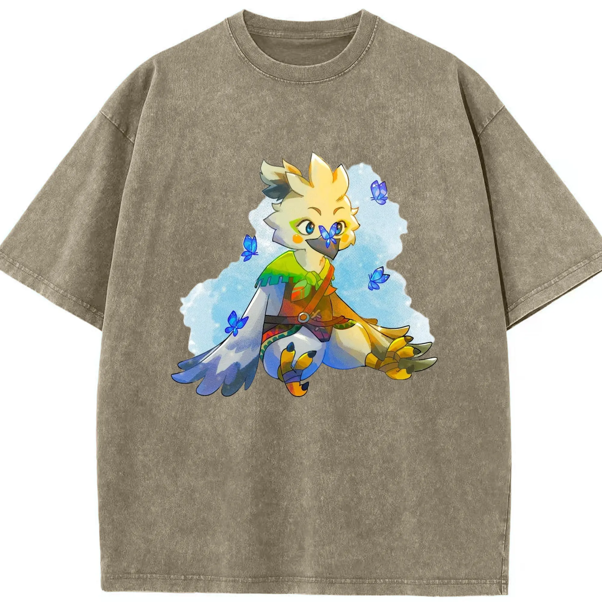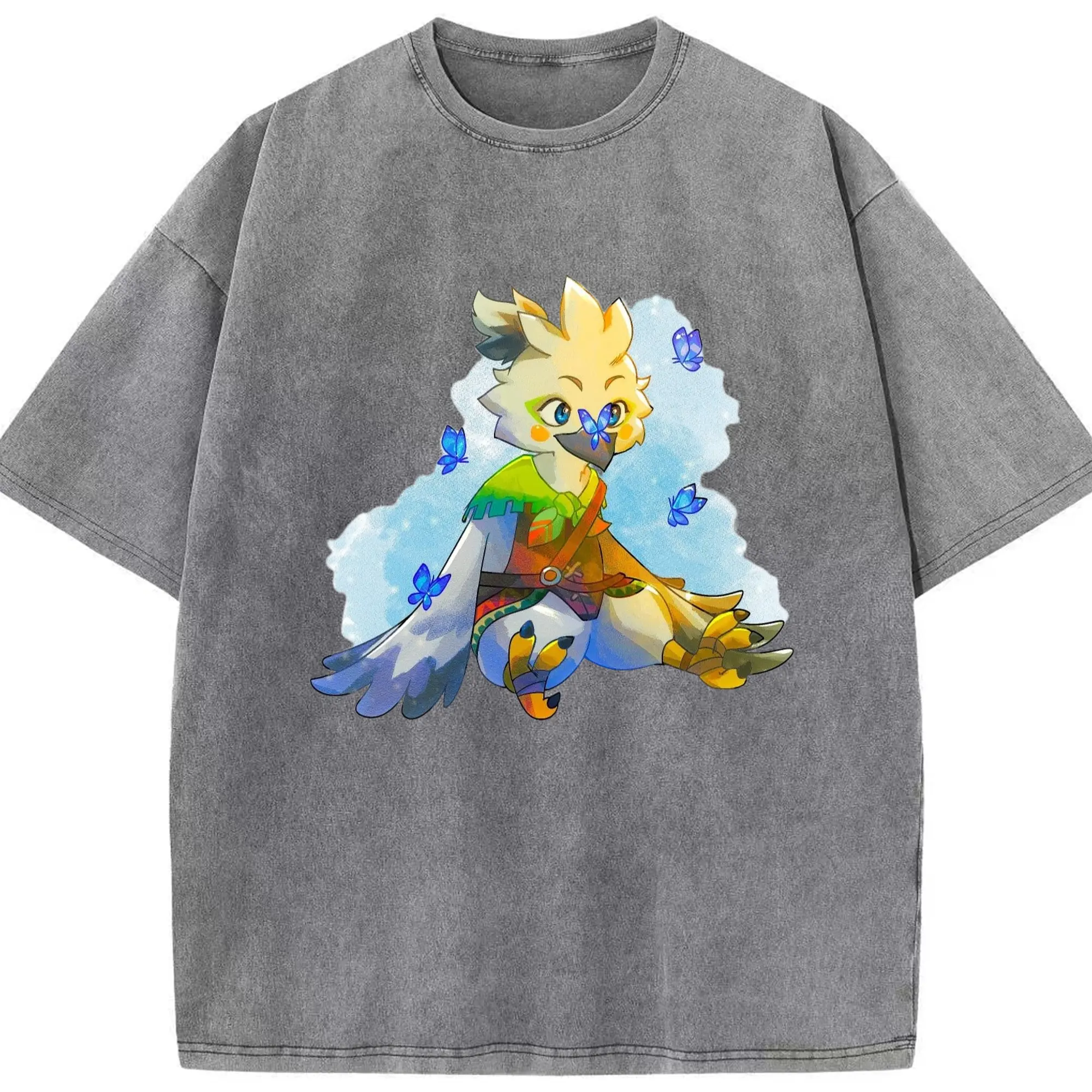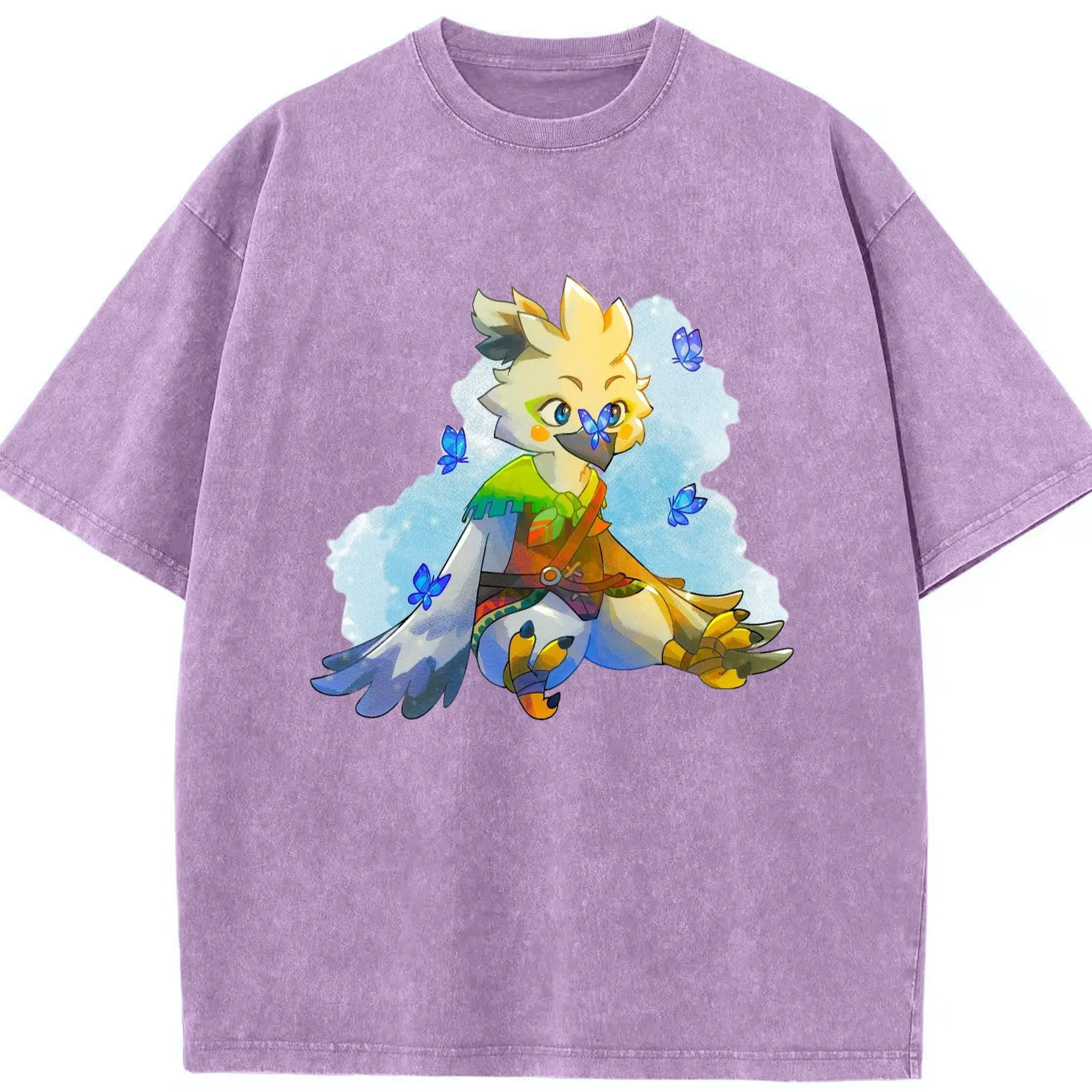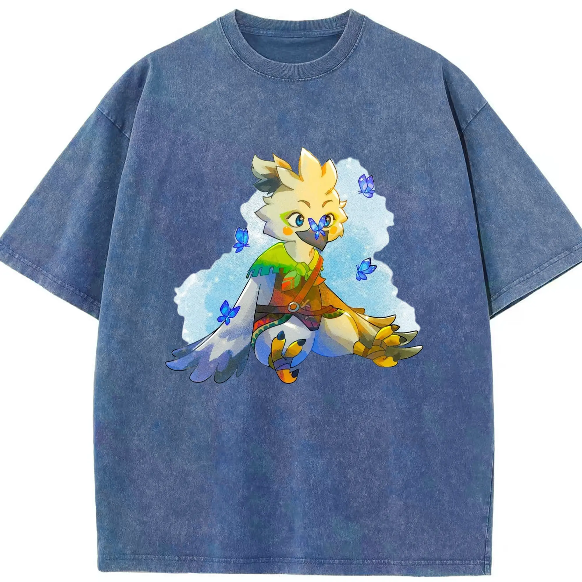 The legend of zelda Tulin graphic t-shirt - Washed Vintage Look 230g Cotton Oversized T-Shirt With Front Heat Transfer Print – Soft, Lightweight, Stylish Fit – Comfortable Casual Wear For Sports & Everyday Use
