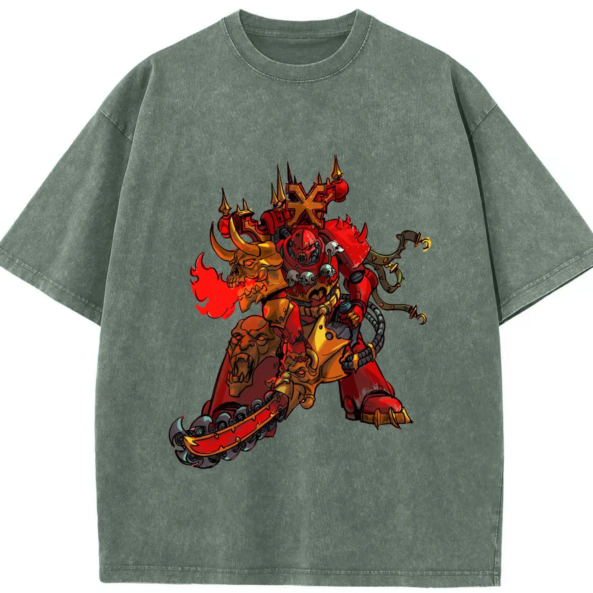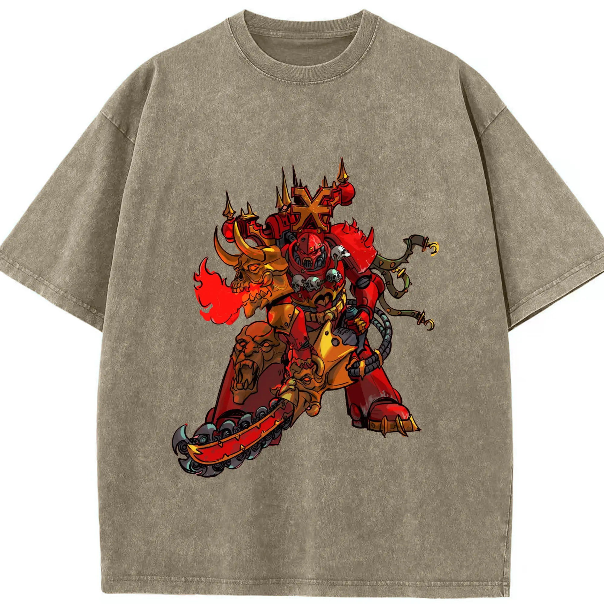 Total war warhammer Chaos Armies t shirt​ - Washed Vintage Look 230g Cotton Oversized T-Shirt With Front Heat Transfer Print – Soft, Lightweight, Stylish Fit – Comfortable Casual Wear For Sports & Everyday Use