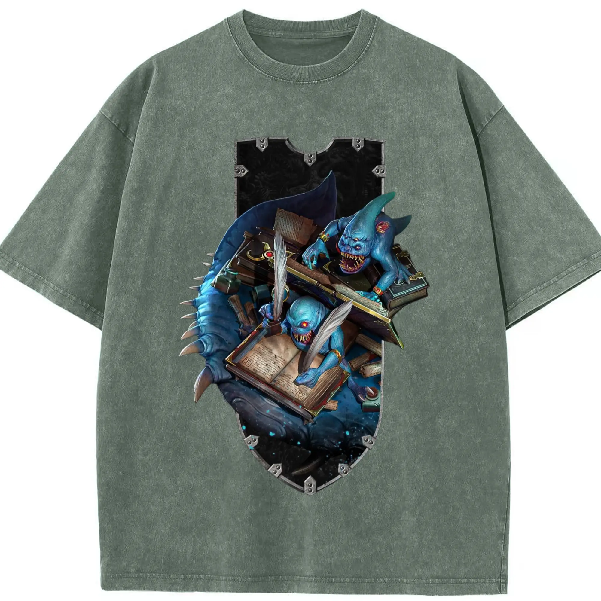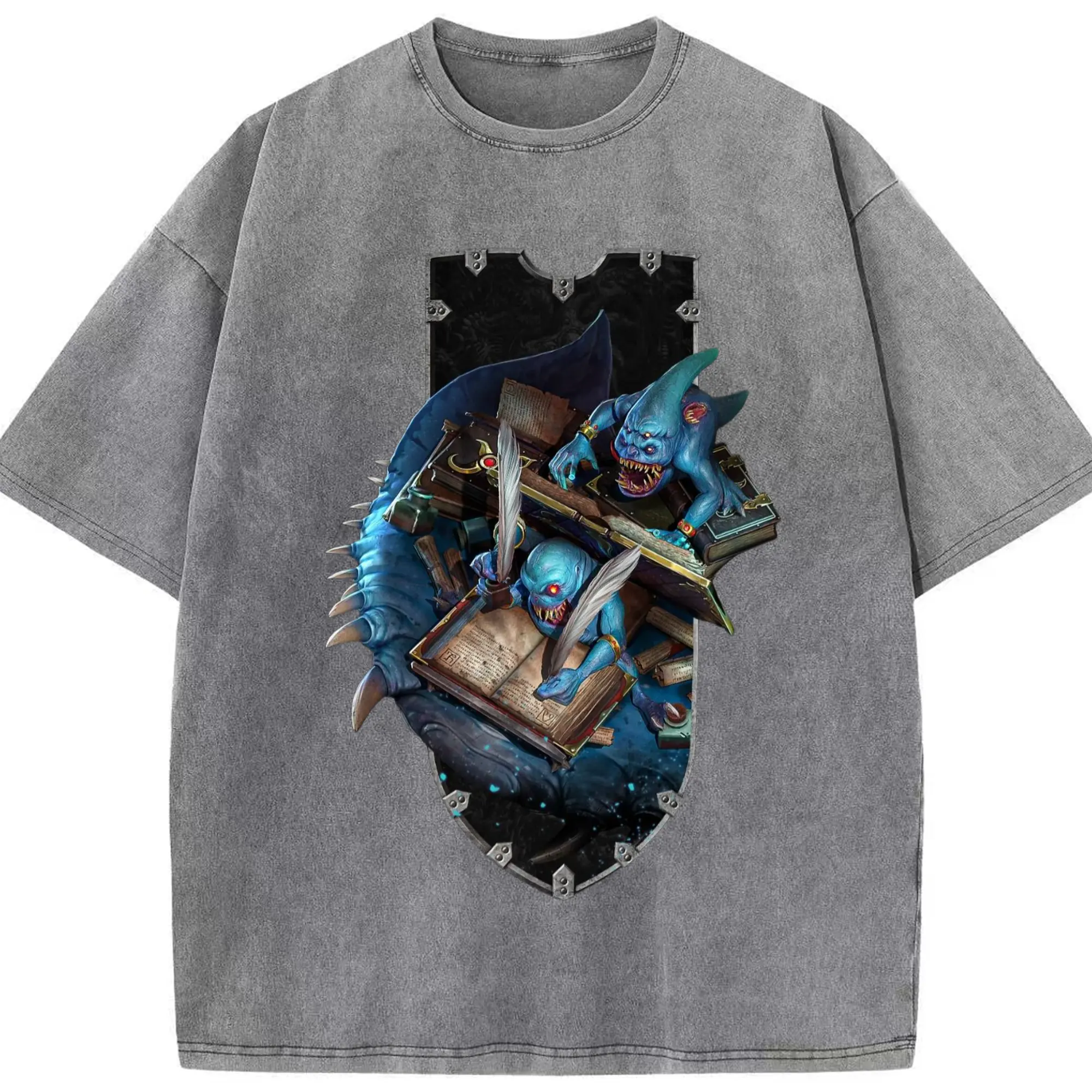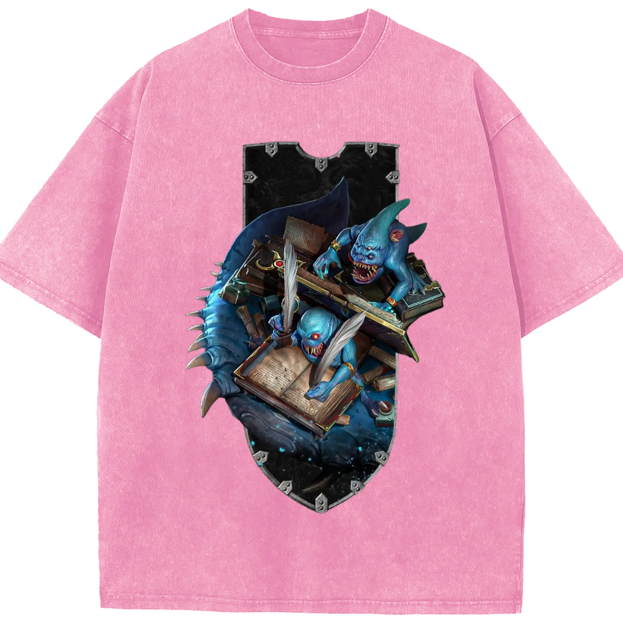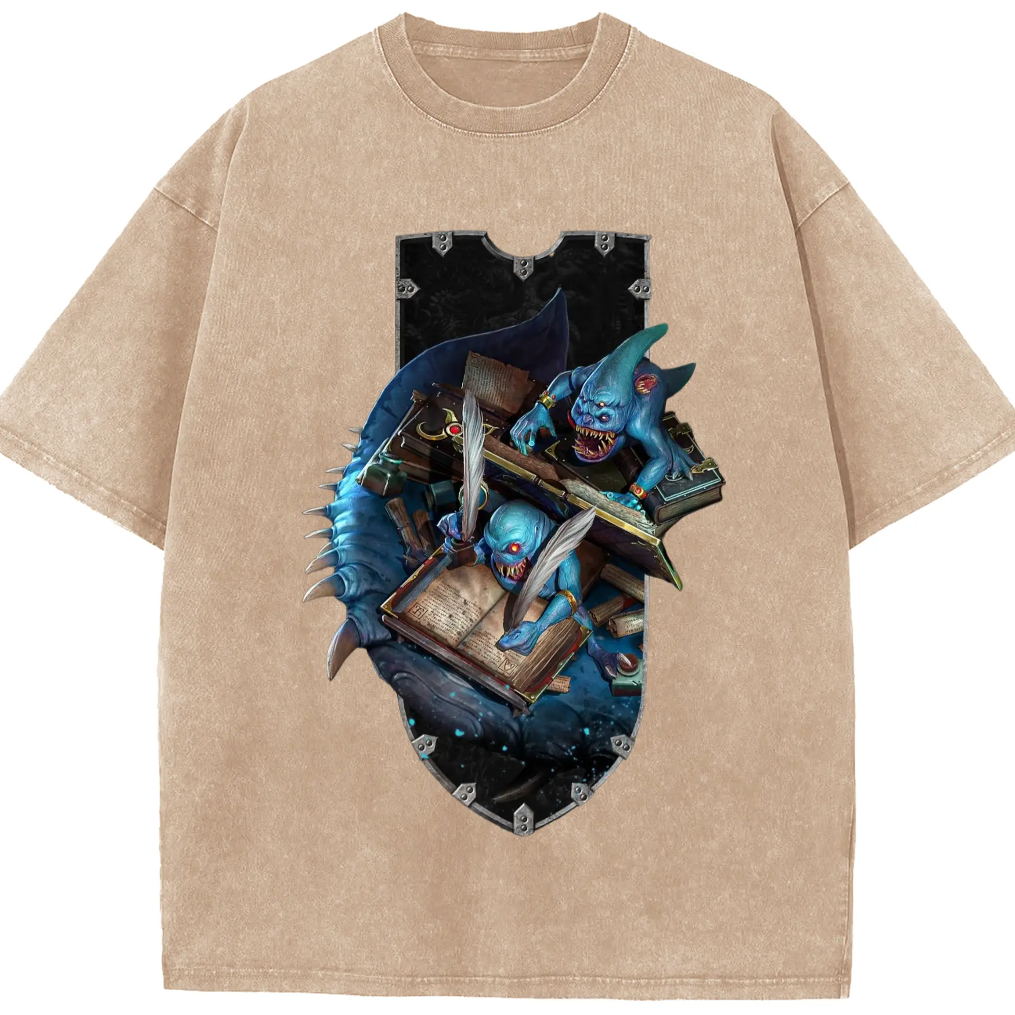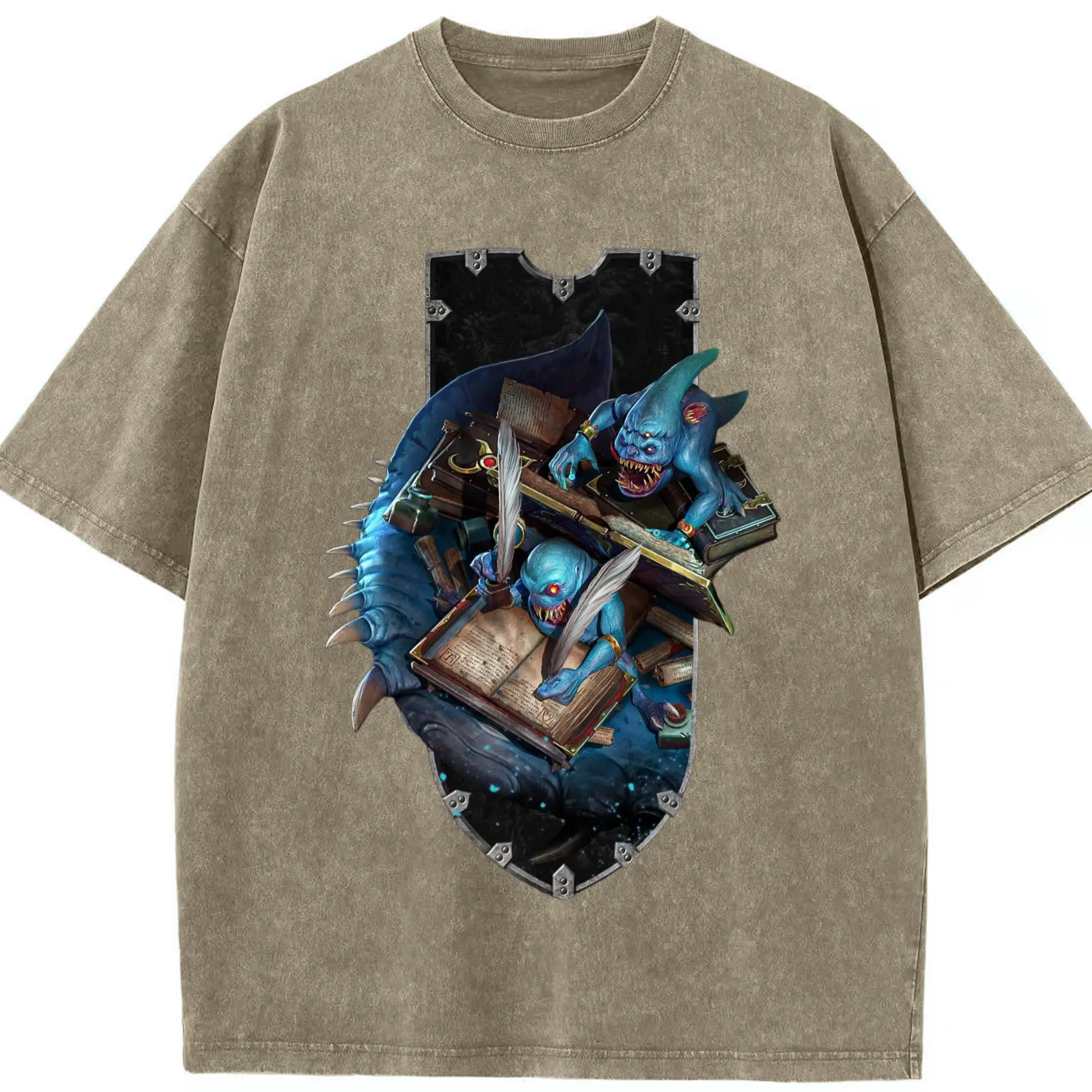 Total war warhammer Chaos tee - Washed Vintage Look 230g Cotton Oversized T-Shirt With Front Heat Transfer Print – Soft, Lightweight, Stylish Fit – Comfortable Casual Wear For Sports & Everyday Use