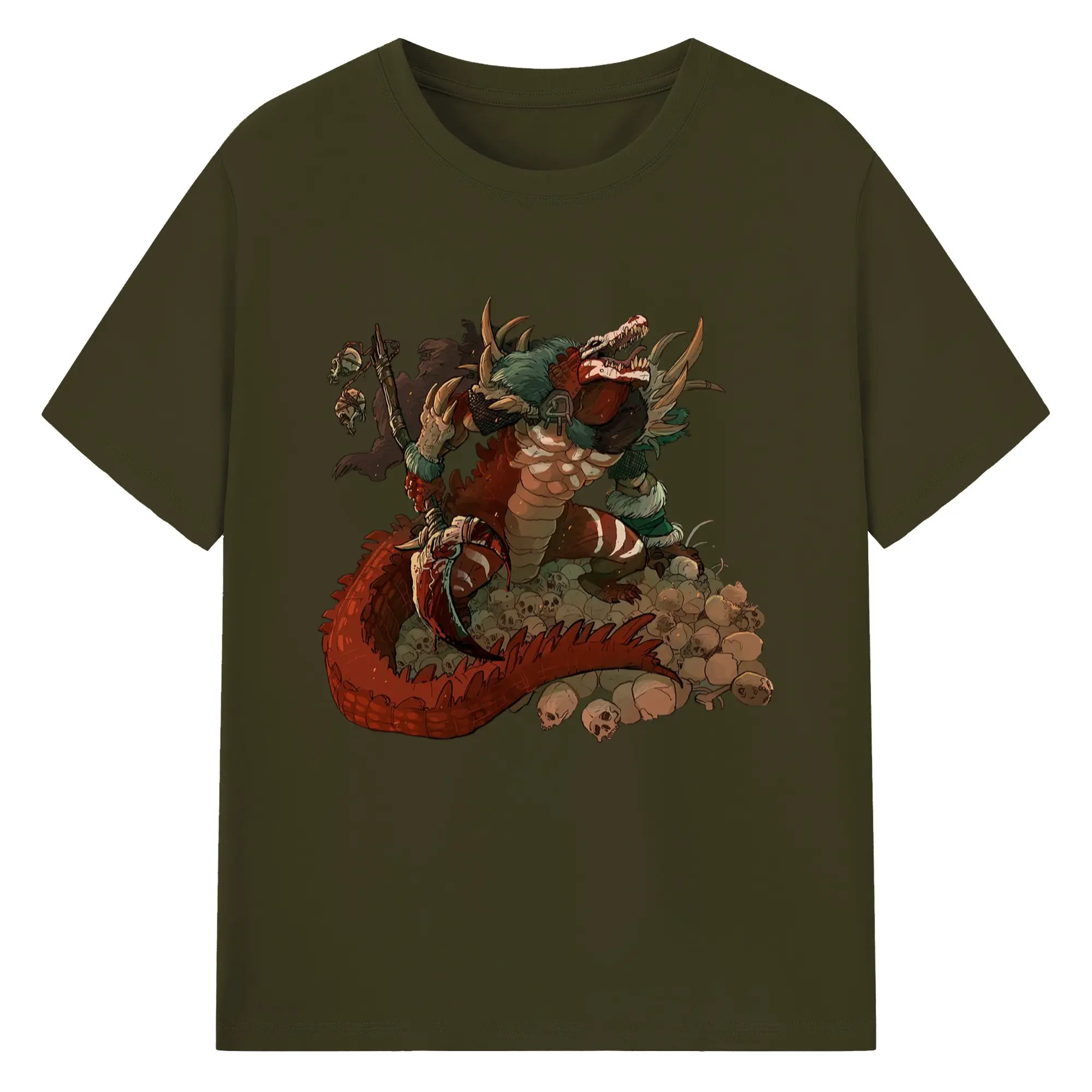 Total war warhammer Lizardmen graphic tee - 180g Cotton T-Shirt With Front Heat Transfer Print – Soft, Lightweight, Fitted Design – Comfortable Casual Wear For Sports & Everyday Use