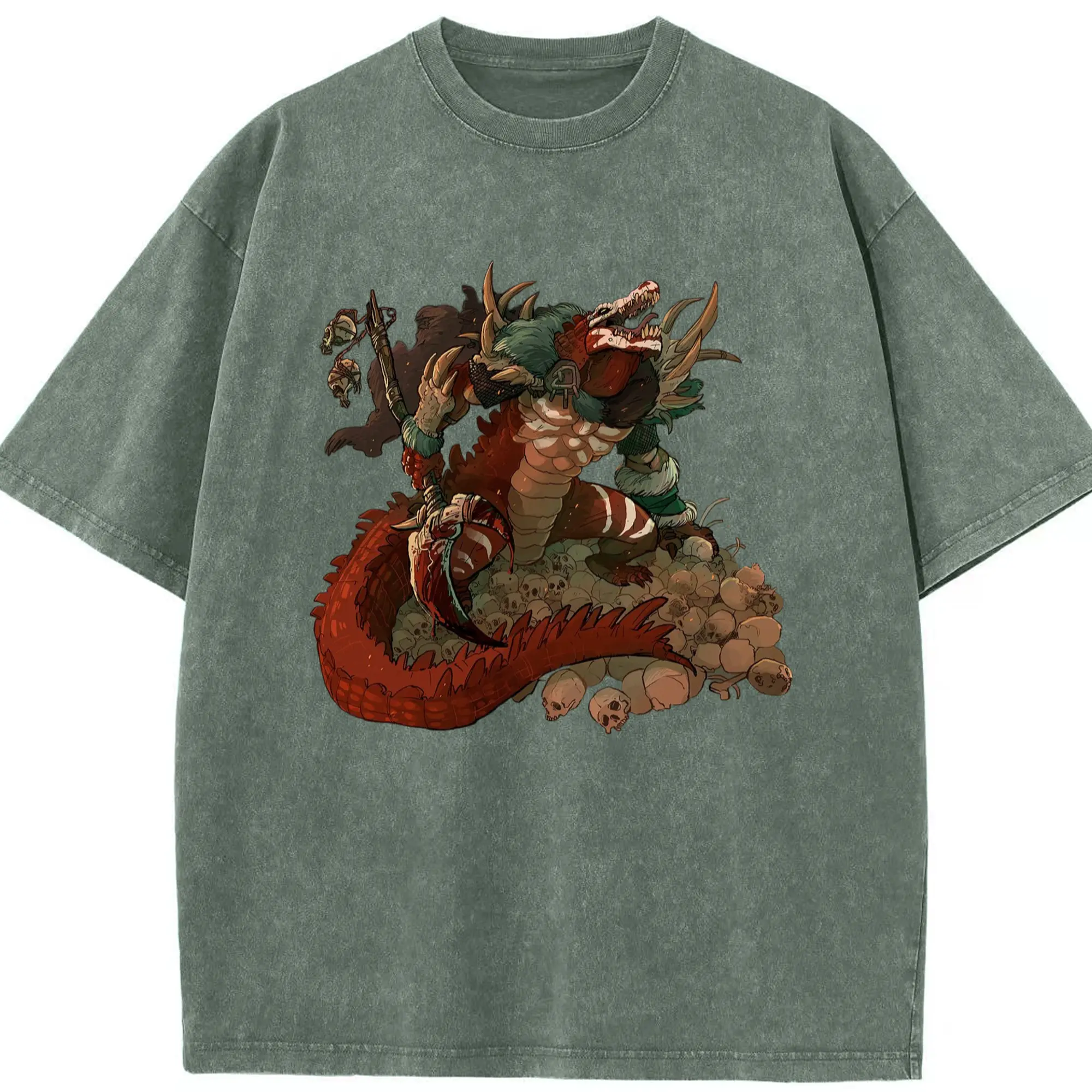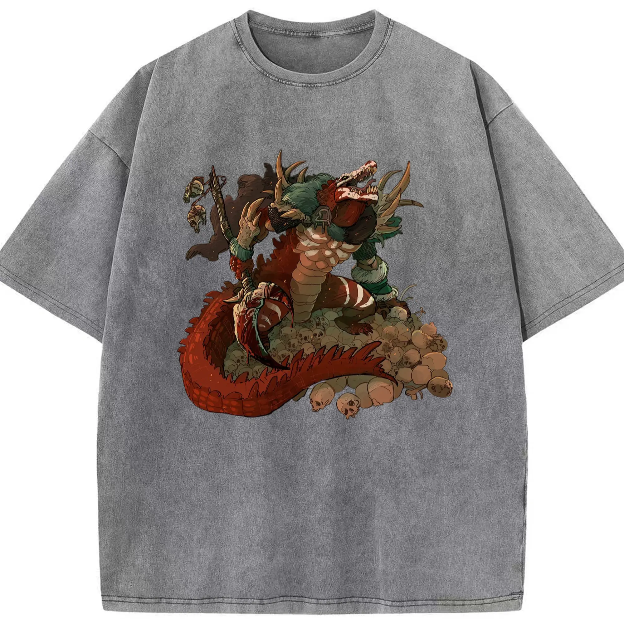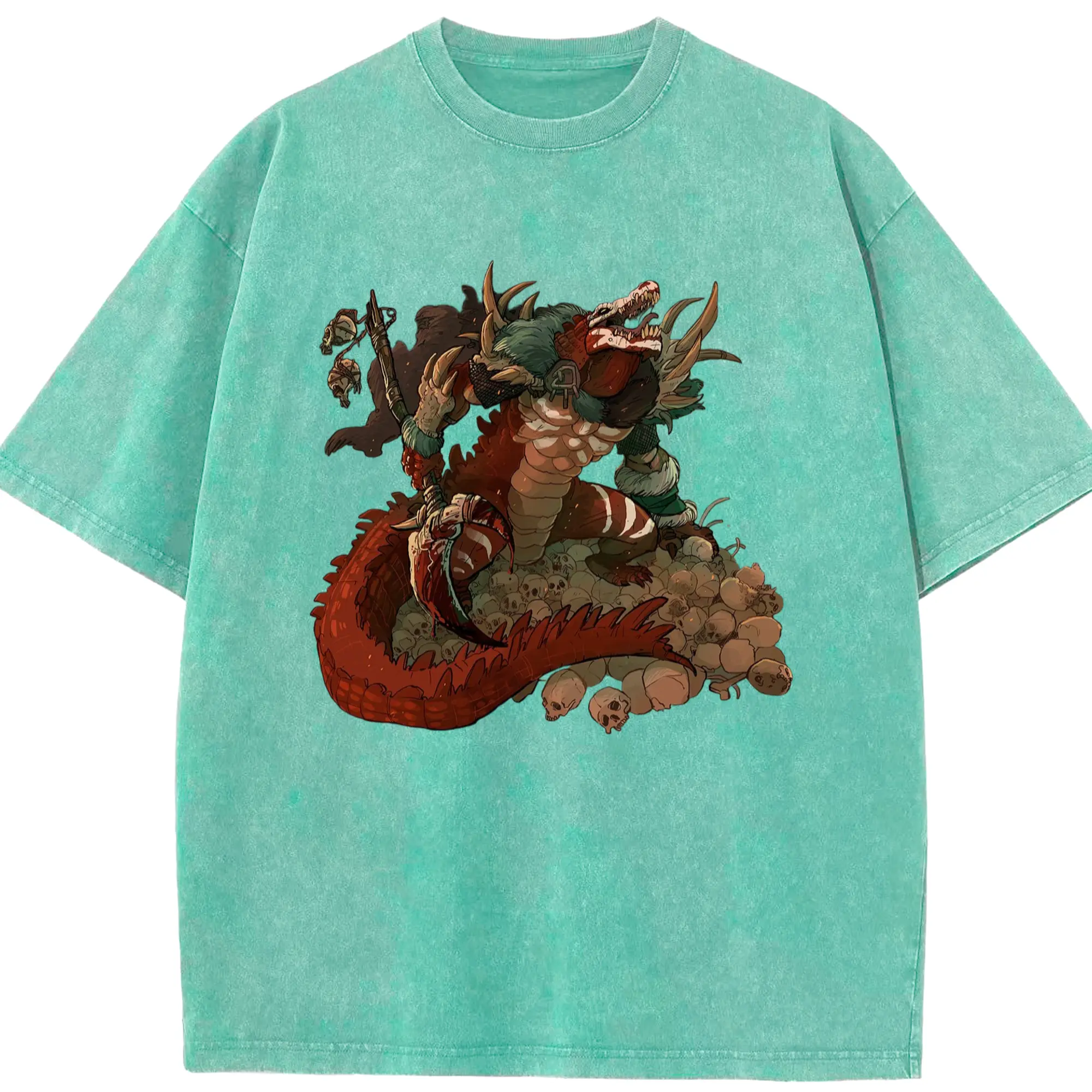 Total war warhammer Lizardmen graphic tee - Washed Vintage Look 230g Cotton Oversized T-Shirt With Front Heat Transfer Print – Soft, Lightweight, Stylish Fit – Comfortable Casual Wear For Sports & Everyday Use
