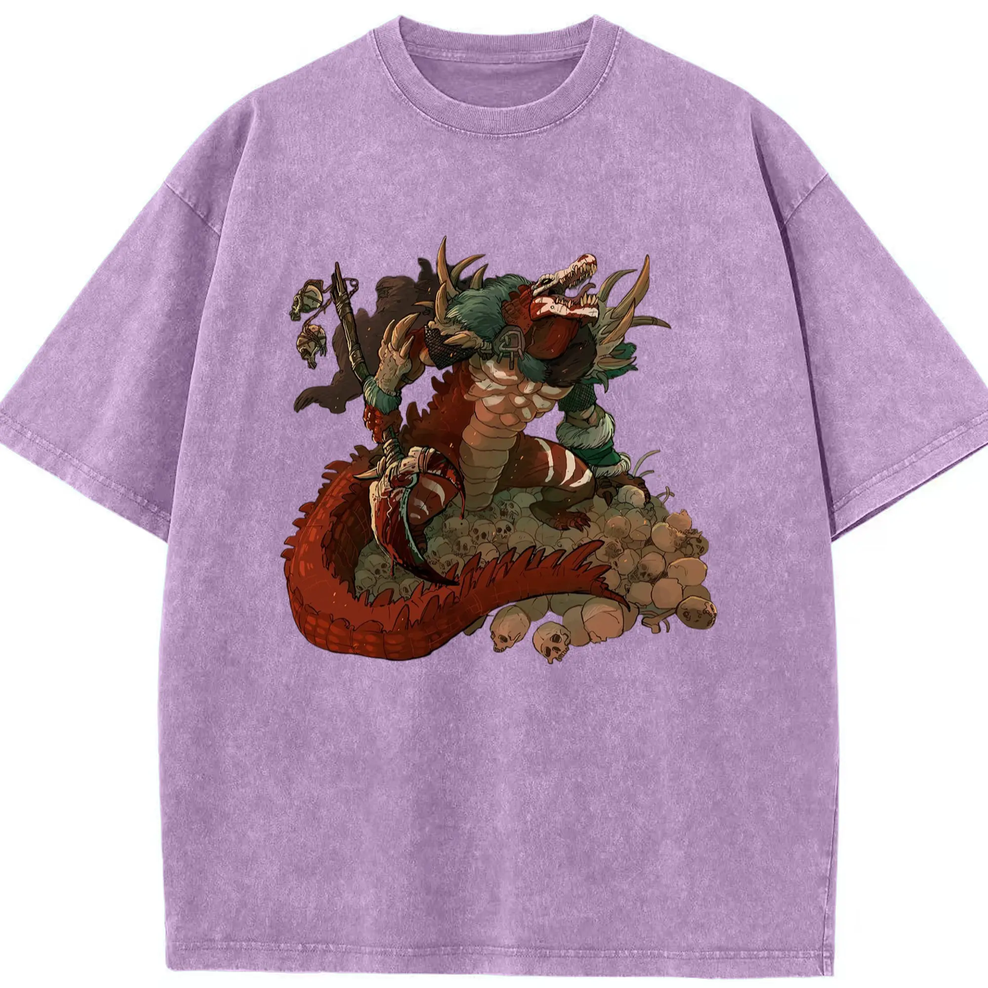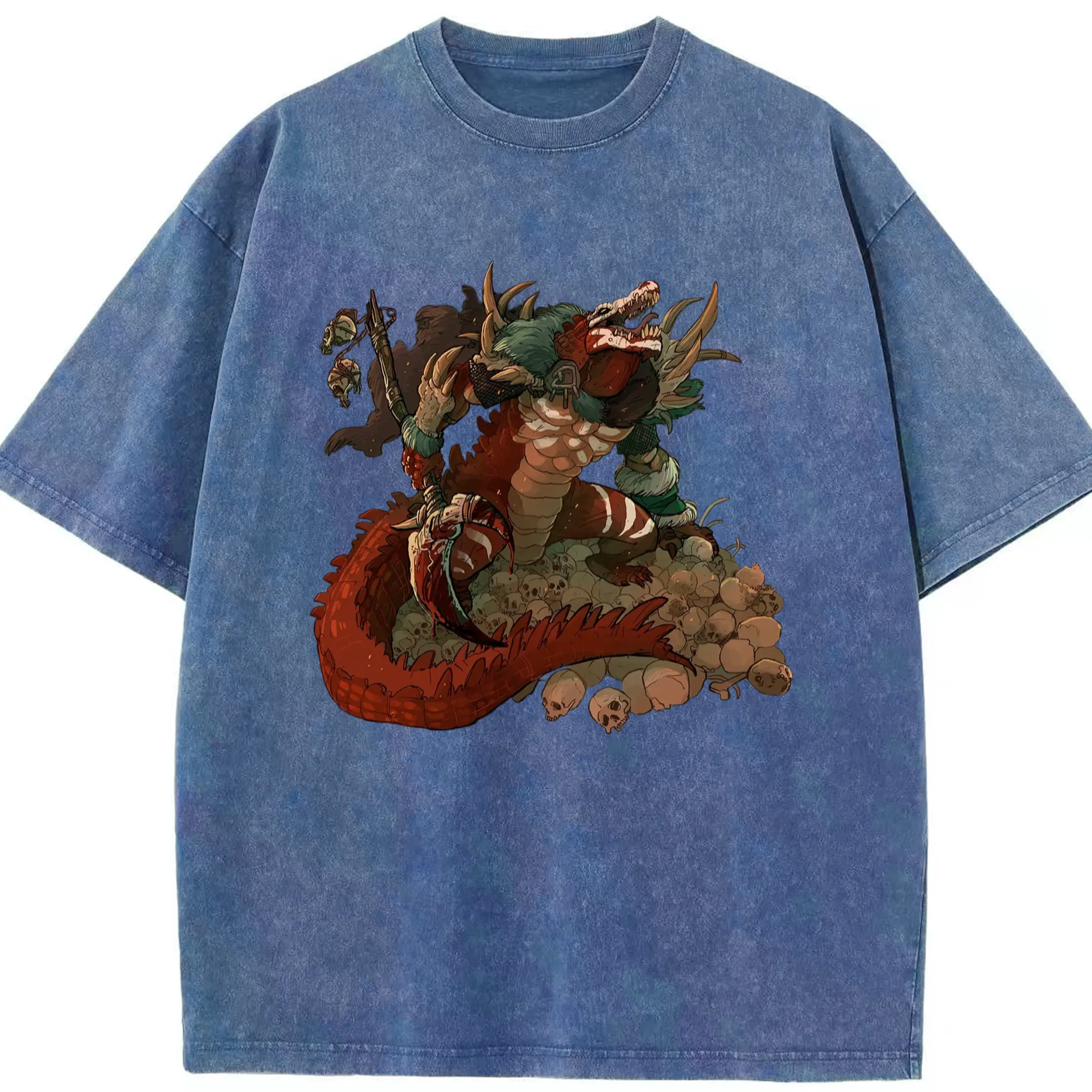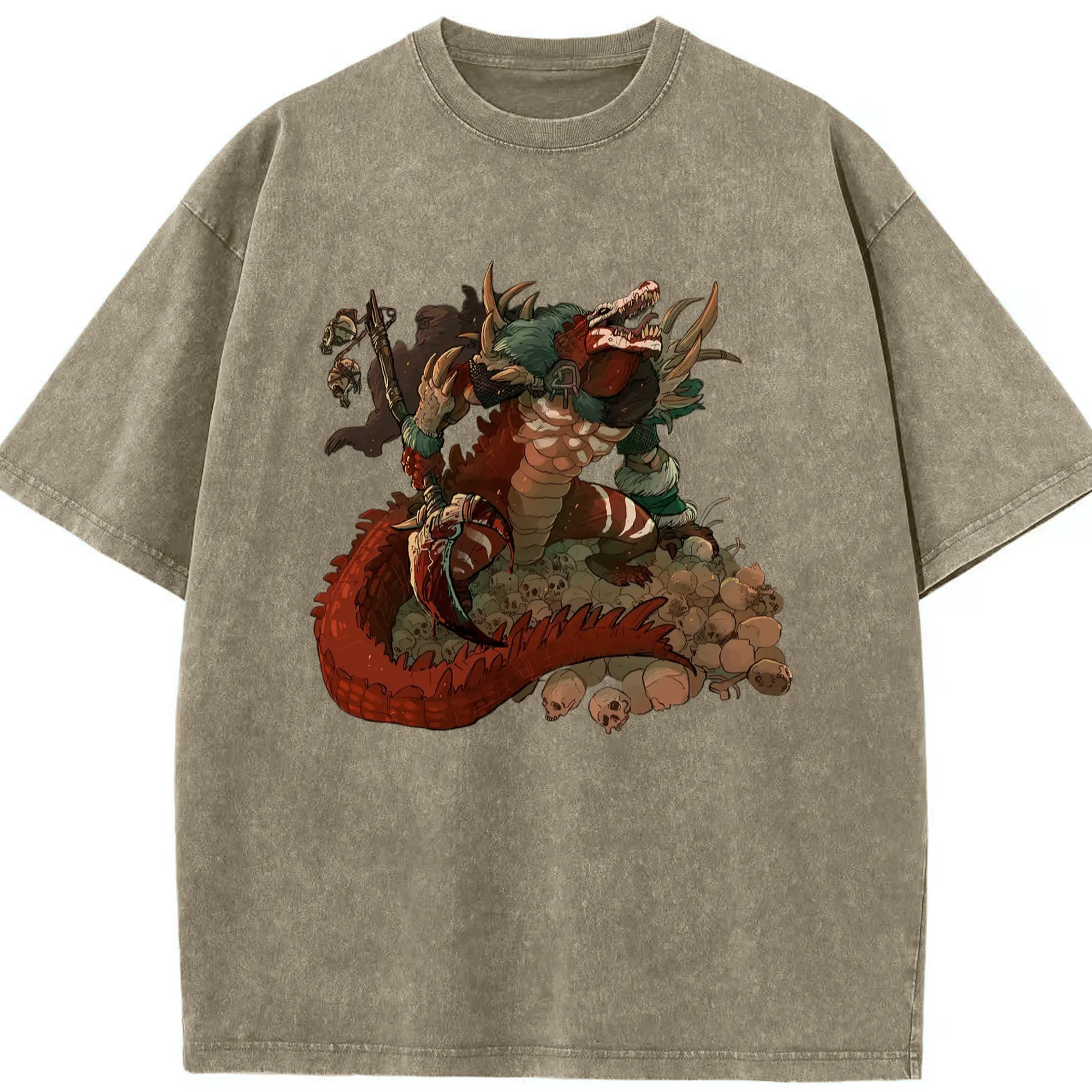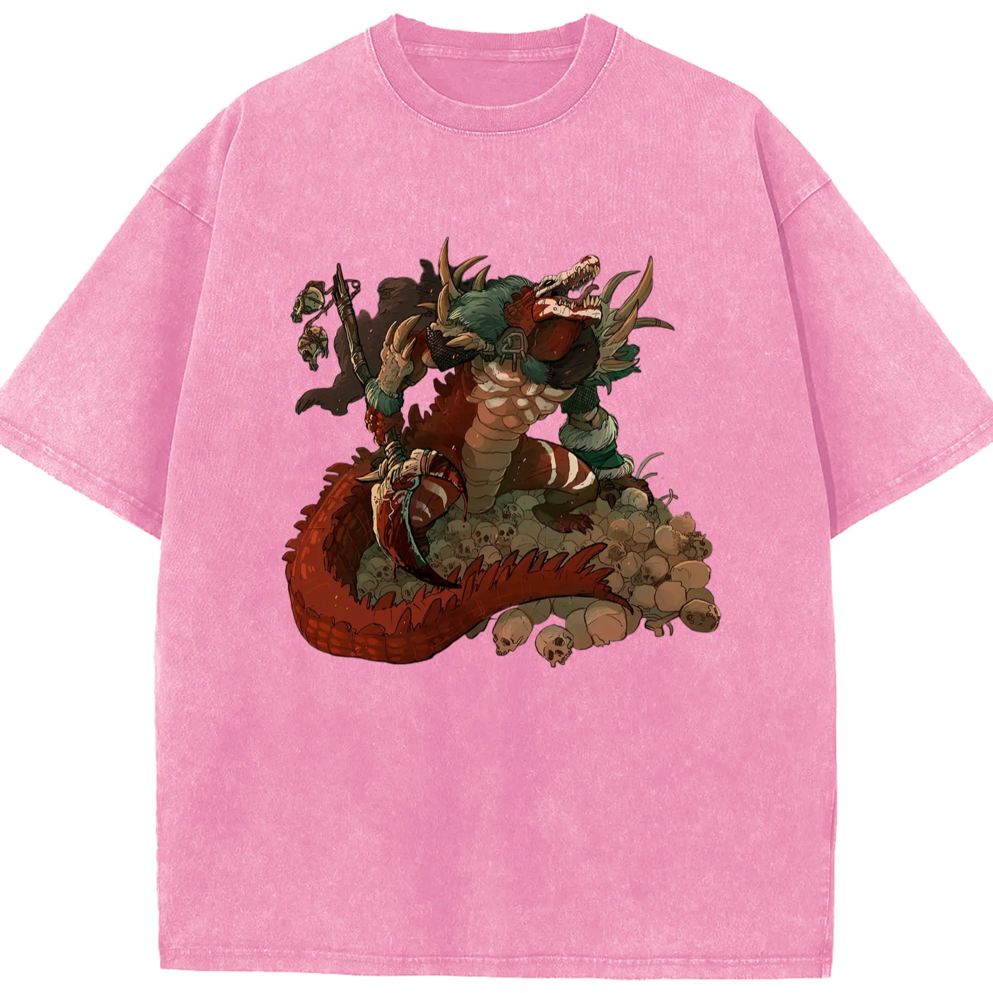 Total war warhammer Lizardmen graphic tee - Washed Vintage Look 230g Cotton Oversized T-Shirt With Front Heat Transfer Print – Soft, Lightweight, Stylish Fit – Comfortable Casual Wear For Sports & Everyday Use