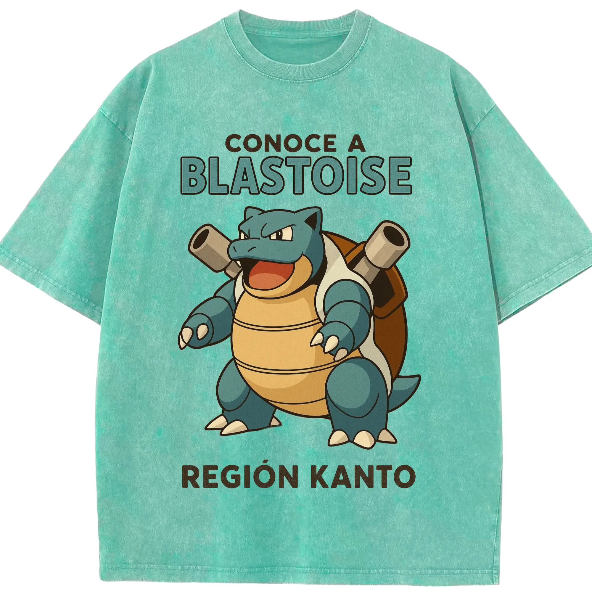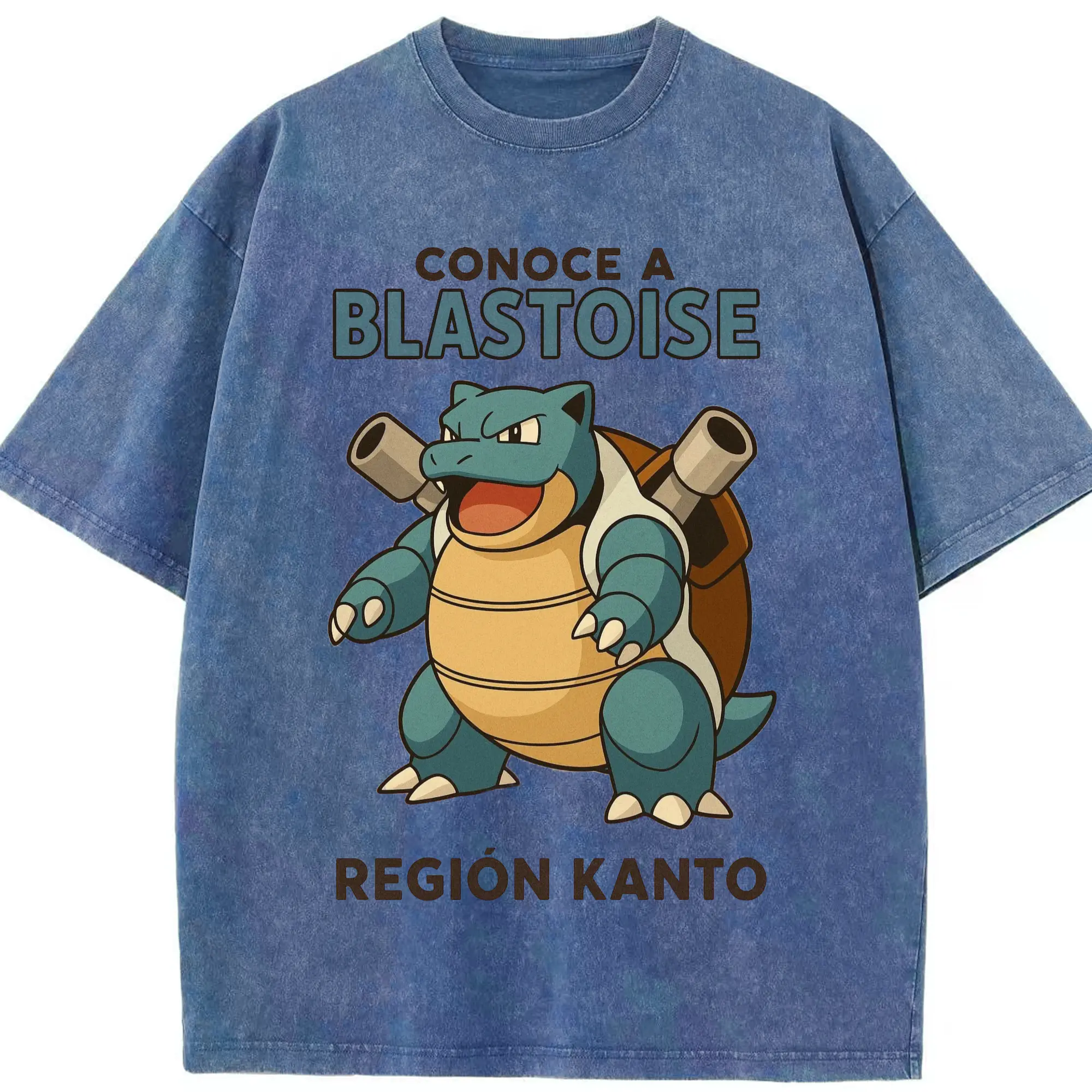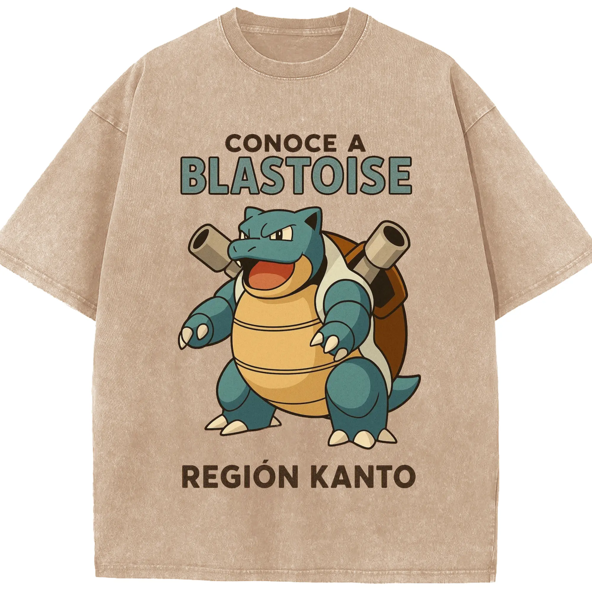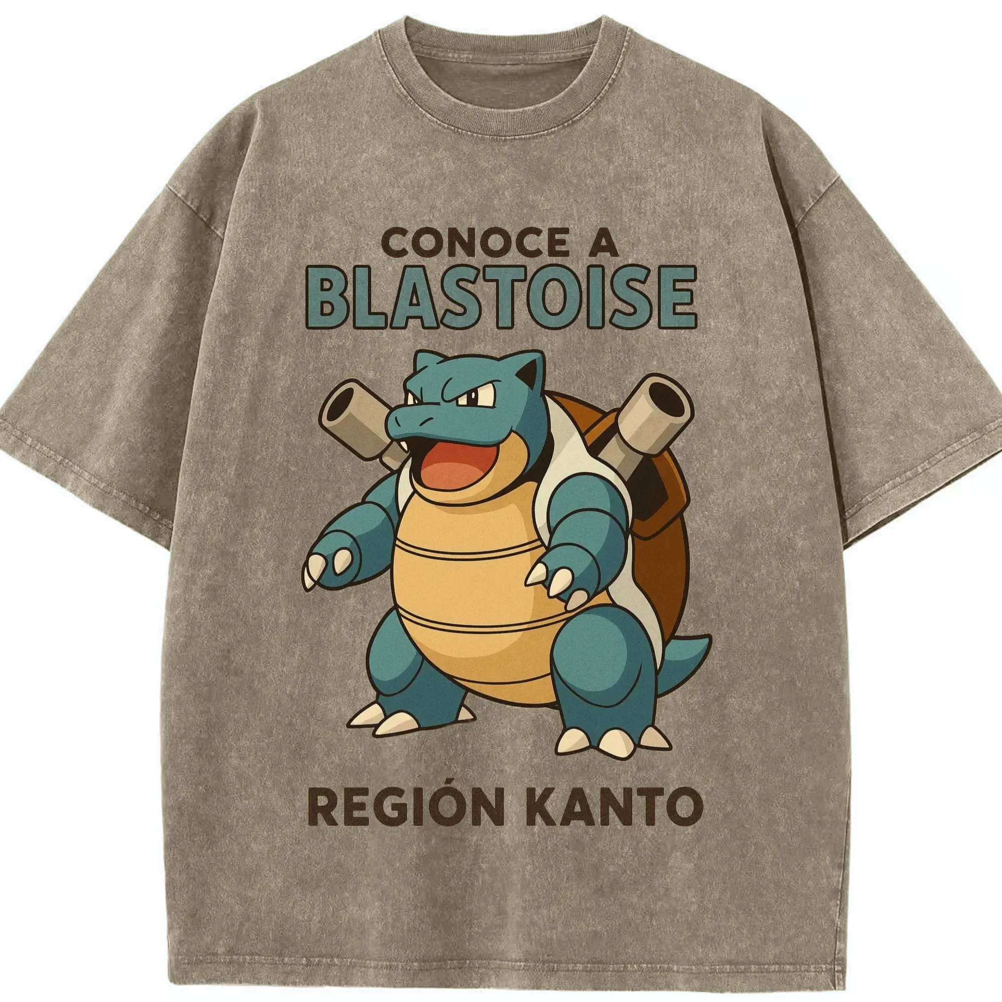 Vintage blastoise t-shirt​ - Washed Vintage Look 230g Cotton Oversized T-Shirt With Front Heat Transfer Print – Soft, Lightweight, Stylish Fit – Comfortable Casual Wear For Sports & Everyday Use