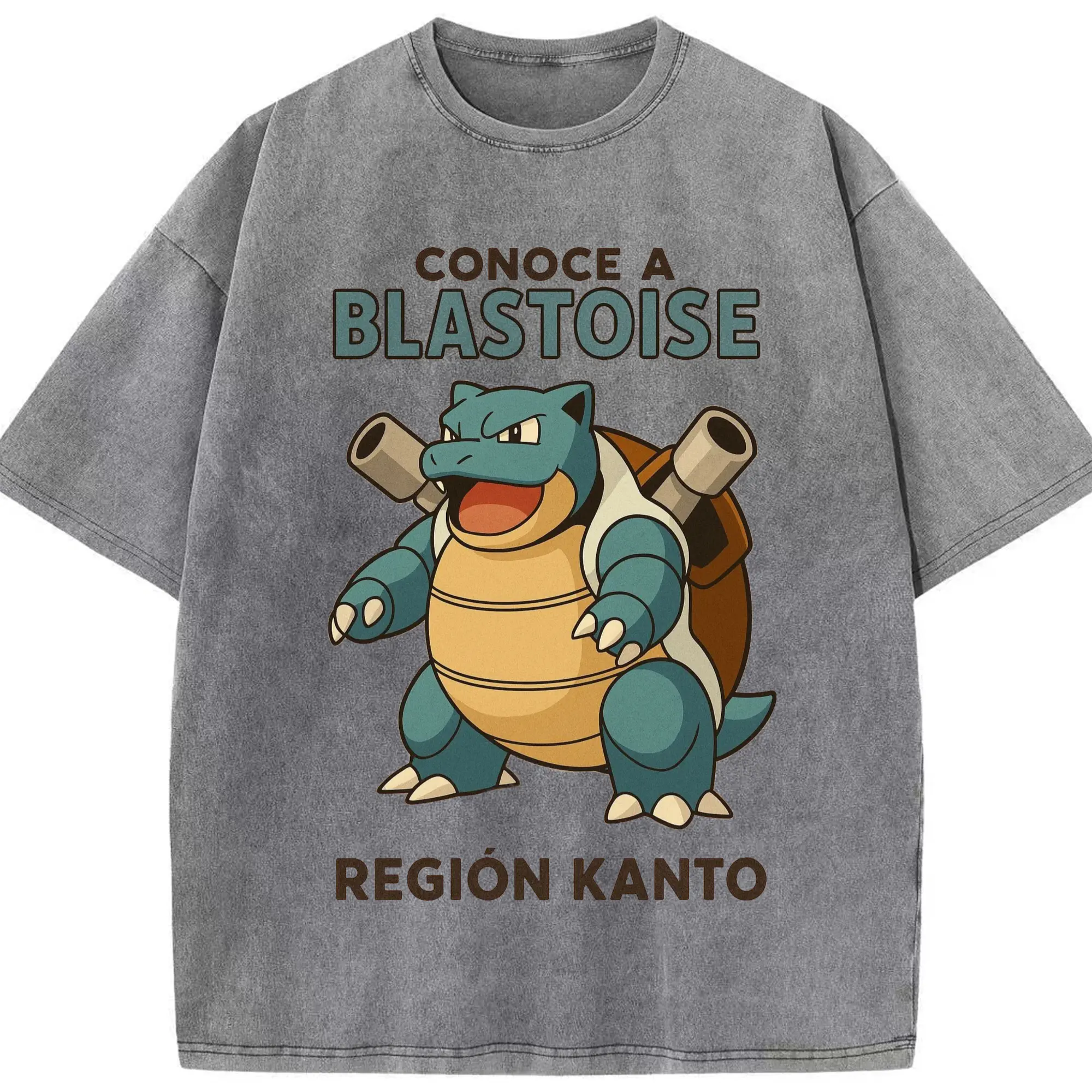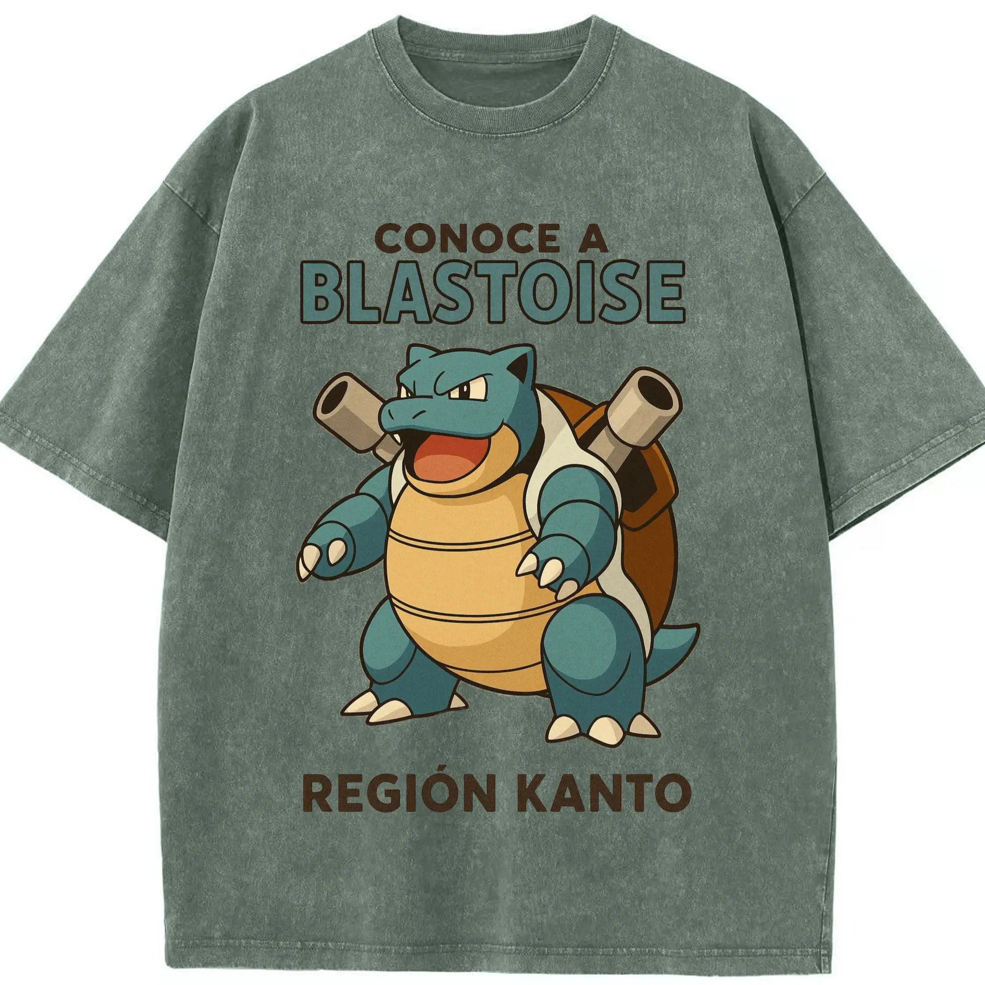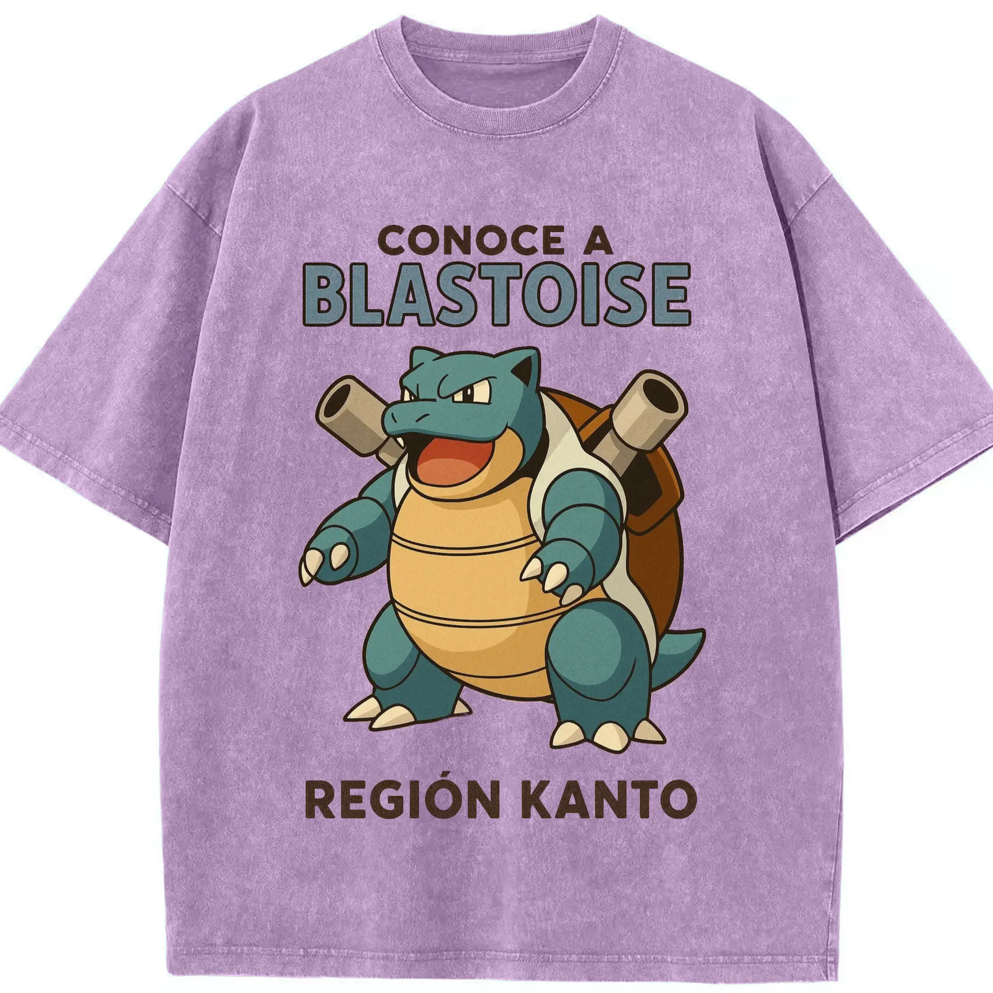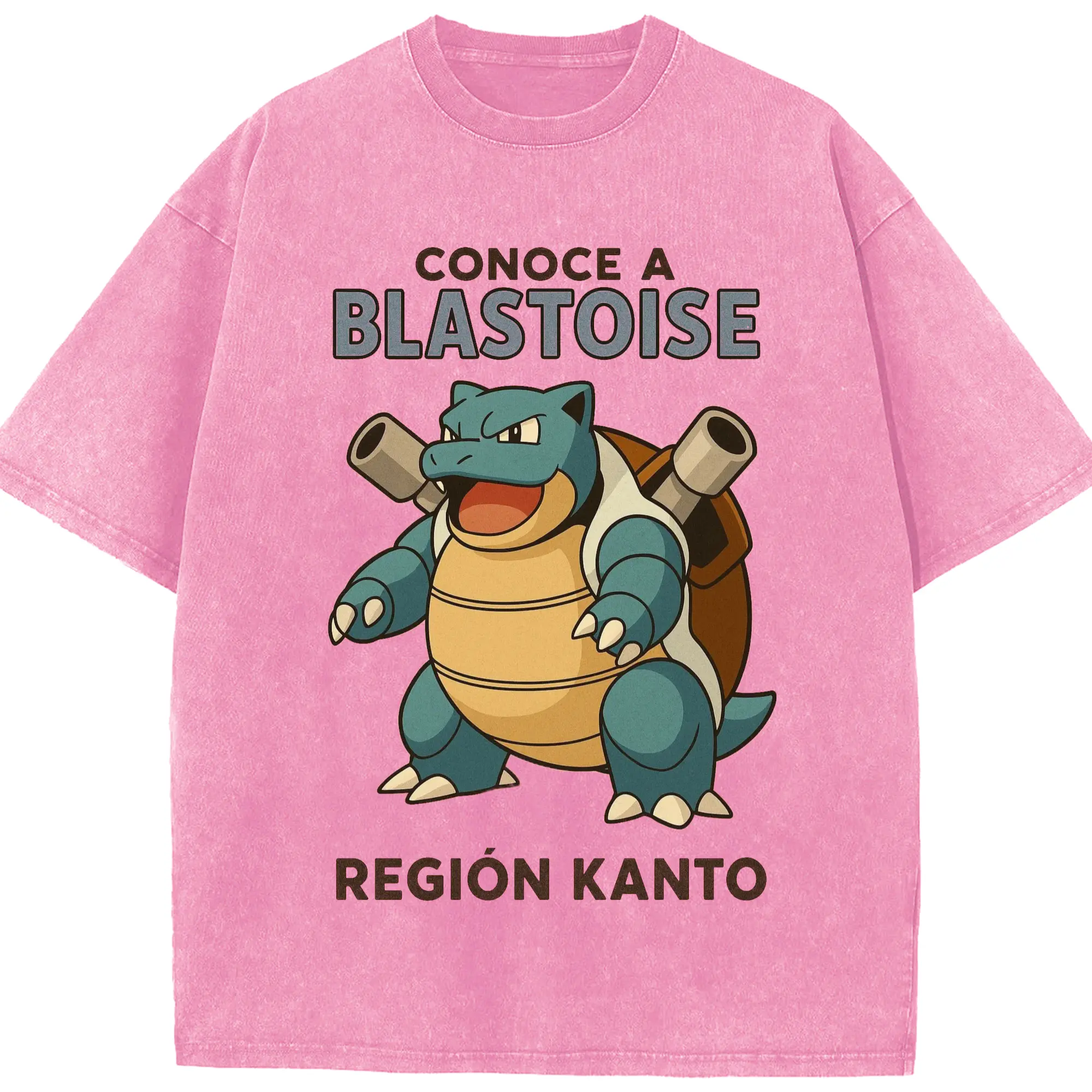 Vintage blastoise t-shirt​ - Washed Vintage Look 230g Cotton Oversized T-Shirt With Front Heat Transfer Print – Soft, Lightweight, Stylish Fit – Comfortable Casual Wear For Sports & Everyday Use