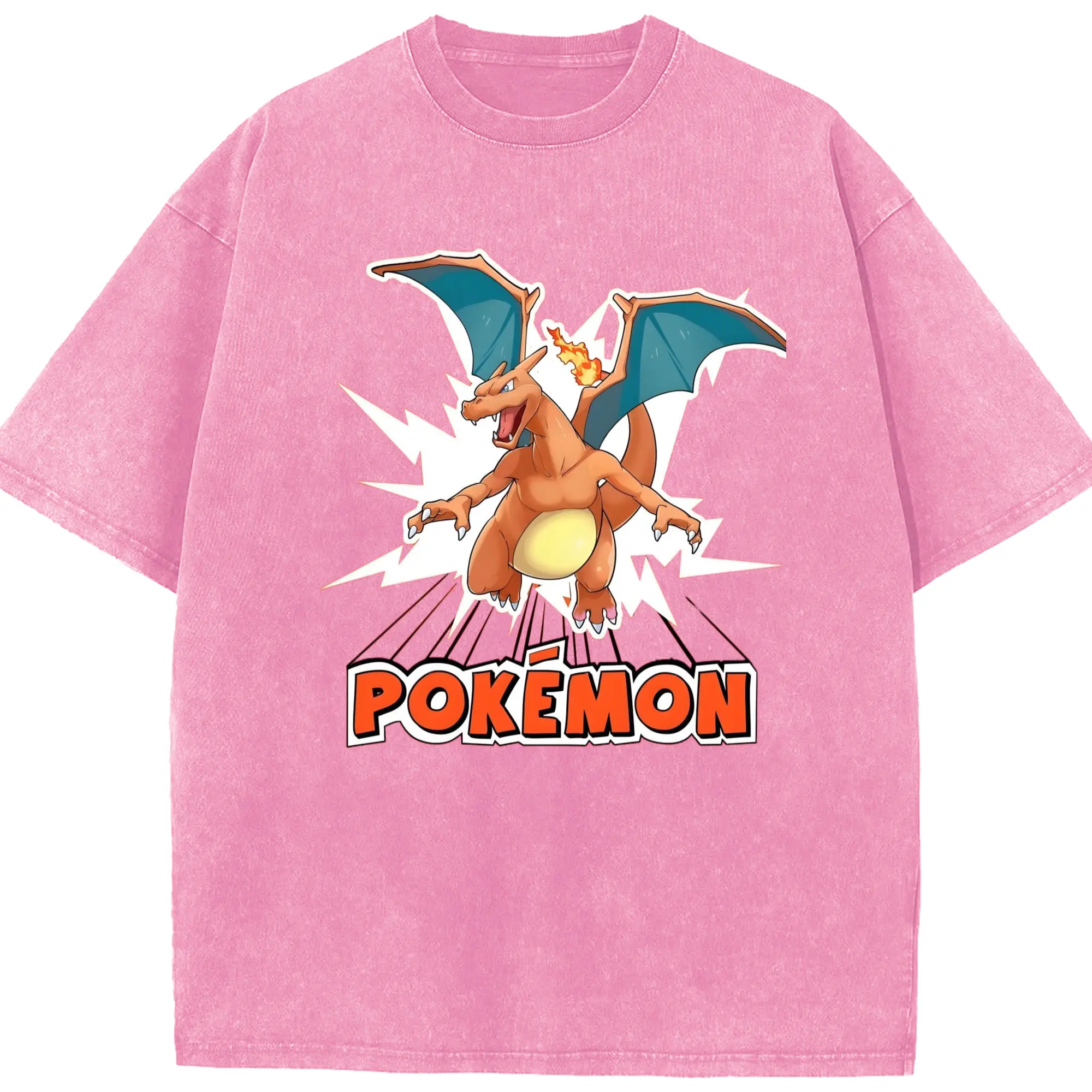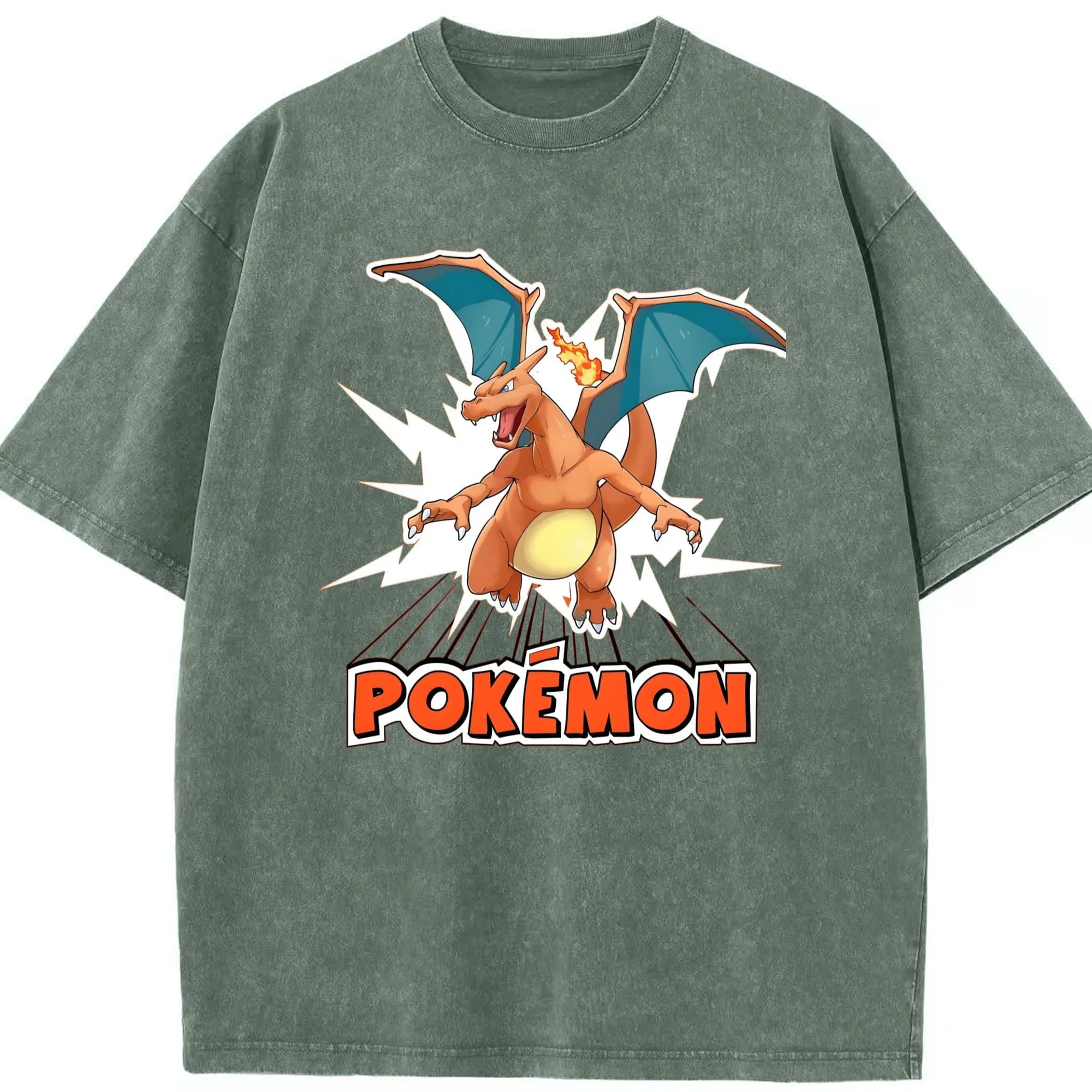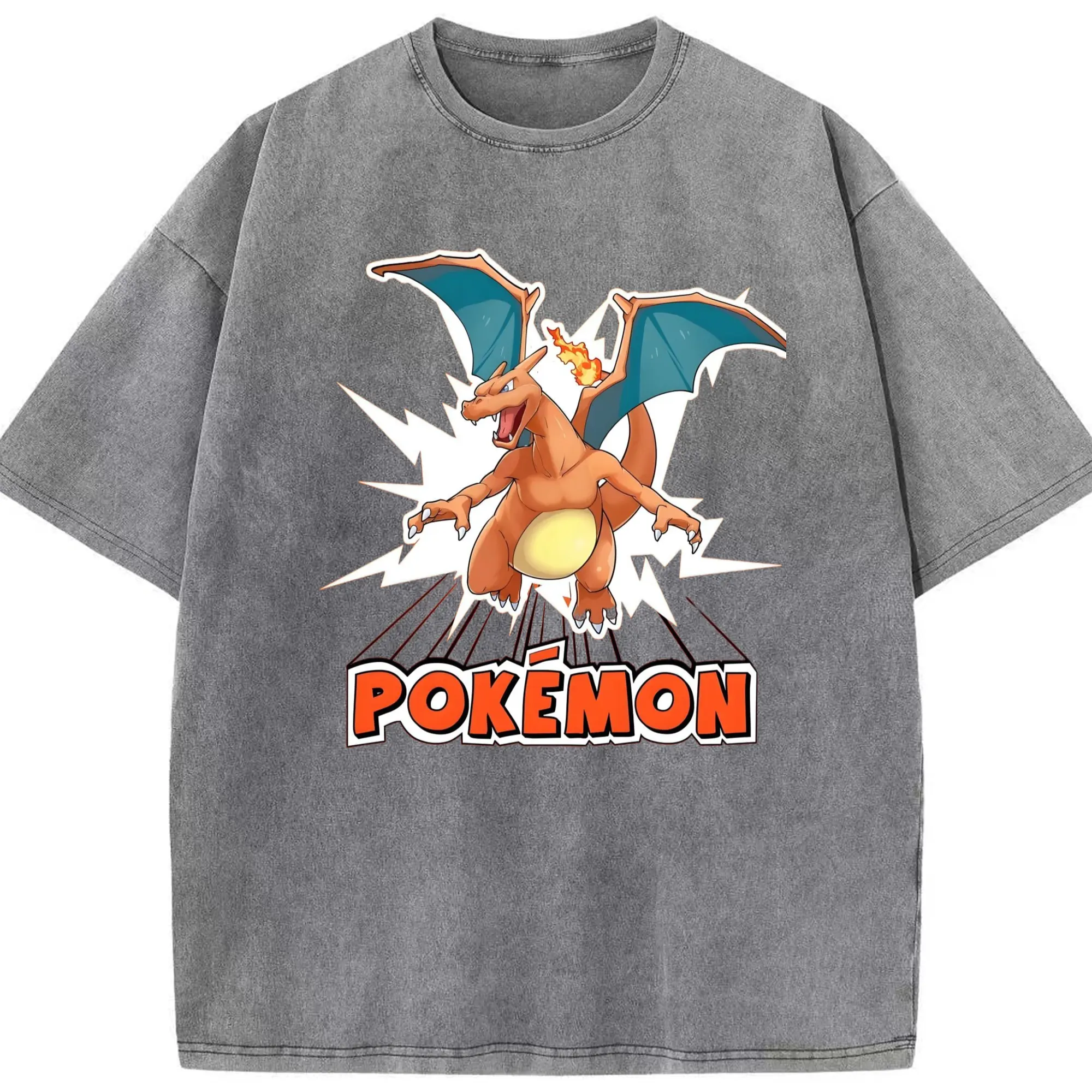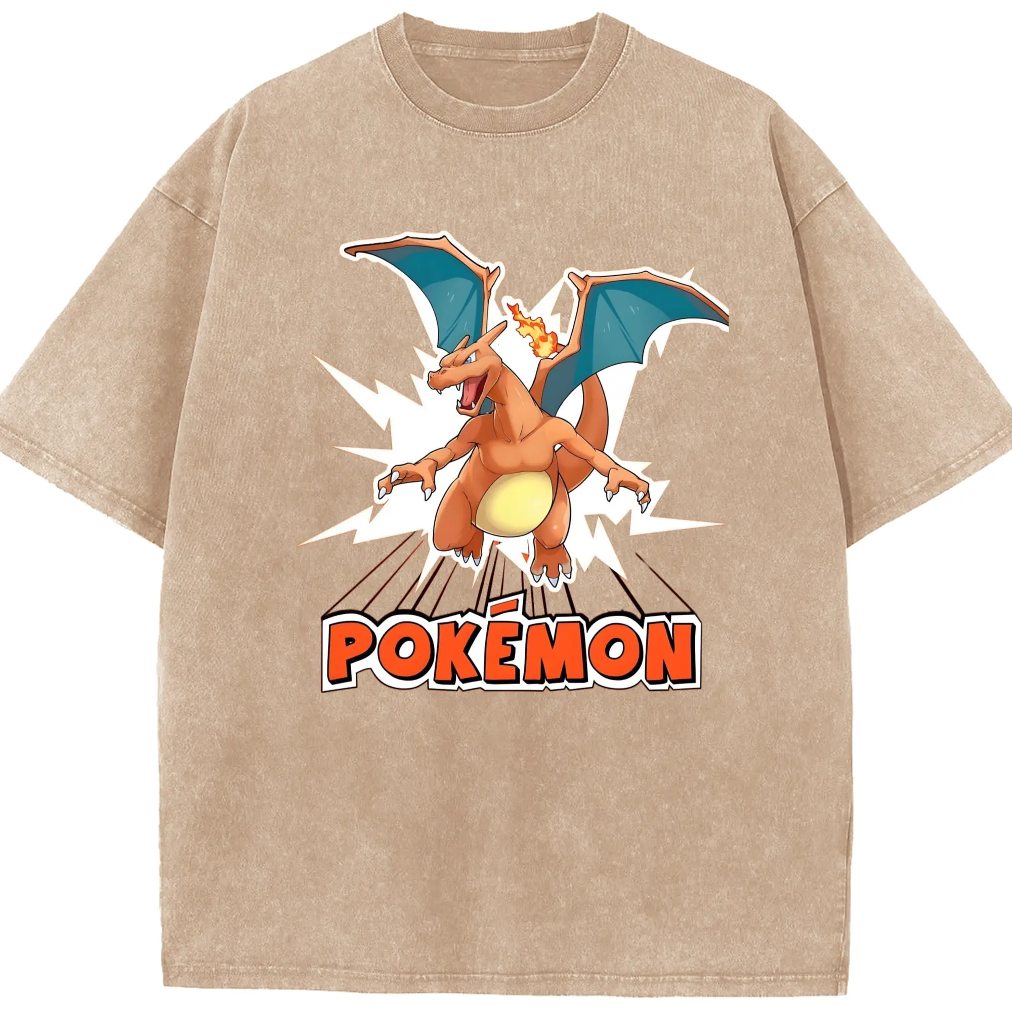 Vintage charizard shirt - Washed Vintage Look 230g Cotton Oversized T-Shirt With Front Heat Transfer Print – Soft, Lightweight, Stylish Fit – Comfortable Casual Wear For Sports & Everyday Use