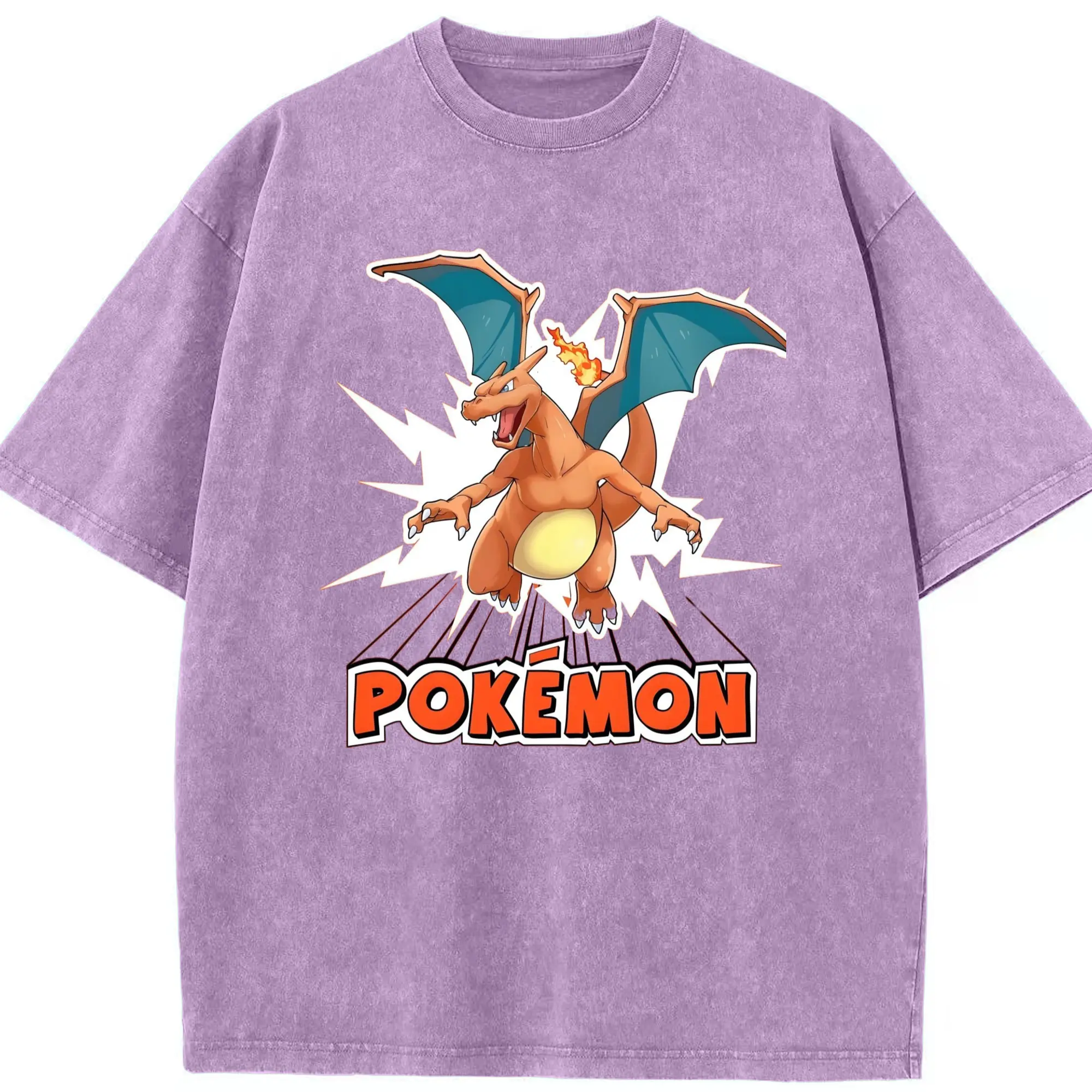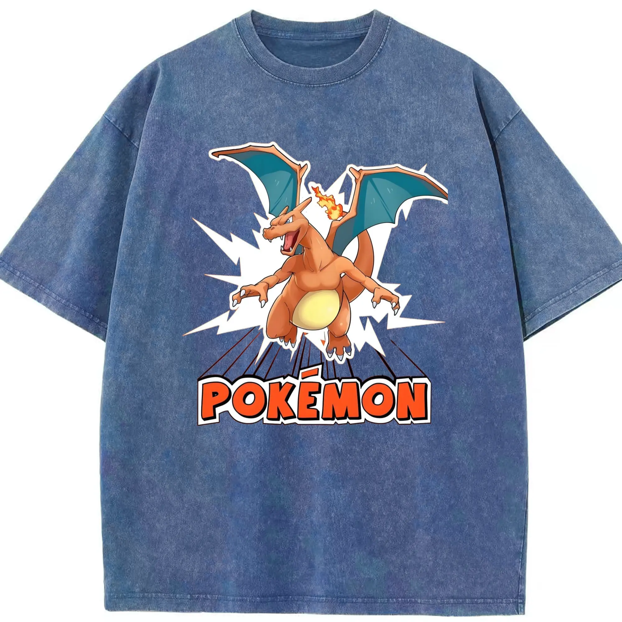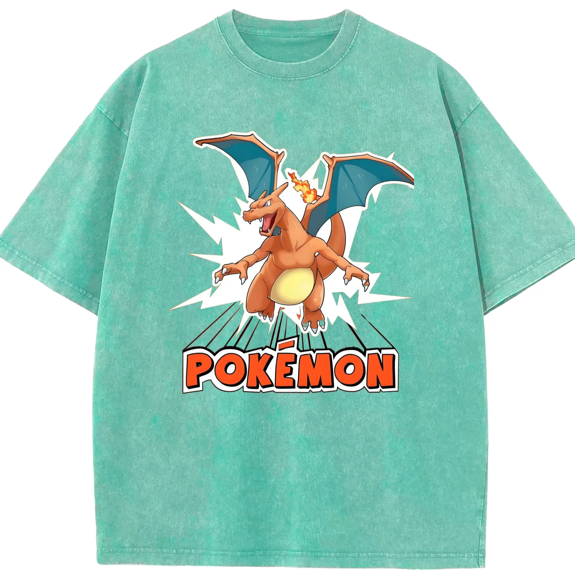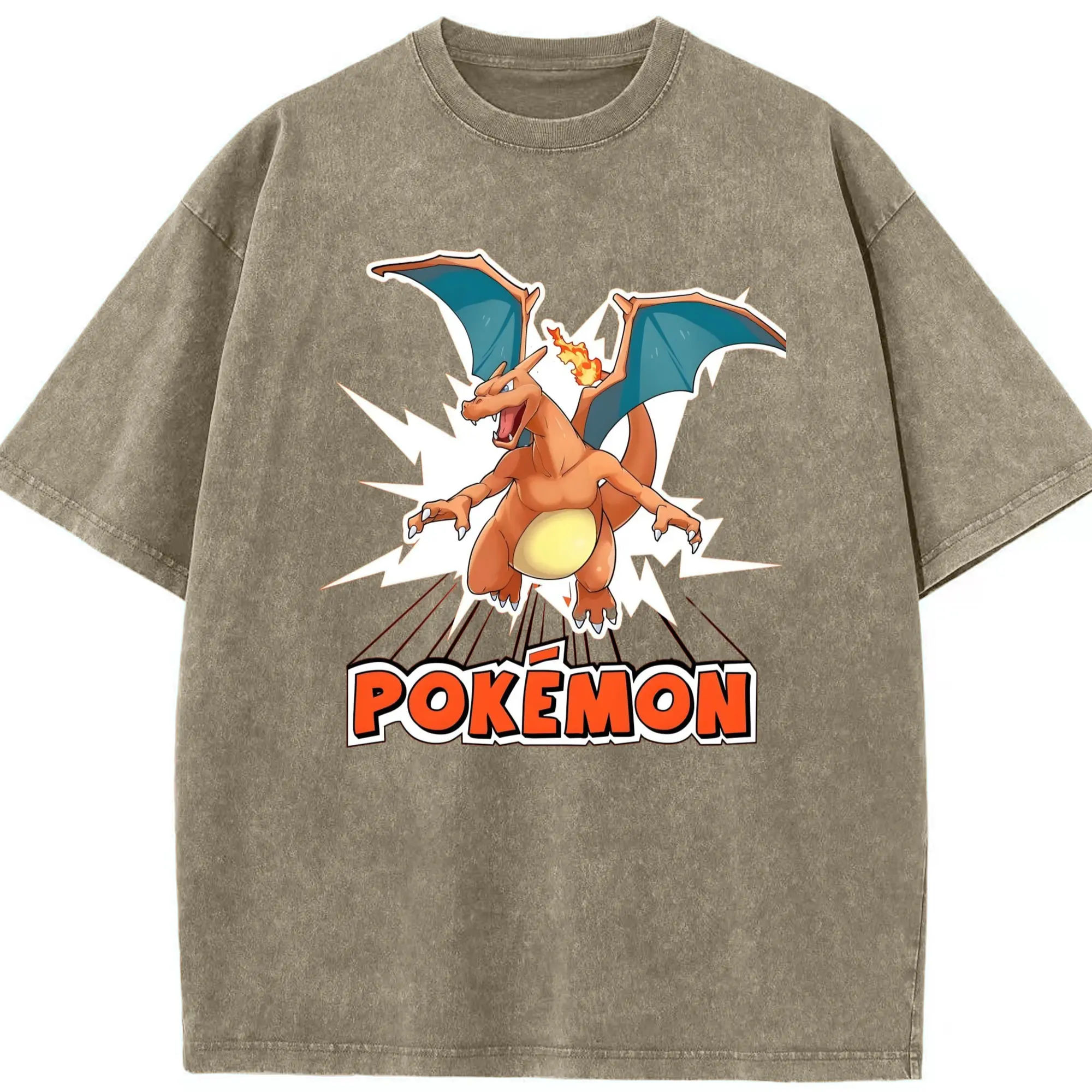 Vintage charizard shirt - Washed Vintage Look 230g Cotton Oversized T-Shirt With Front Heat Transfer Print – Soft, Lightweight, Stylish Fit – Comfortable Casual Wear For Sports & Everyday Use