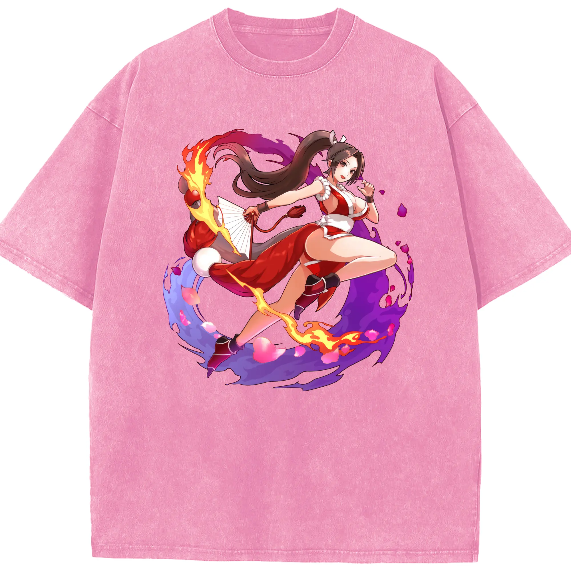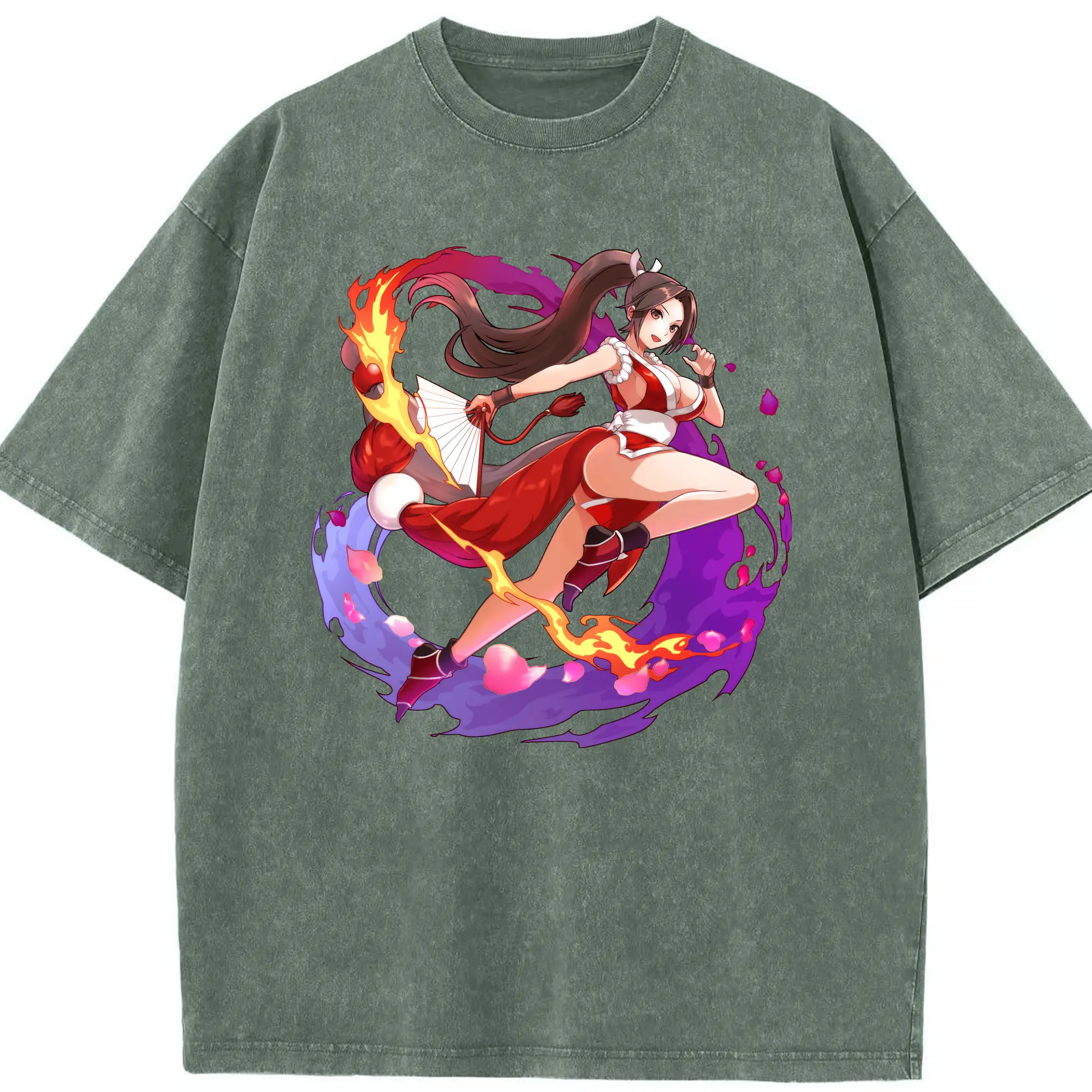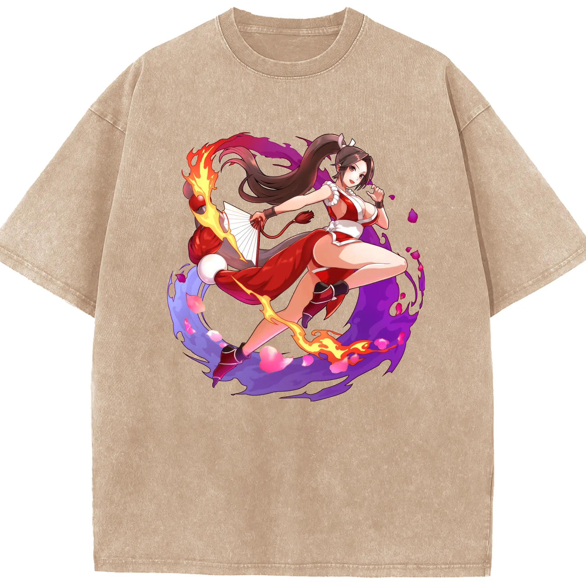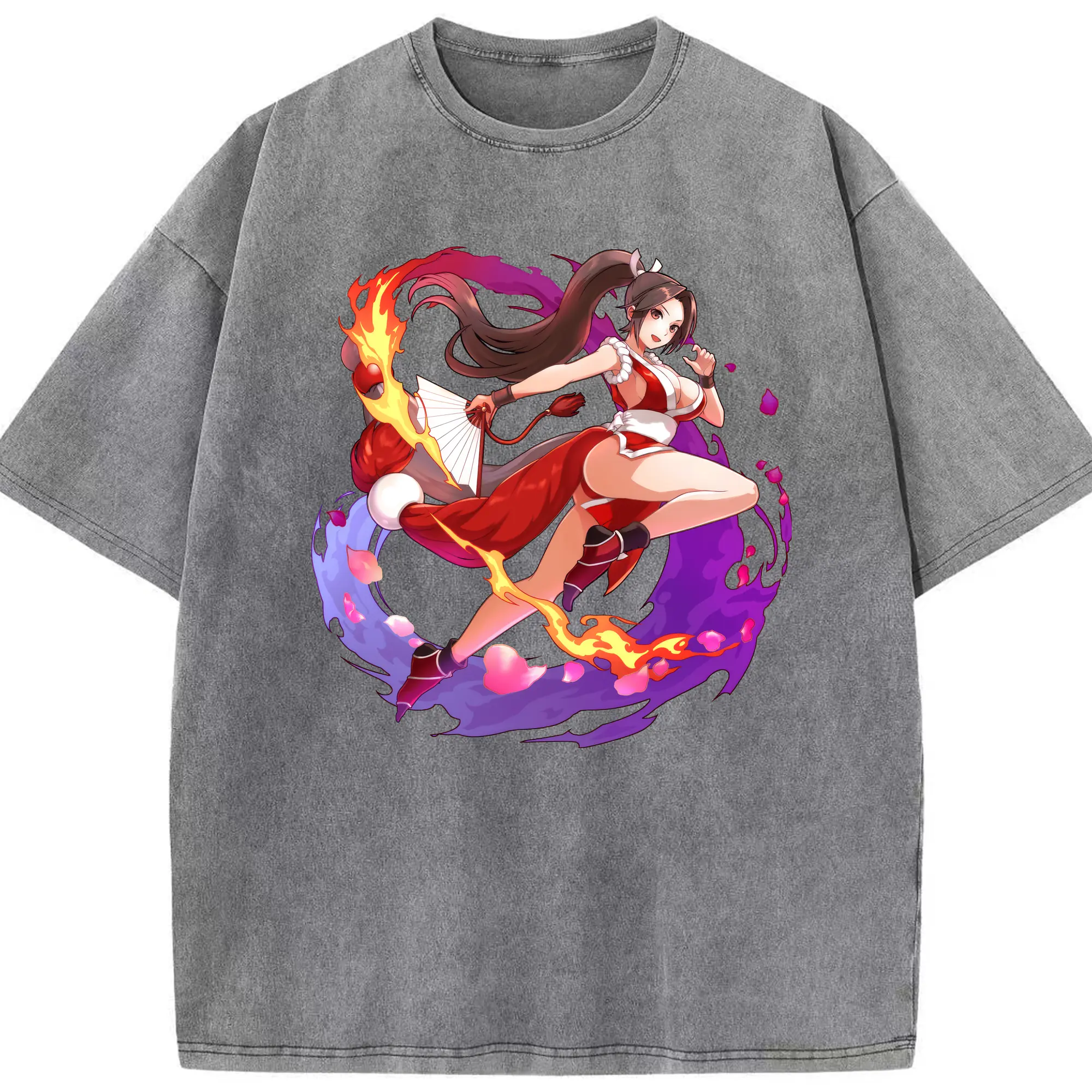 Vintage the king of fighters mri shirt - Washed Vintage Look 230g Cotton Oversized T-Shirt With Front Heat Transfer Print – Soft, Lightweight, Stylish Fit – Comfortable Casual Wear For Sports & Everyday Use