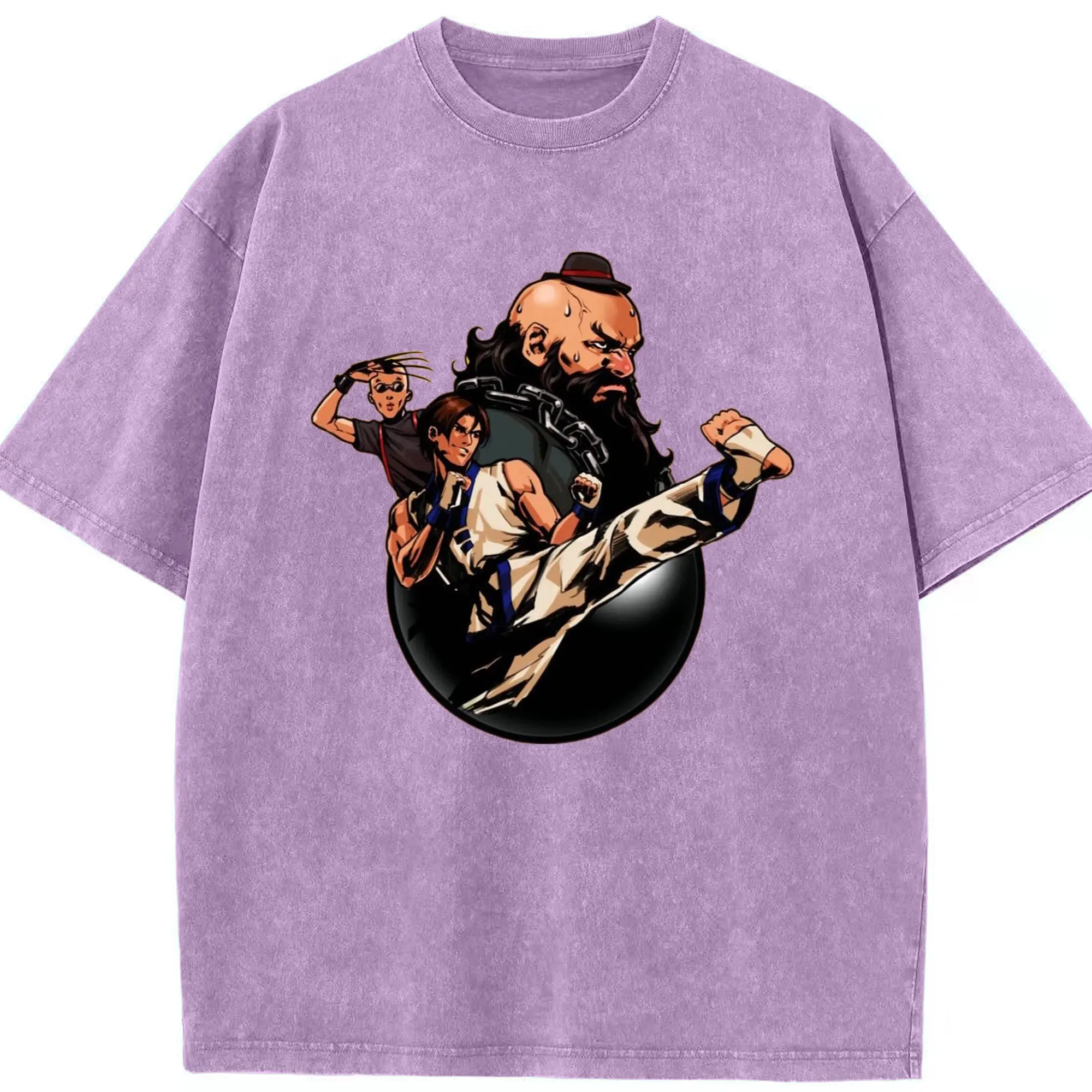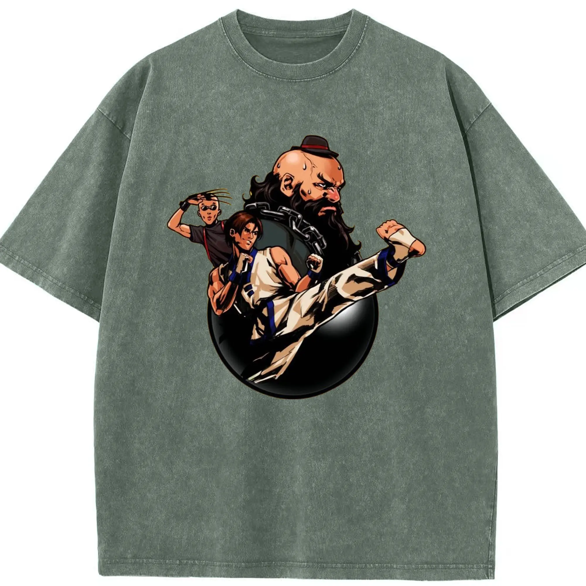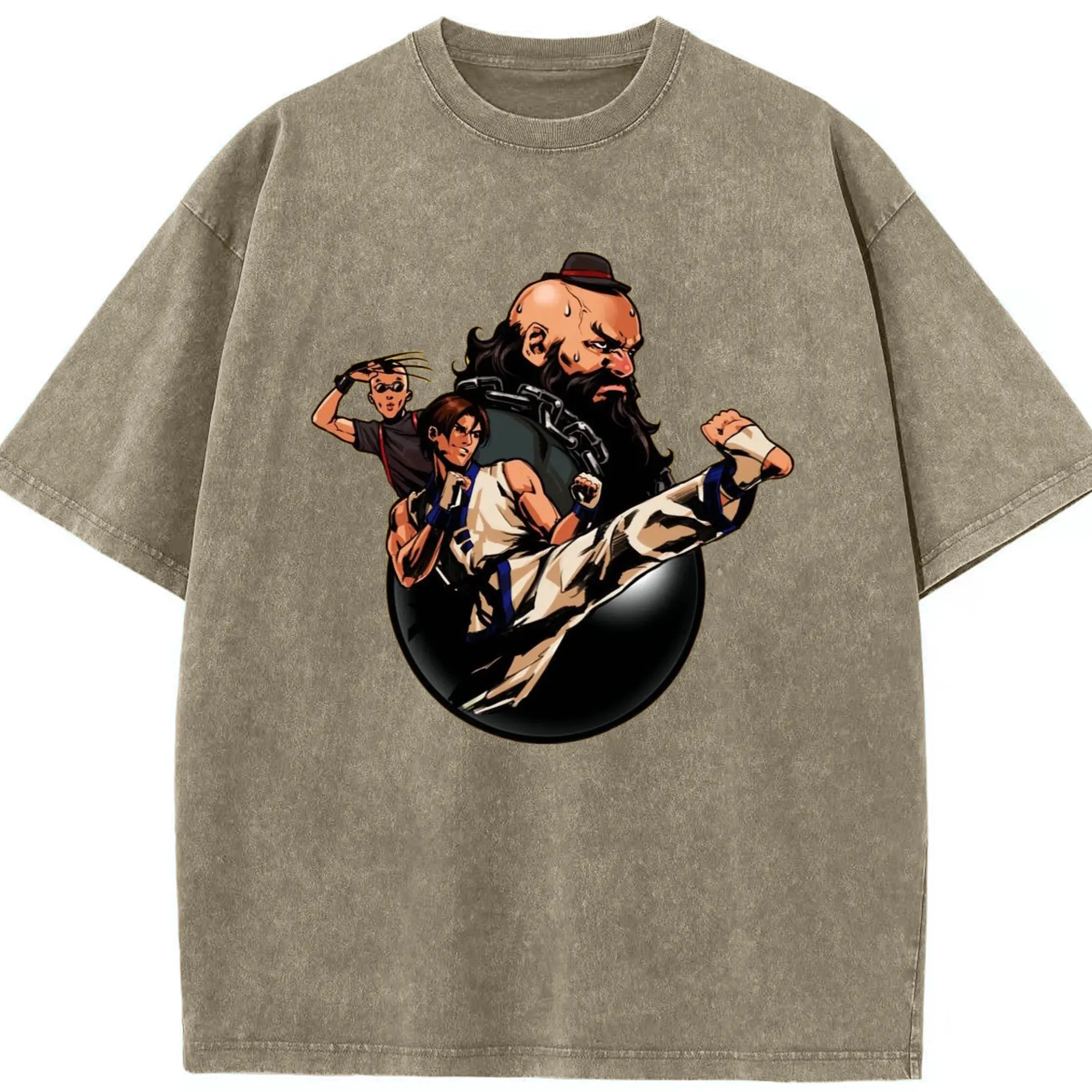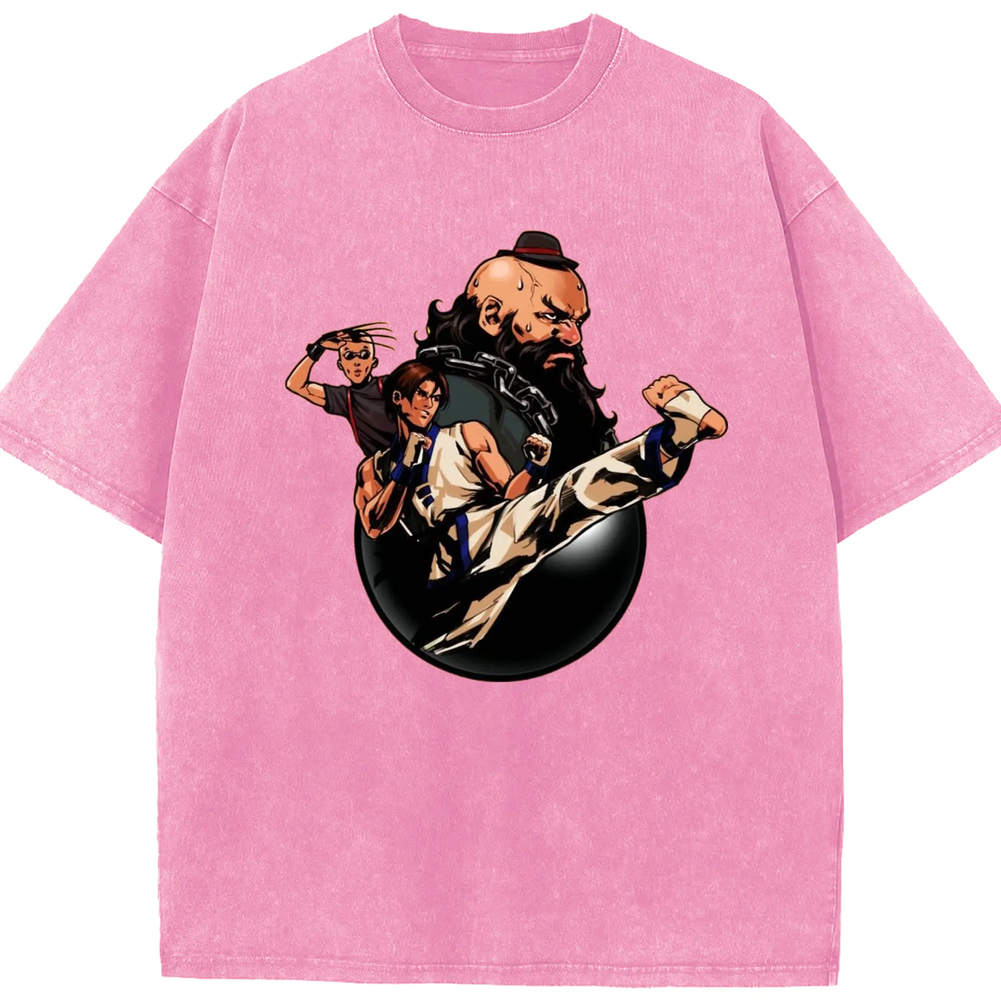 Vintage the king of fighters shirt - Washed Vintage Look 230g Cotton Oversized T-Shirt With Front Heat Transfer Print – Soft, Lightweight, Stylish Fit – Comfortable Casual Wear For Sports & Everyday Use