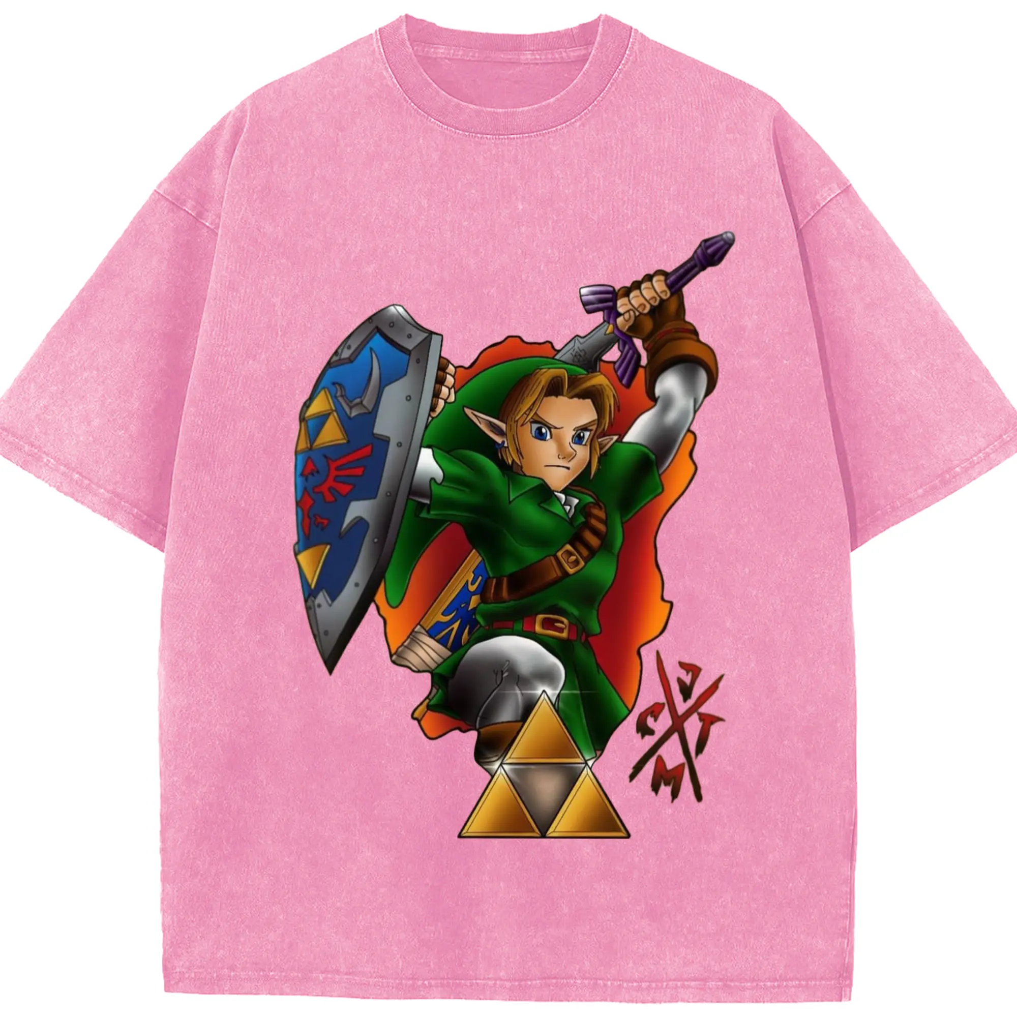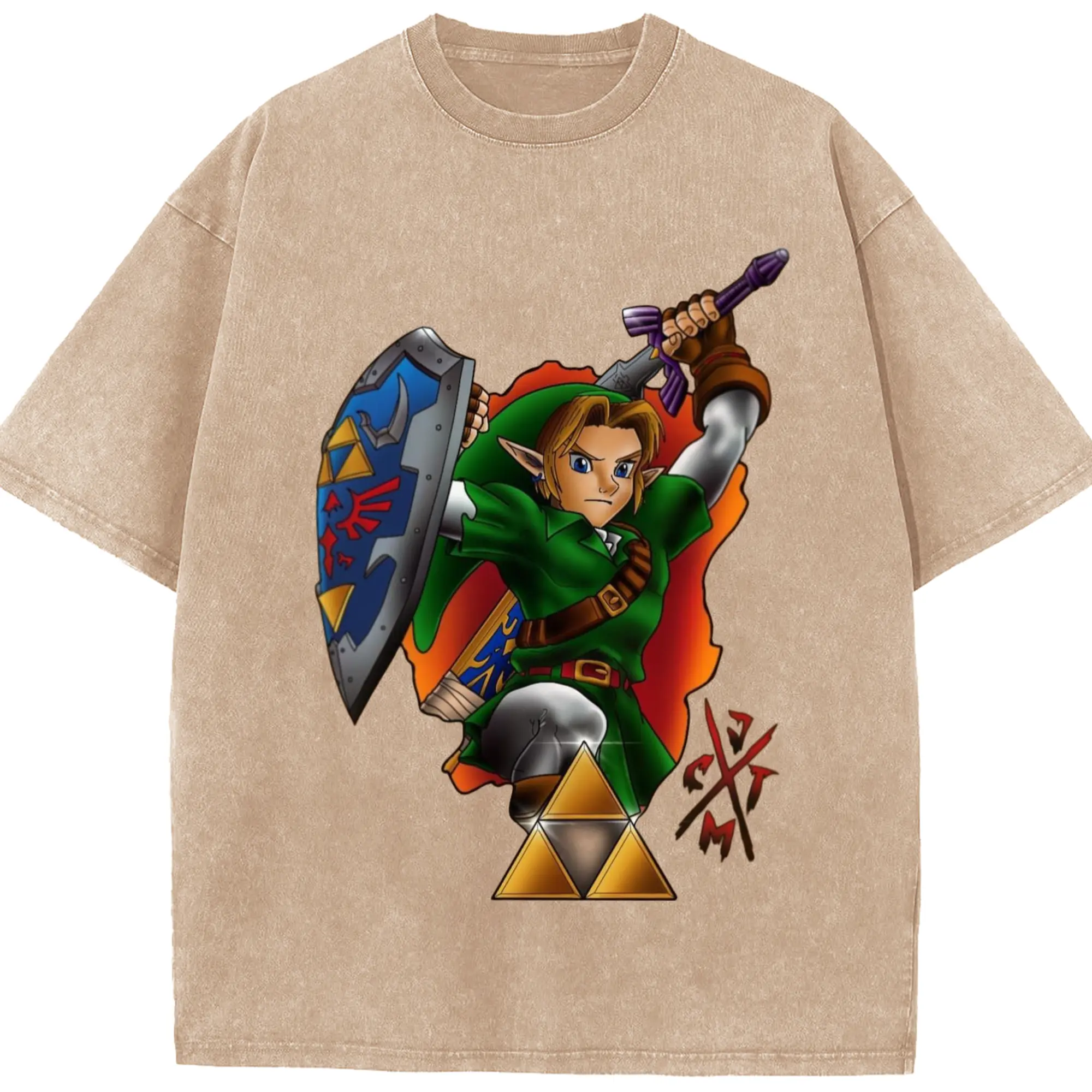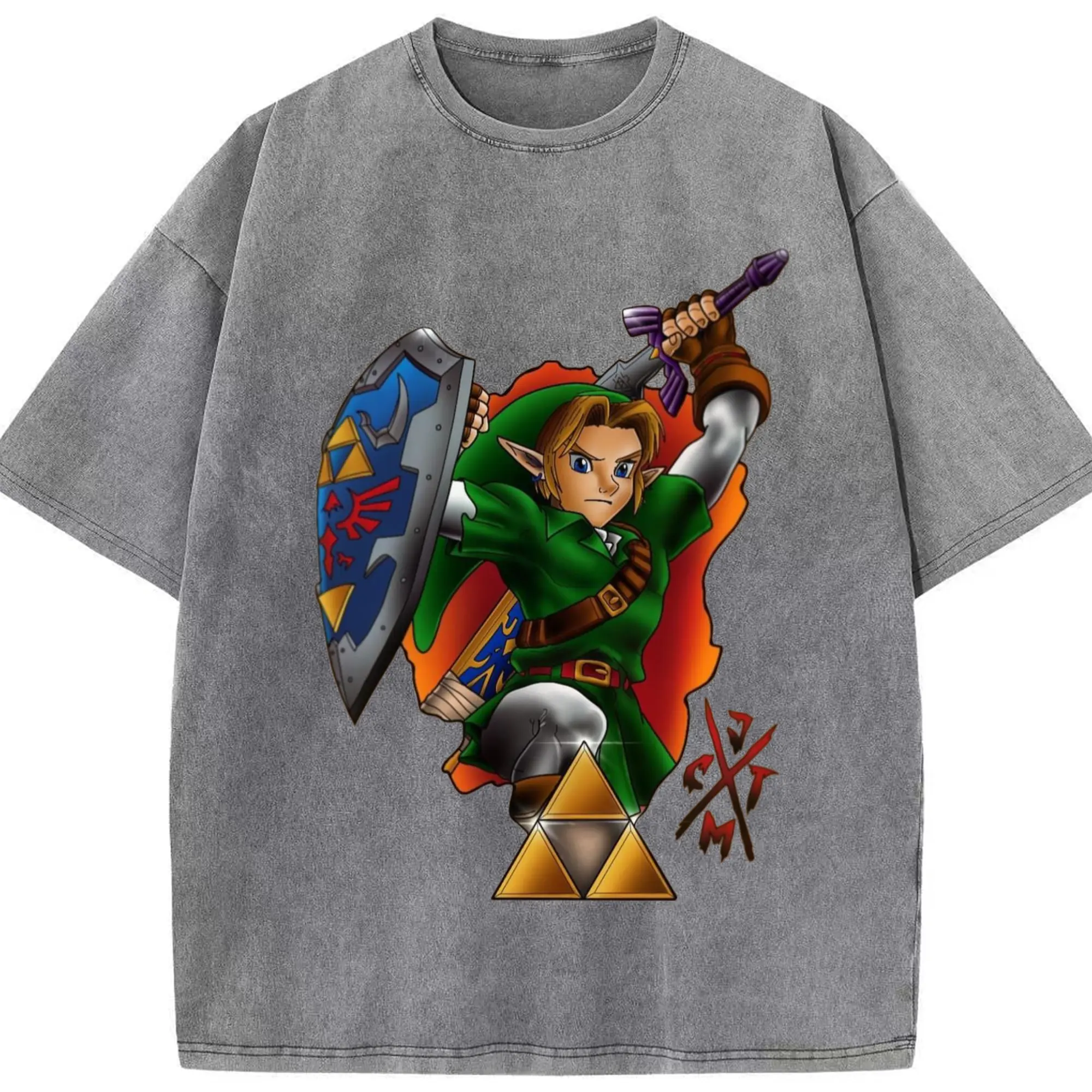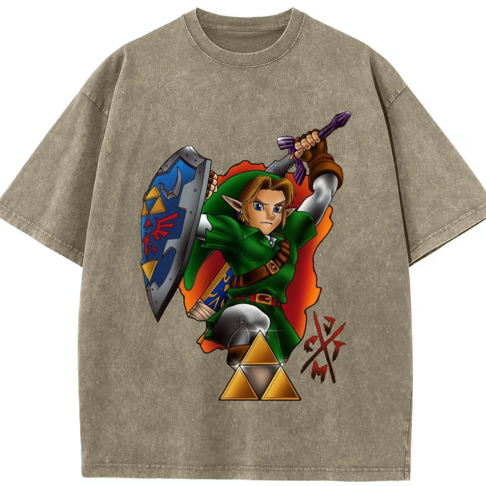 Vintage the legend of zelda link shirt​ - Washed Vintage Look 230g Cotton Oversized T-Shirt With Front Heat Transfer Print – Soft, Lightweight, Stylish Fit – Comfortable Casual Wear For Sports & Everyday Use