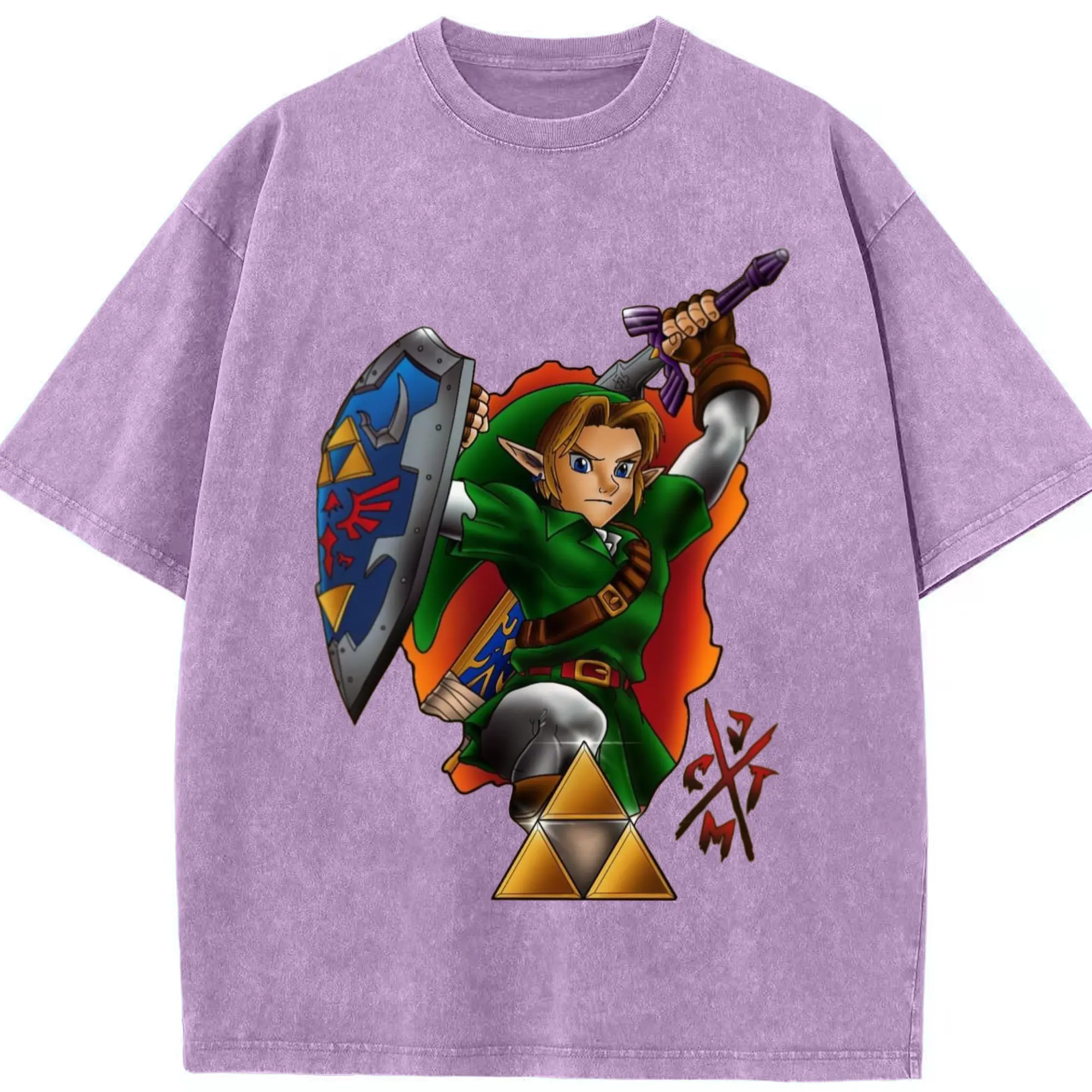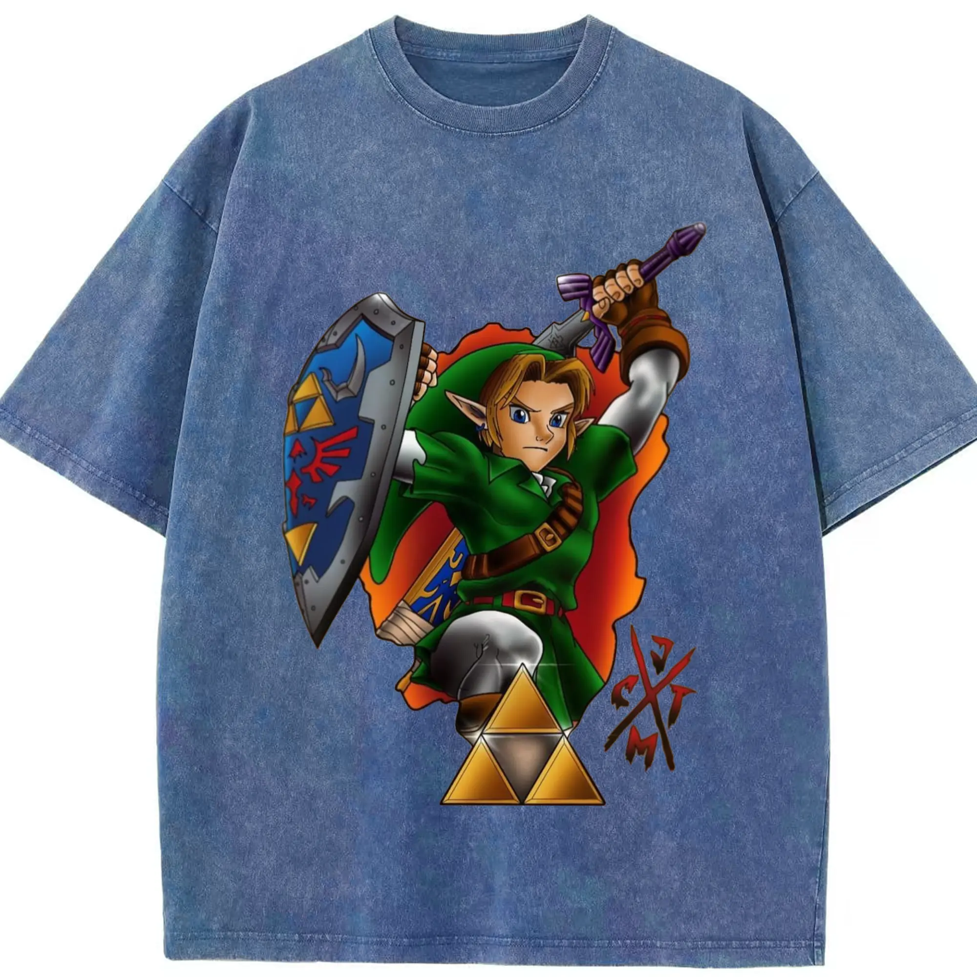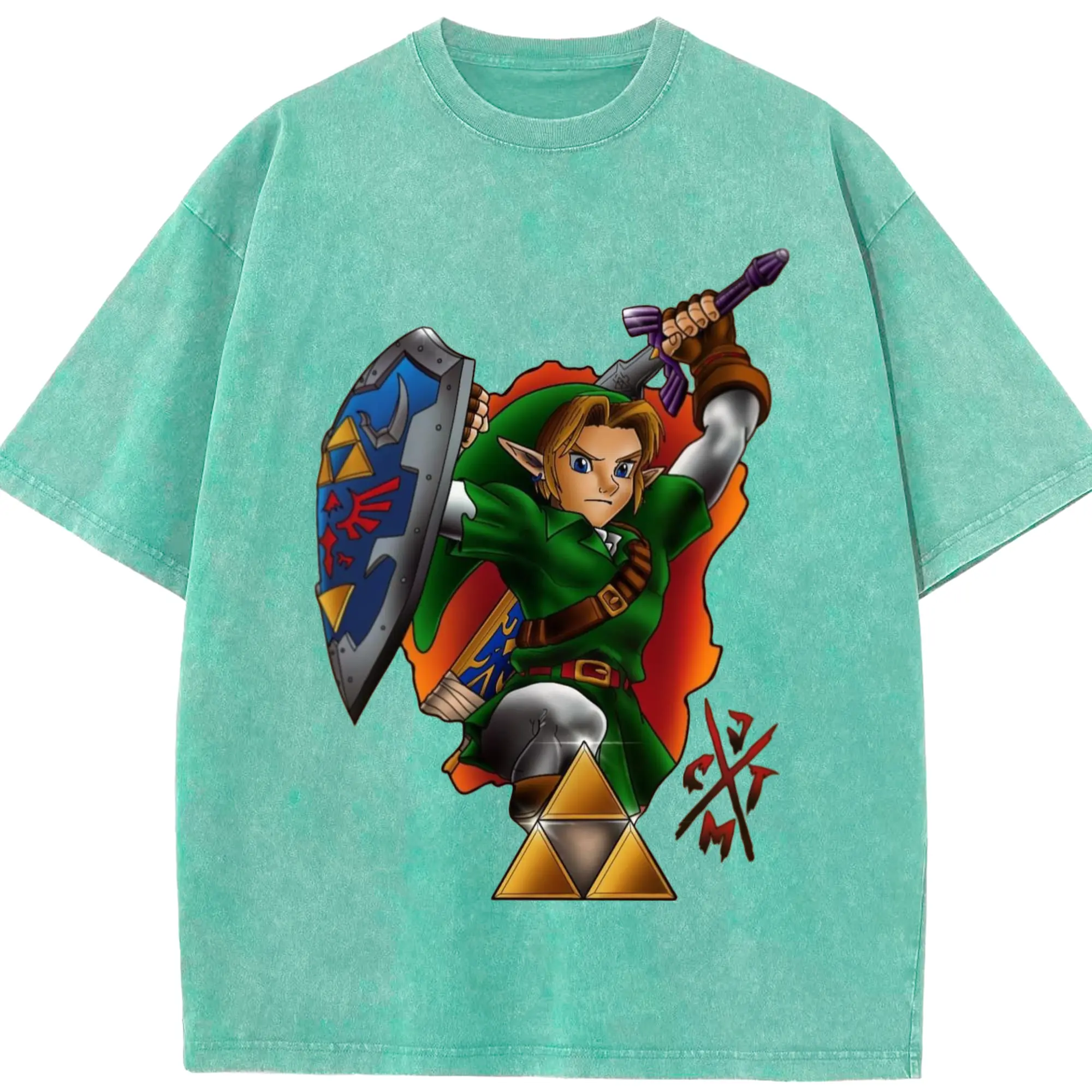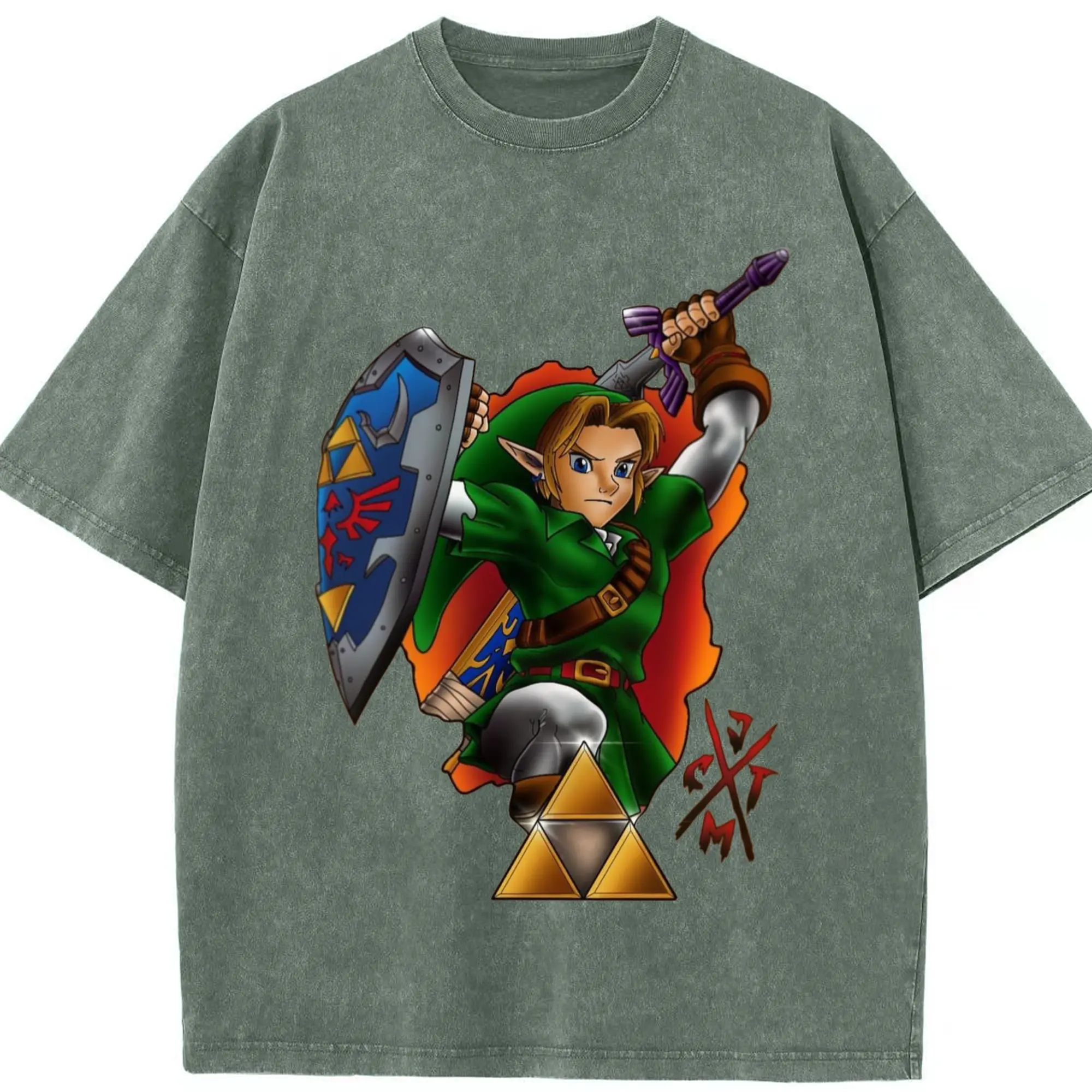 Vintage the legend of zelda link shirt​ - Washed Vintage Look 230g Cotton Oversized T-Shirt With Front Heat Transfer Print – Soft, Lightweight, Stylish Fit – Comfortable Casual Wear For Sports & Everyday Use