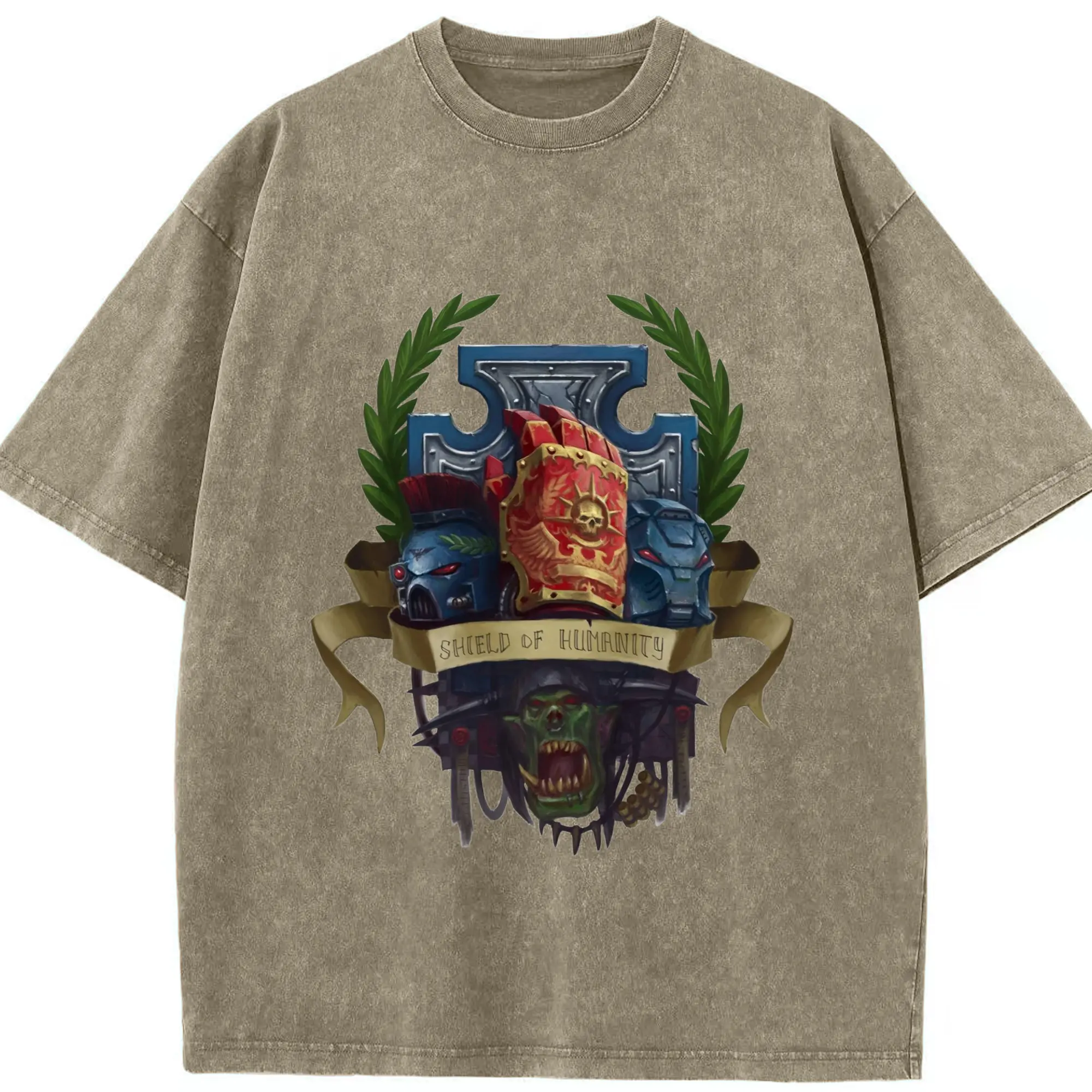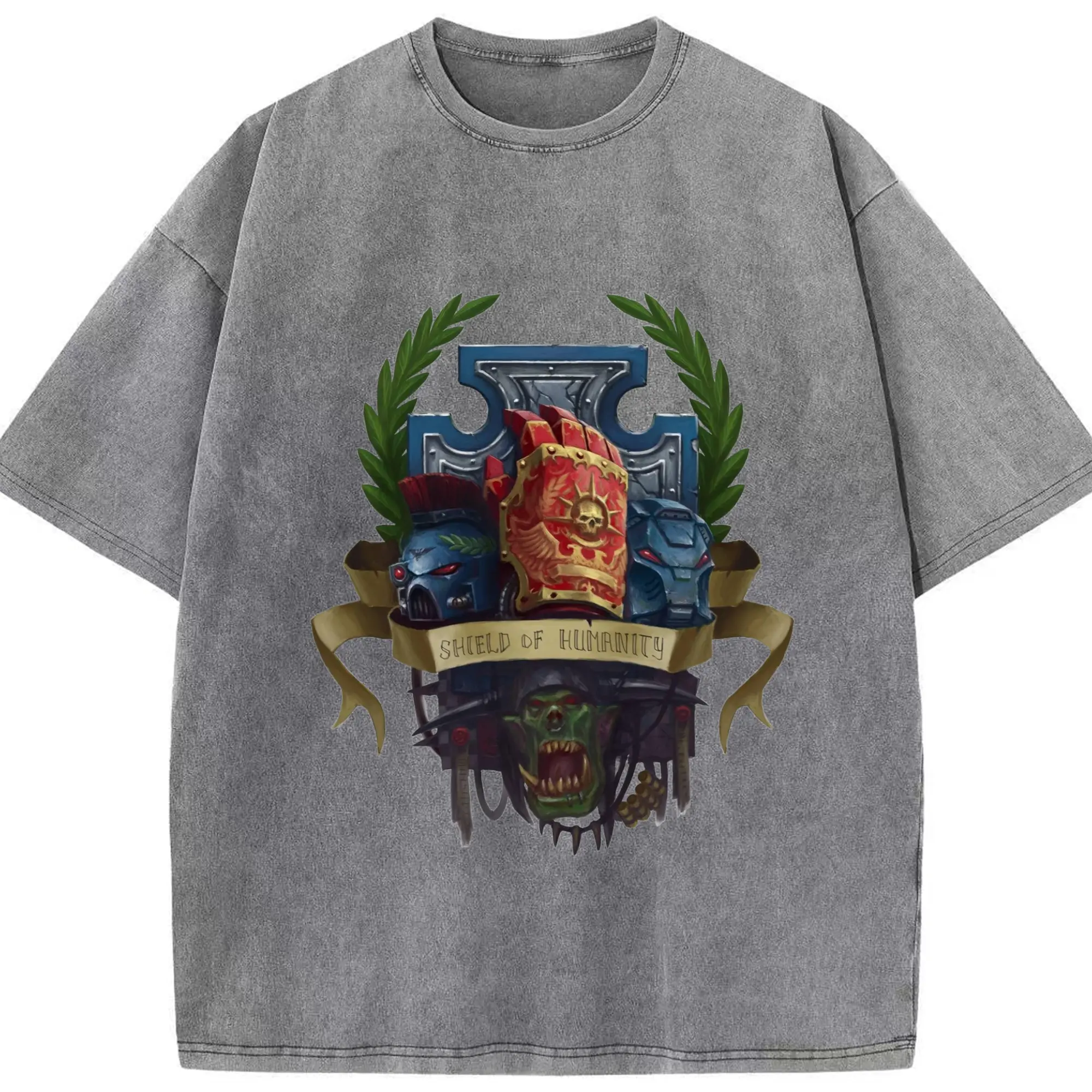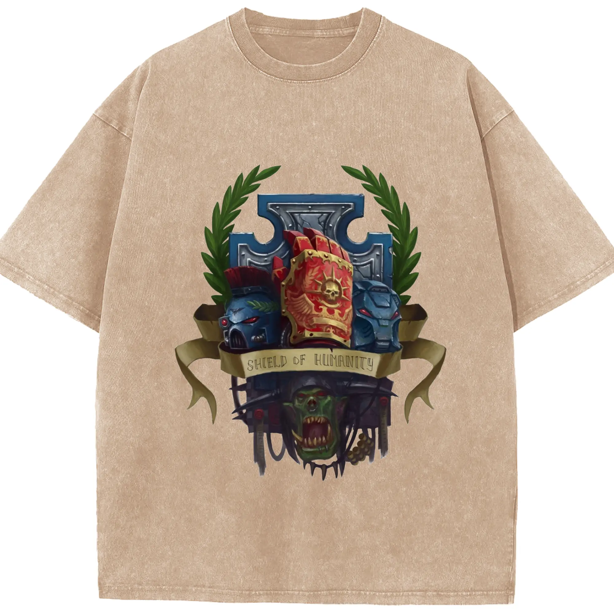 Vintage warhammer 40k collage t-shirt - Washed Vintage Look 230g Cotton Oversized T-Shirt With Front Heat Transfer Print – Soft, Lightweight, Stylish Fit – Comfortable Casual Wear For Sports & Everyday Use