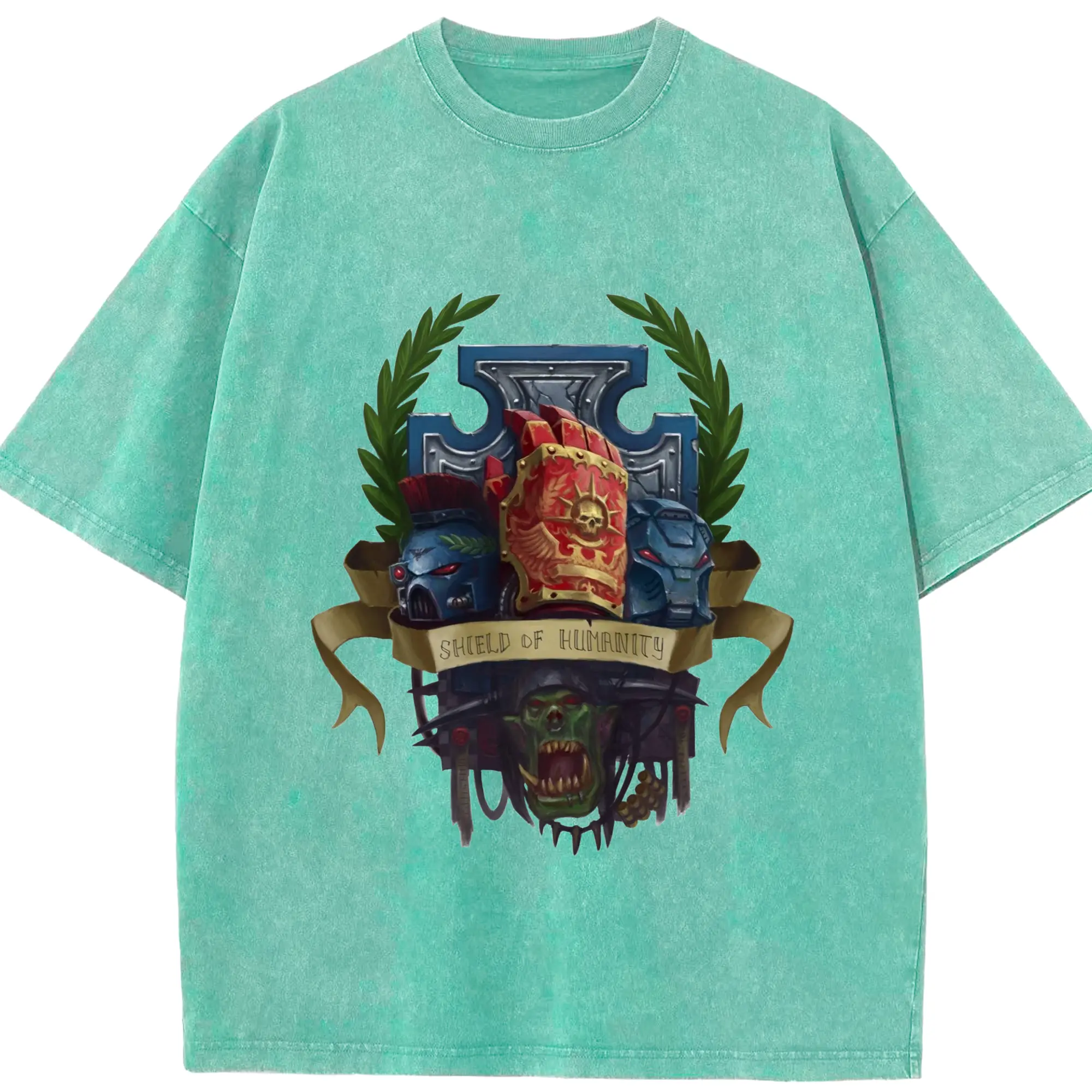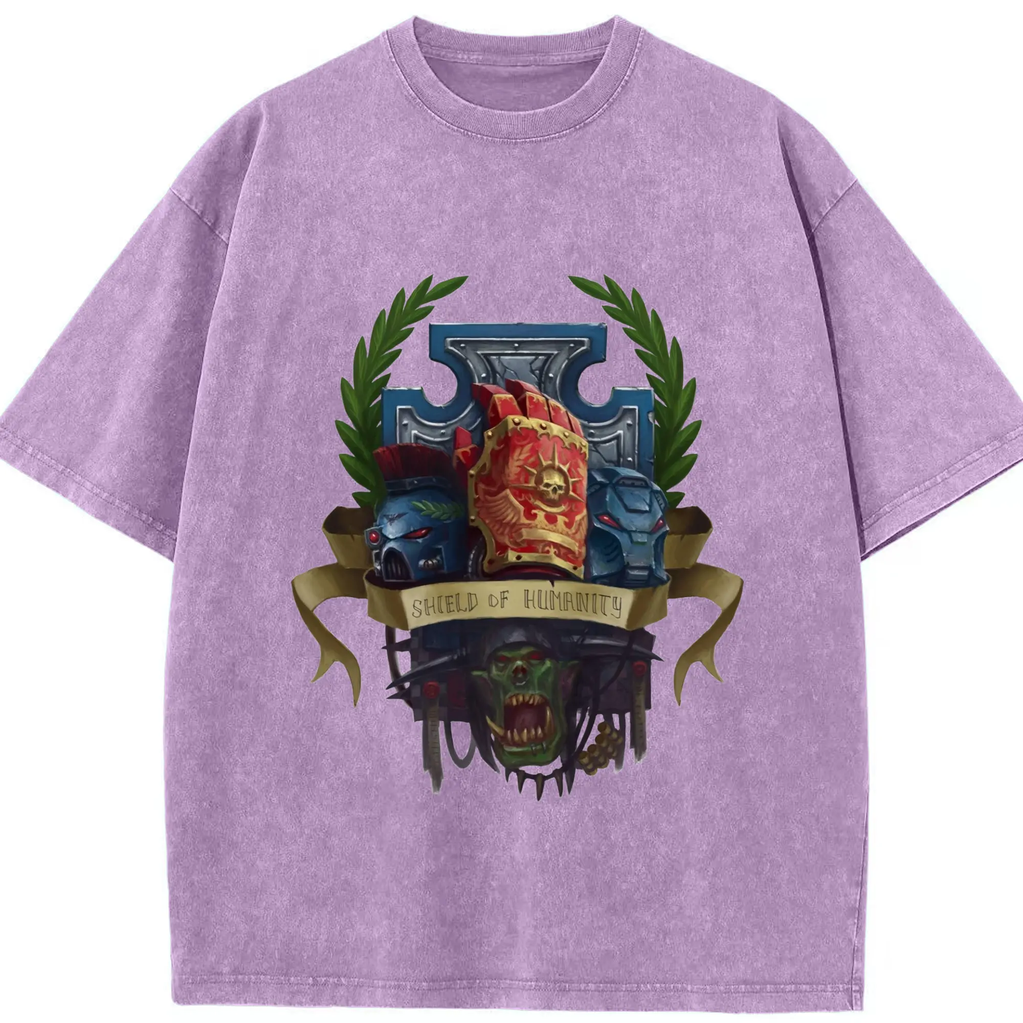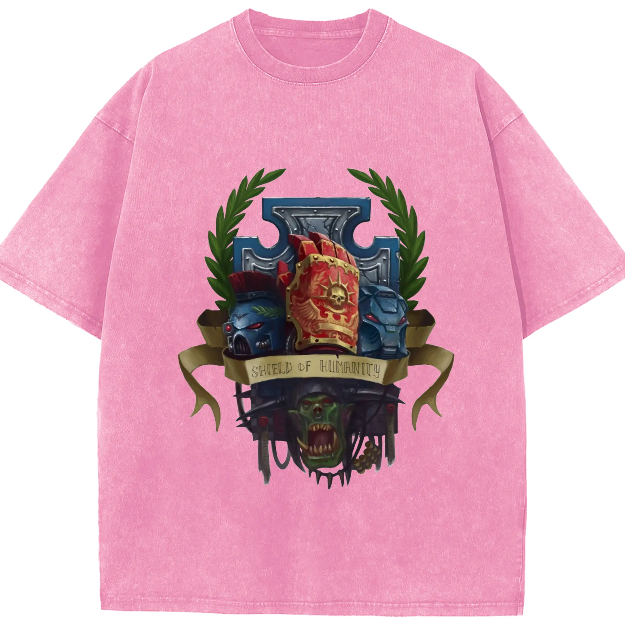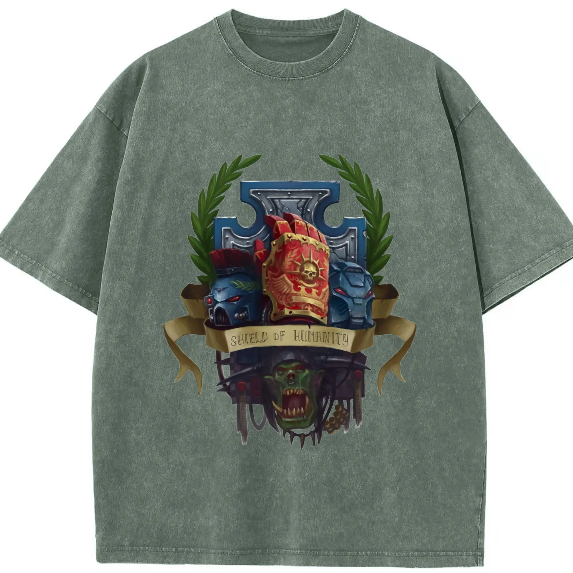 Vintage warhammer 40k collage t-shirt - Washed Vintage Look 230g Cotton Oversized T-Shirt With Front Heat Transfer Print – Soft, Lightweight, Stylish Fit – Comfortable Casual Wear For Sports & Everyday Use