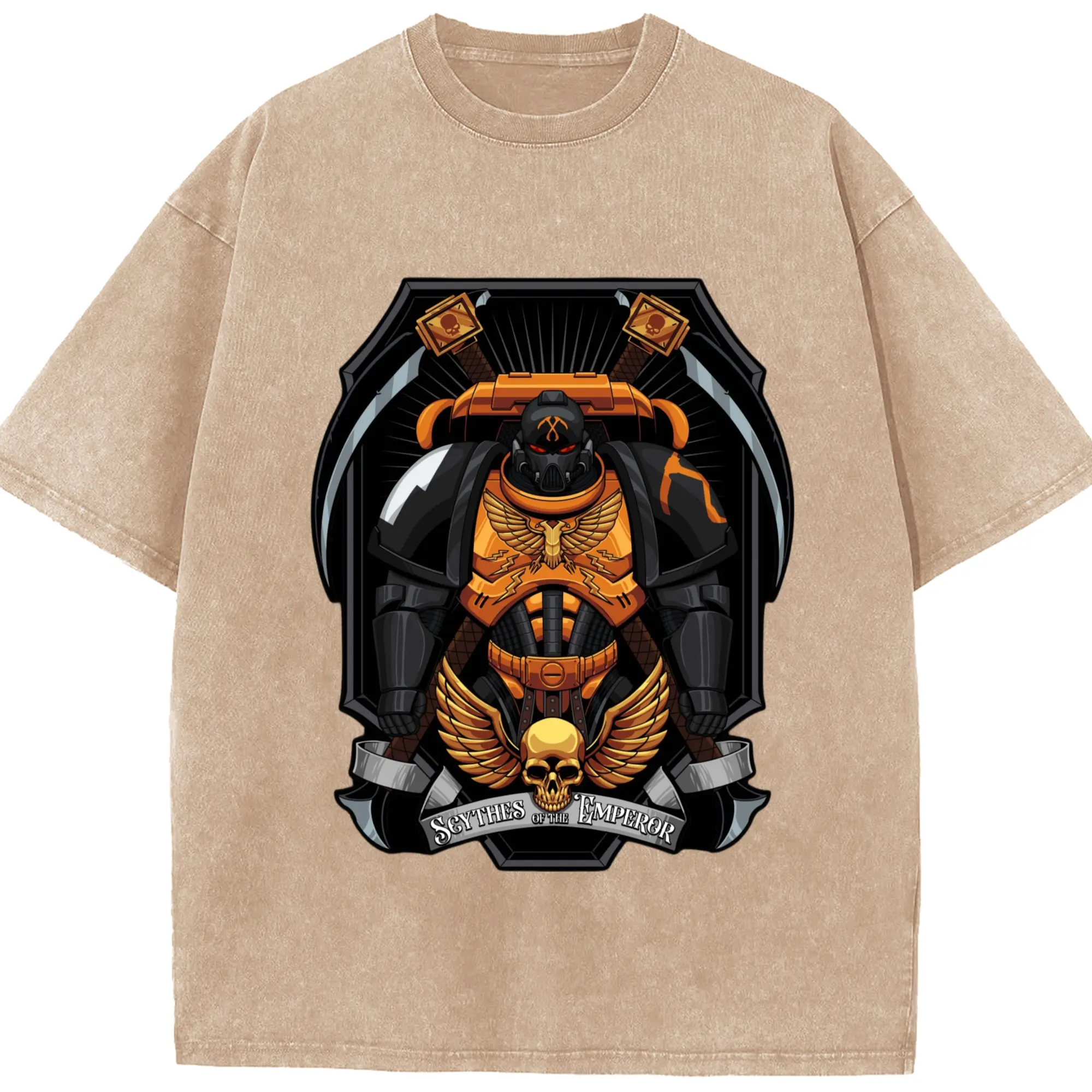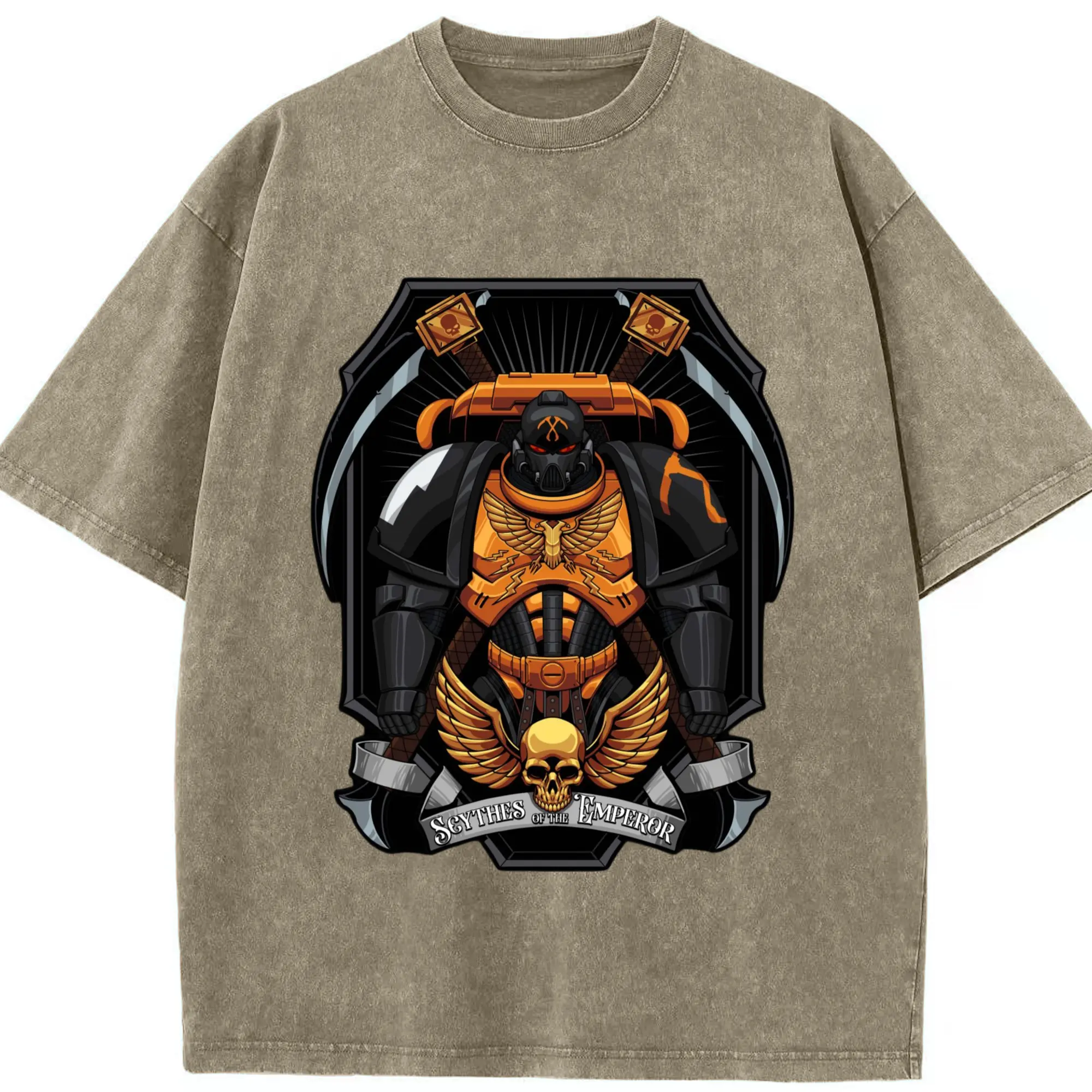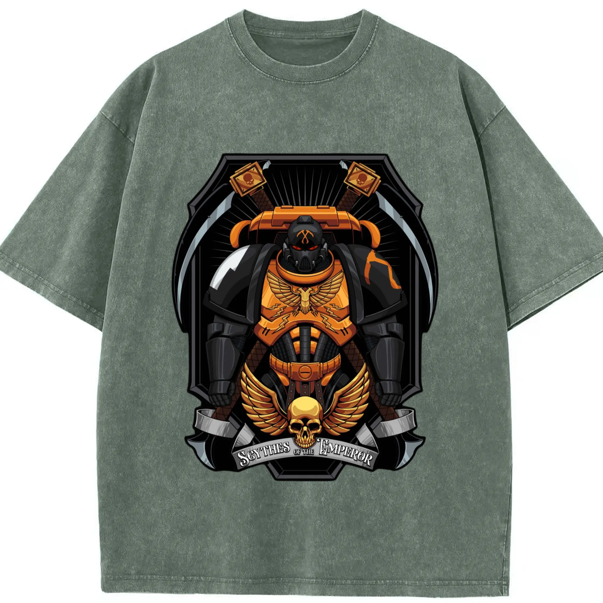 Vintage warhammer 40k scythes of the emperor t-shirt - Washed Vintage Look 230g Cotton Oversized T-Shirt With Front Heat Transfer Print – Soft, Lightweight, Stylish Fit – Comfortable Casual Wear For Sports & Everyday Use