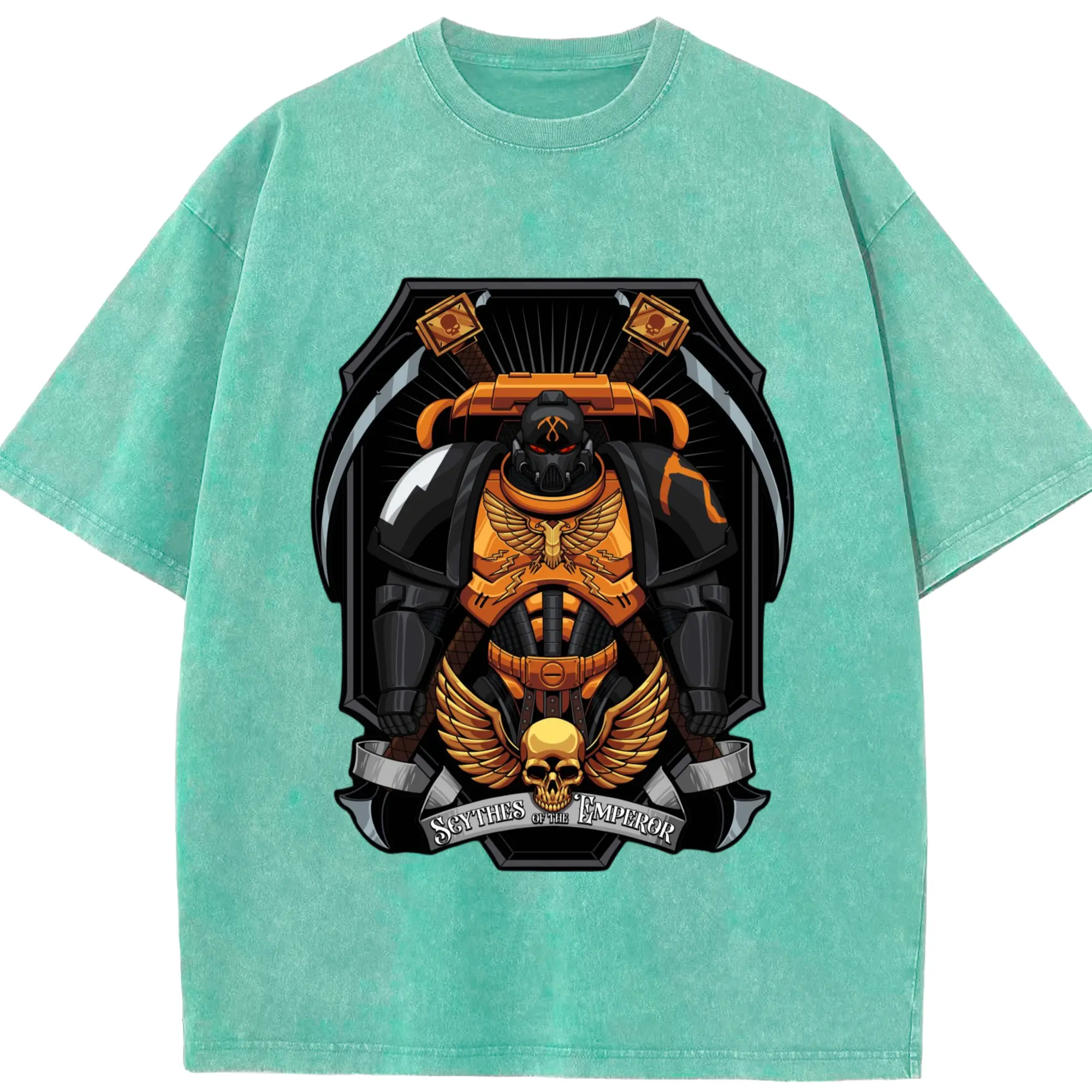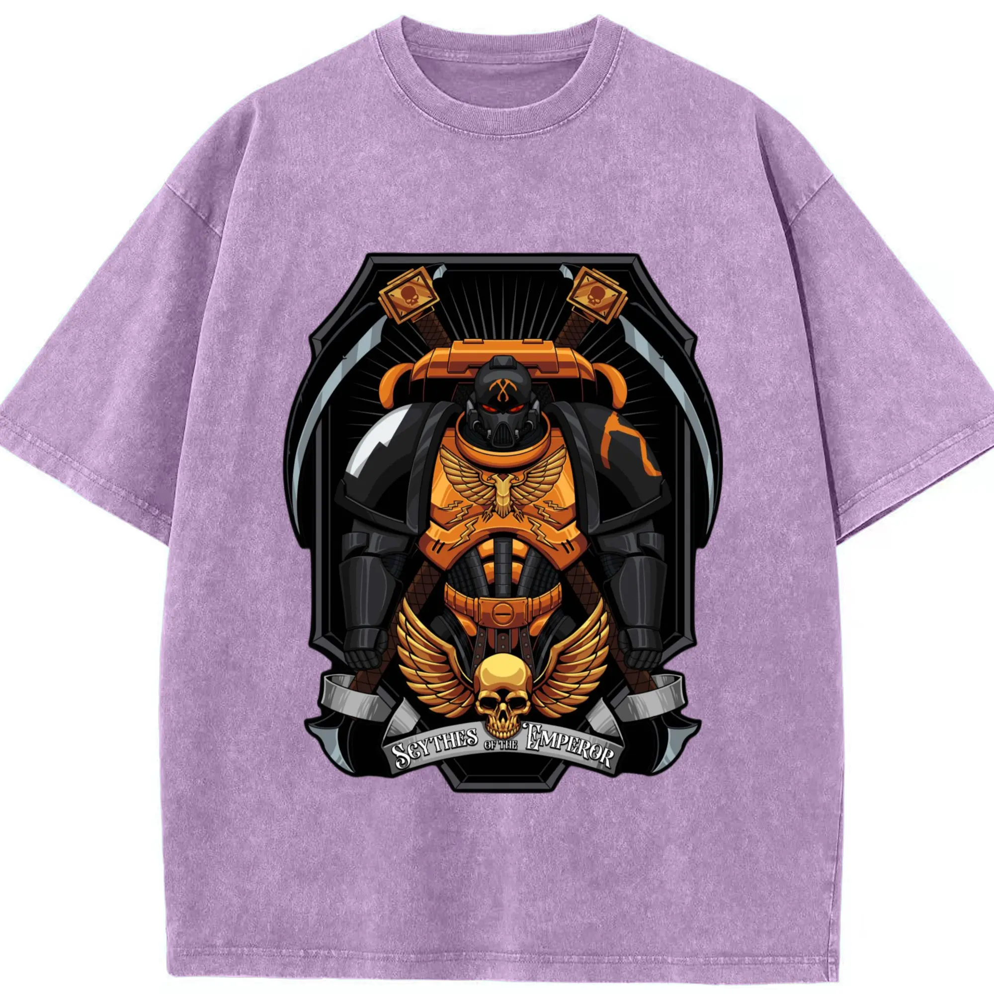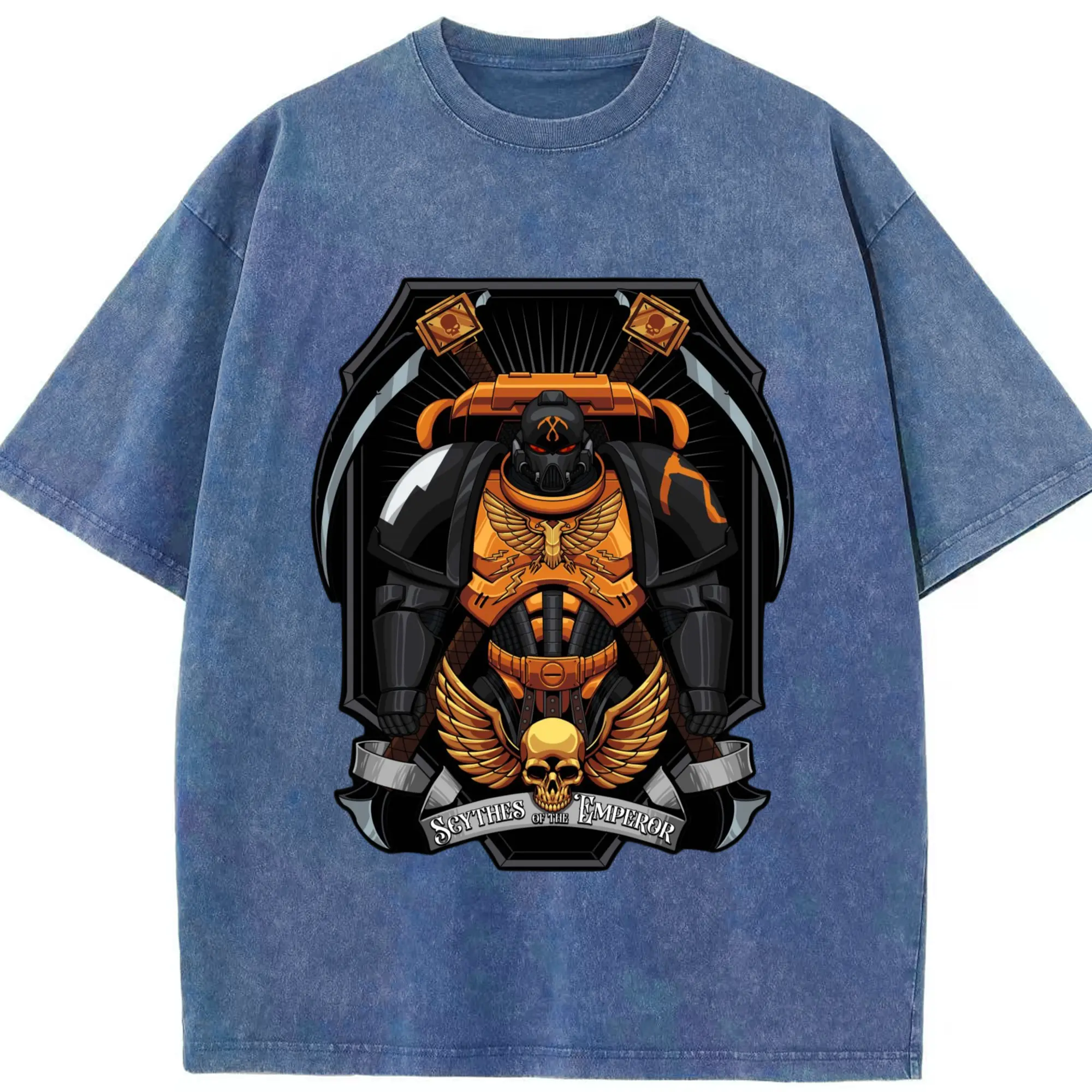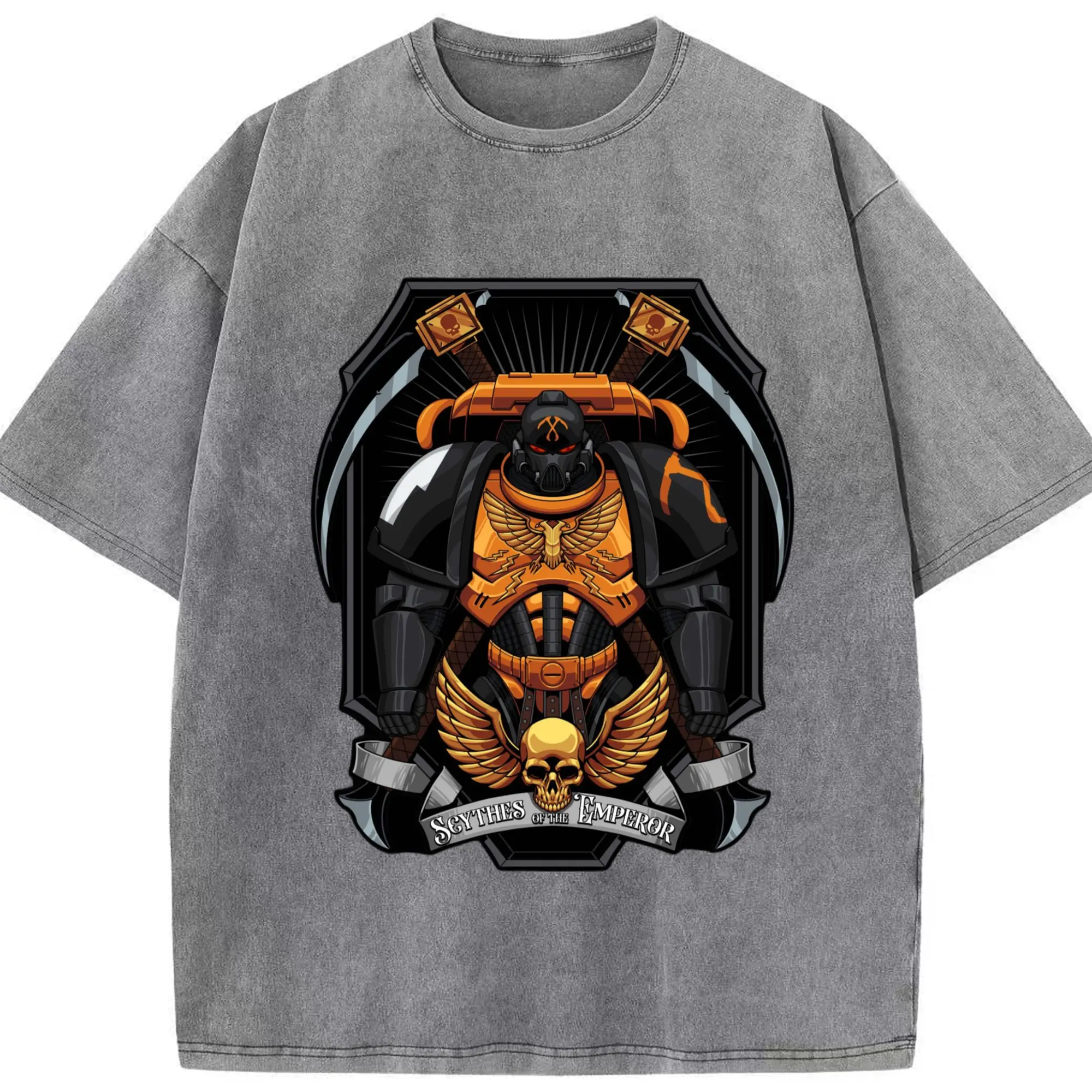 Vintage warhammer 40k scythes of the emperor t-shirt - Washed Vintage Look 230g Cotton Oversized T-Shirt With Front Heat Transfer Print – Soft, Lightweight, Stylish Fit – Comfortable Casual Wear For Sports & Everyday Use
