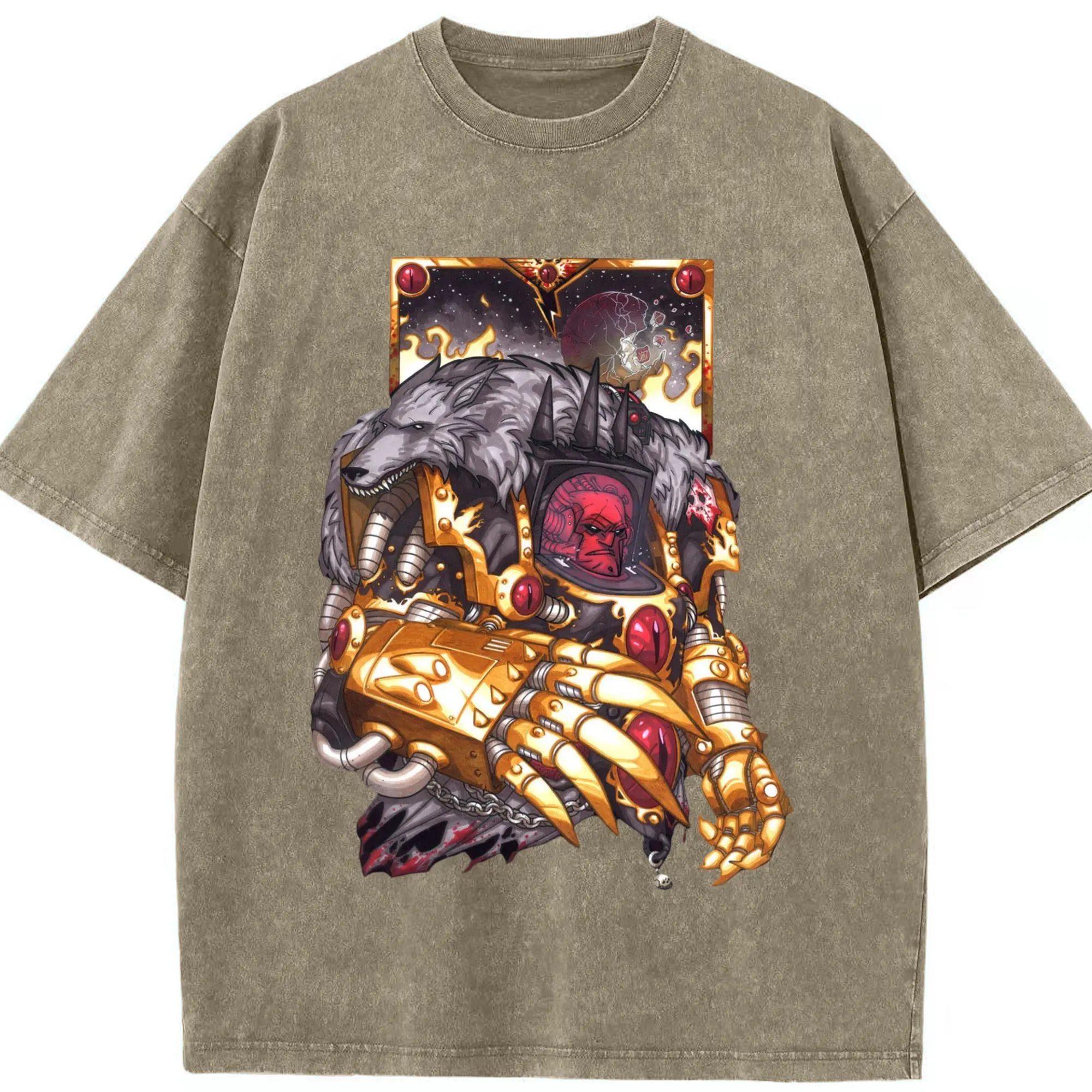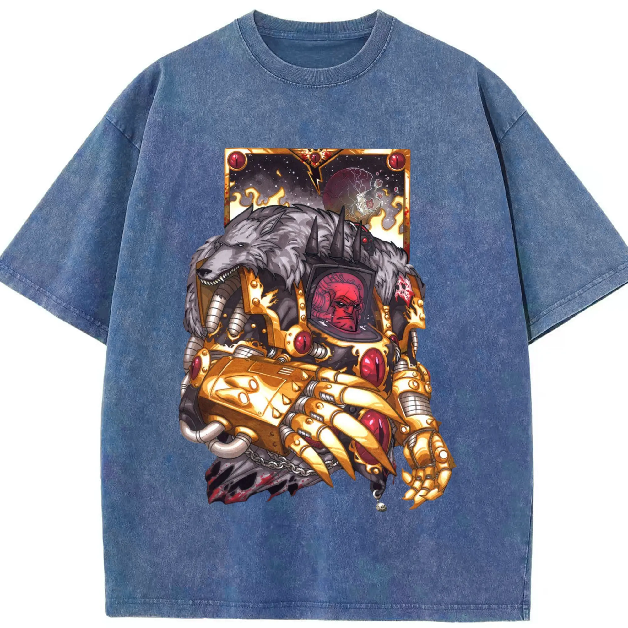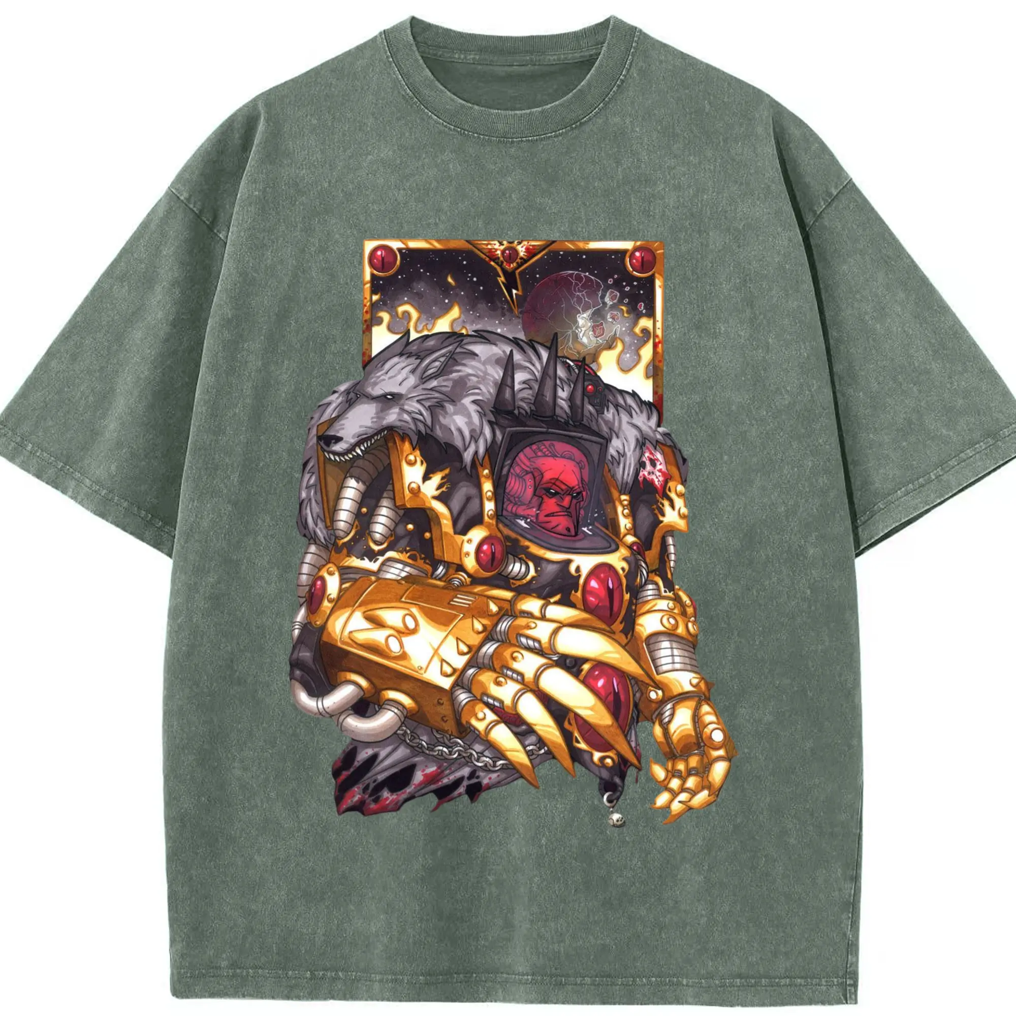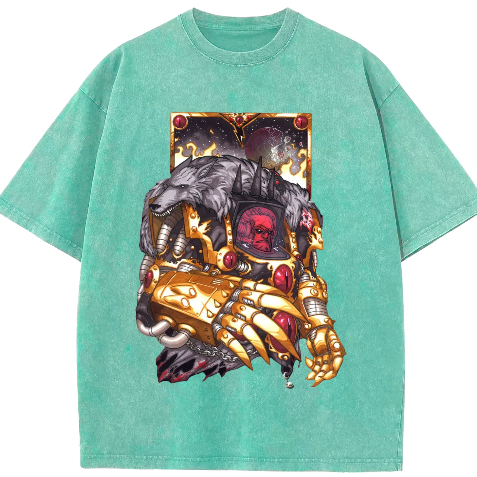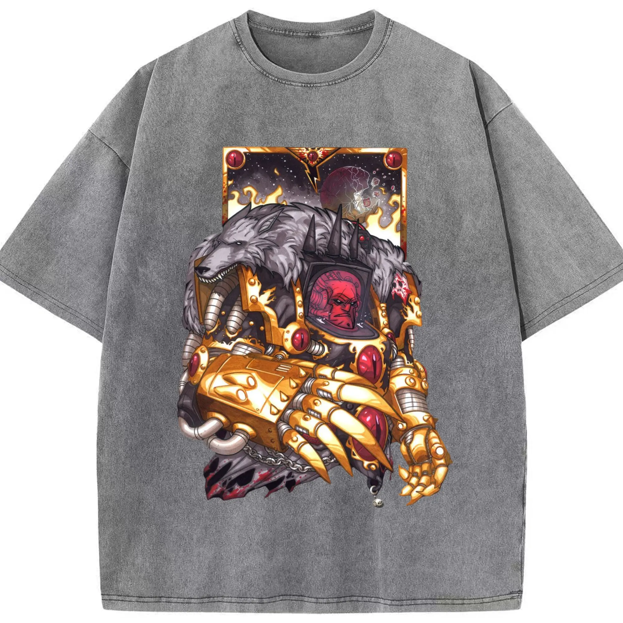 Vintage warhammer 40k Space Wolves t-shirt - Washed Vintage Look 230g Cotton Oversized T-Shirt With Front Heat Transfer Print – Soft, Lightweight, Stylish Fit – Comfortable Casual Wear For Sports & Everyday Use