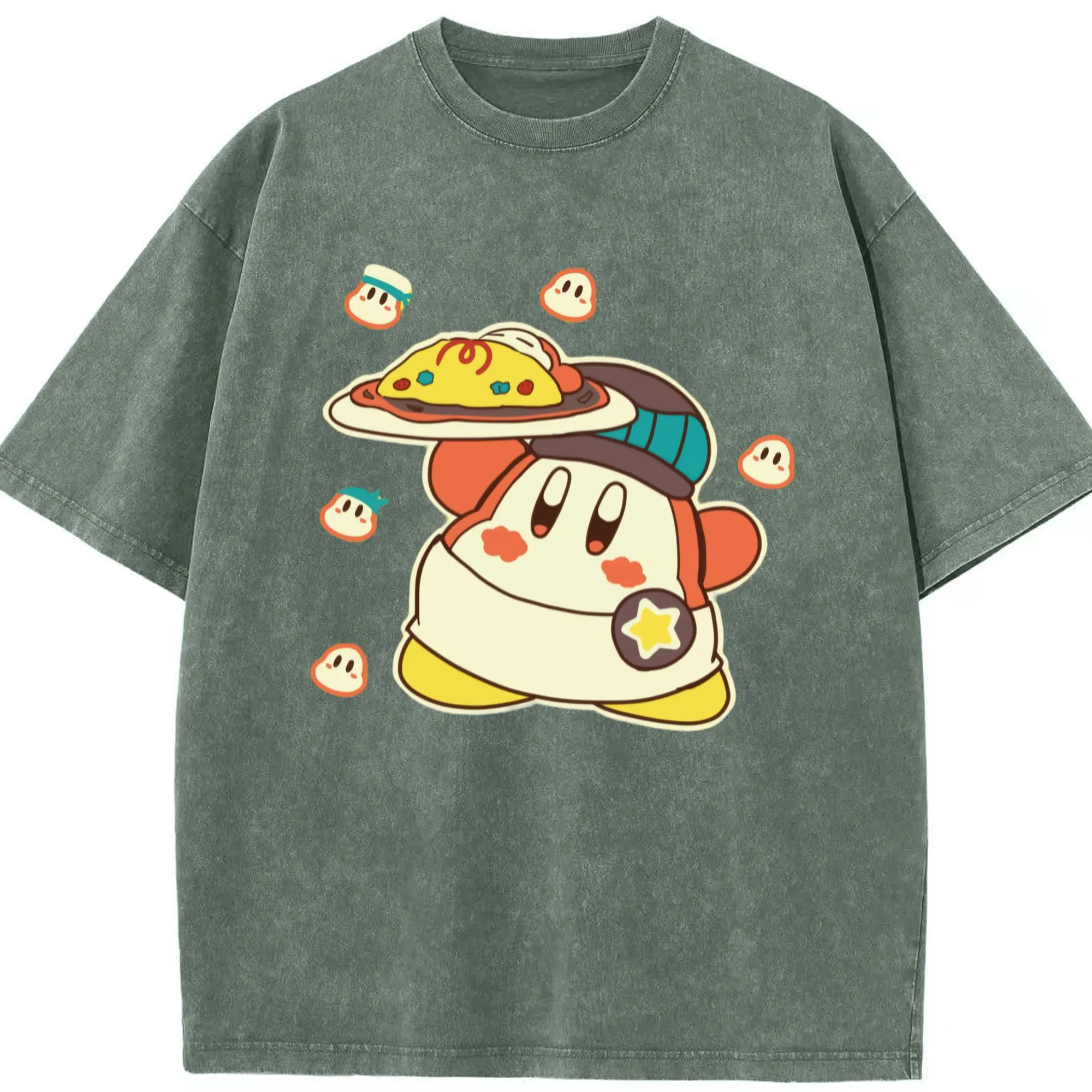 Waddle Dee collage tee - Washed Vintage Look 230g Cotton Oversized T-Shirt With Front Heat Transfer Print – Soft, Lightweight, Stylish Fit – Comfortable Casual Wear For Sports & Everyday Use