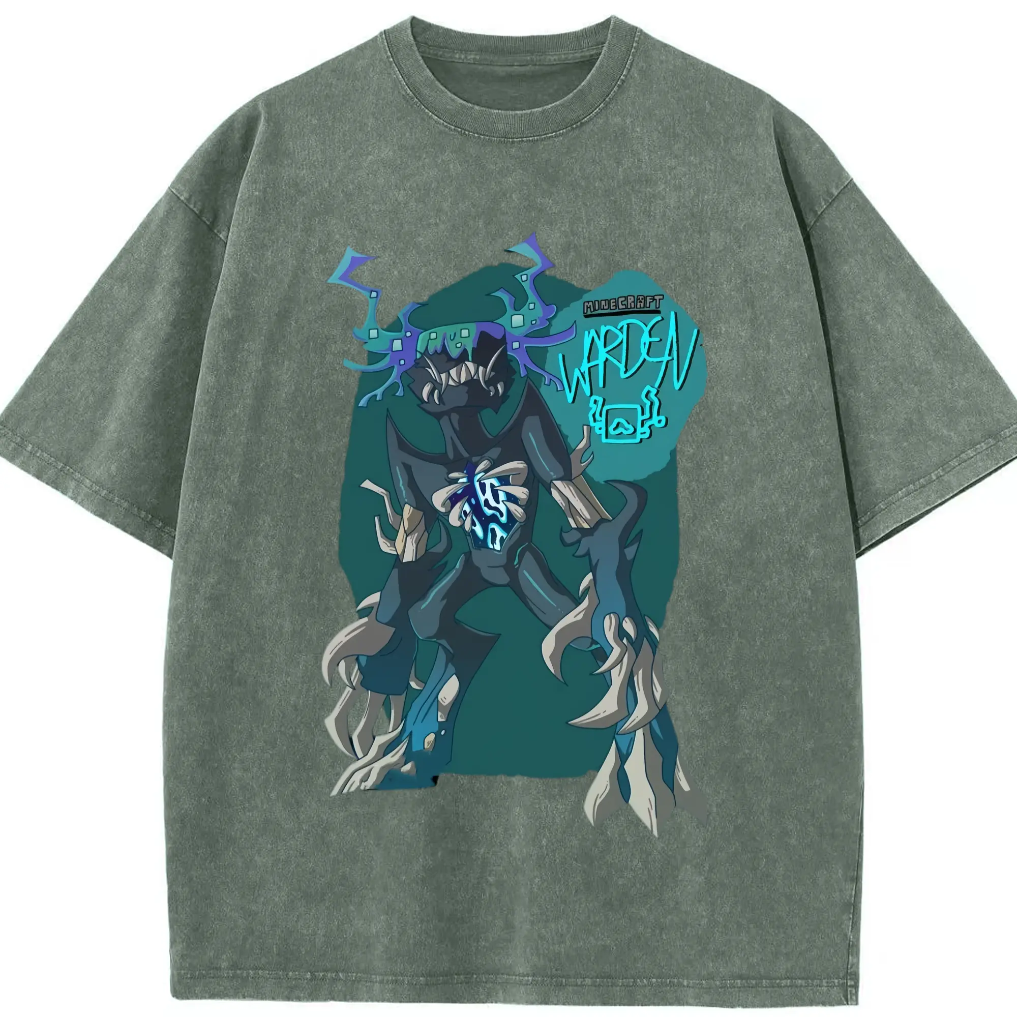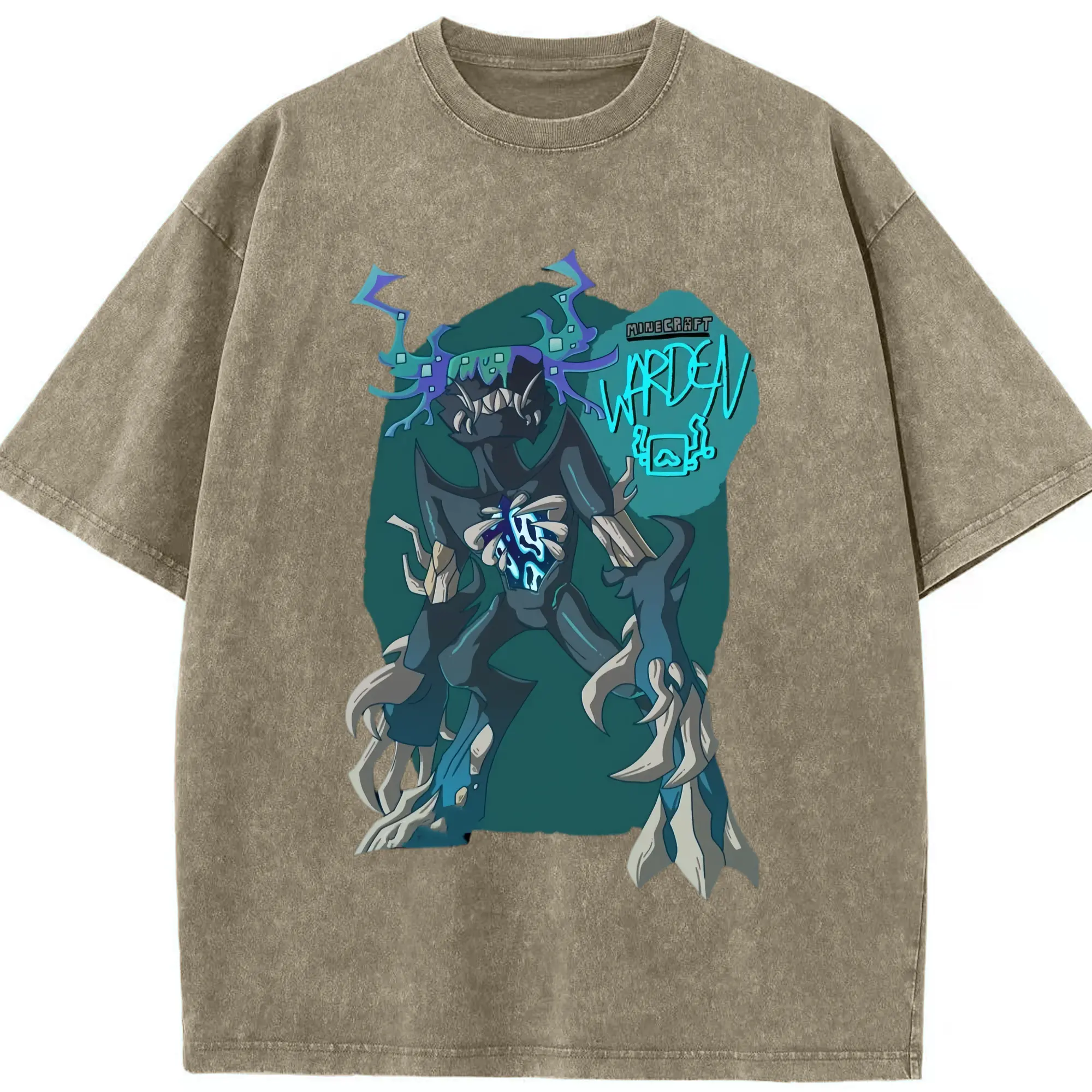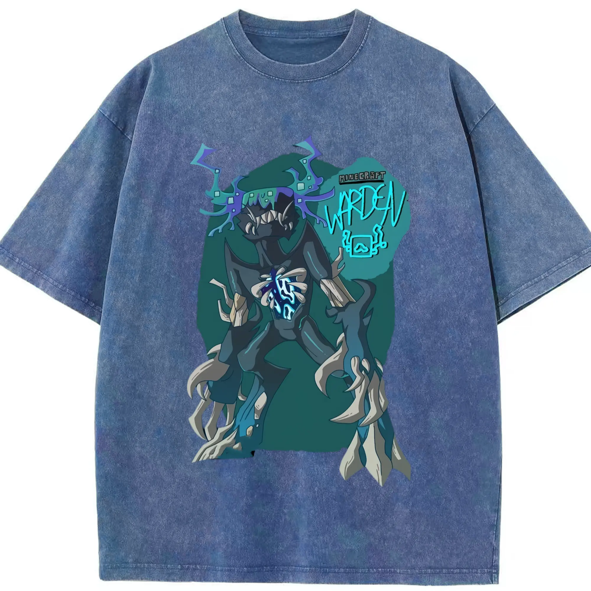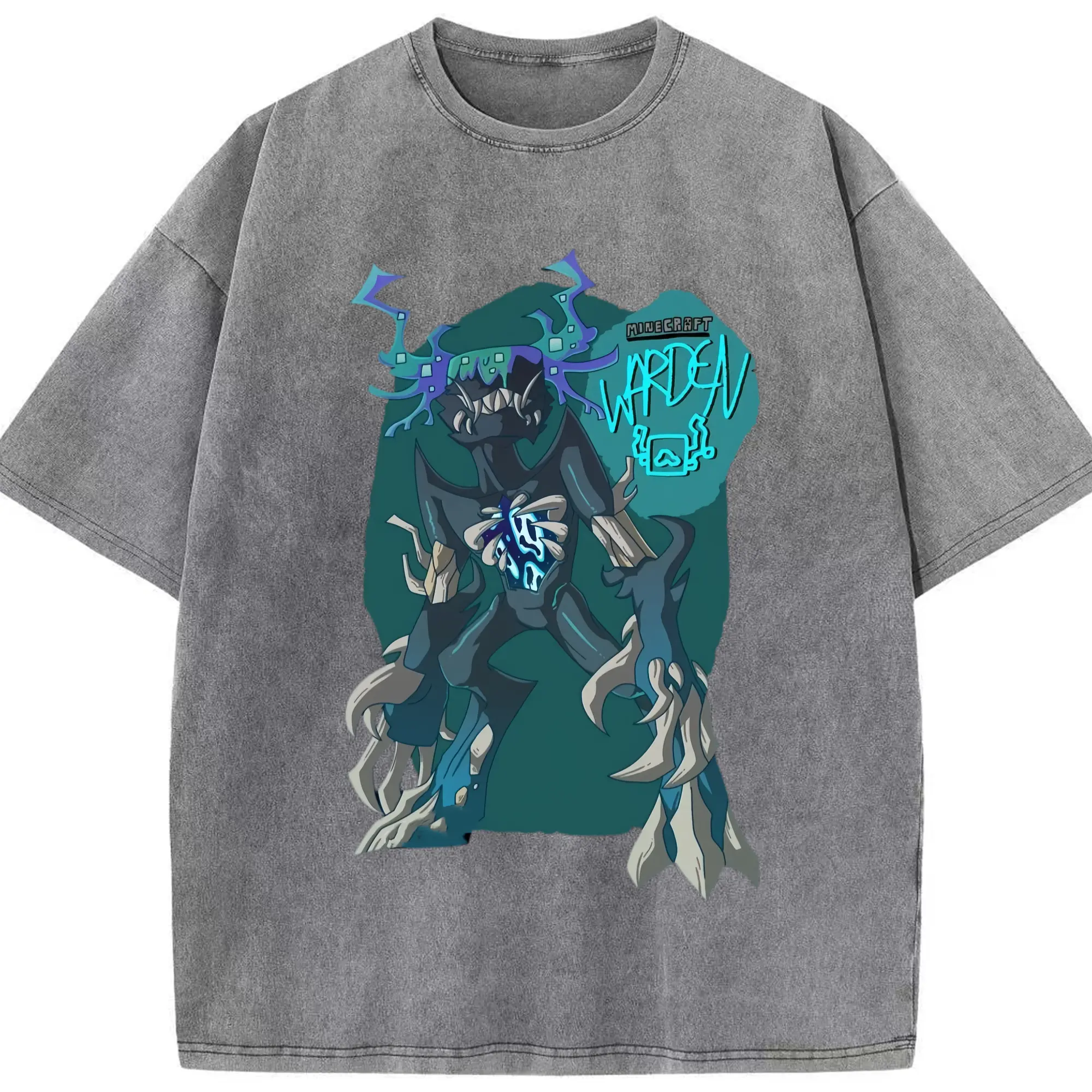 Warden Minecraft art Tee - Washed Vintage Look 230g Cotton Oversized T-Shirt With Front Heat Transfer Print – Soft, Lightweight, Stylish Fit – Comfortable Casual Wear For Sports & Everyday Use