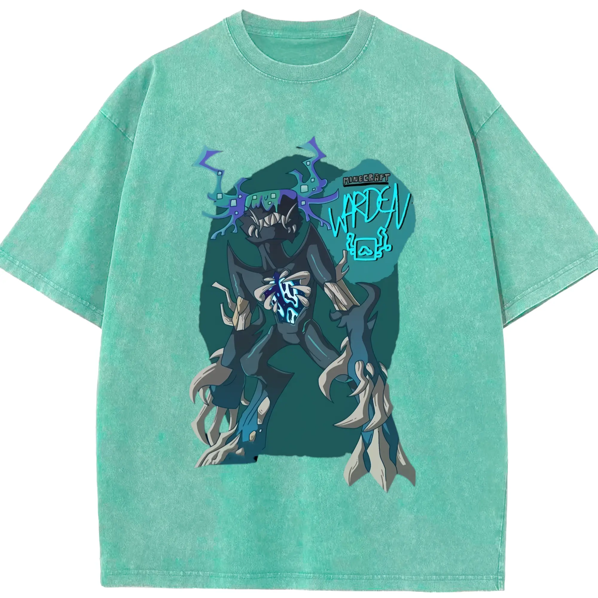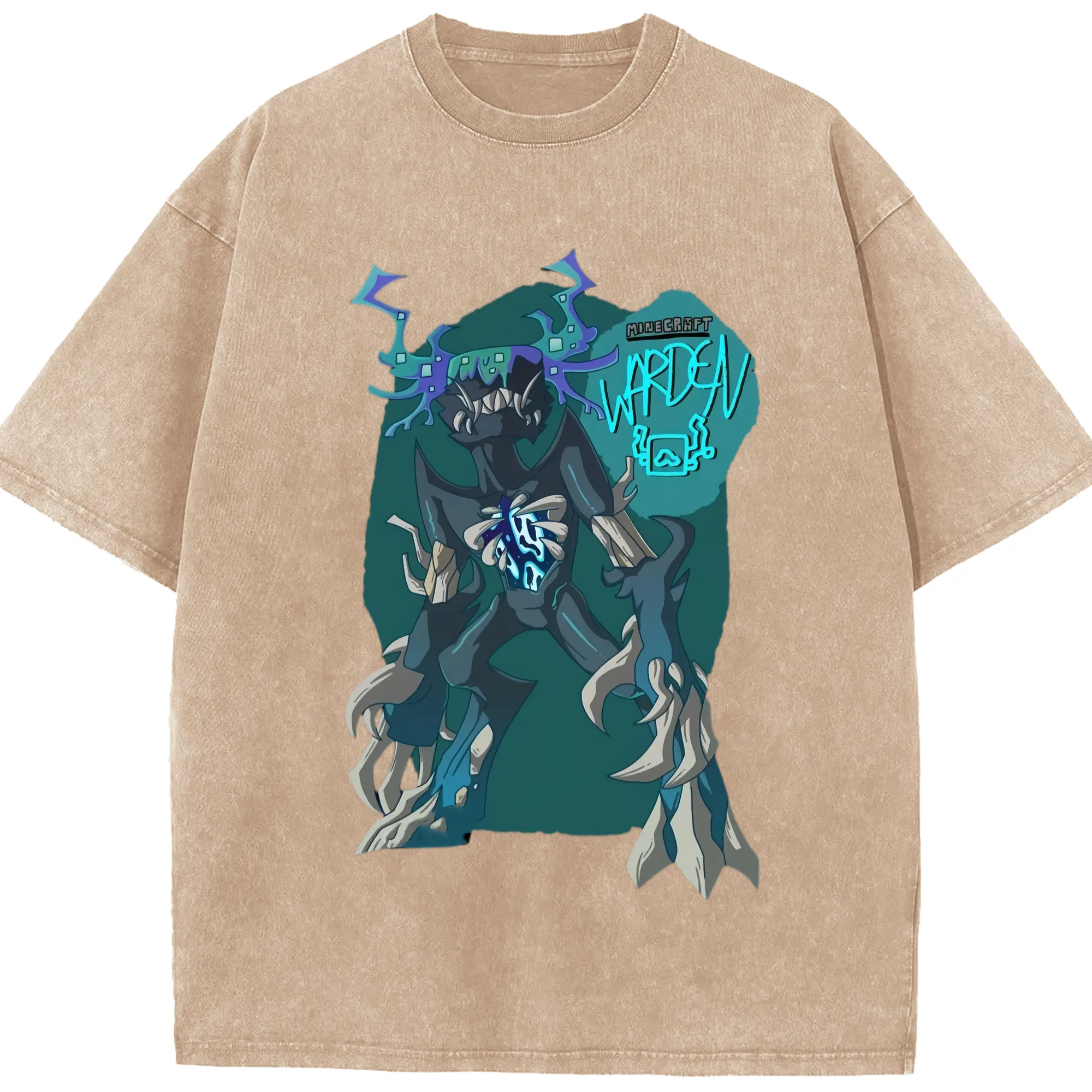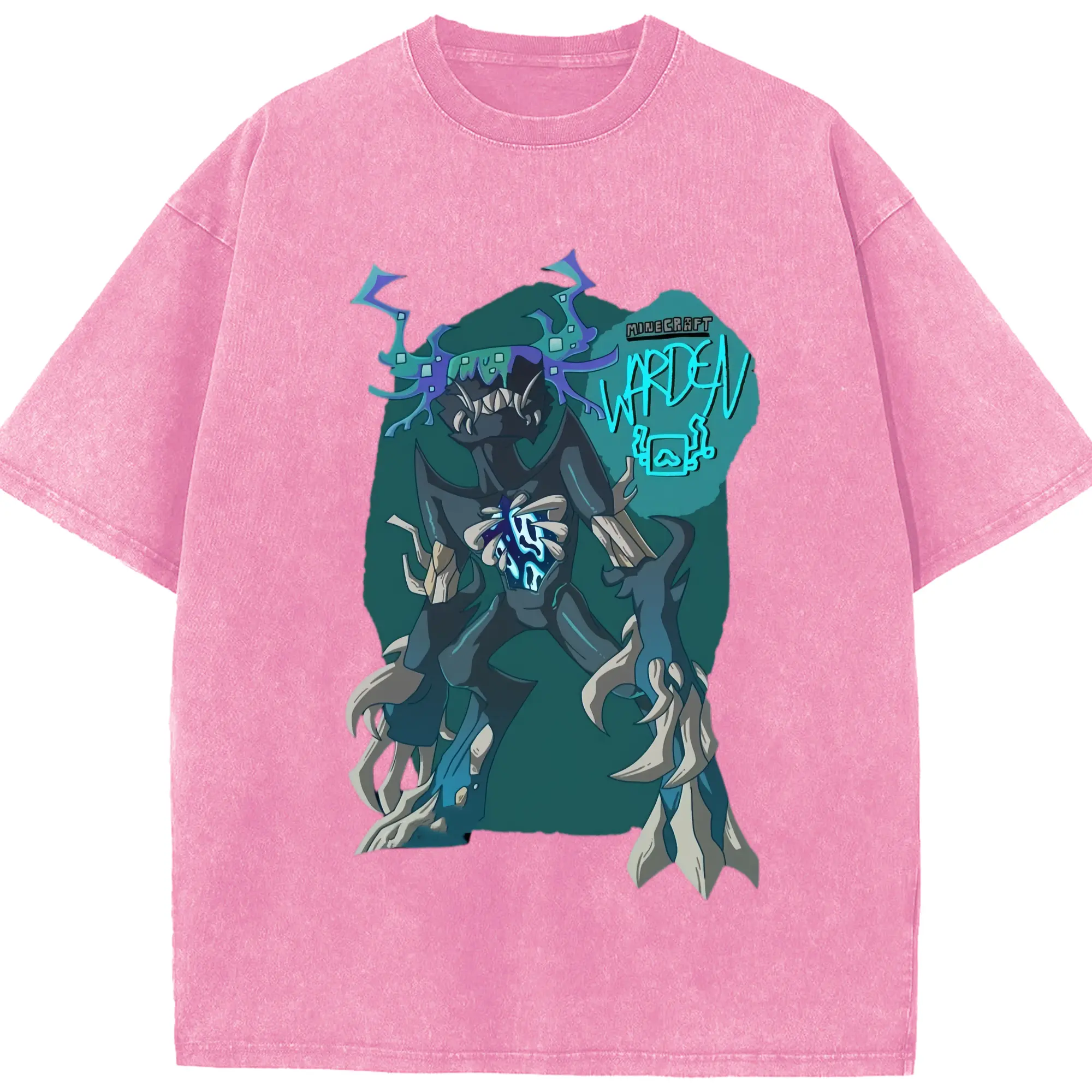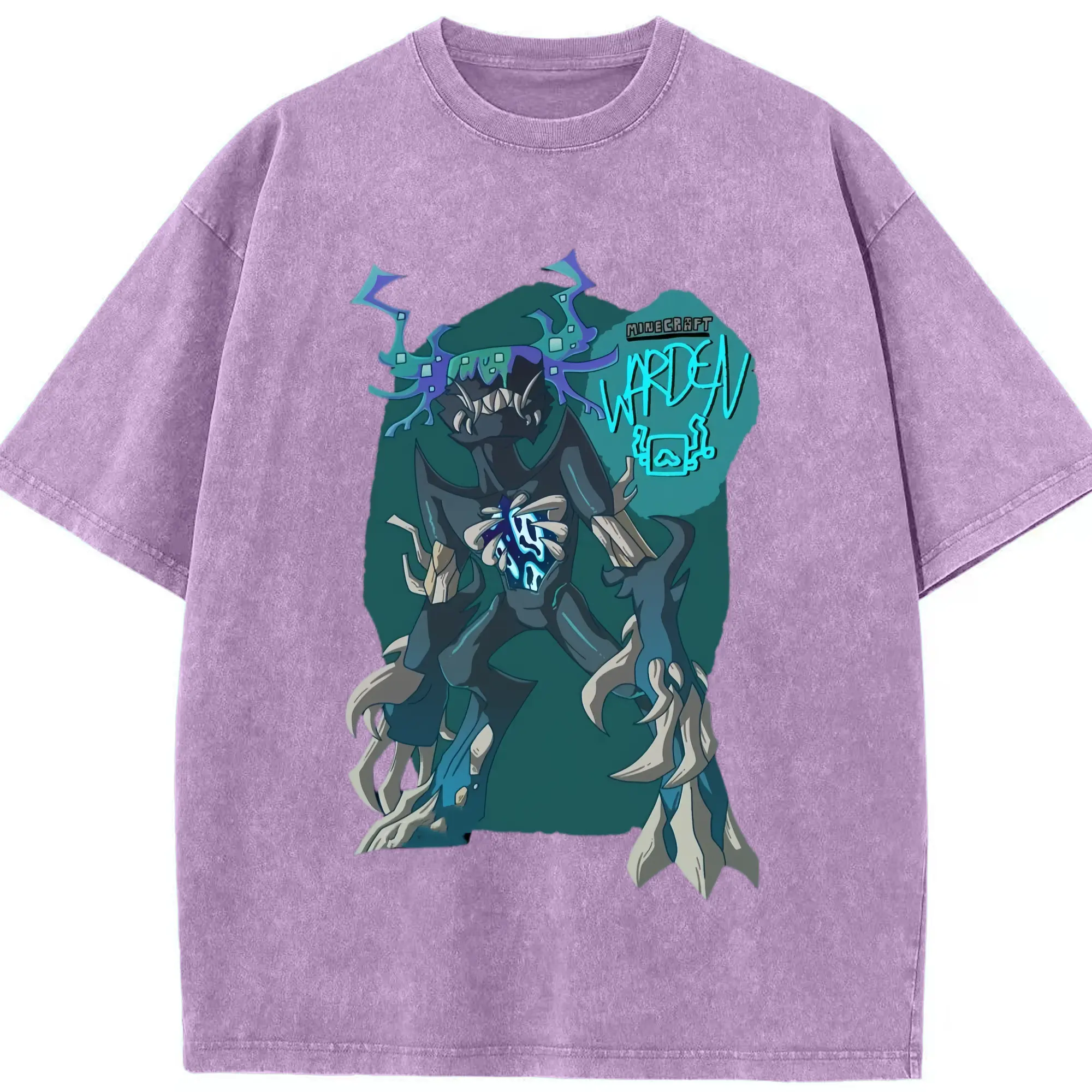 Warden Minecraft art Tee - Washed Vintage Look 230g Cotton Oversized T-Shirt With Front Heat Transfer Print – Soft, Lightweight, Stylish Fit – Comfortable Casual Wear For Sports & Everyday Use