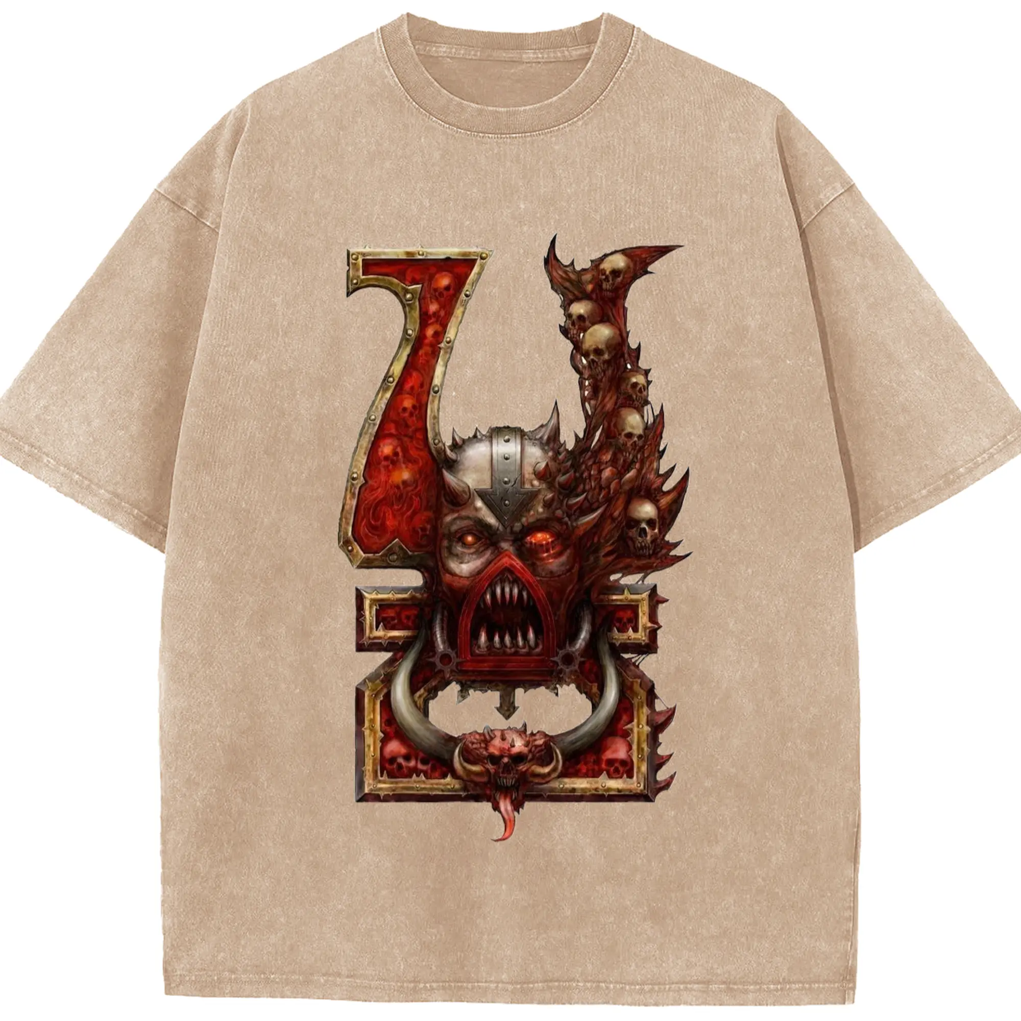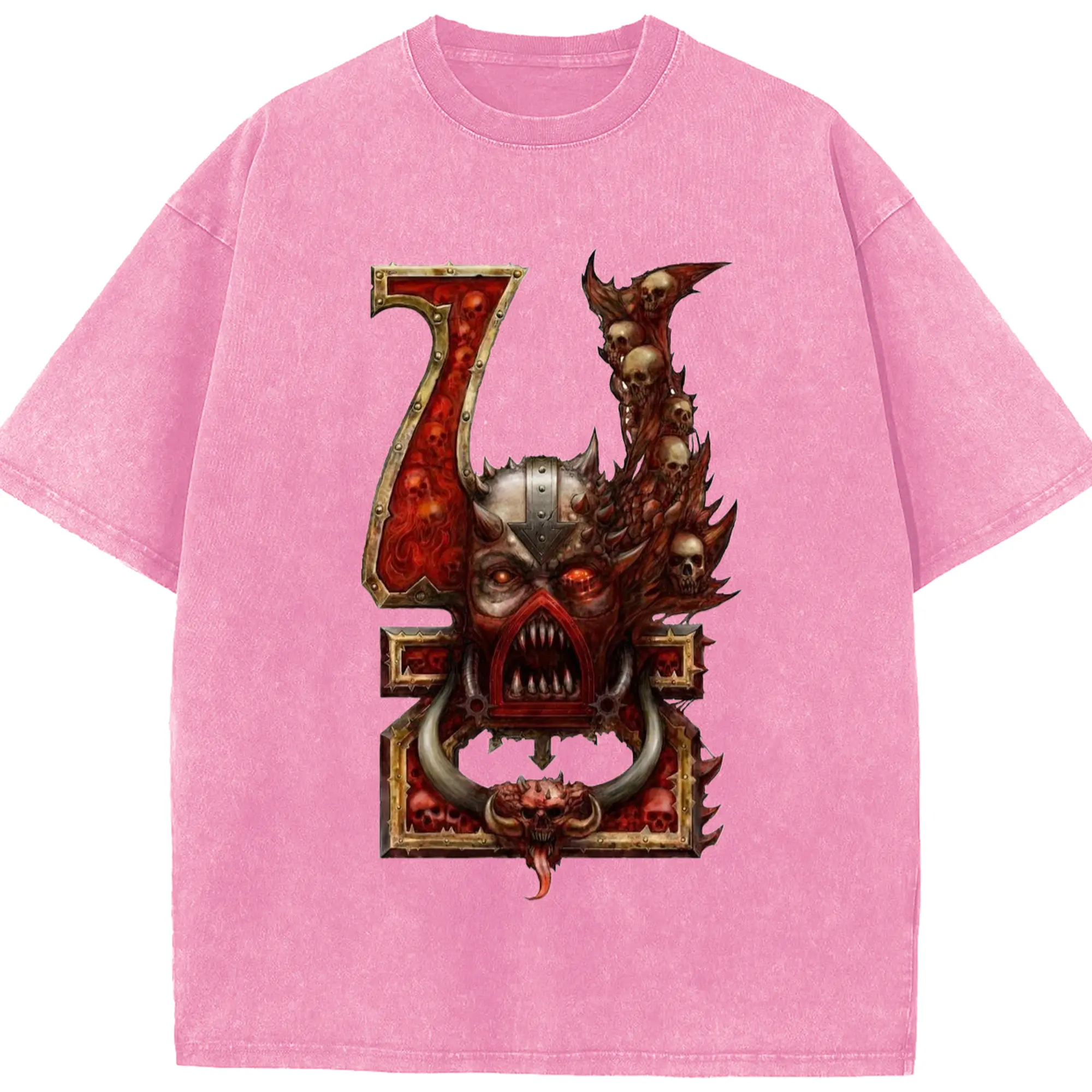 Warhammer 40k chaos armies t-shirt - Washed Vintage Look 230g Cotton Oversized T-Shirt With Front Heat Transfer Print – Soft, Lightweight, Stylish Fit – Comfortable Casual Wear For Sports & Everyday Use