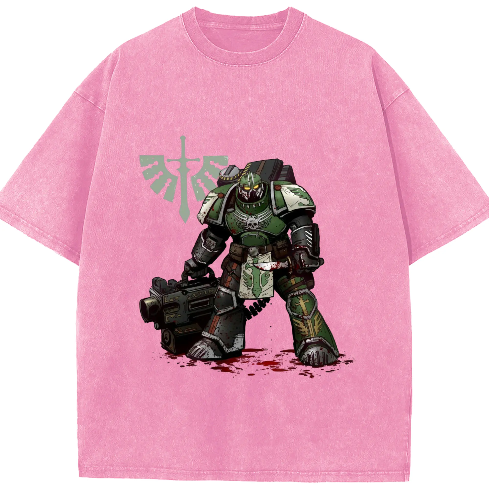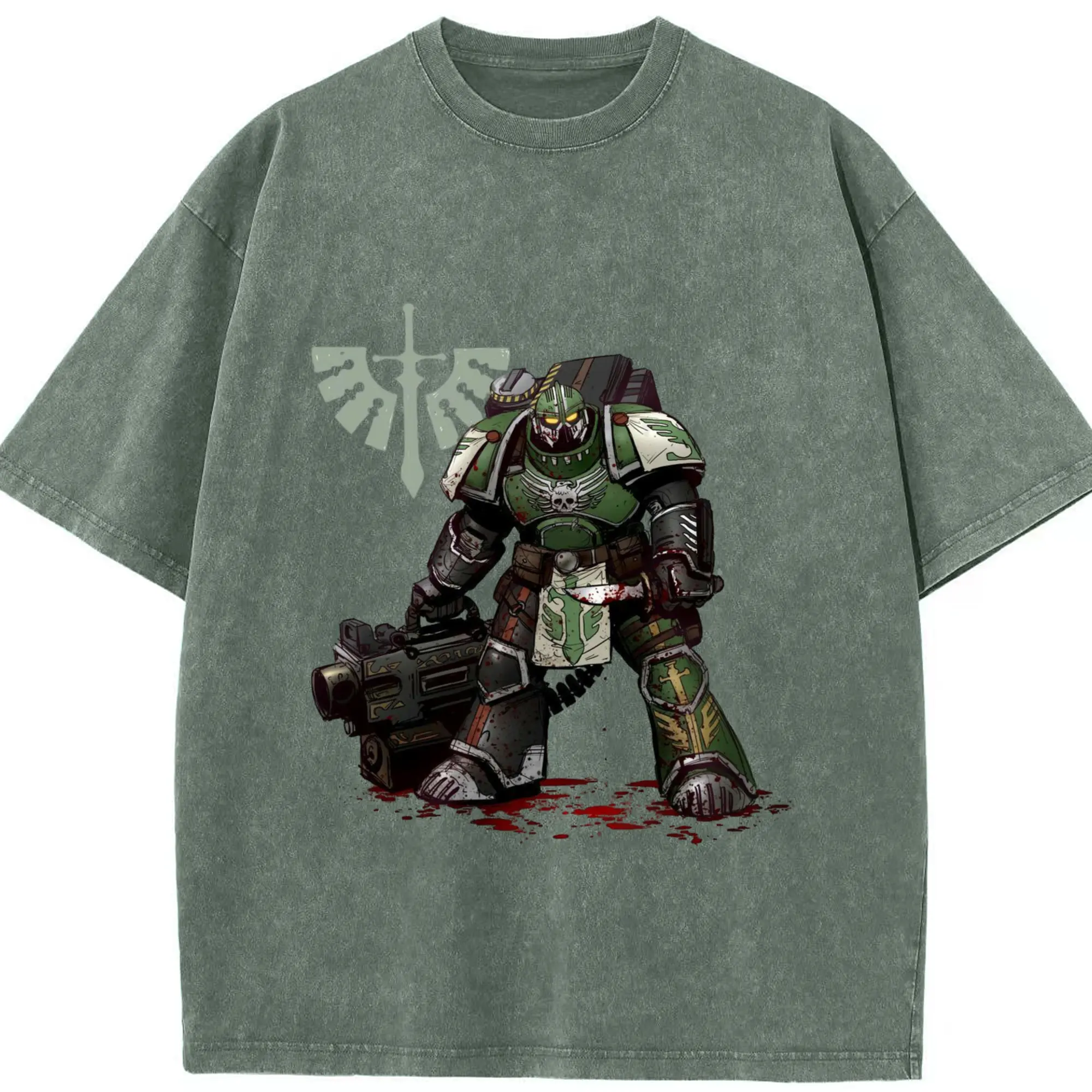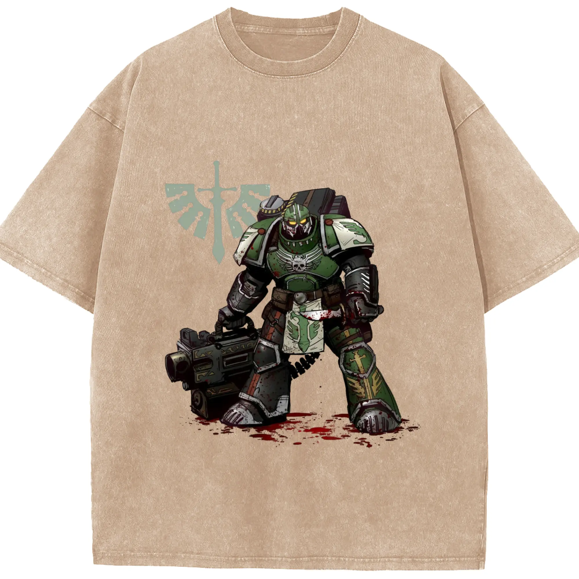 Warhammer 40k dark angels tee - Washed Vintage Look 230g Cotton Oversized T-Shirt With Front Heat Transfer Print – Soft, Lightweight, Stylish Fit – Comfortable Casual Wear For Sports & Everyday Use