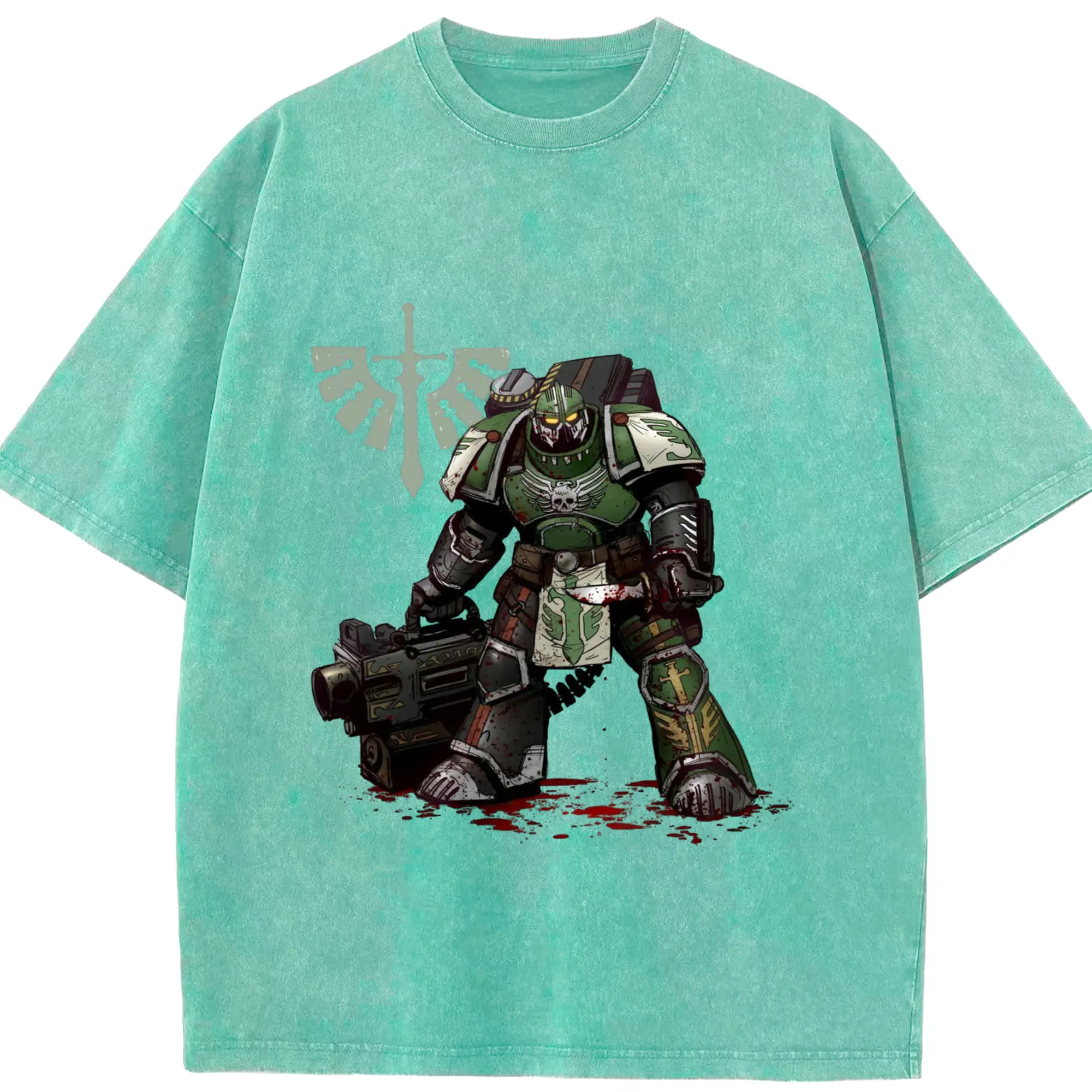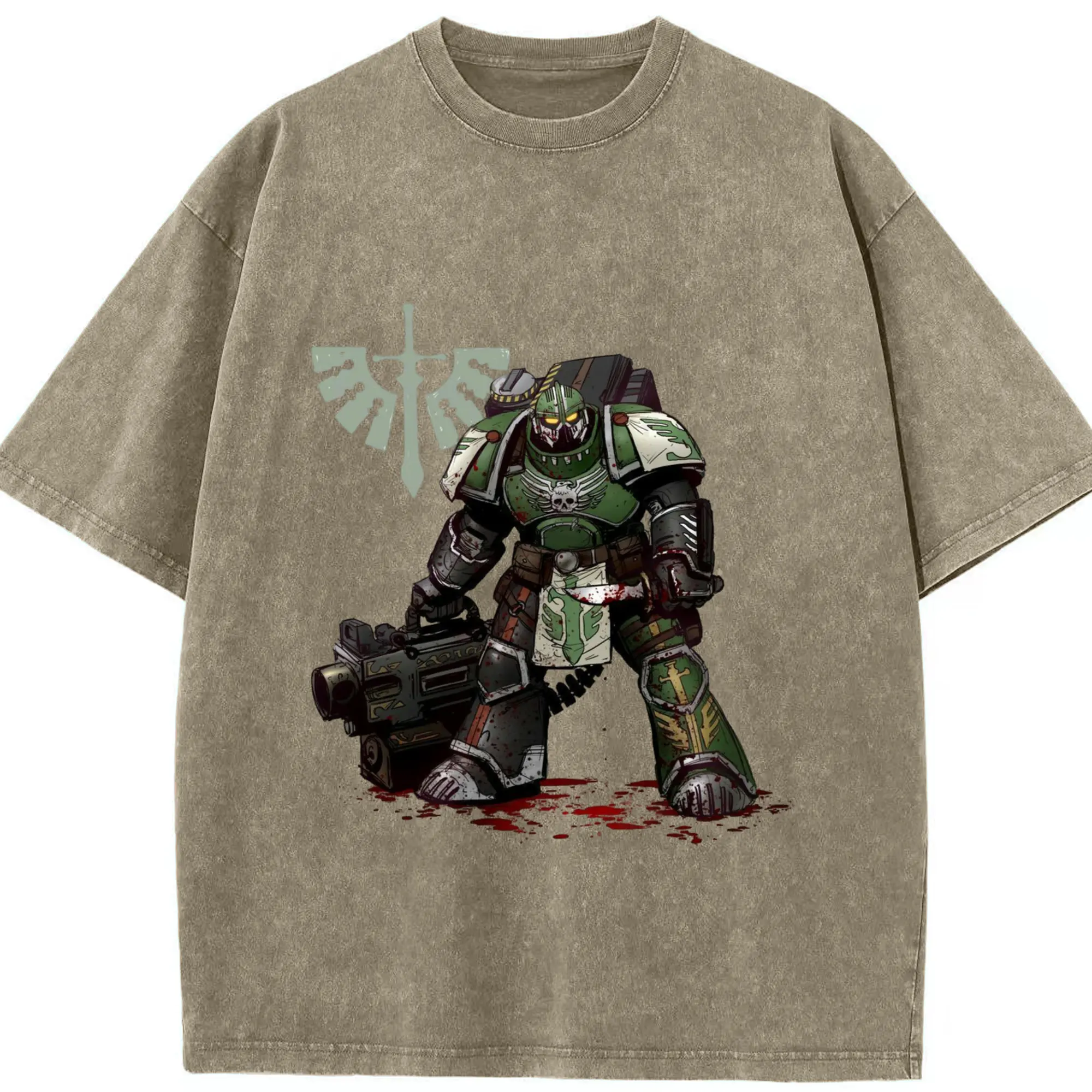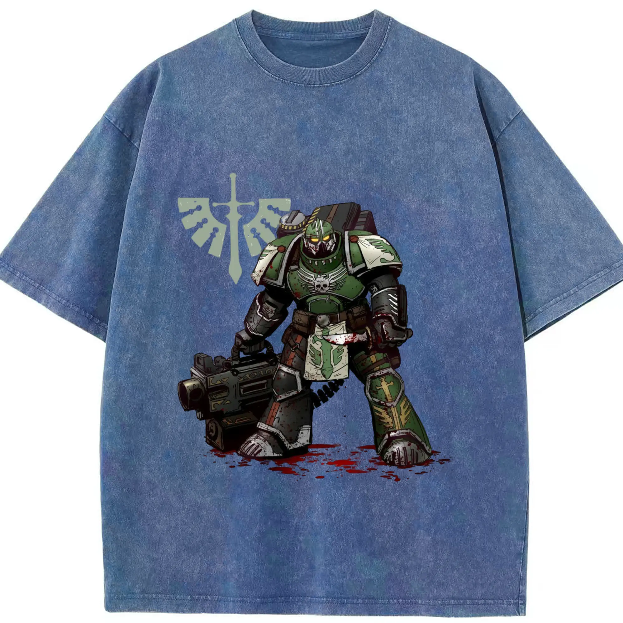 Warhammer 40k dark angels tee - Washed Vintage Look 230g Cotton Oversized T-Shirt With Front Heat Transfer Print – Soft, Lightweight, Stylish Fit – Comfortable Casual Wear For Sports & Everyday Use