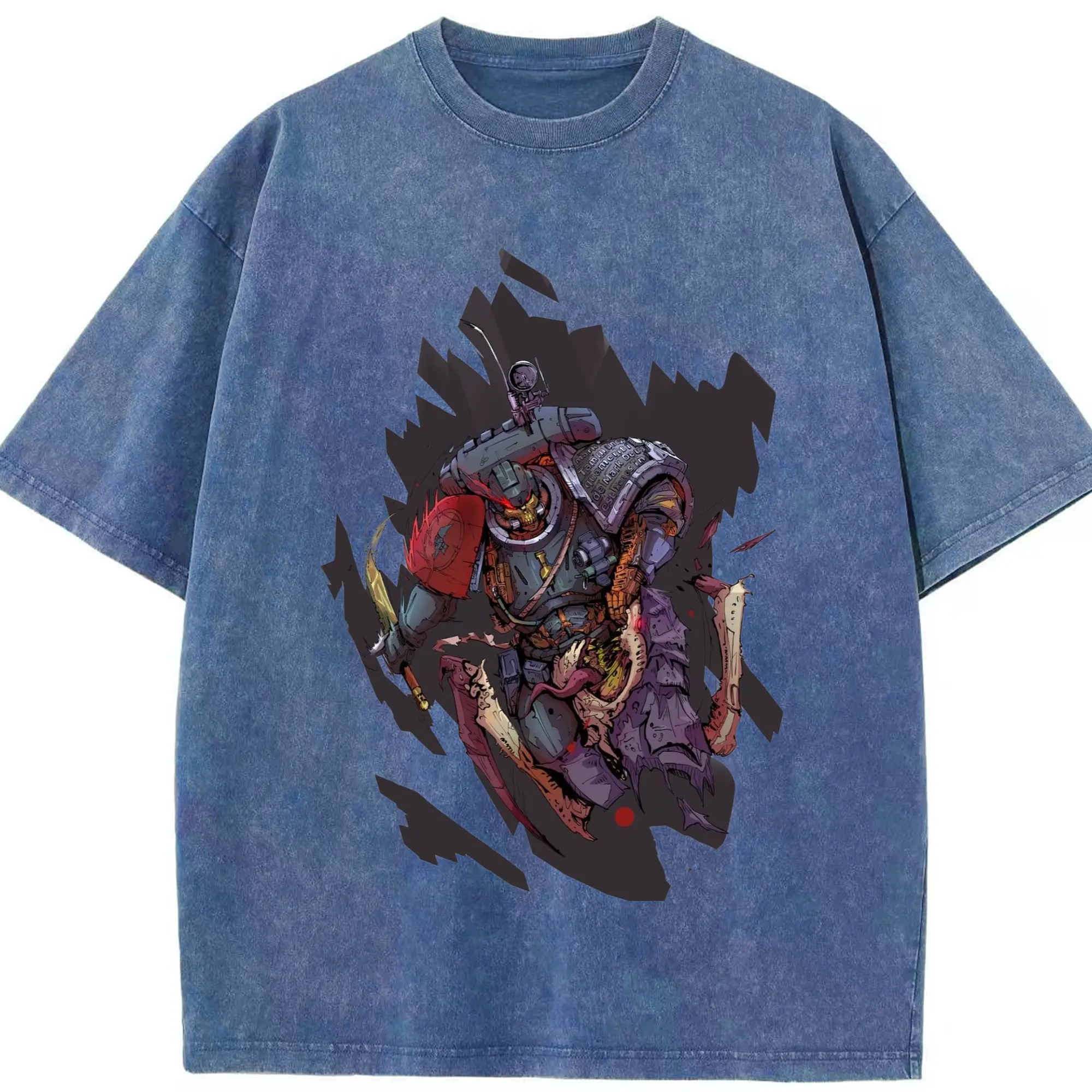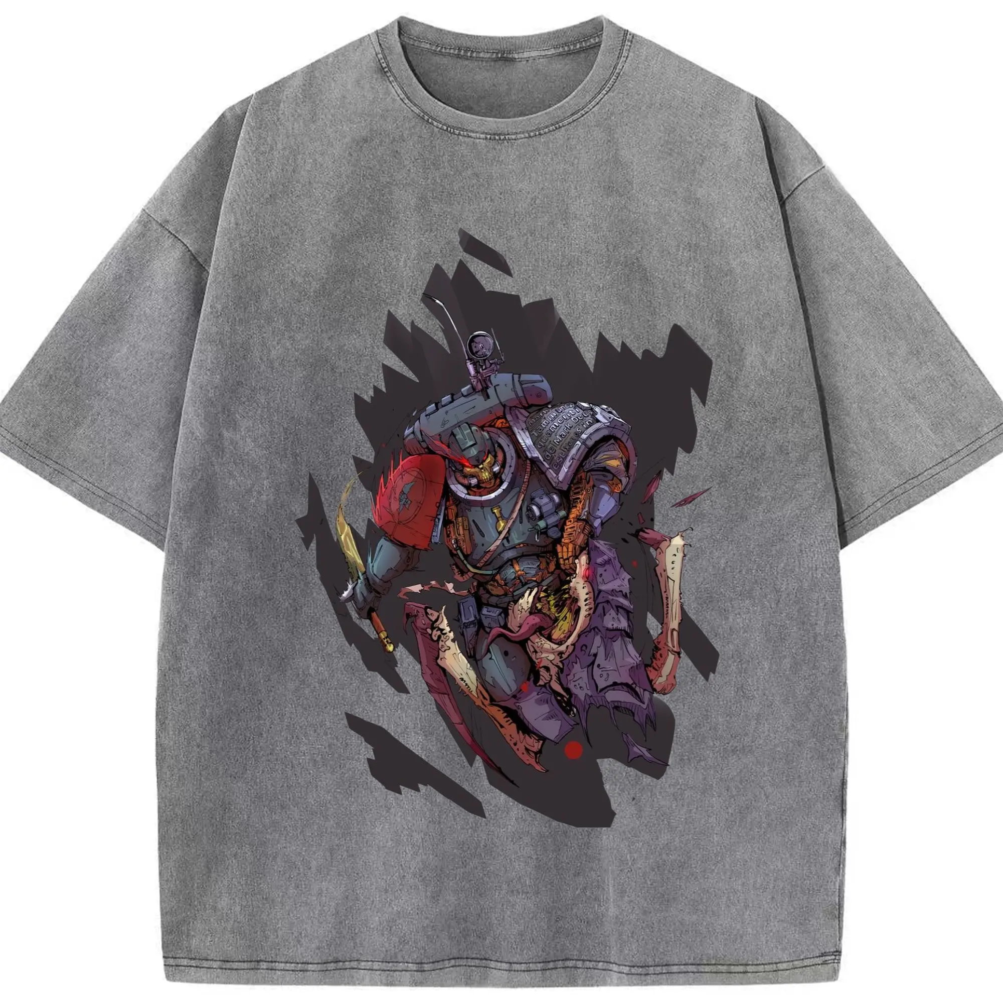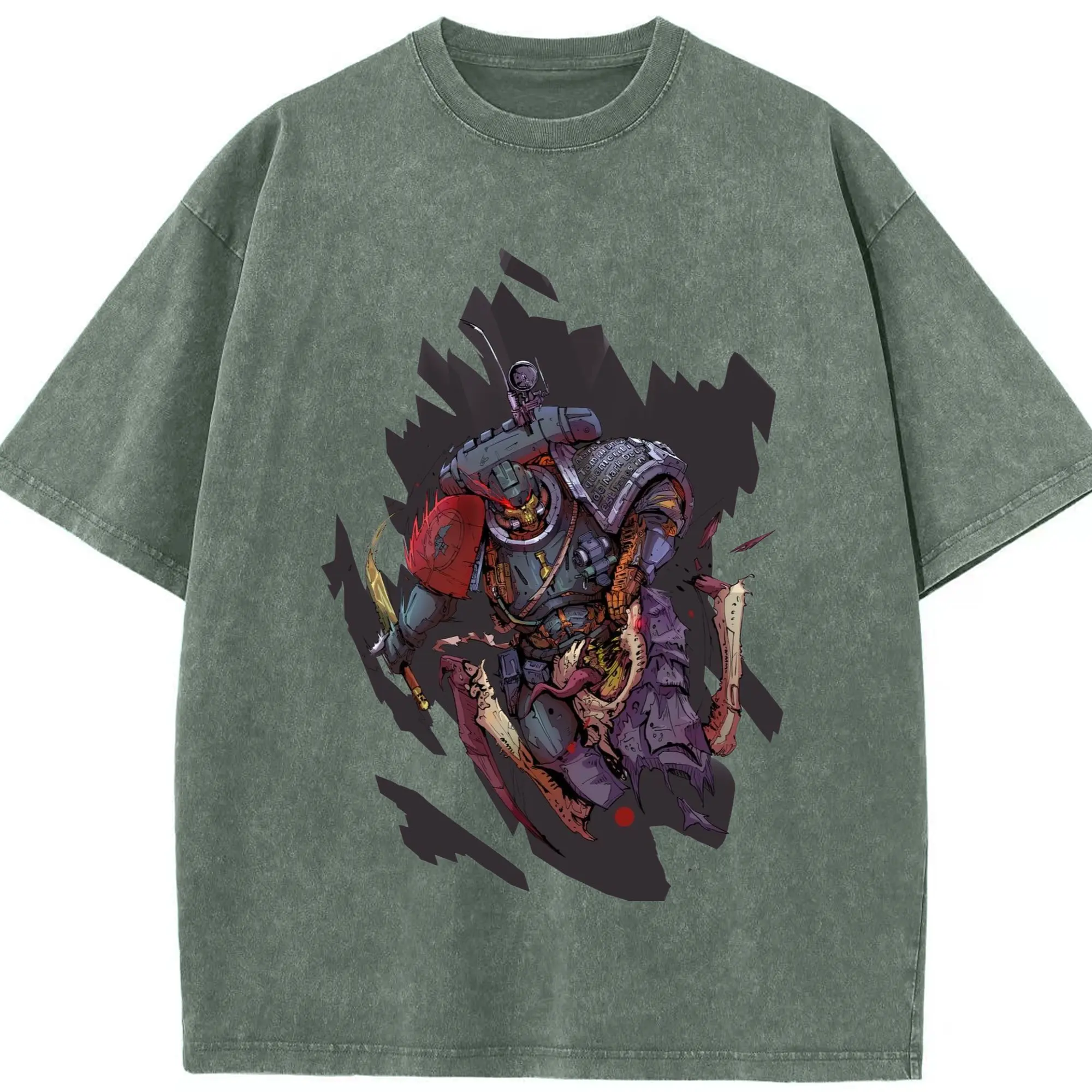 Warhammer 40k deathwatch t-shirt - Washed Vintage Look 230g Cotton Oversized T-Shirt With Front Heat Transfer Print – Soft, Lightweight, Stylish Fit – Comfortable Casual Wear For Sports & Everyday Use