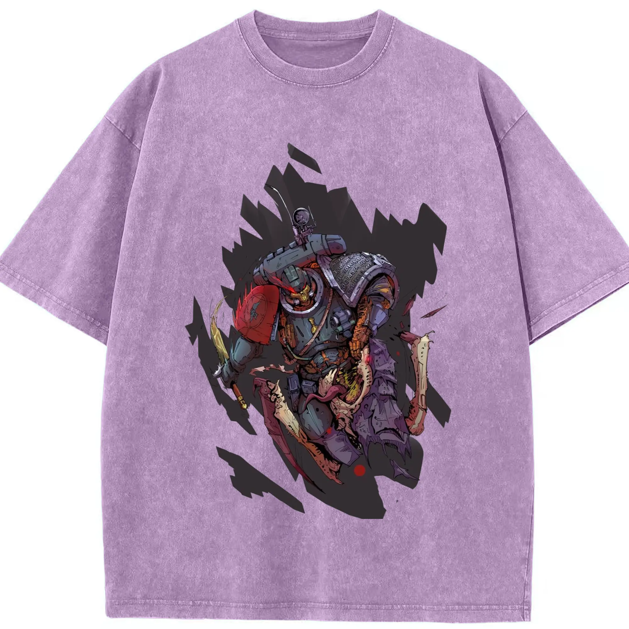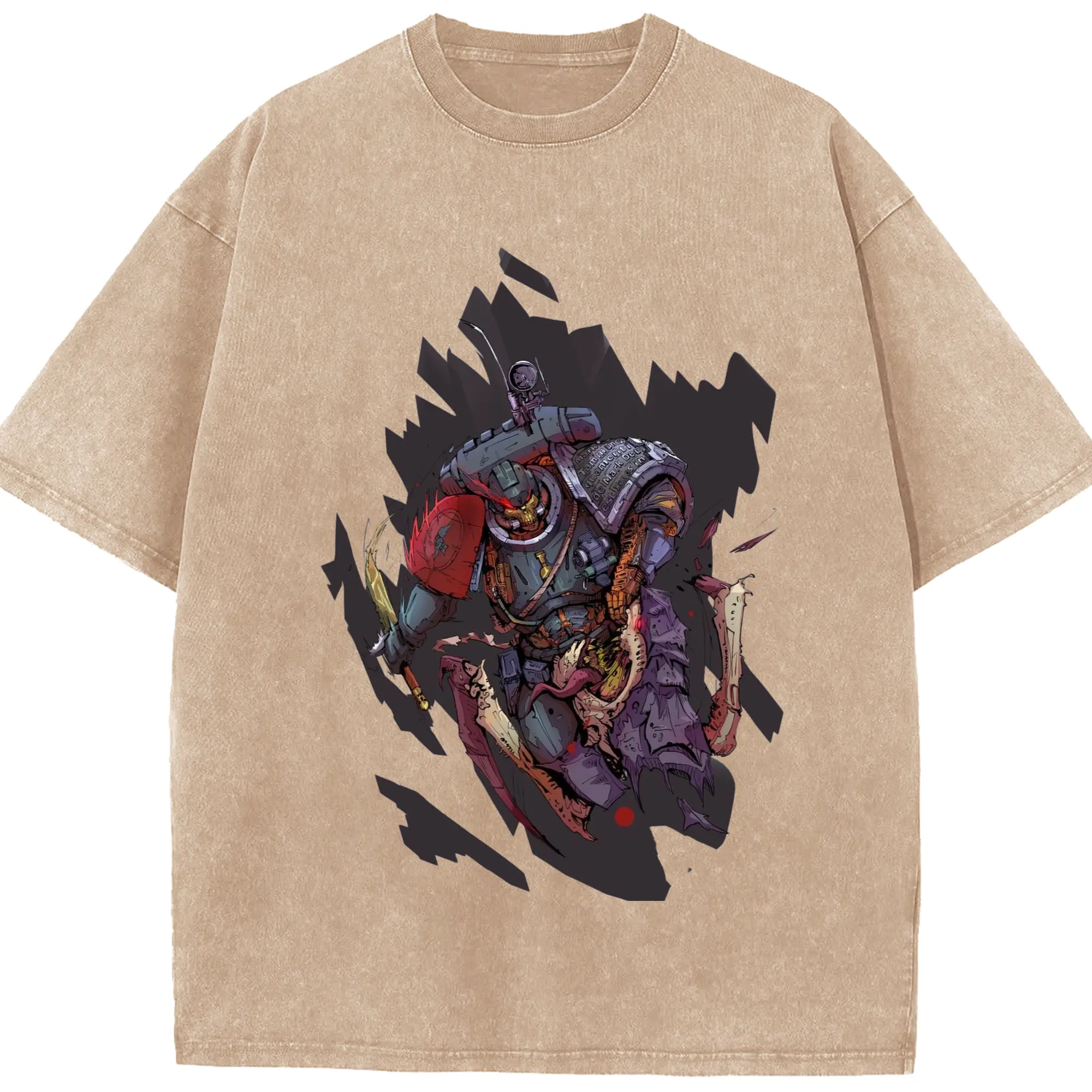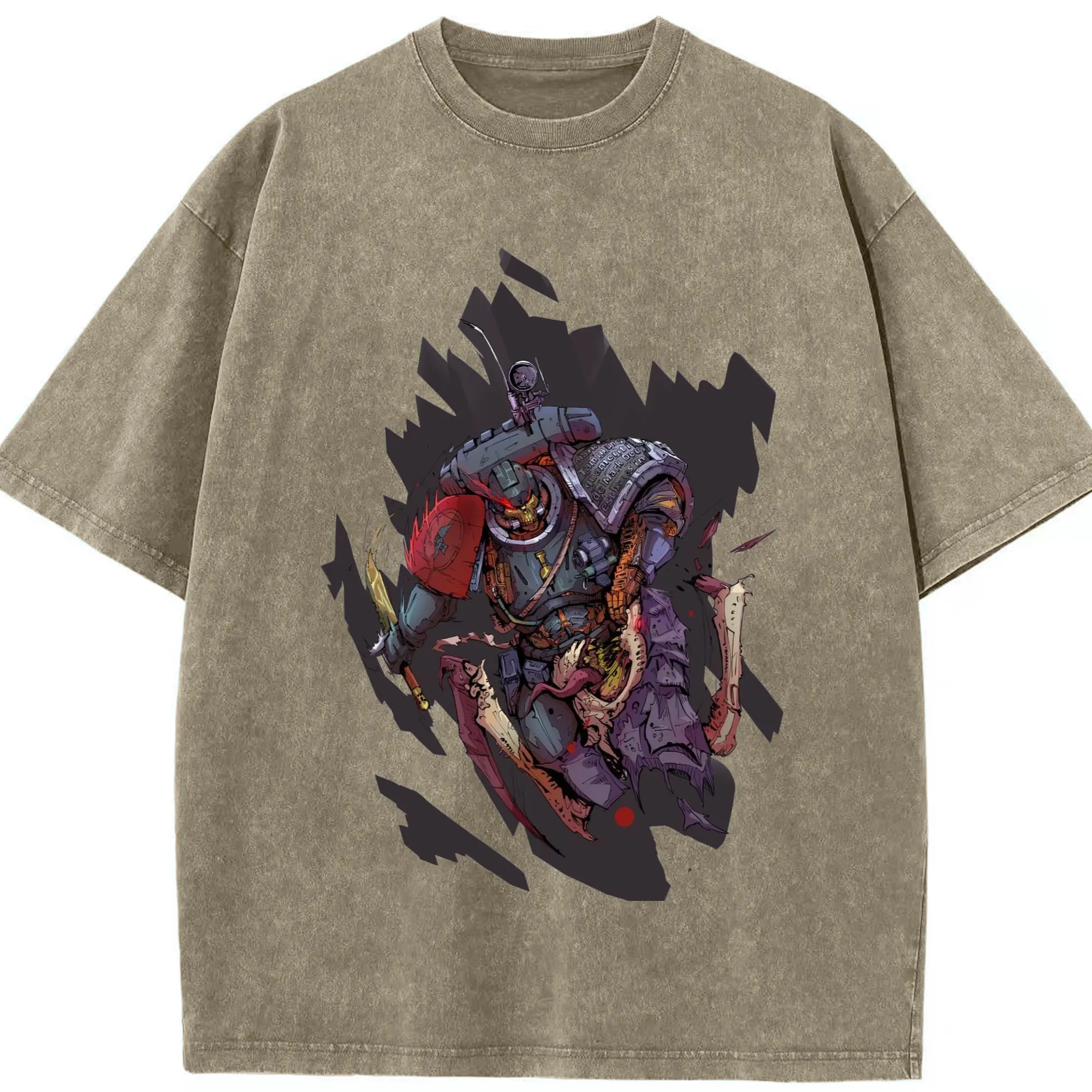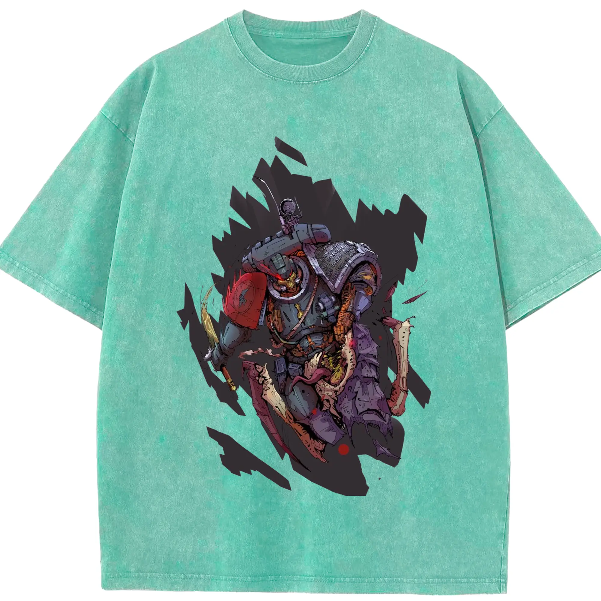 Warhammer 40k deathwatch t-shirt - Washed Vintage Look 230g Cotton Oversized T-Shirt With Front Heat Transfer Print – Soft, Lightweight, Stylish Fit – Comfortable Casual Wear For Sports & Everyday Use