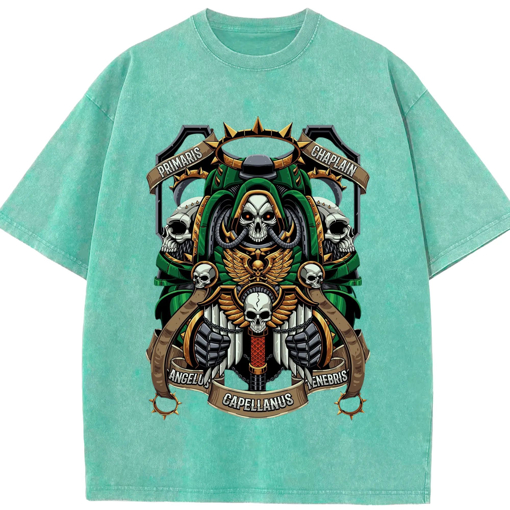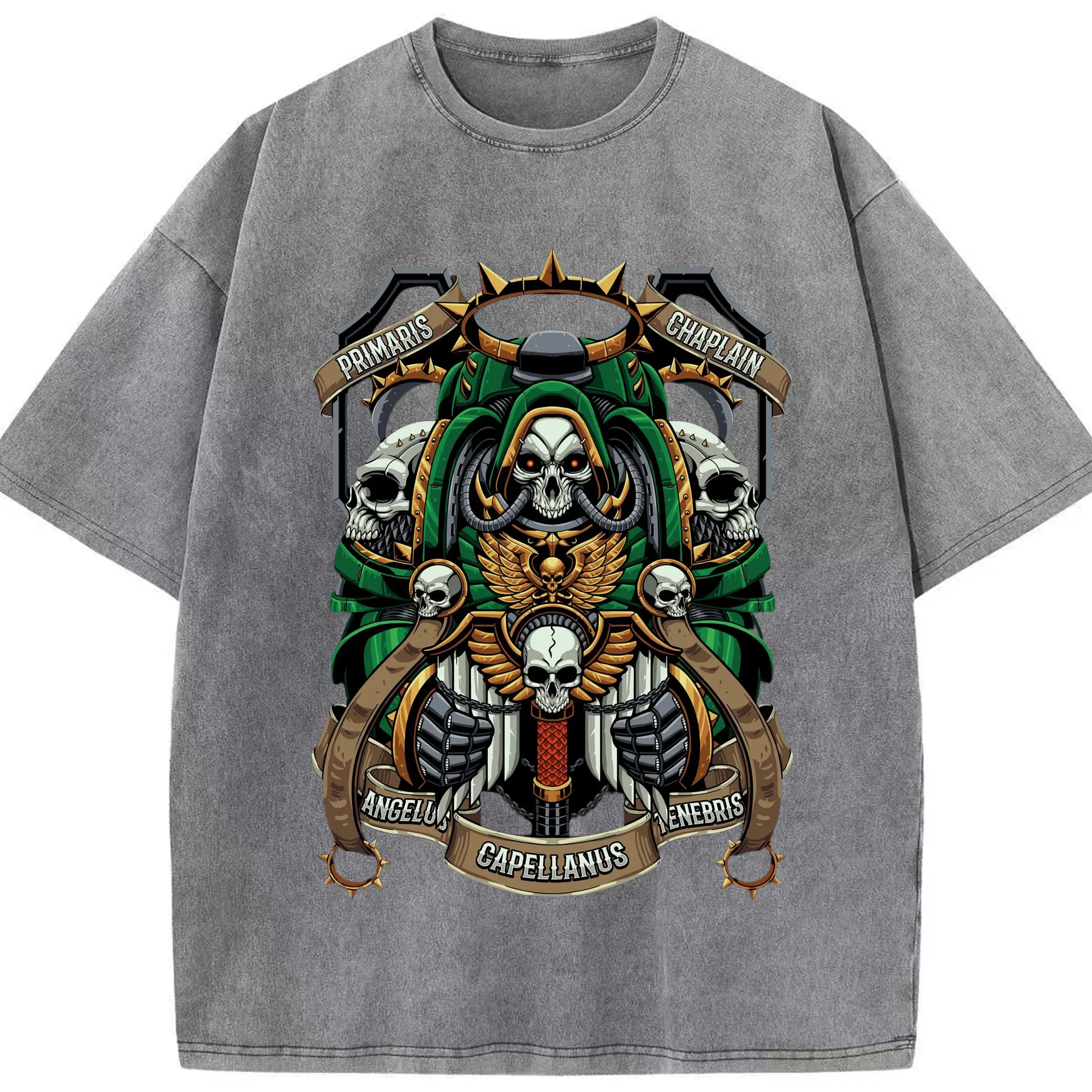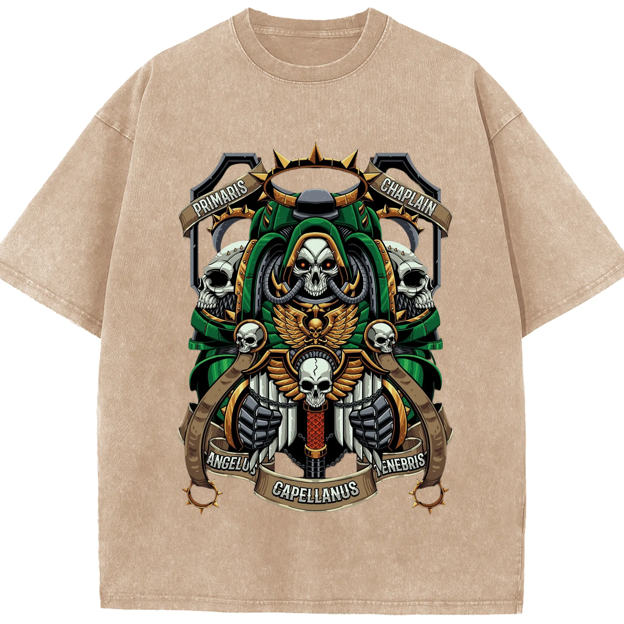 Warhammer 40k primaris chaplain t-shirt - Washed Vintage Look 230g Cotton Oversized T-Shirt With Front Heat Transfer Print – Soft, Lightweight, Stylish Fit – Comfortable Casual Wear For Sports & Everyday Use