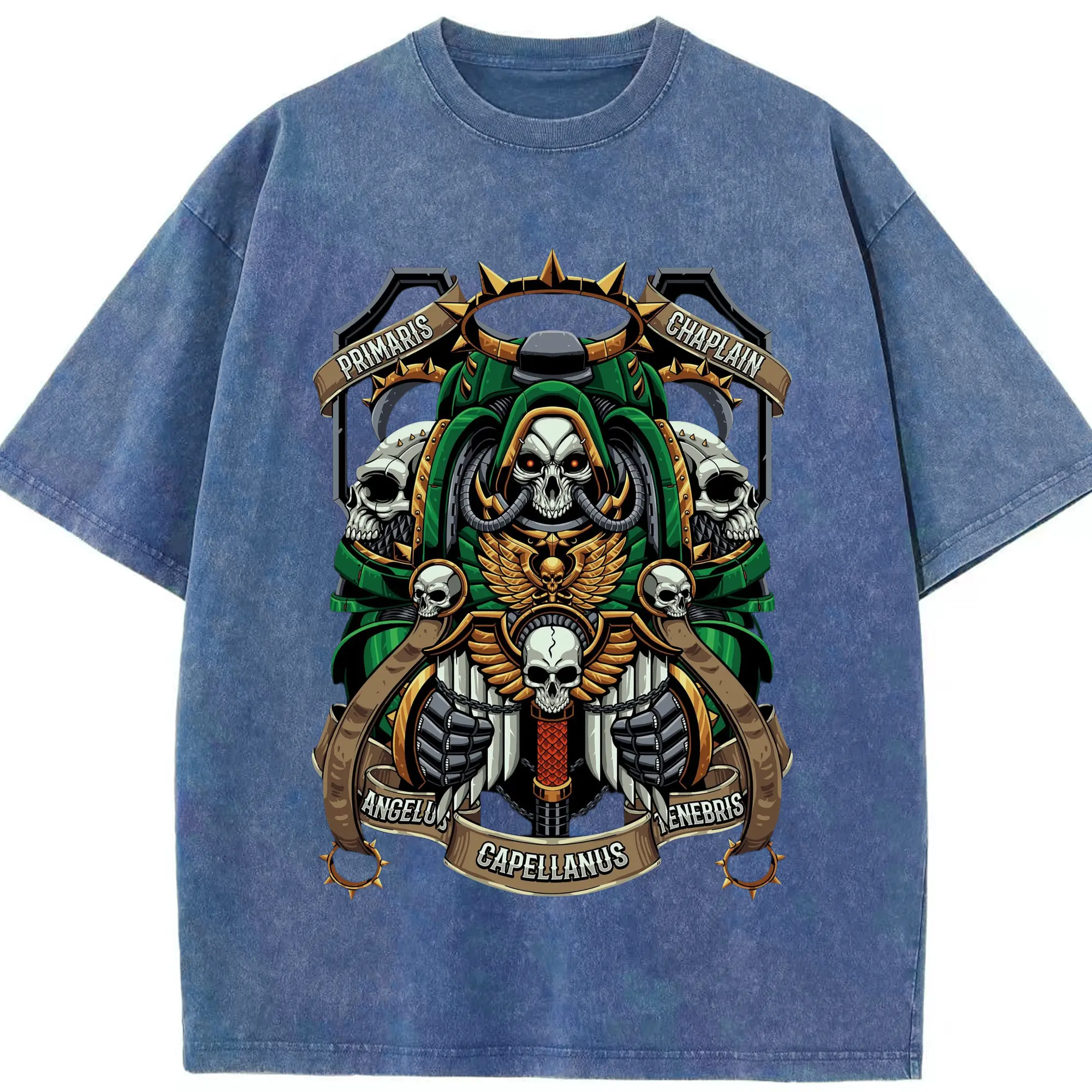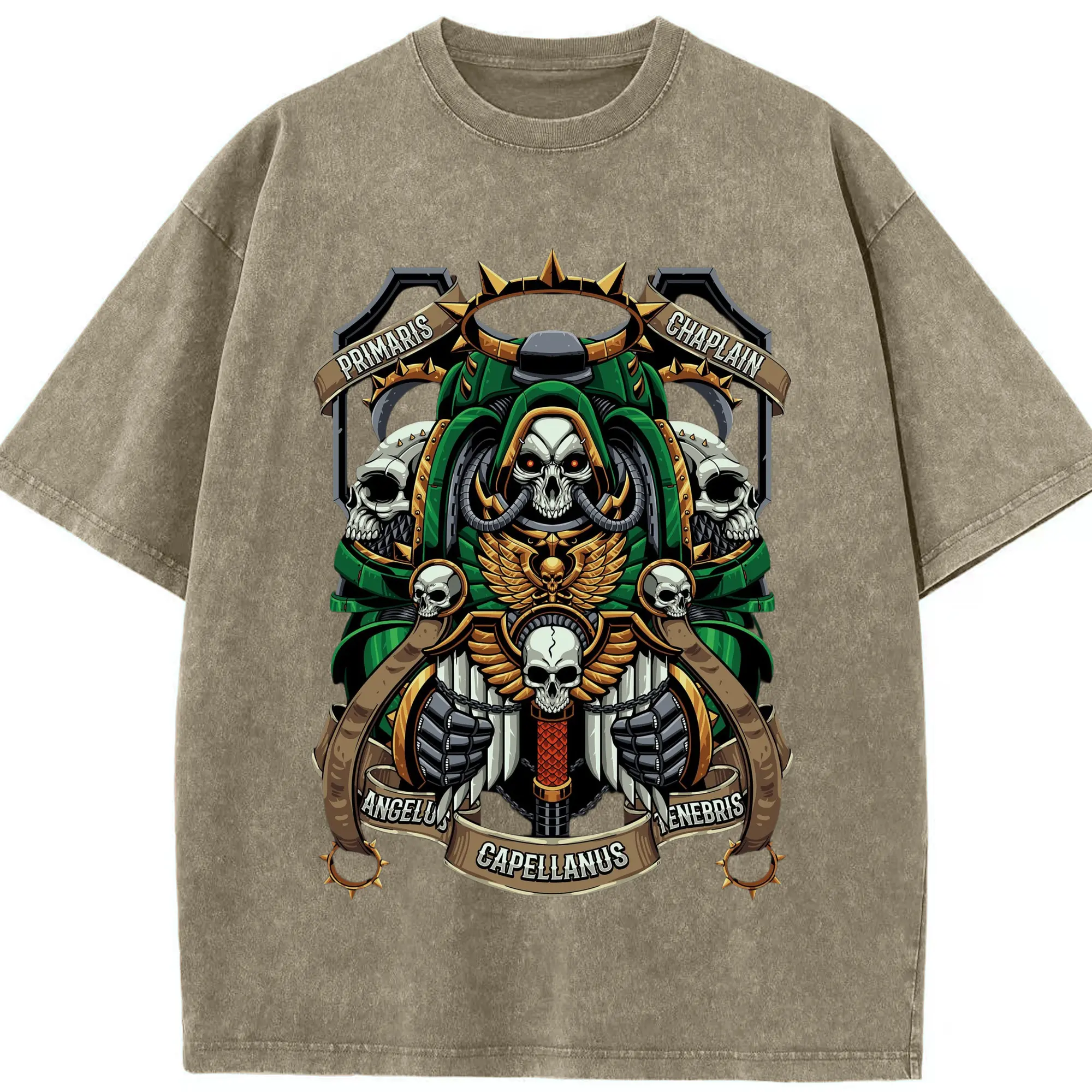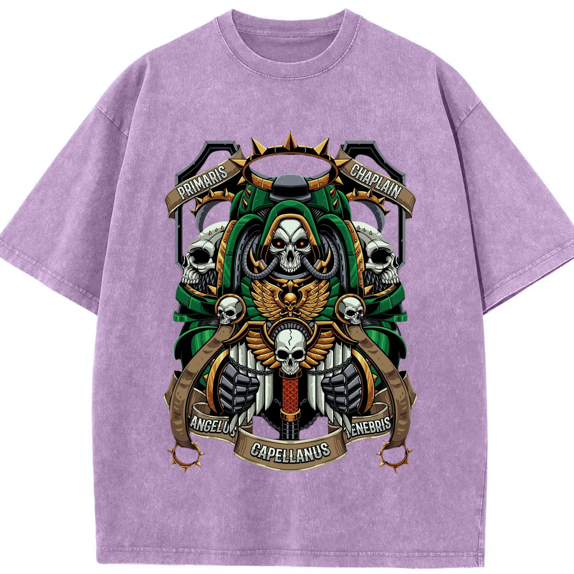 Warhammer 40k primaris chaplain t-shirt - Washed Vintage Look 230g Cotton Oversized T-Shirt With Front Heat Transfer Print – Soft, Lightweight, Stylish Fit – Comfortable Casual Wear For Sports & Everyday Use