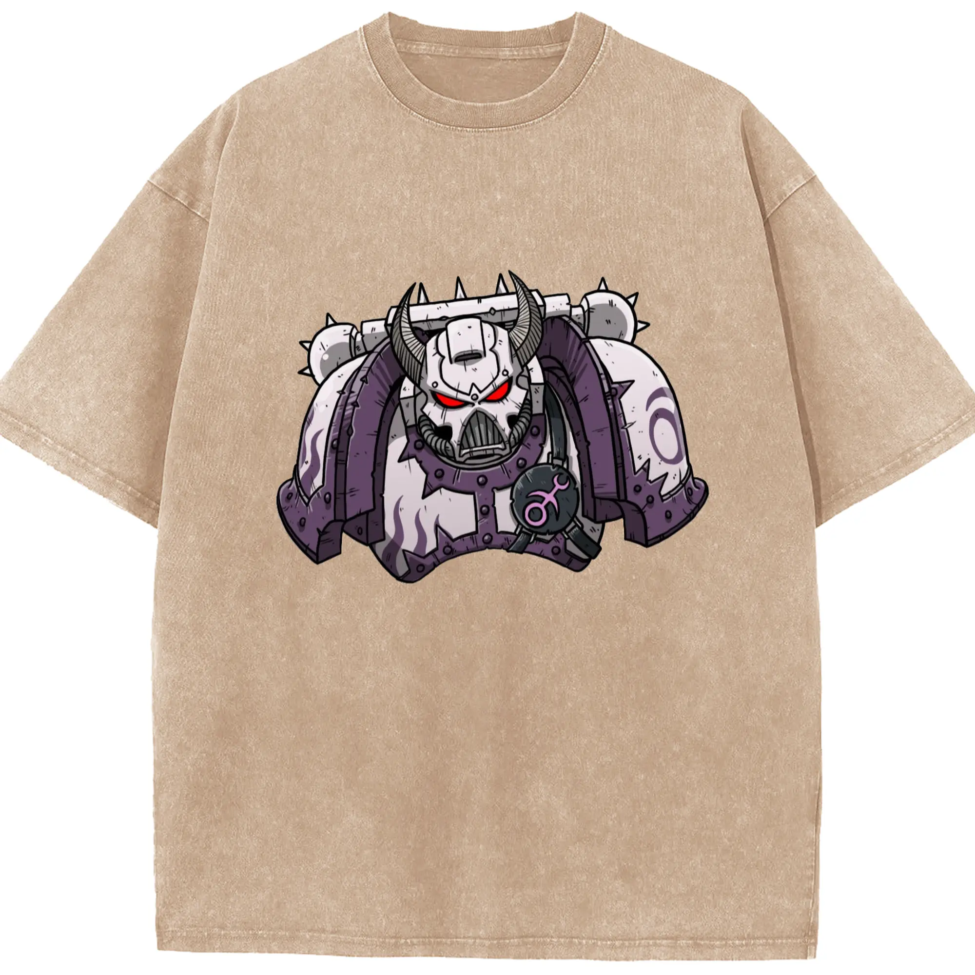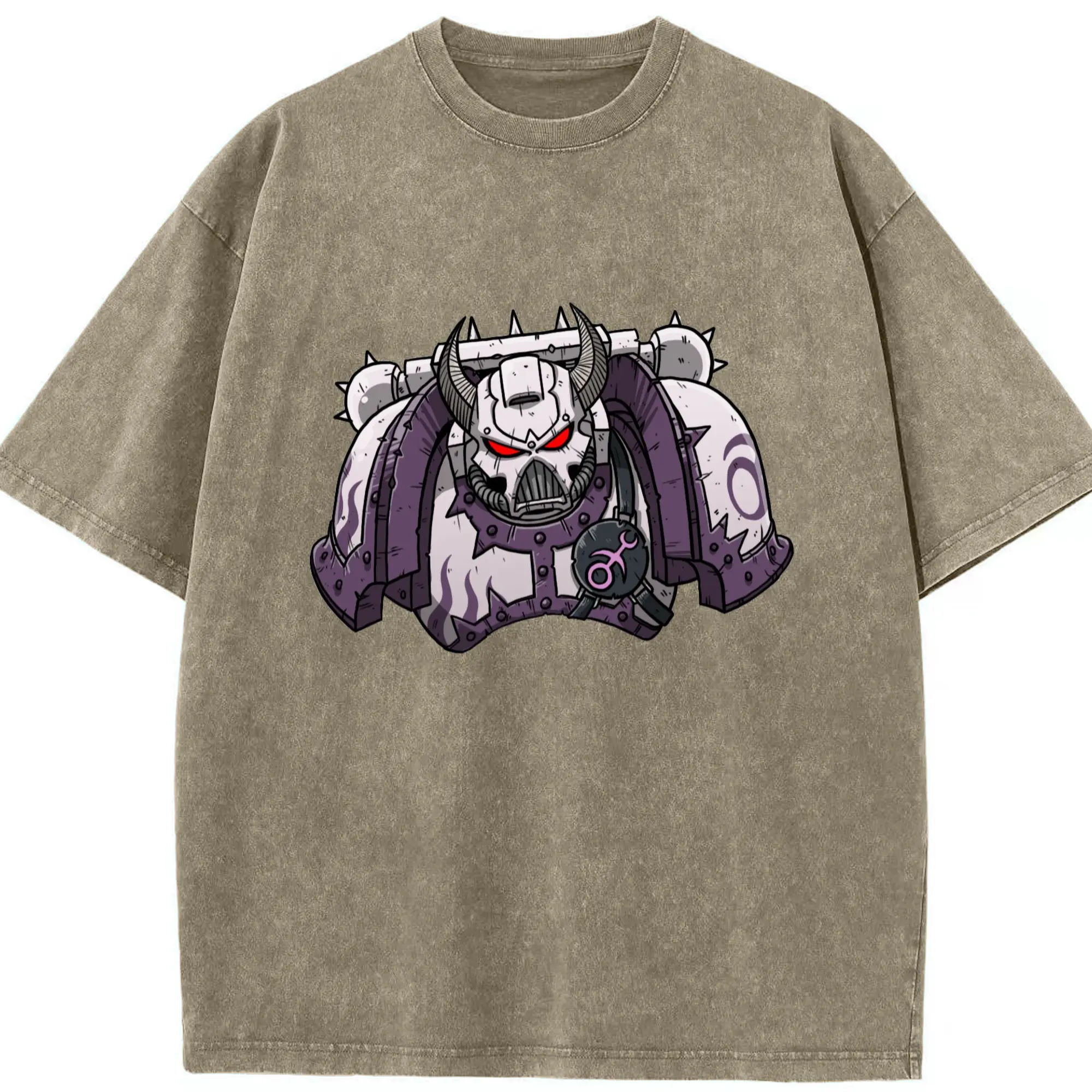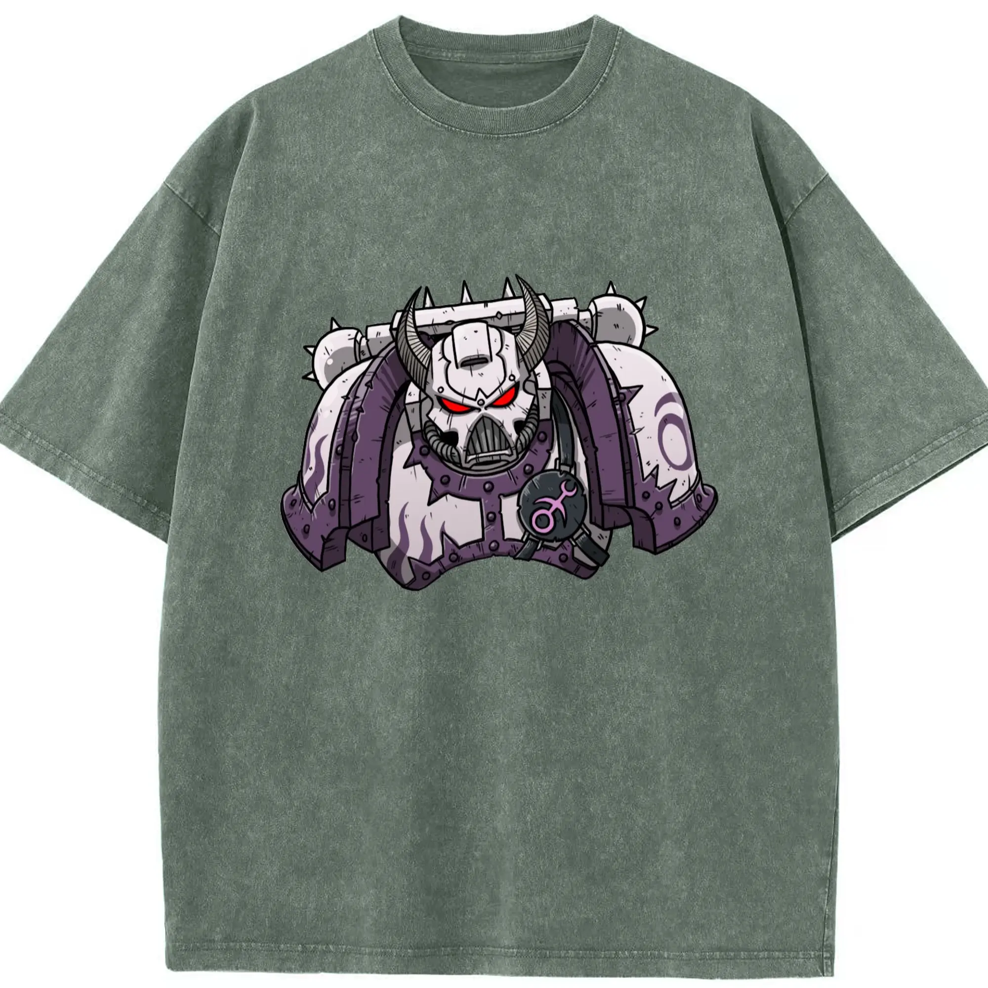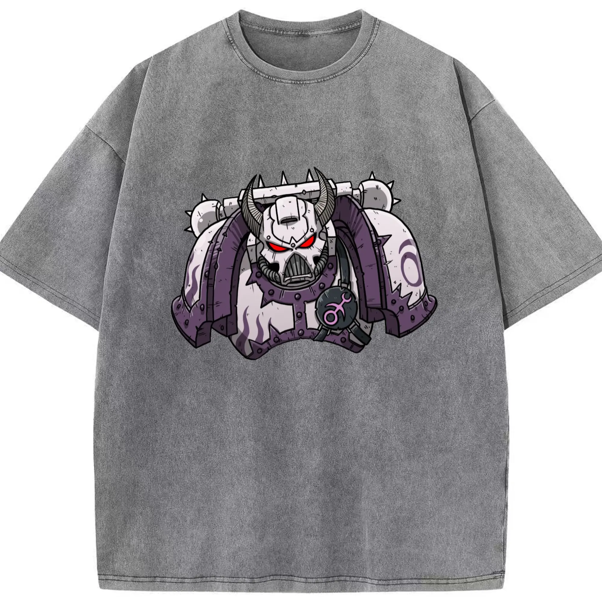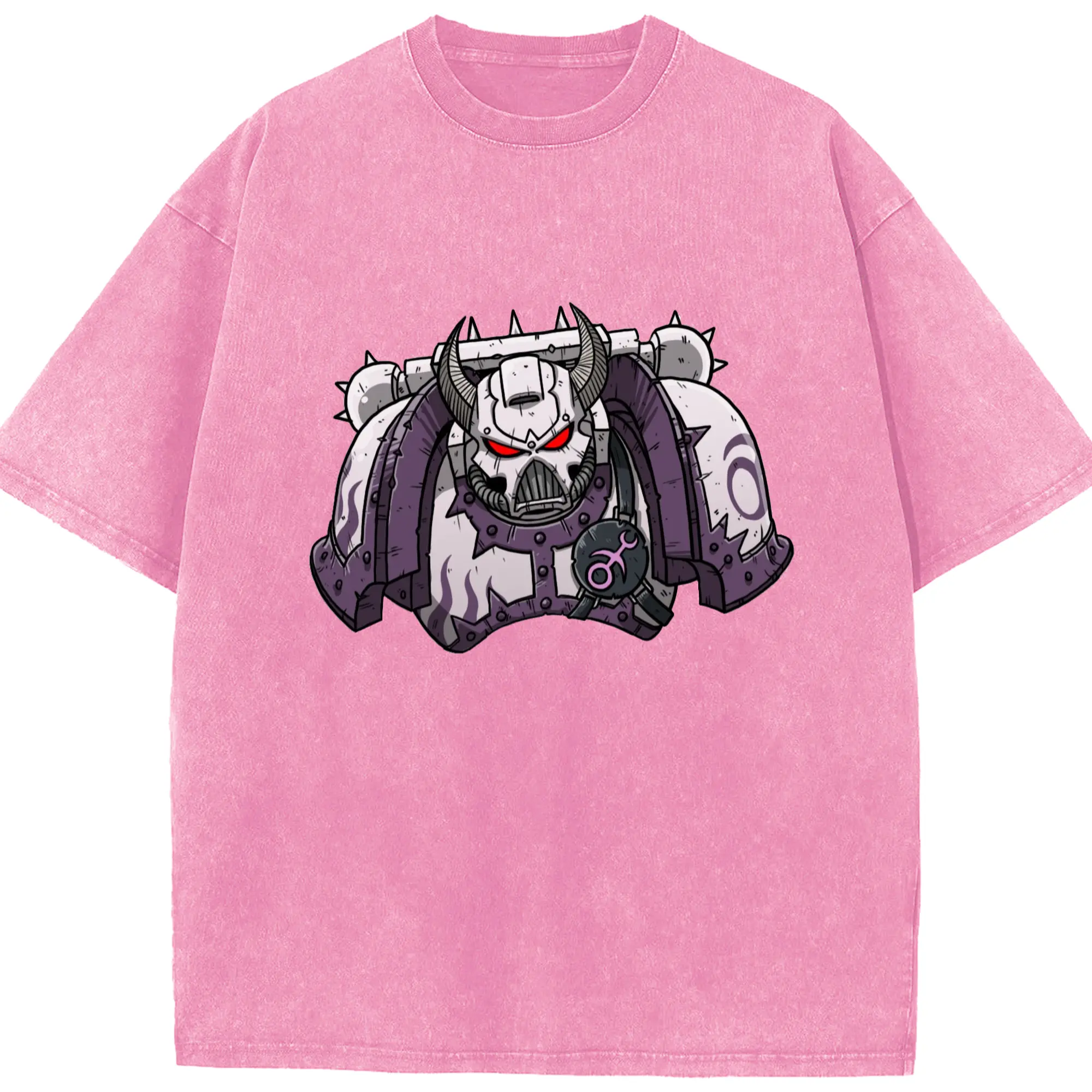 Warhammer 40k Space Marine t-shirt - Washed Vintage Look 230g Cotton Oversized T-Shirt With Front Heat Transfer Print – Soft, Lightweight, Stylish Fit – Comfortable Casual Wear For Sports & Everyday Use