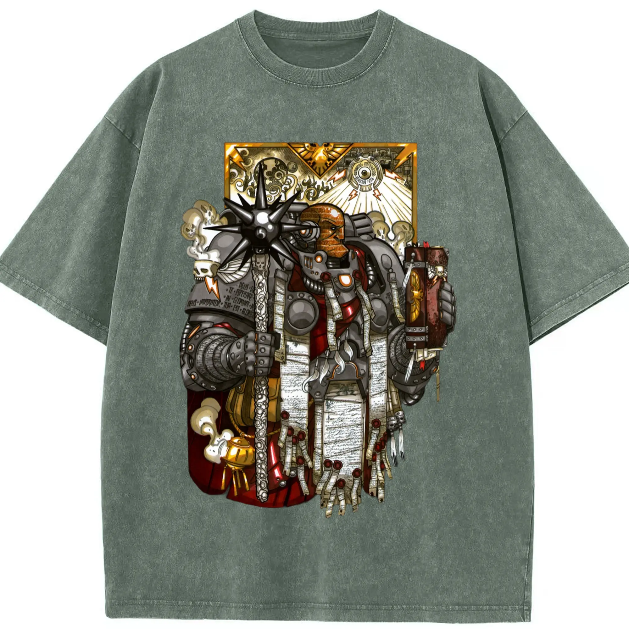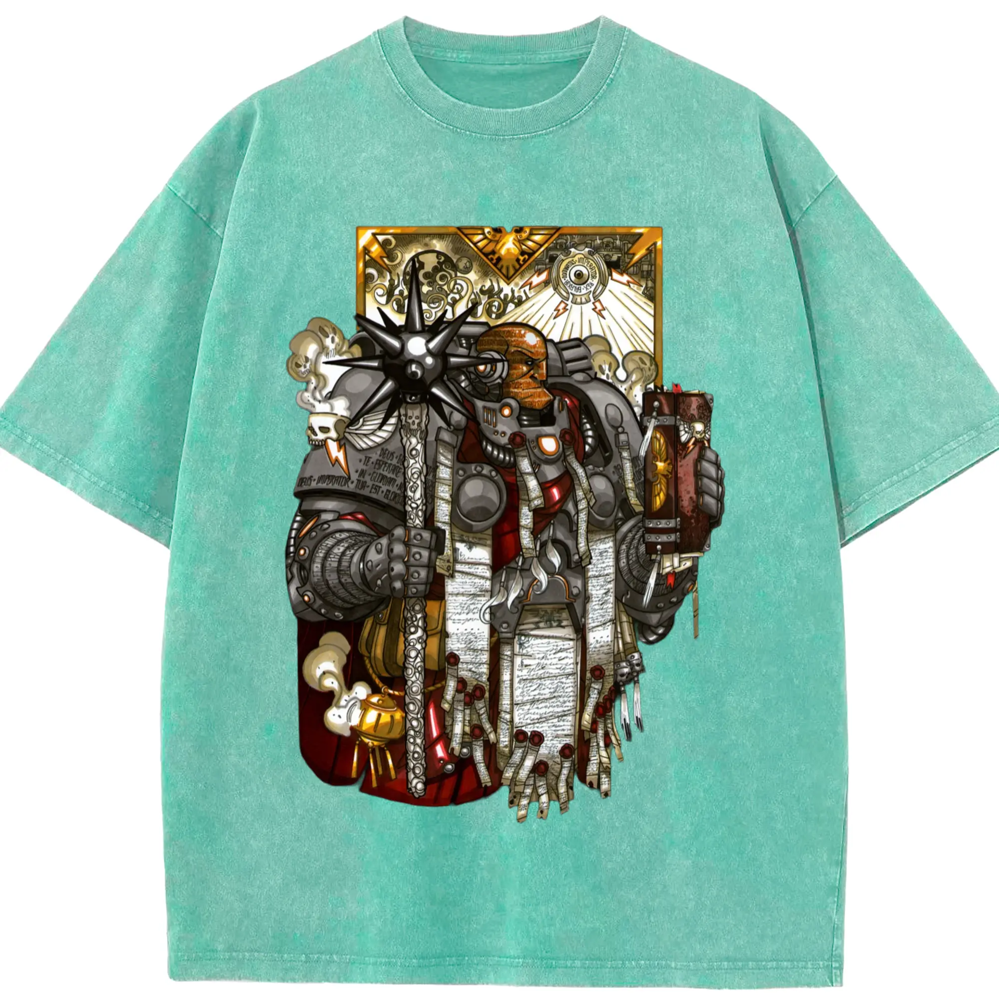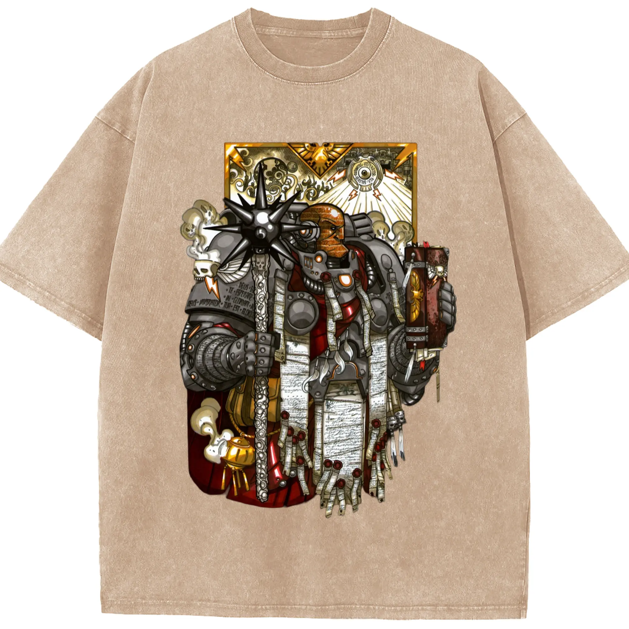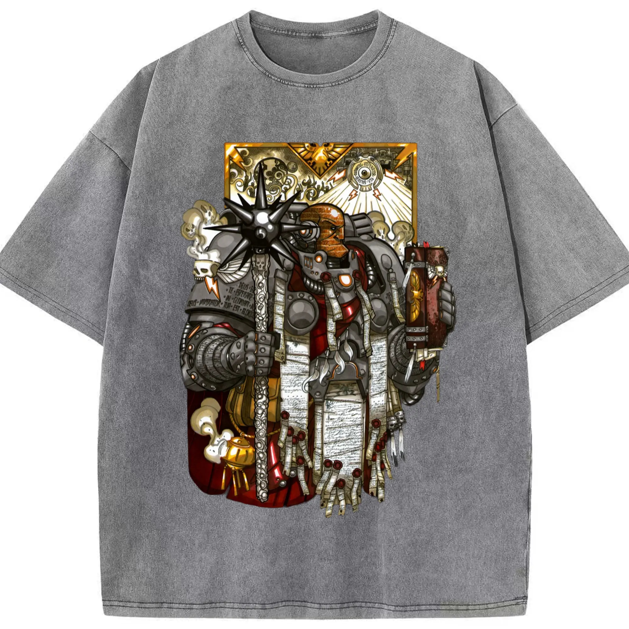 Warhammer 40k t shirt​ - Washed Vintage Look 230g Cotton Oversized T-Shirt With Front Heat Transfer Print – Soft, Lightweight, Stylish Fit – Comfortable Casual Wear For Sports & Everyday Use