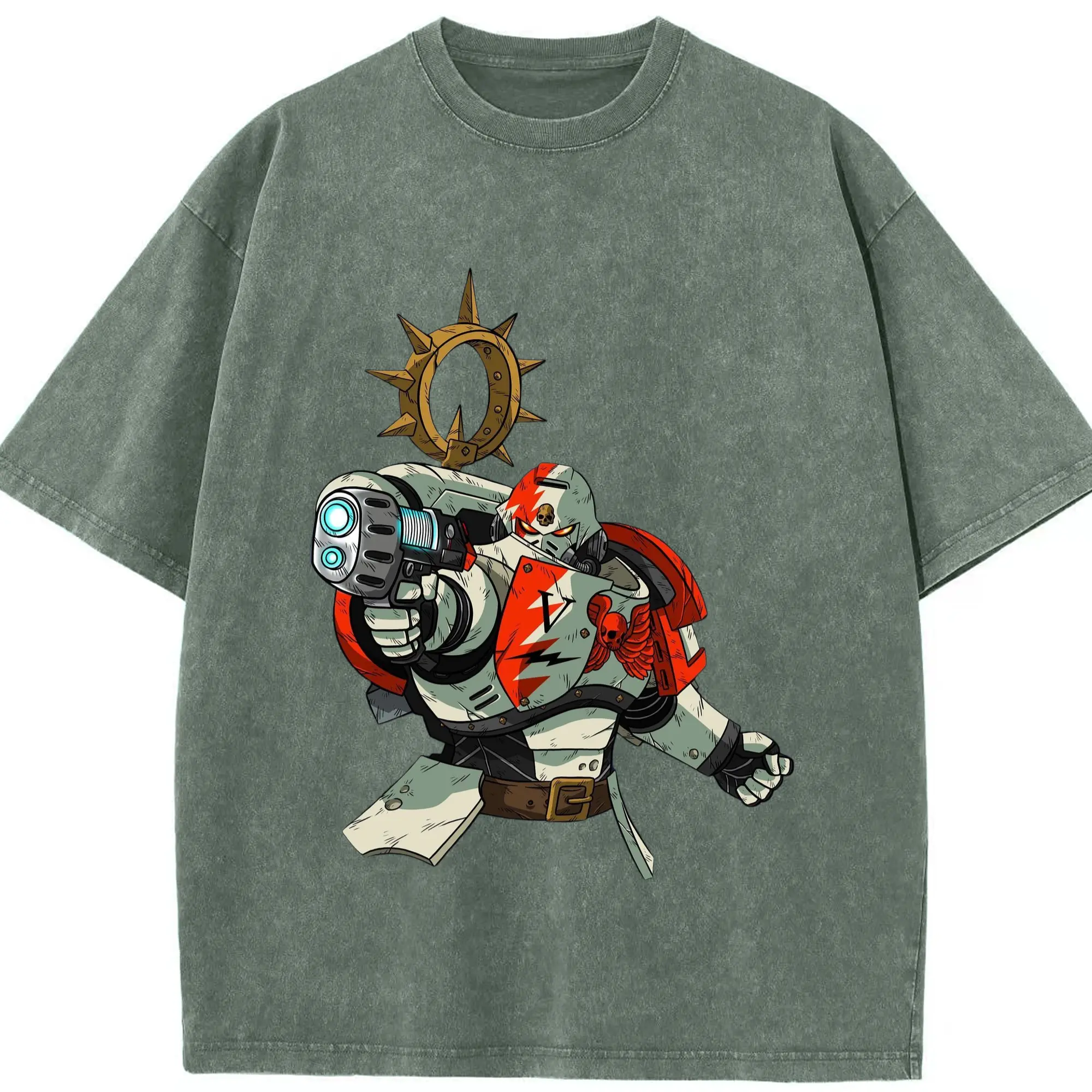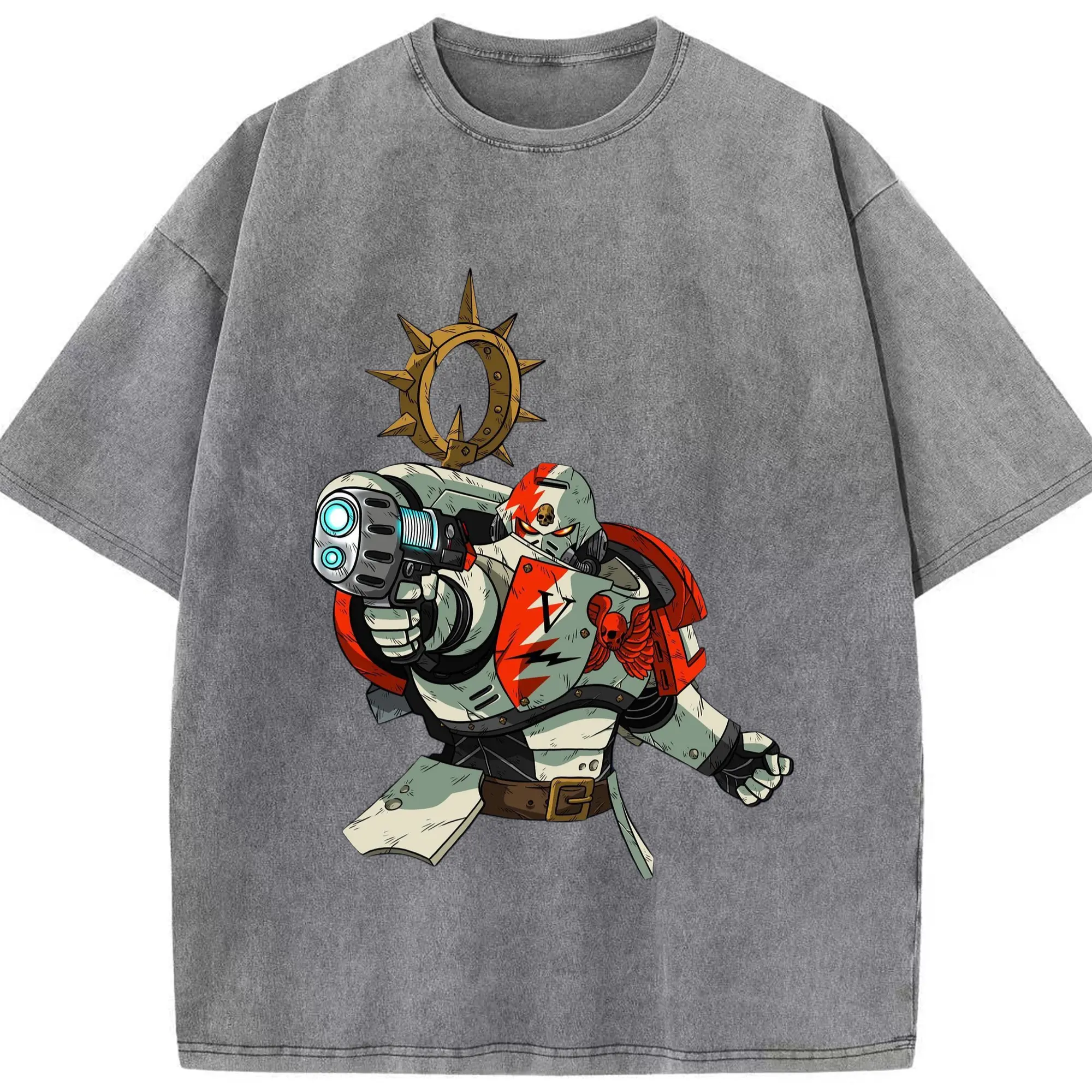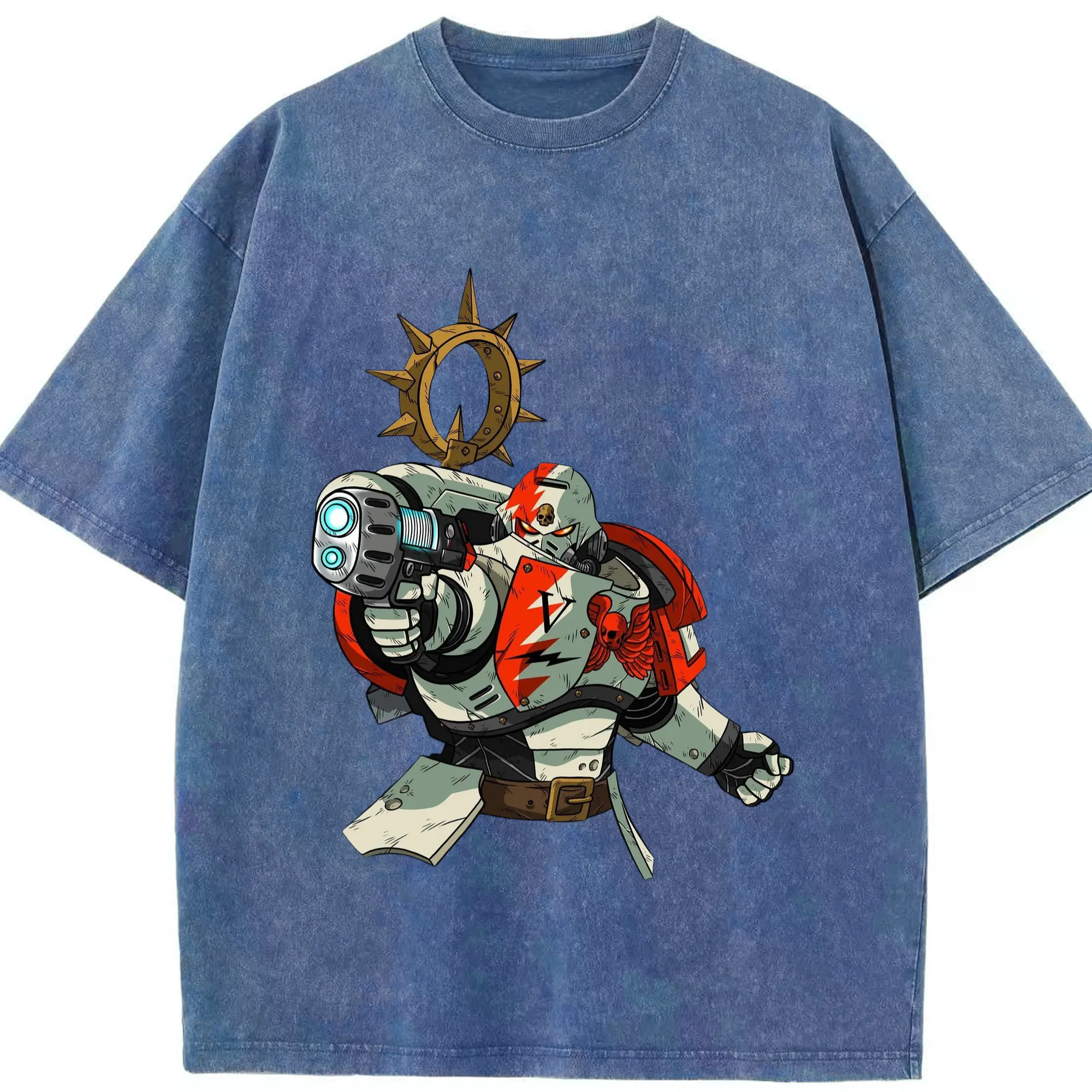 Warhammer 40k White Scars t shirt​ - Washed Vintage Look 230g Cotton Oversized T-Shirt With Front Heat Transfer Print – Soft, Lightweight, Stylish Fit – Comfortable Casual Wear For Sports & Everyday Use