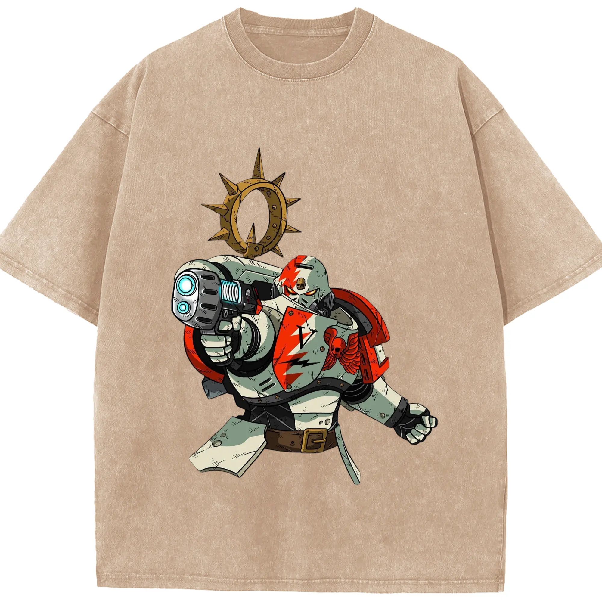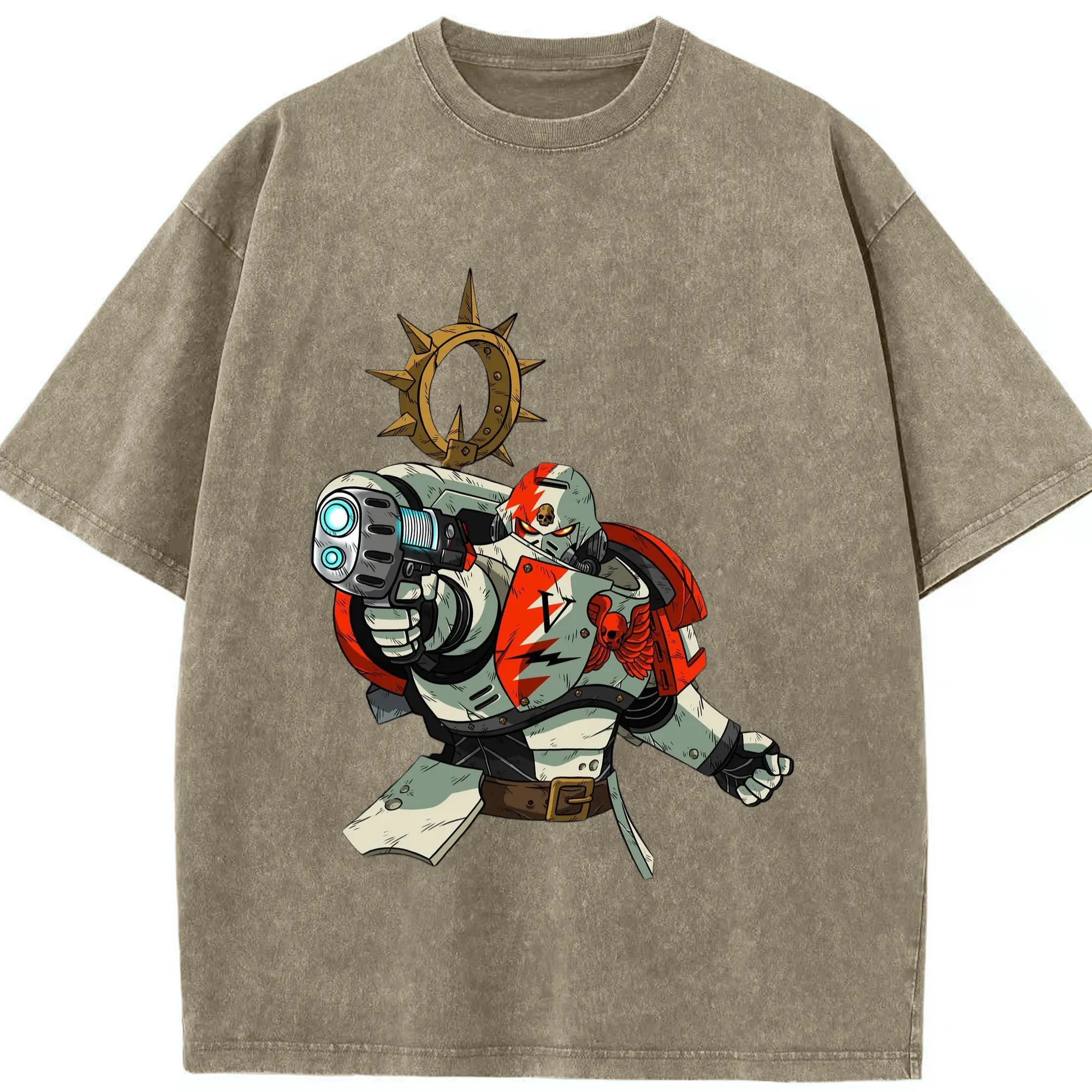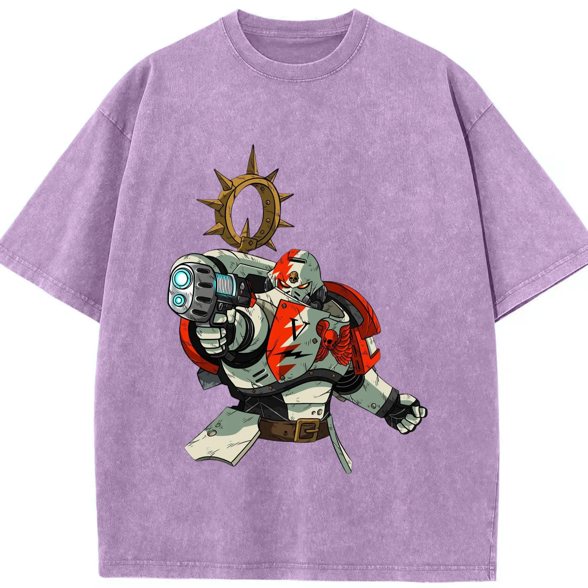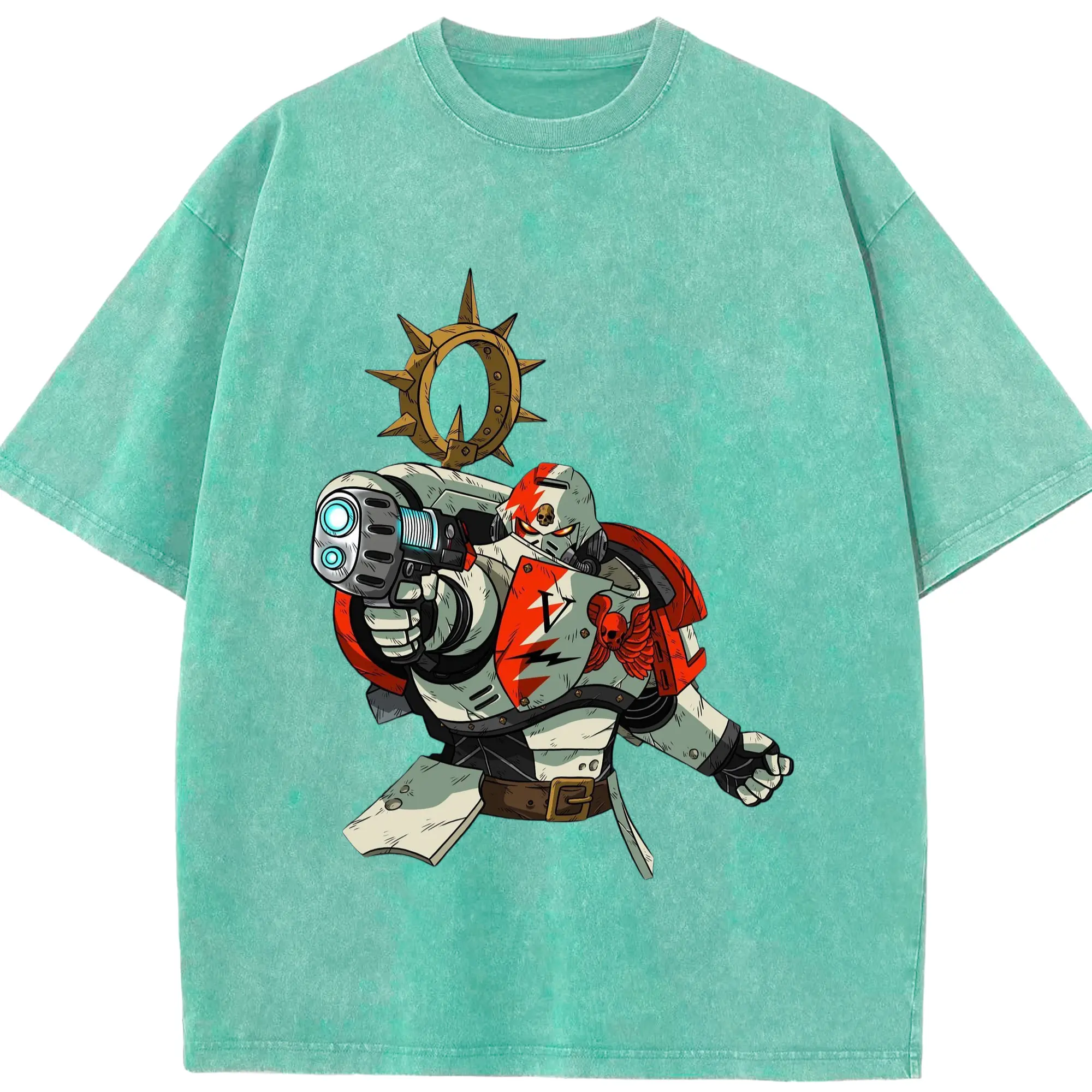 Warhammer 40k White Scars t shirt​ - Washed Vintage Look 230g Cotton Oversized T-Shirt With Front Heat Transfer Print – Soft, Lightweight, Stylish Fit – Comfortable Casual Wear For Sports & Everyday Use