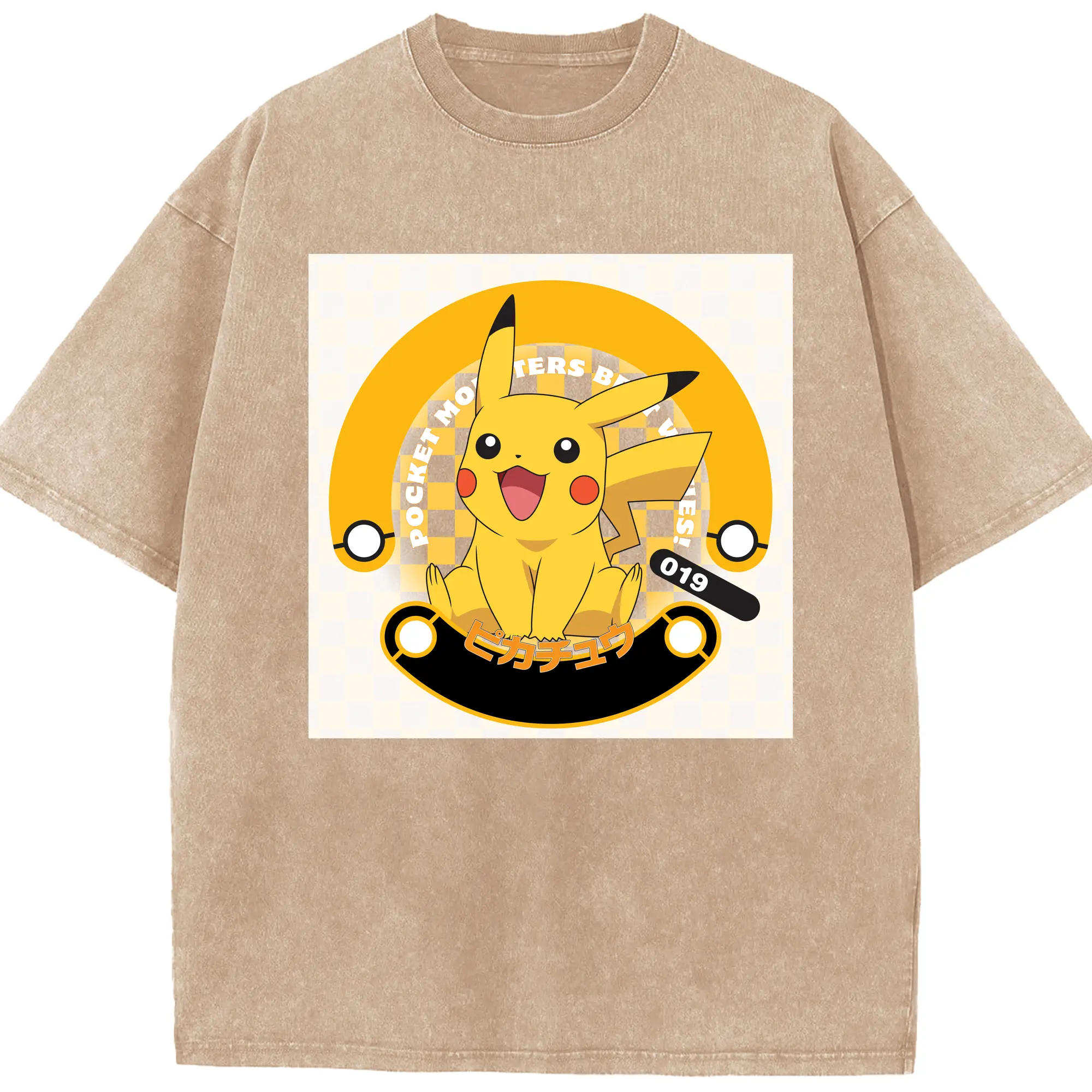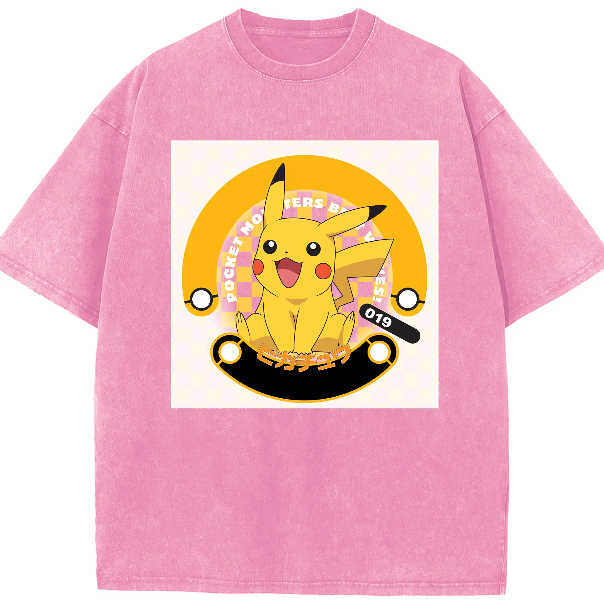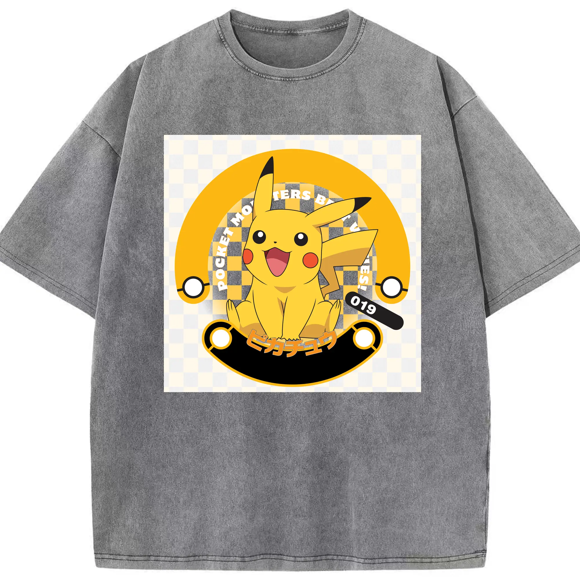 Womens pikachu shirt - Washed Vintage Look 230g Cotton Oversized T-Shirt With Front Heat Transfer Print – Soft, Lightweight, Stylish Fit – Comfortable Casual Wear For Sports & Everyday Use