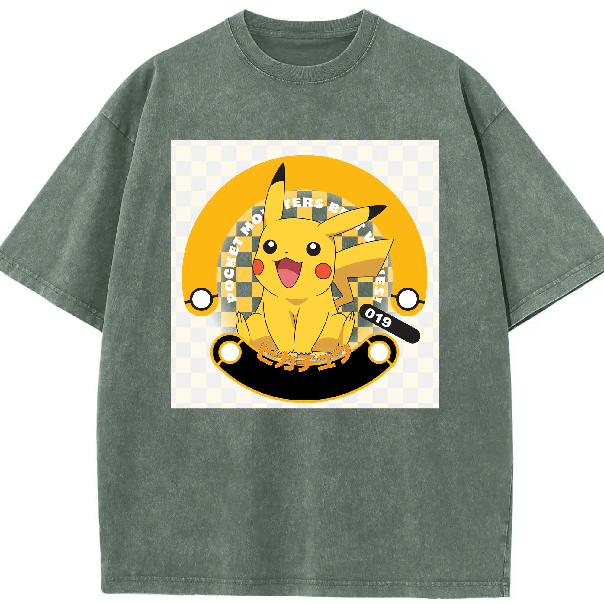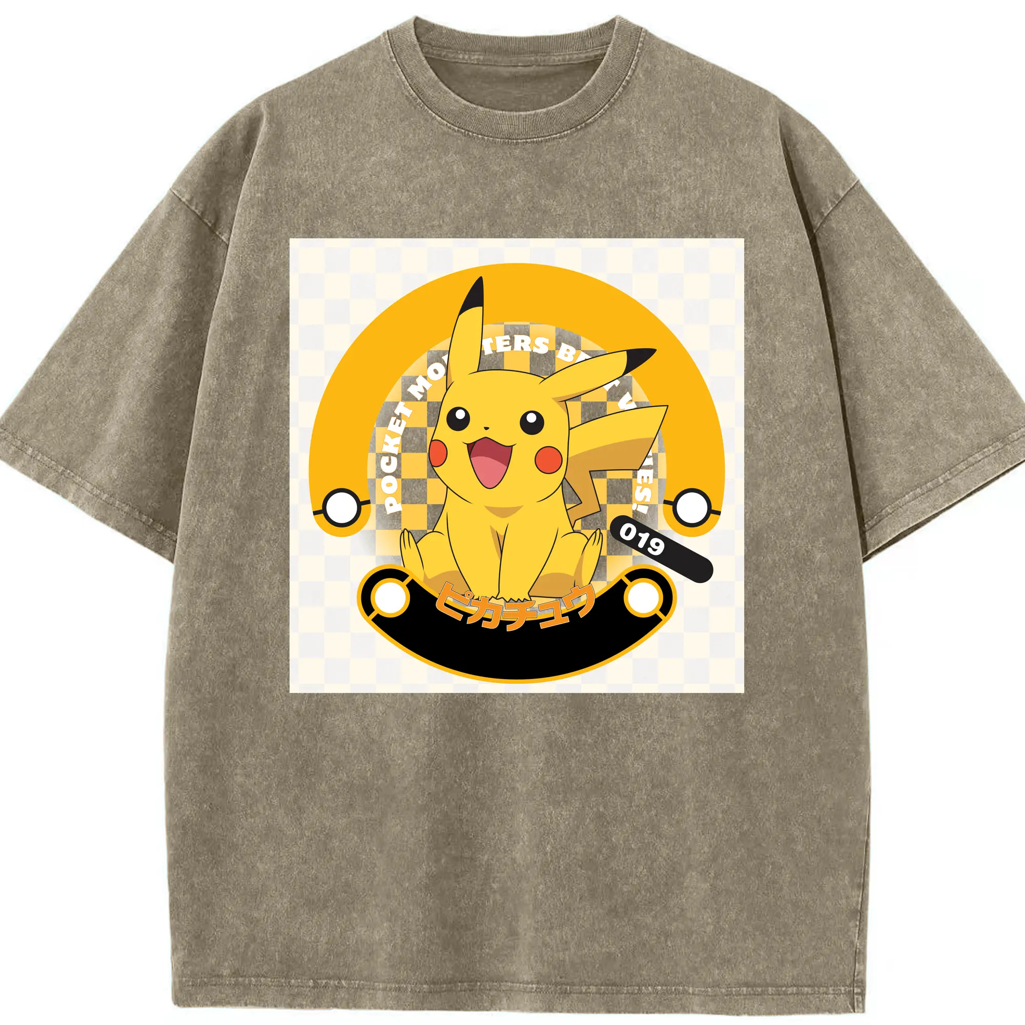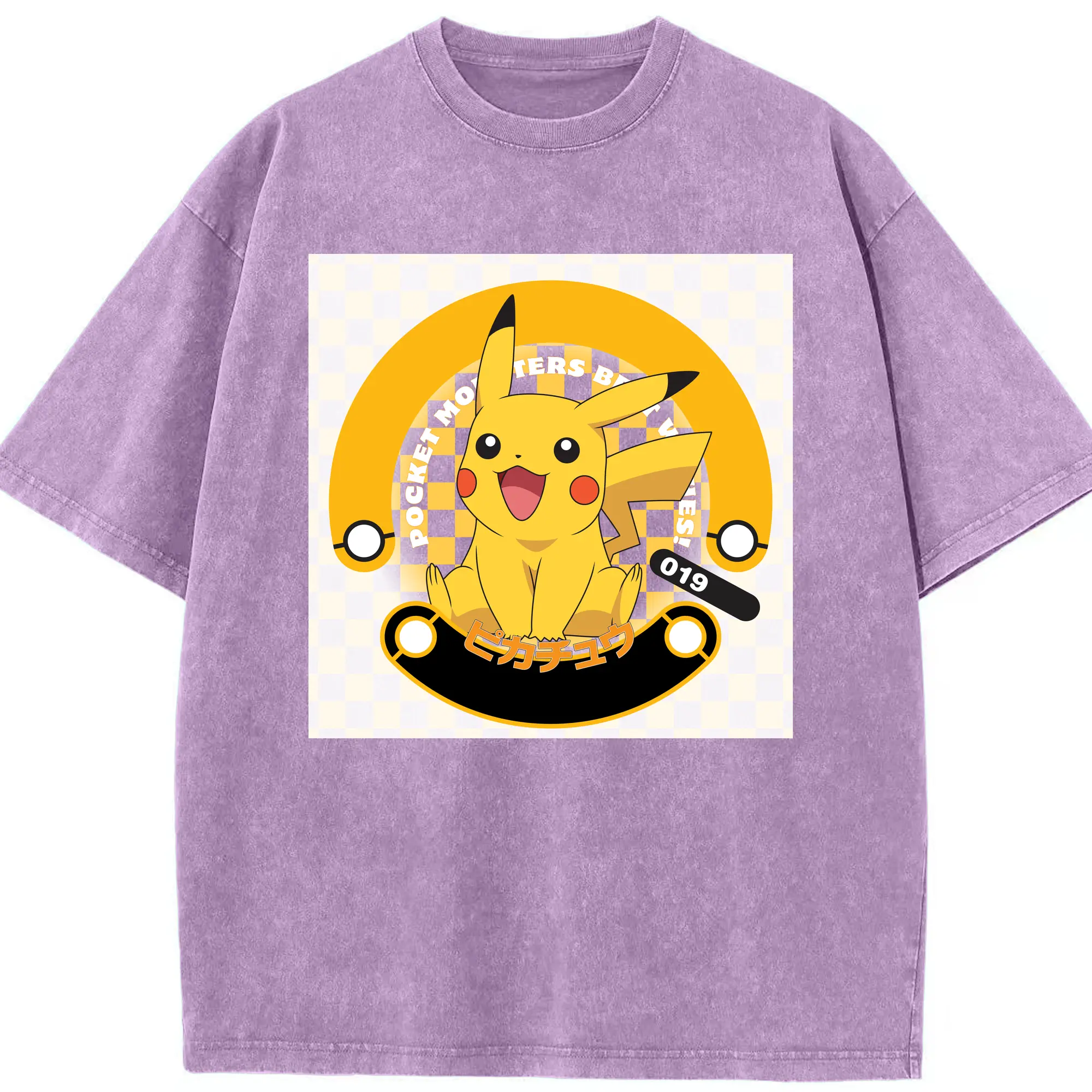 Womens pikachu shirt - Washed Vintage Look 230g Cotton Oversized T-Shirt With Front Heat Transfer Print – Soft, Lightweight, Stylish Fit – Comfortable Casual Wear For Sports & Everyday Use