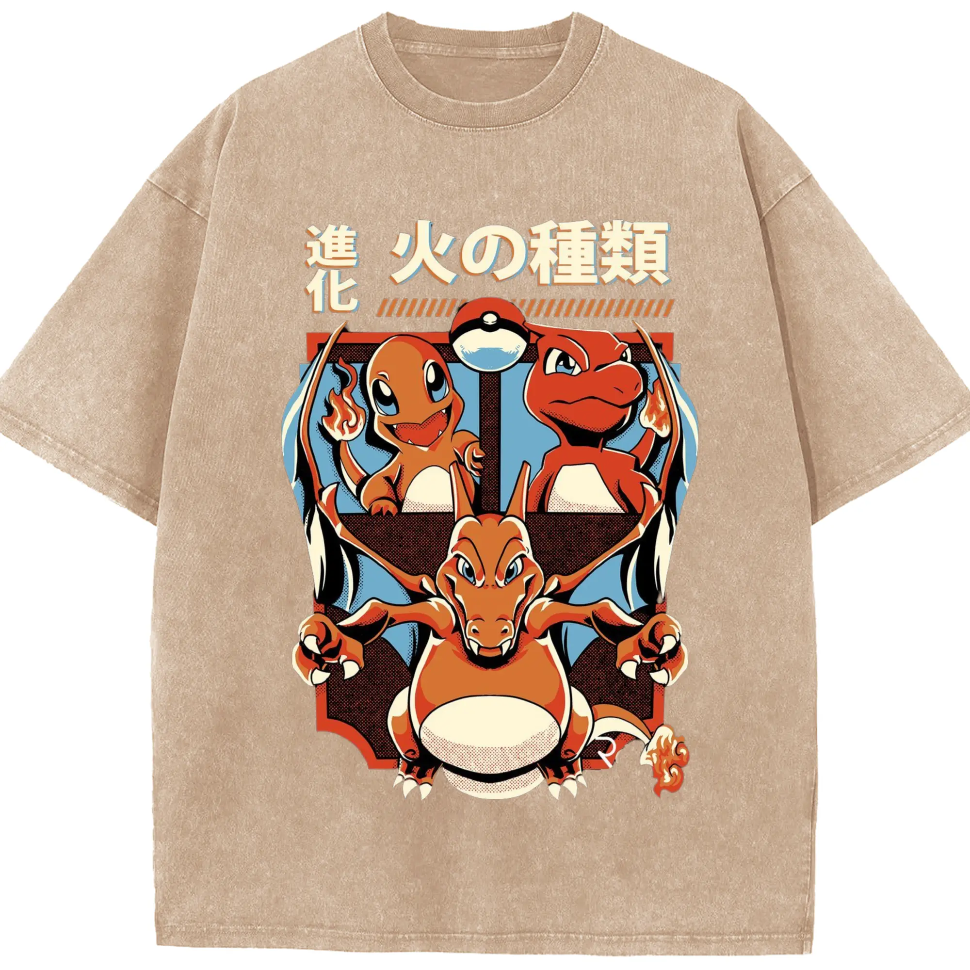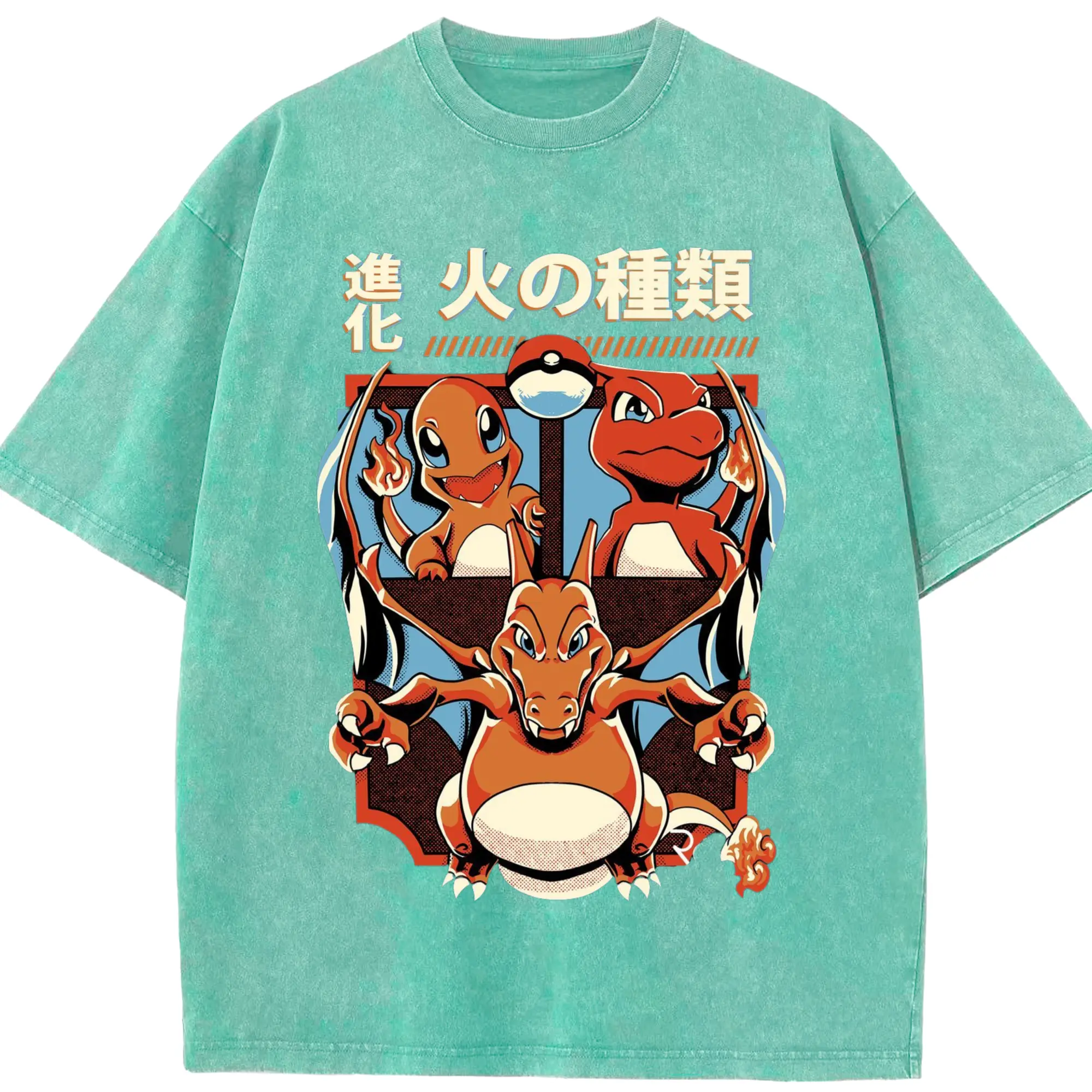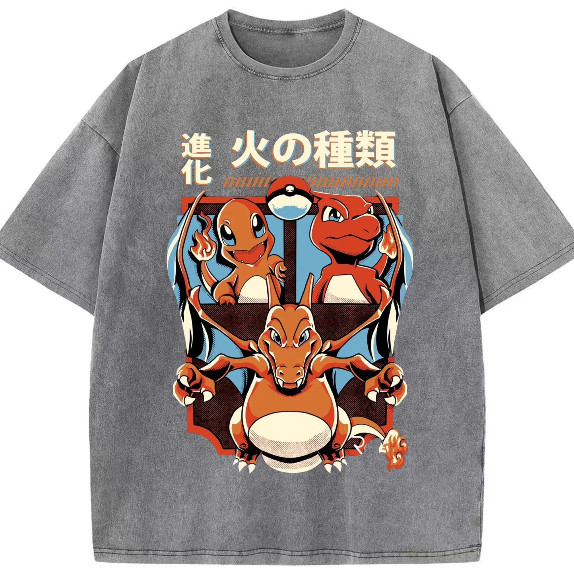 Youth​charizard t shirt - Washed Vintage Look 230g Cotton Oversized T-Shirt With Front Heat Transfer Print – Soft, Lightweight, Stylish Fit – Comfortable Casual Wear For Sports & Everyday Use