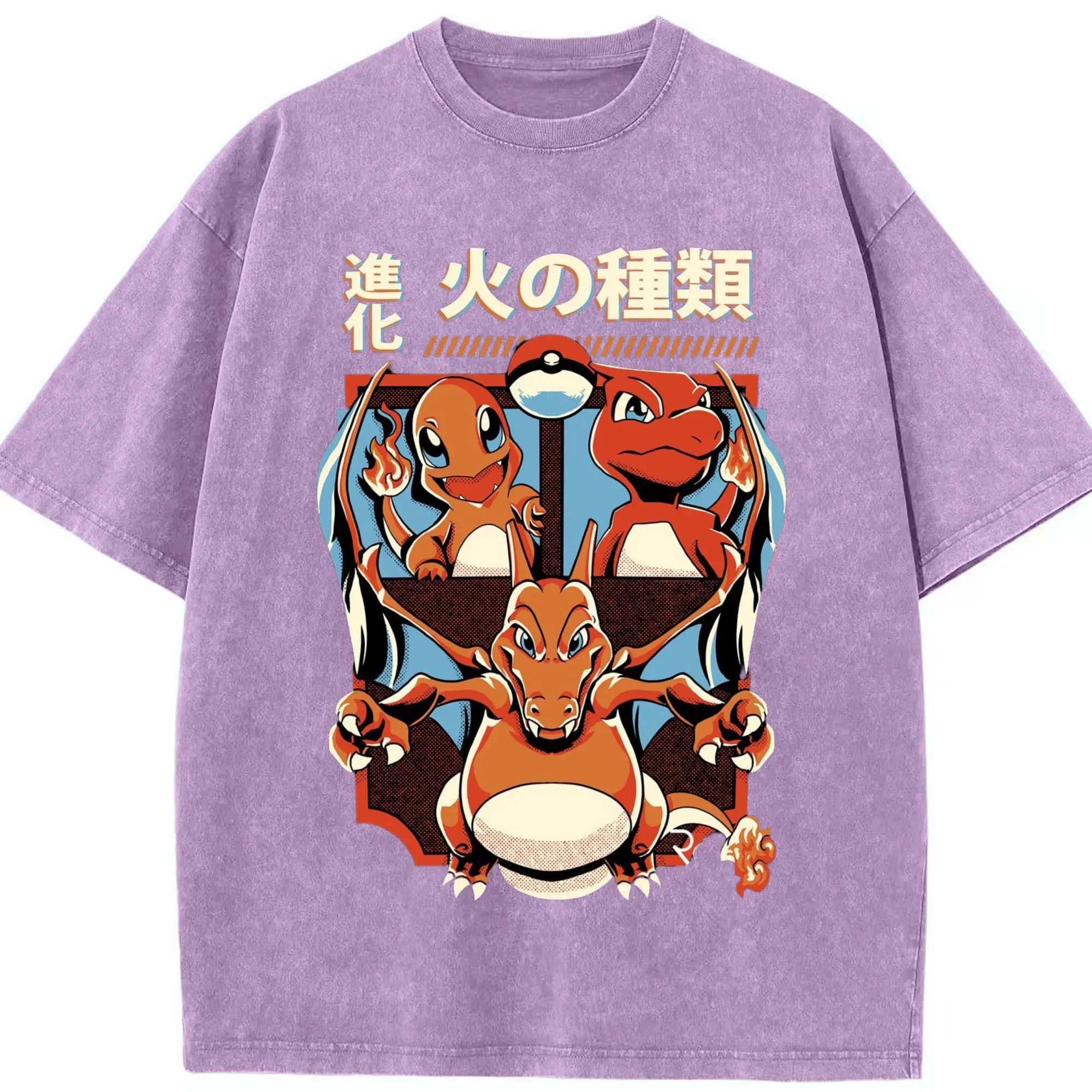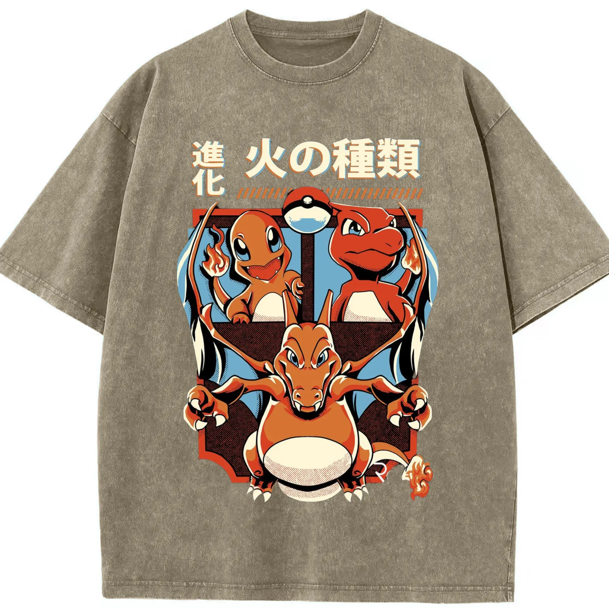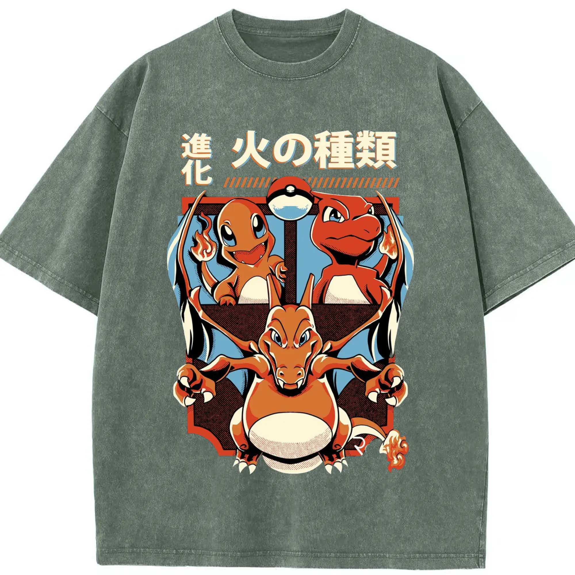 Youth​charizard t shirt - Washed Vintage Look 230g Cotton Oversized T-Shirt With Front Heat Transfer Print – Soft, Lightweight, Stylish Fit – Comfortable Casual Wear For Sports & Everyday Use