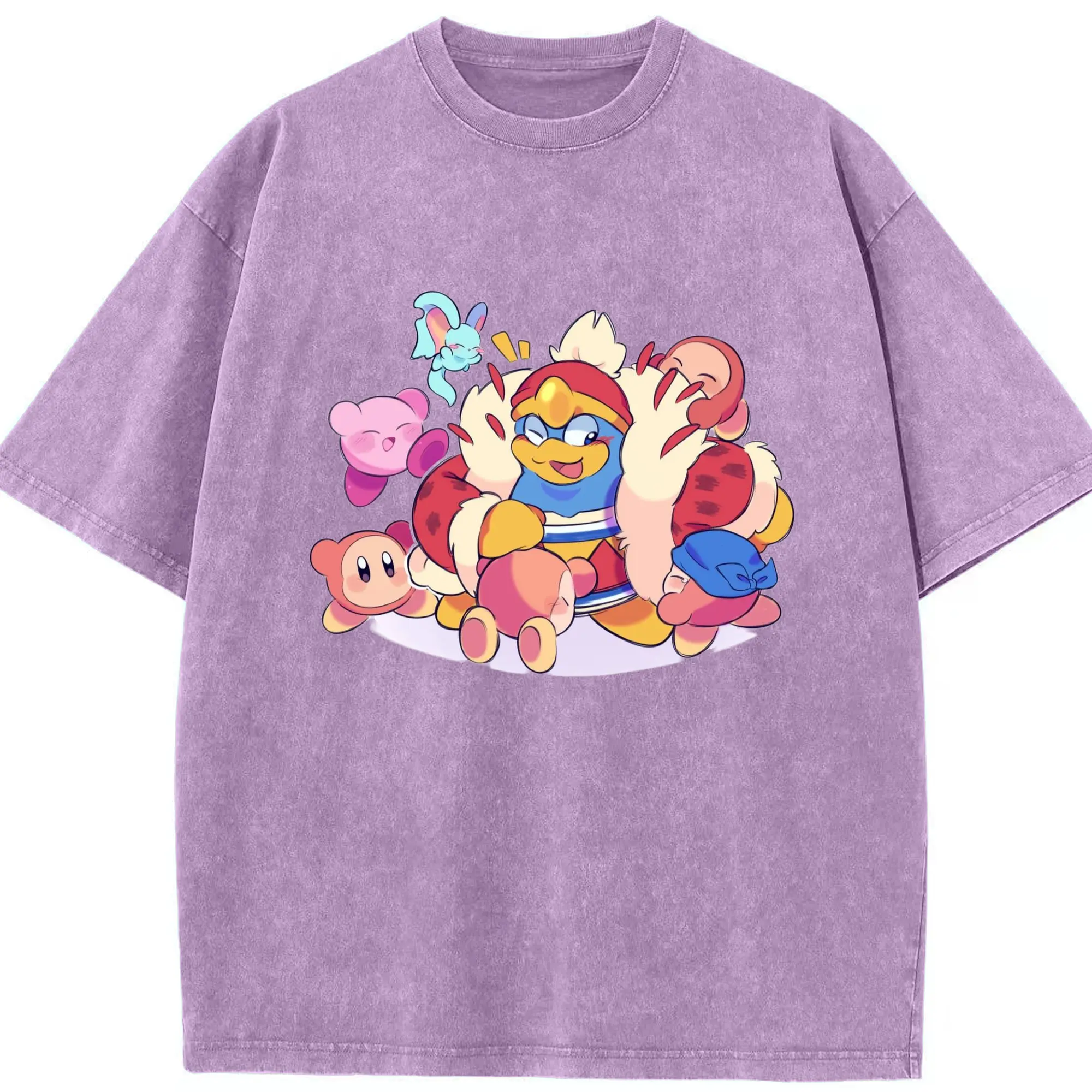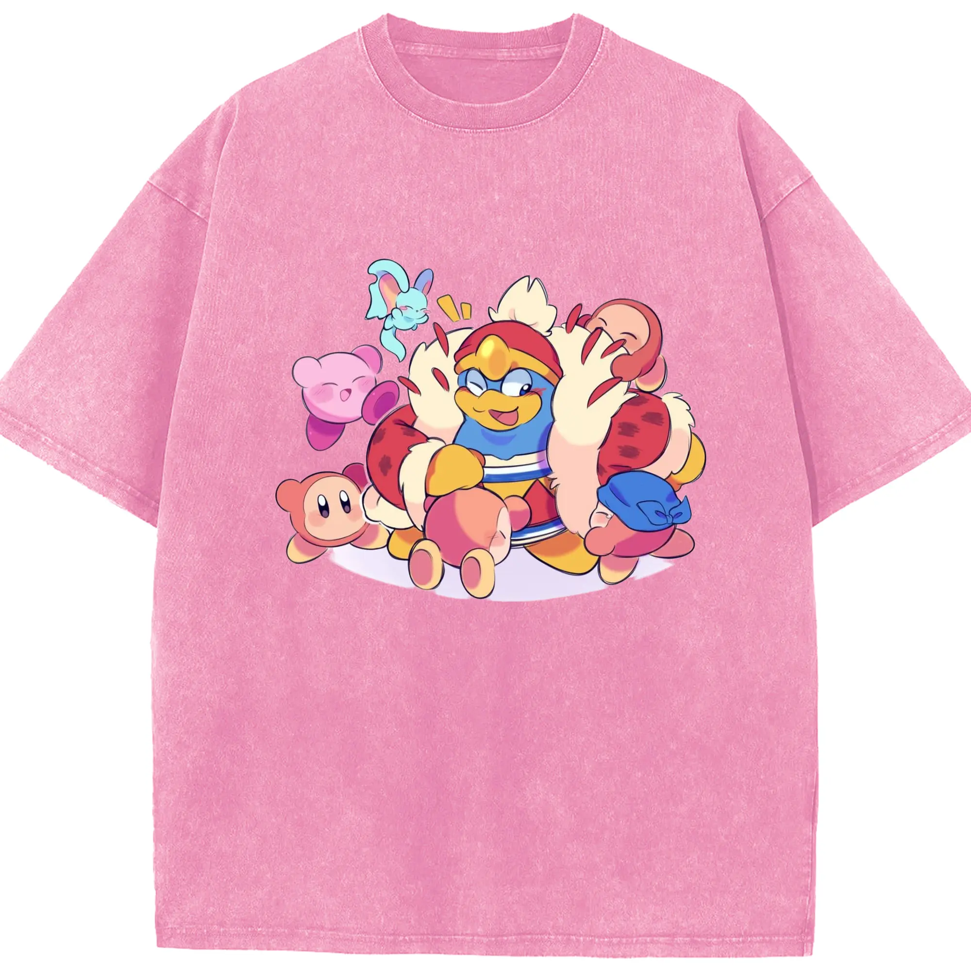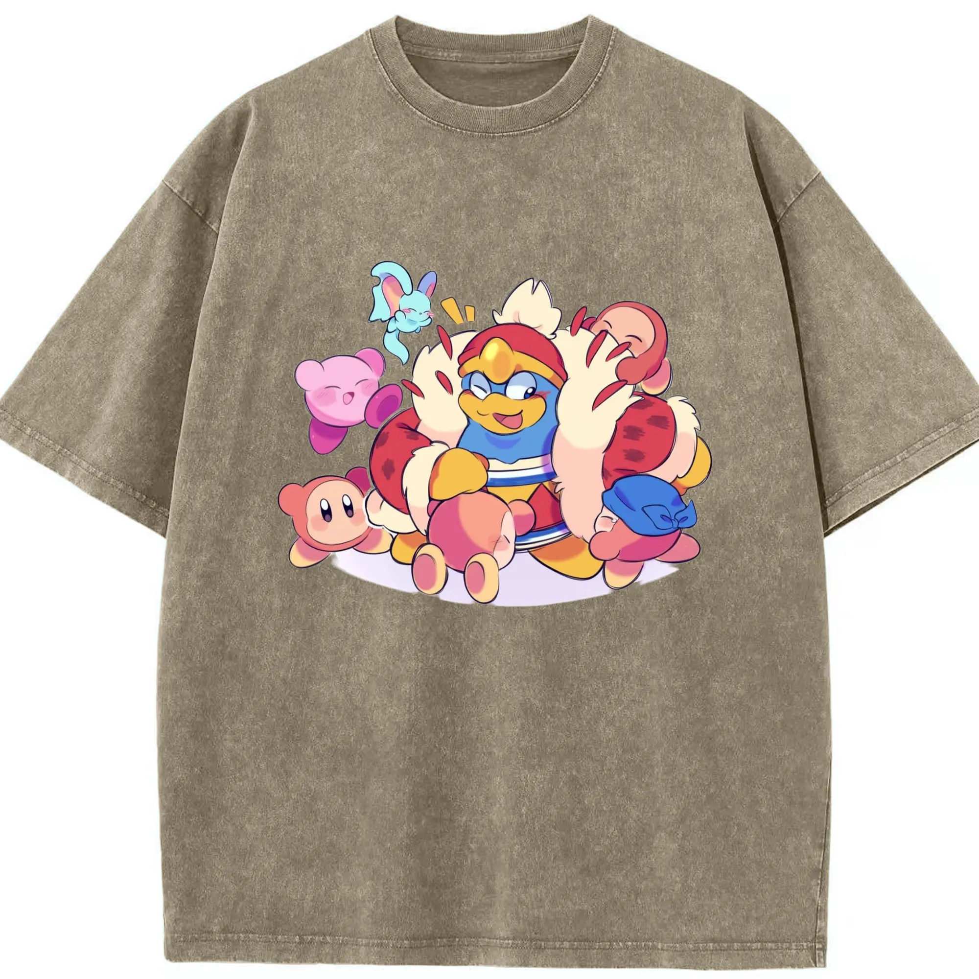 Youth King Dedede Kirby Classic T-Shirt - Washed Vintage Look 230g Cotton Oversized T-Shirt With Front Heat Transfer Print – Soft, Lightweight, Stylish Fit – Comfortable Casual Wear For Sports & Everyday Use