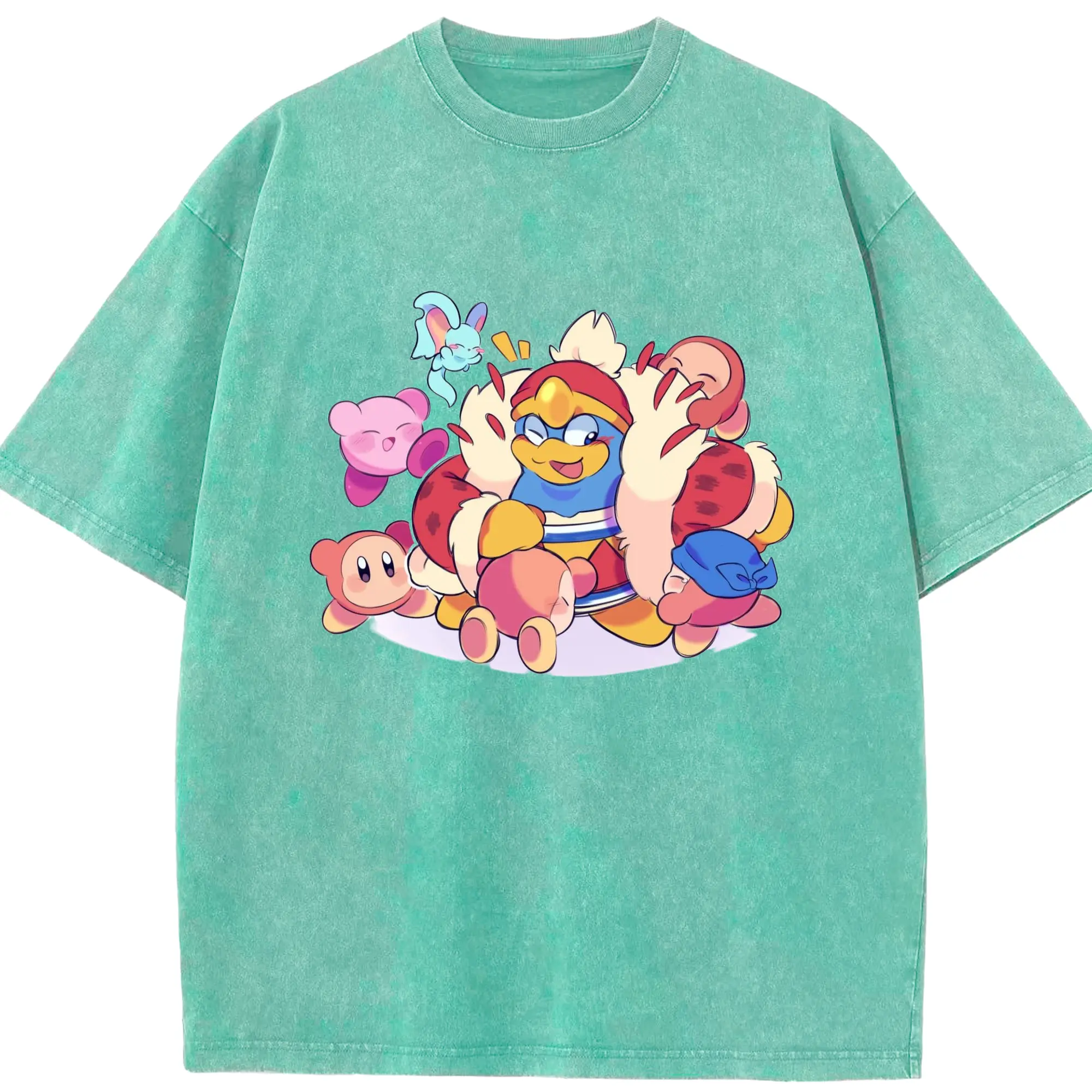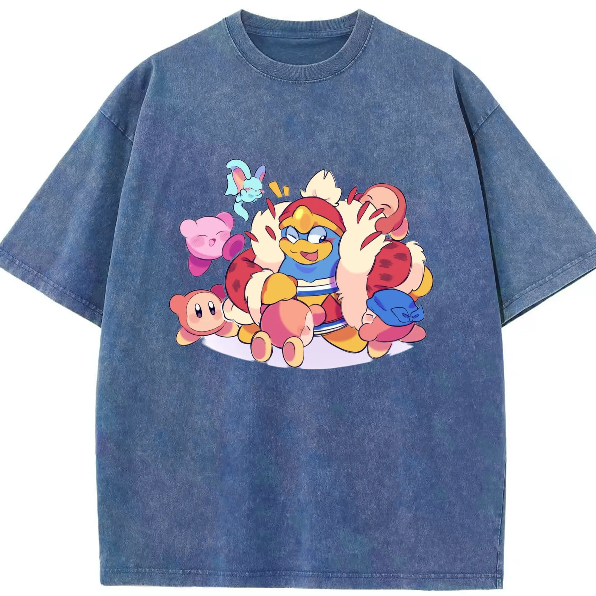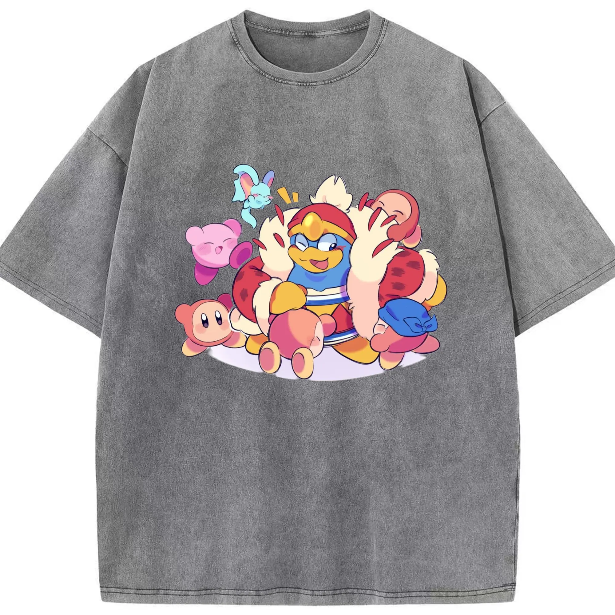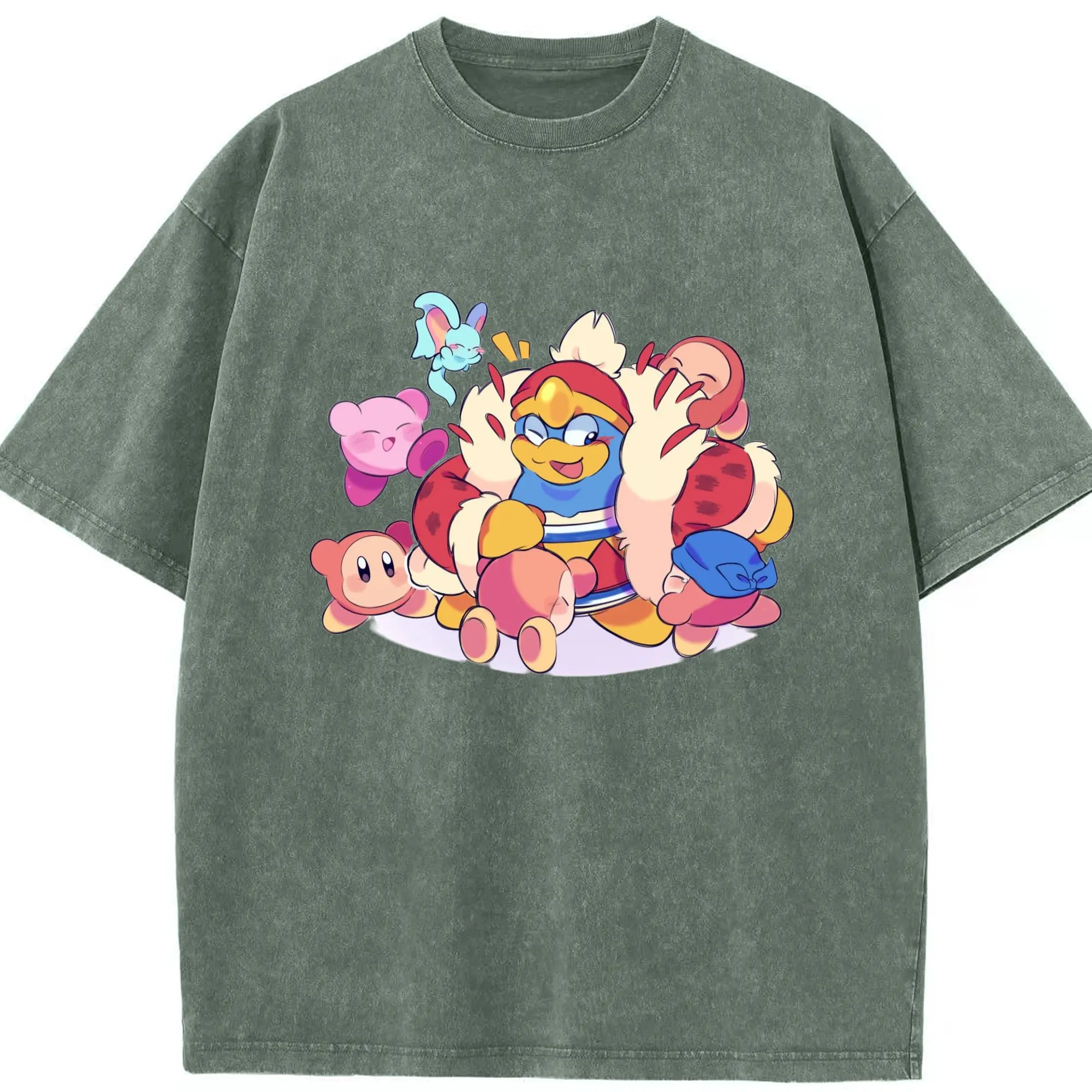 Youth King Dedede Kirby Classic T-Shirt - Washed Vintage Look 230g Cotton Oversized T-Shirt With Front Heat Transfer Print – Soft, Lightweight, Stylish Fit – Comfortable Casual Wear For Sports & Everyday Use