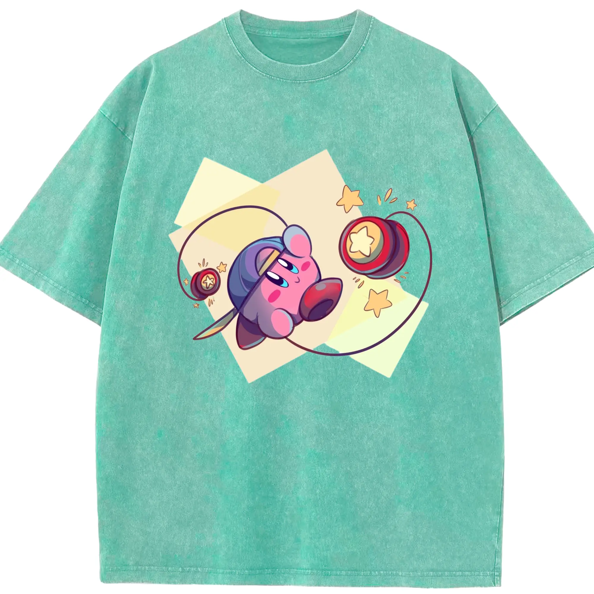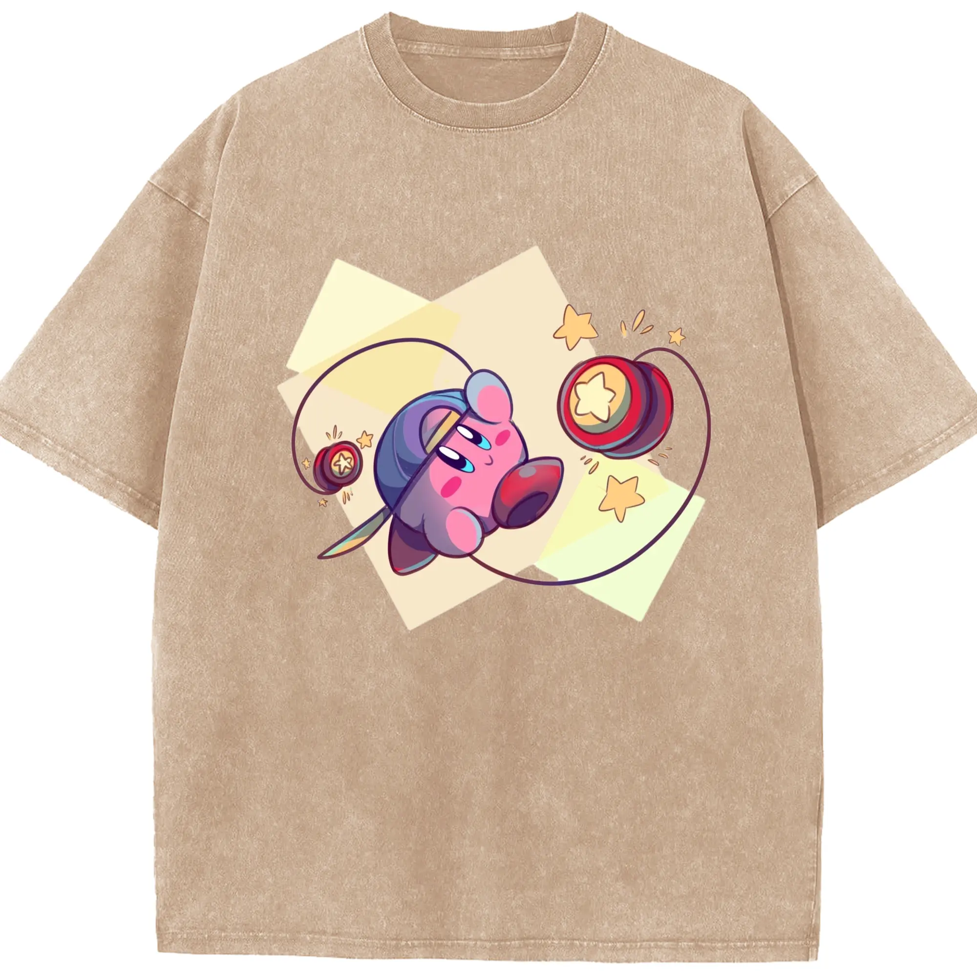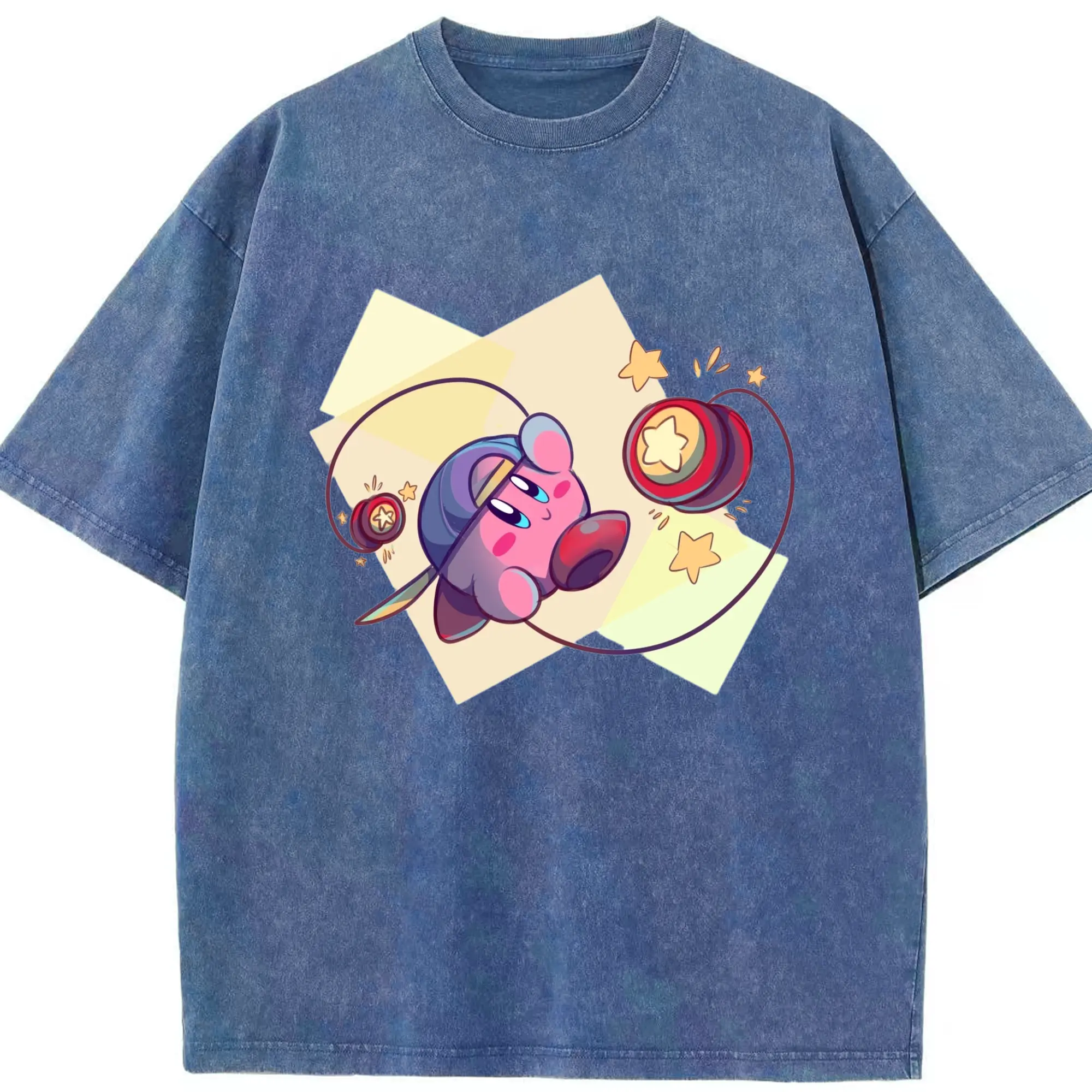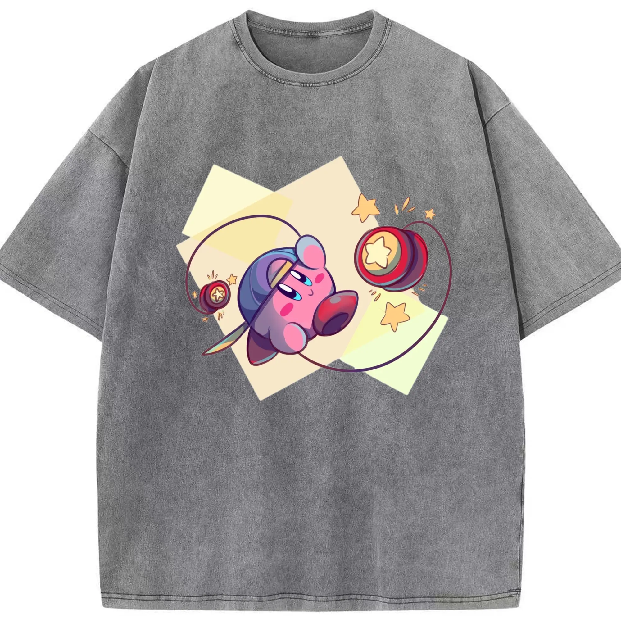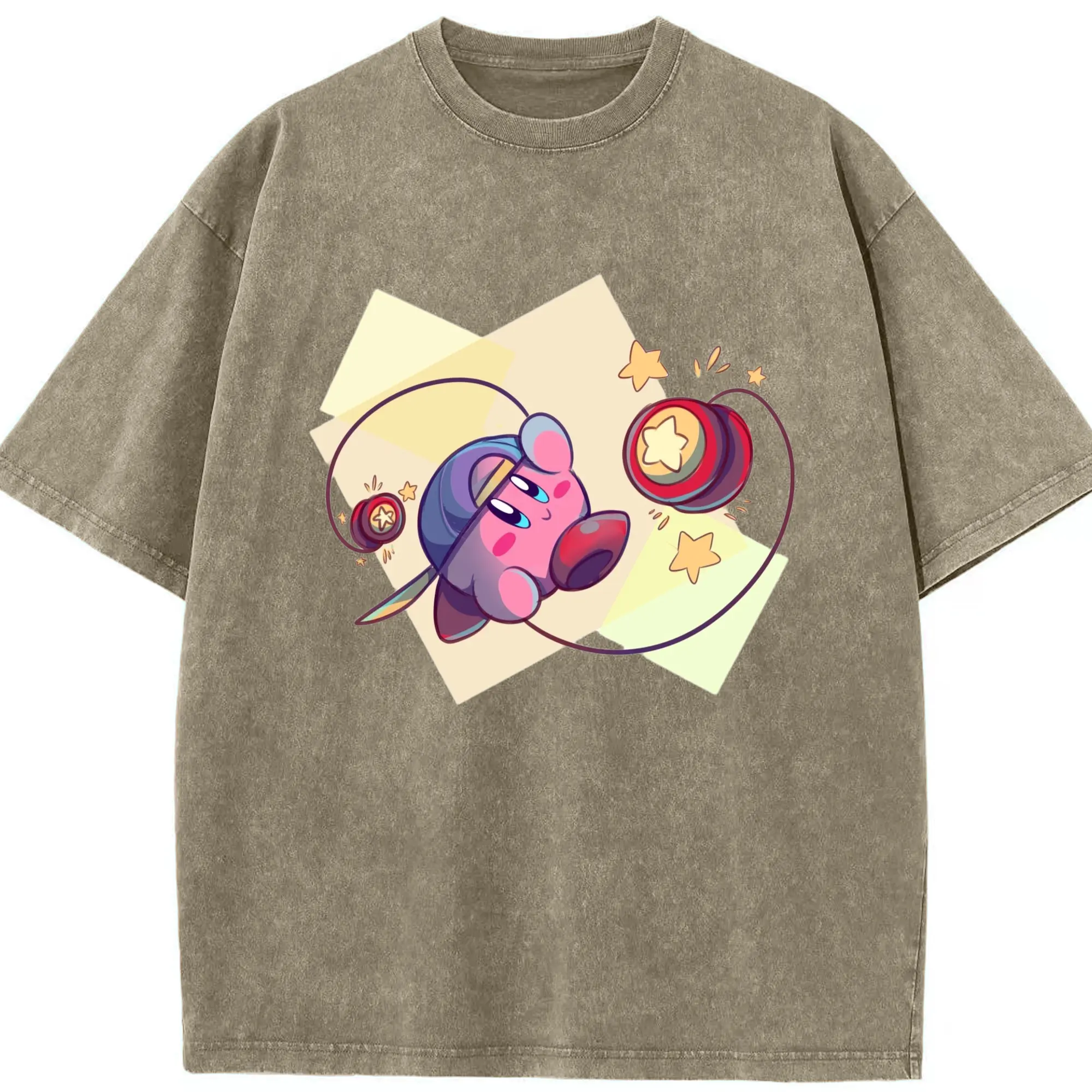 Youth Kirby tee - Washed Vintage Look 230g Cotton Oversized T-Shirt With Front Heat Transfer Print – Soft, Lightweight, Stylish Fit – Comfortable Casual Wear For Sports & Everyday Use