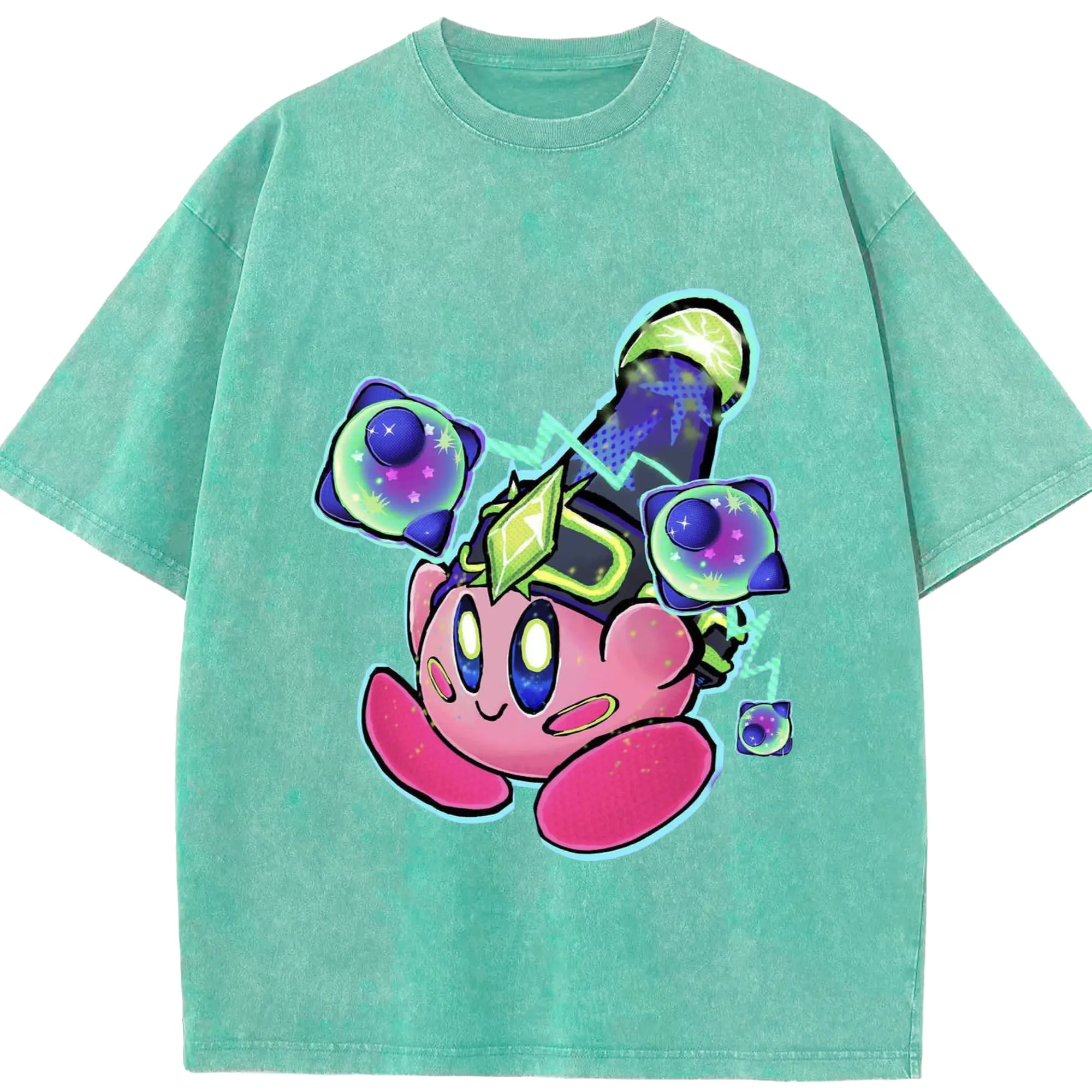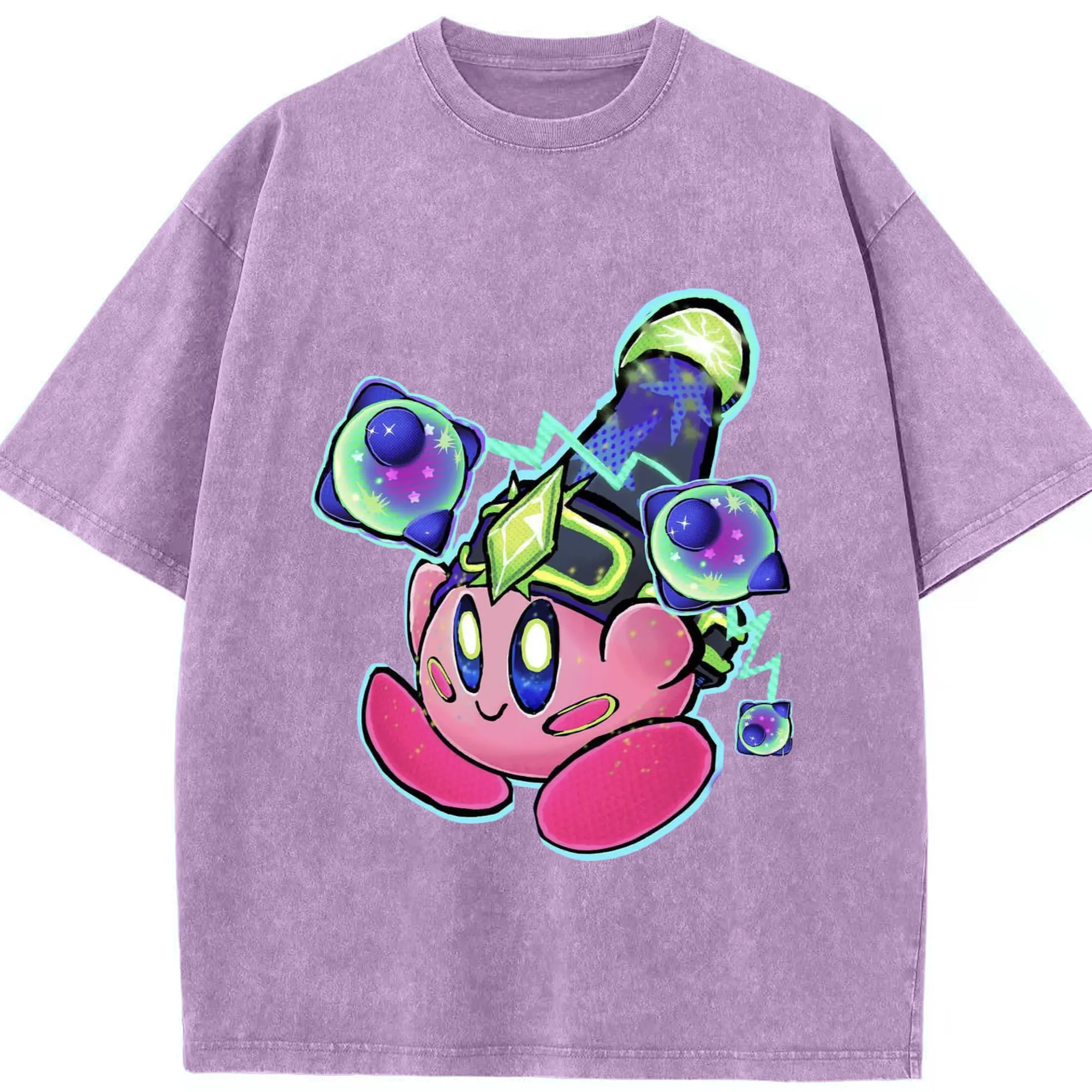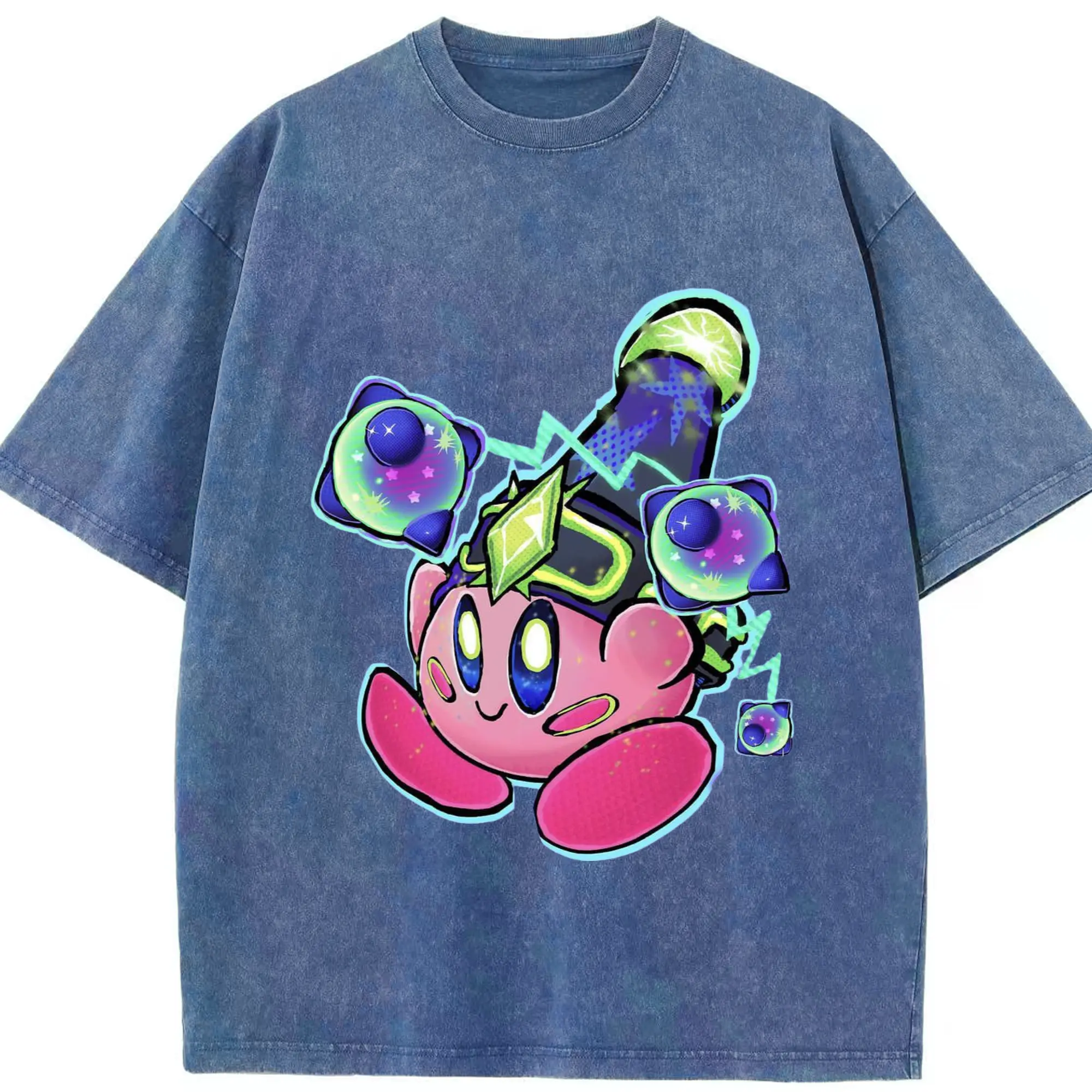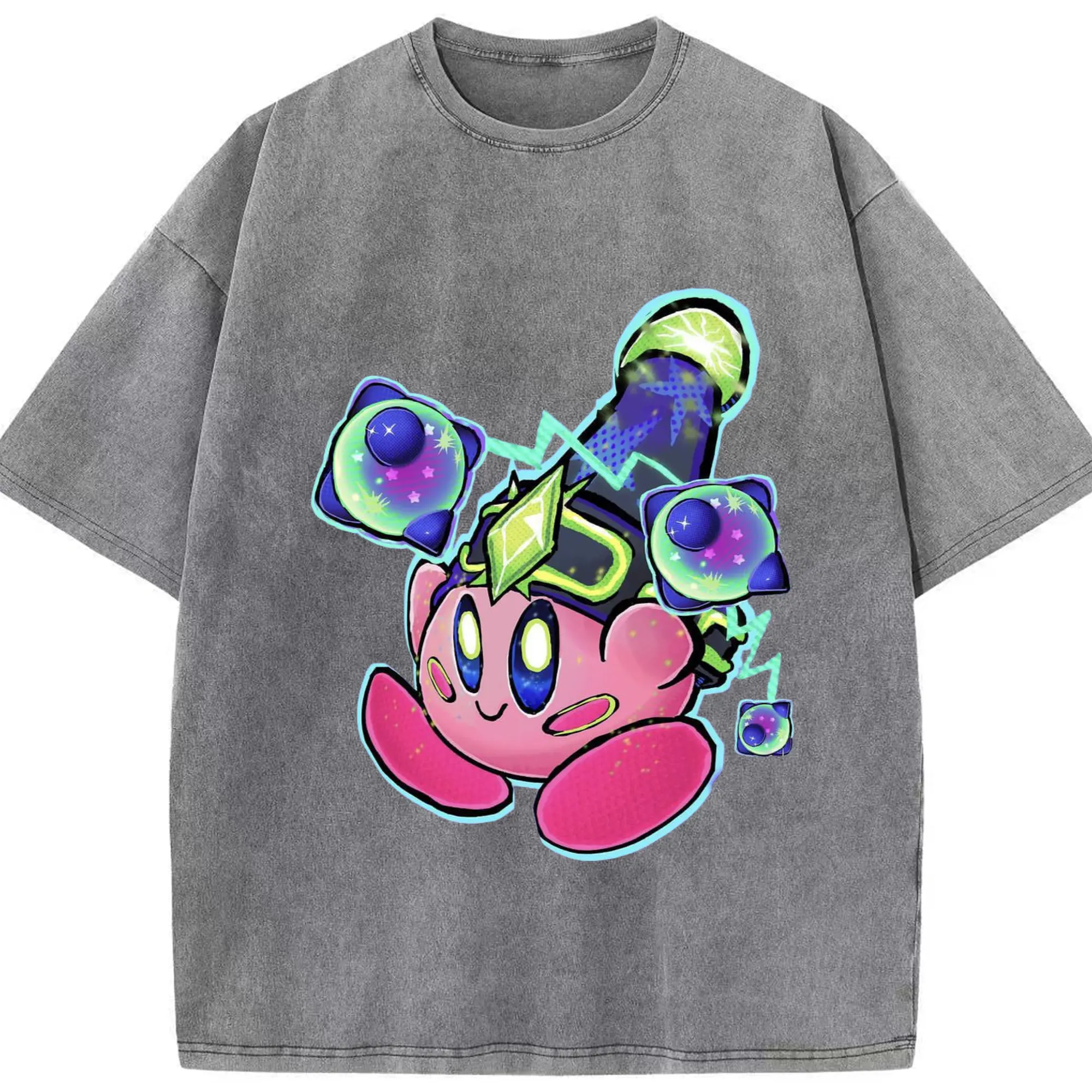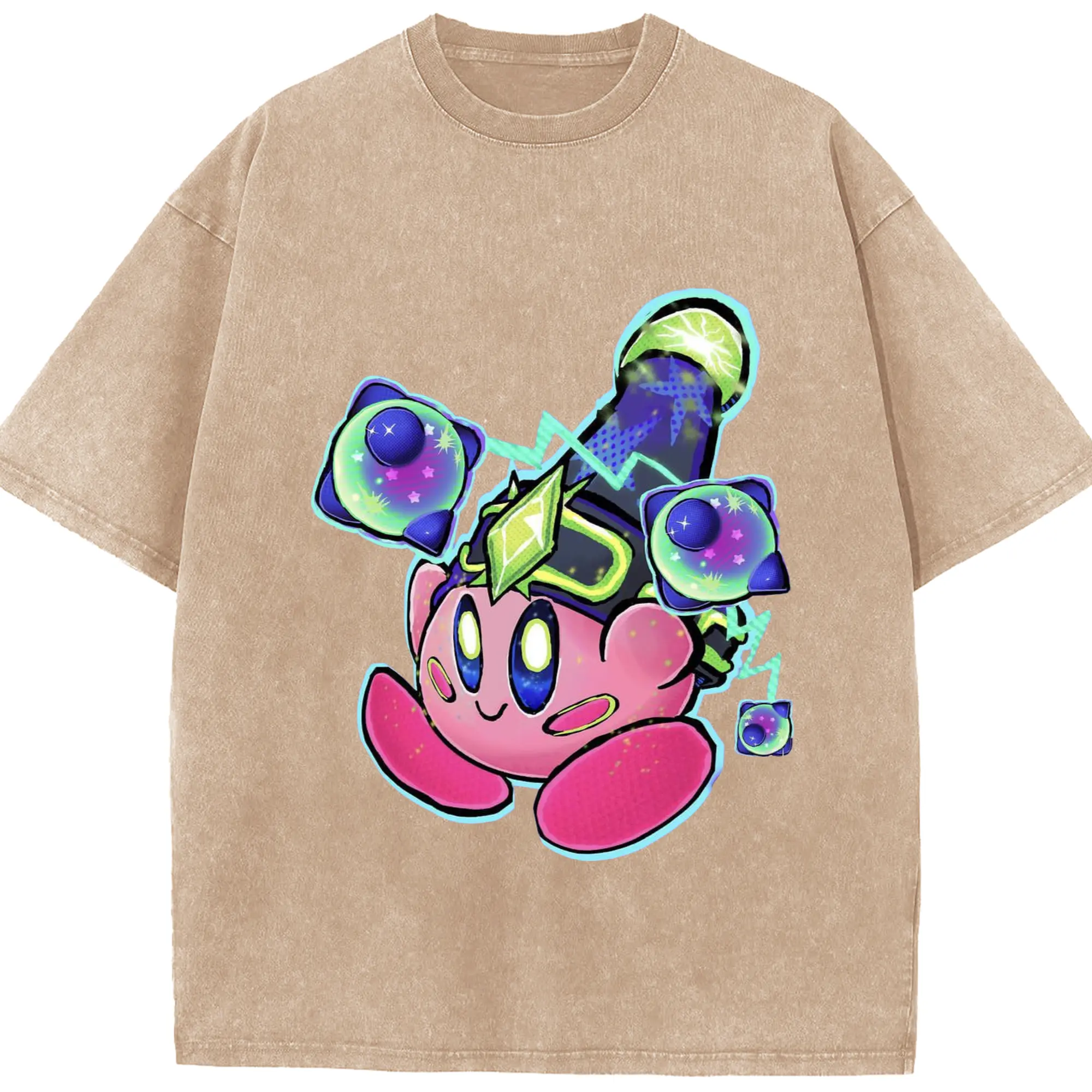 Youth Kirby t-shirt - Washed Vintage Look 230g Cotton Oversized T-Shirt With Front Heat Transfer Print – Soft, Lightweight, Stylish Fit – Comfortable Casual Wear For Sports & Everyday Use