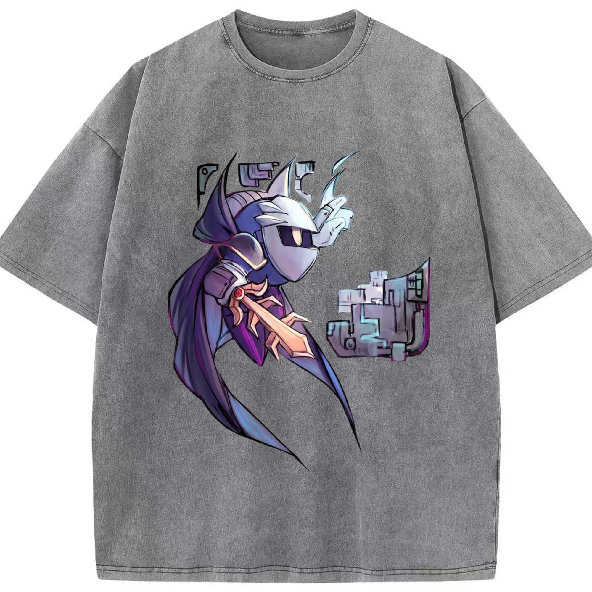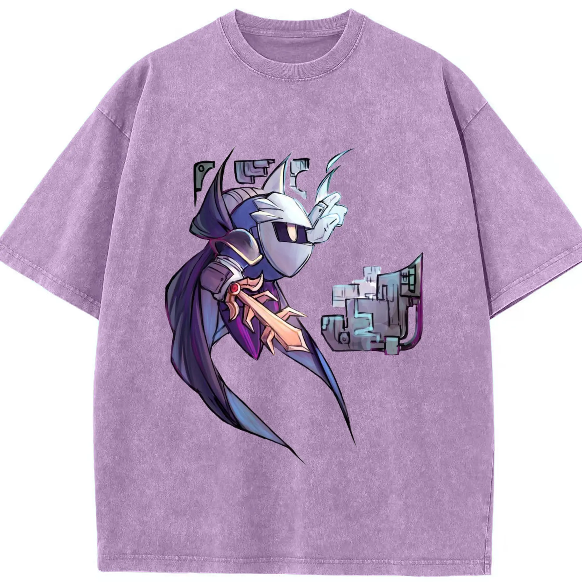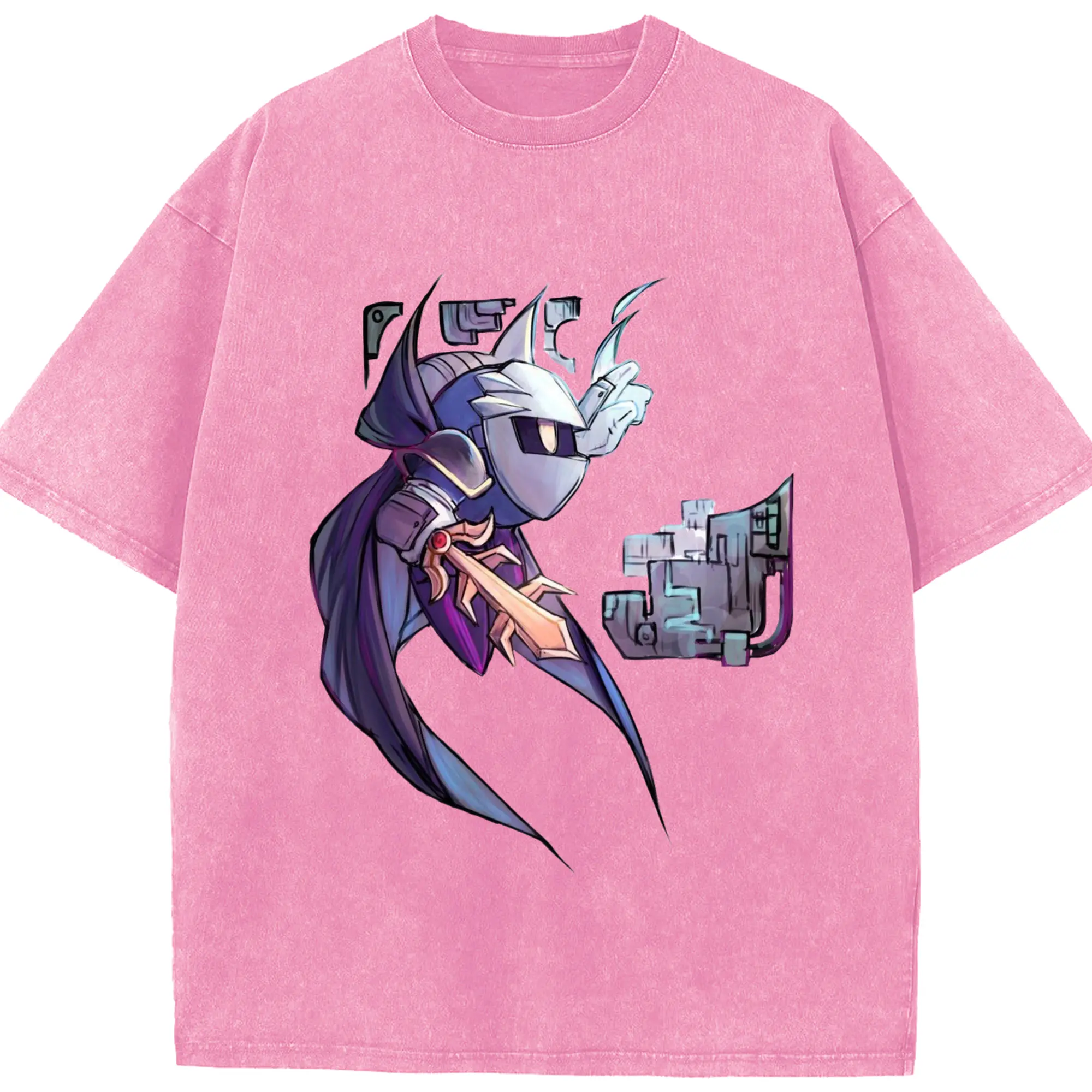 Youth Meta Knight art shirt - Washed Vintage Look 230g Cotton Oversized T-Shirt With Front Heat Transfer Print – Soft, Lightweight, Stylish Fit – Comfortable Casual Wear For Sports & Everyday Use