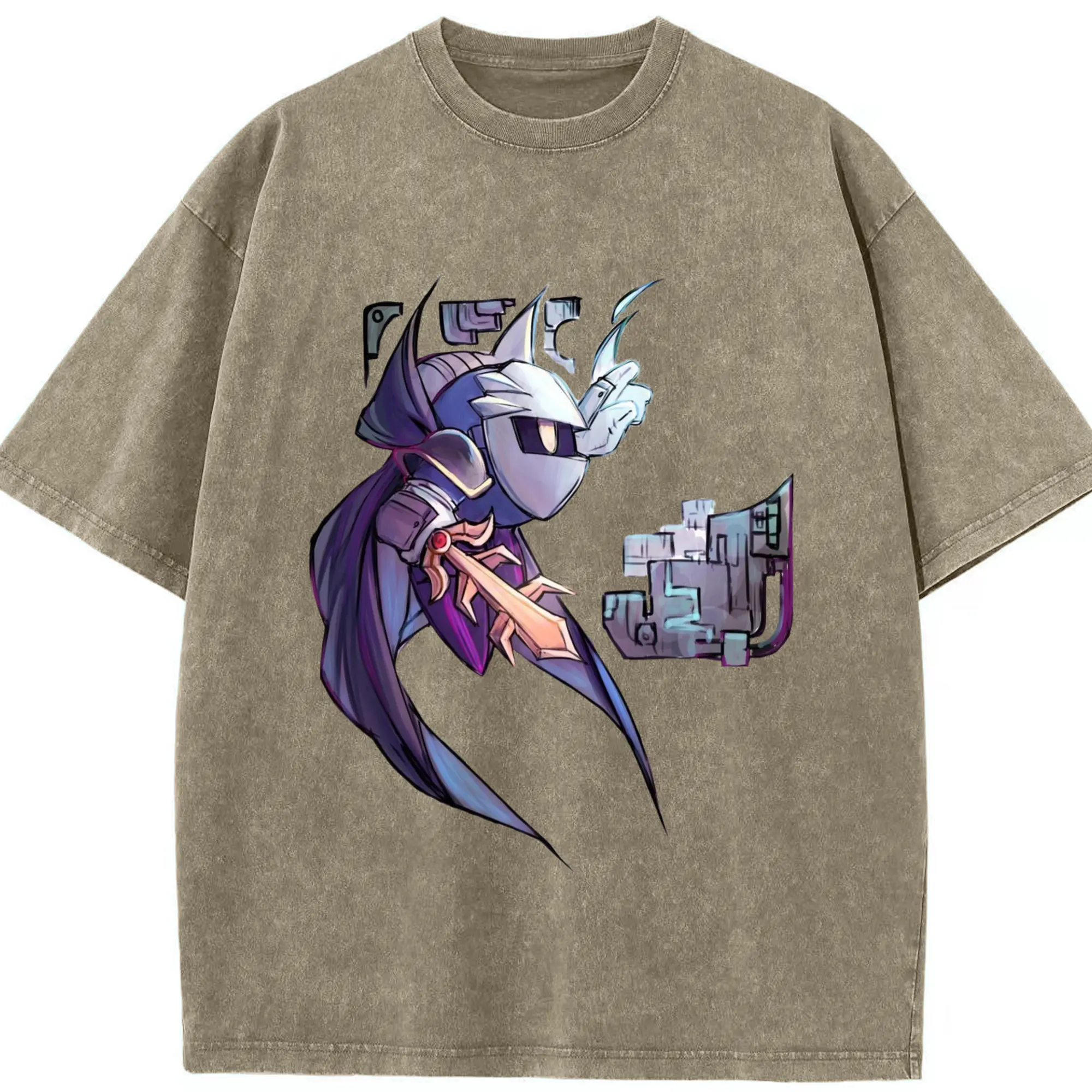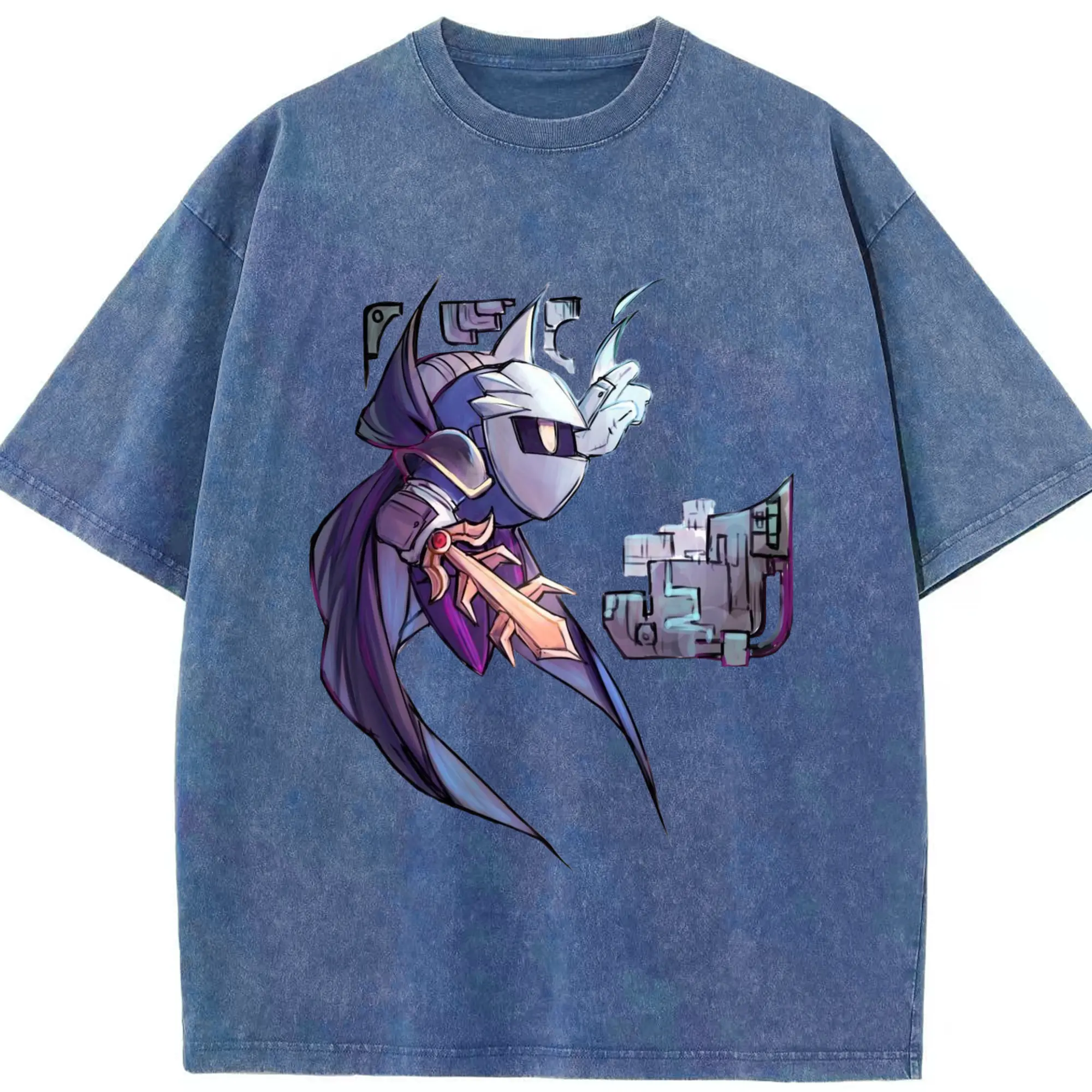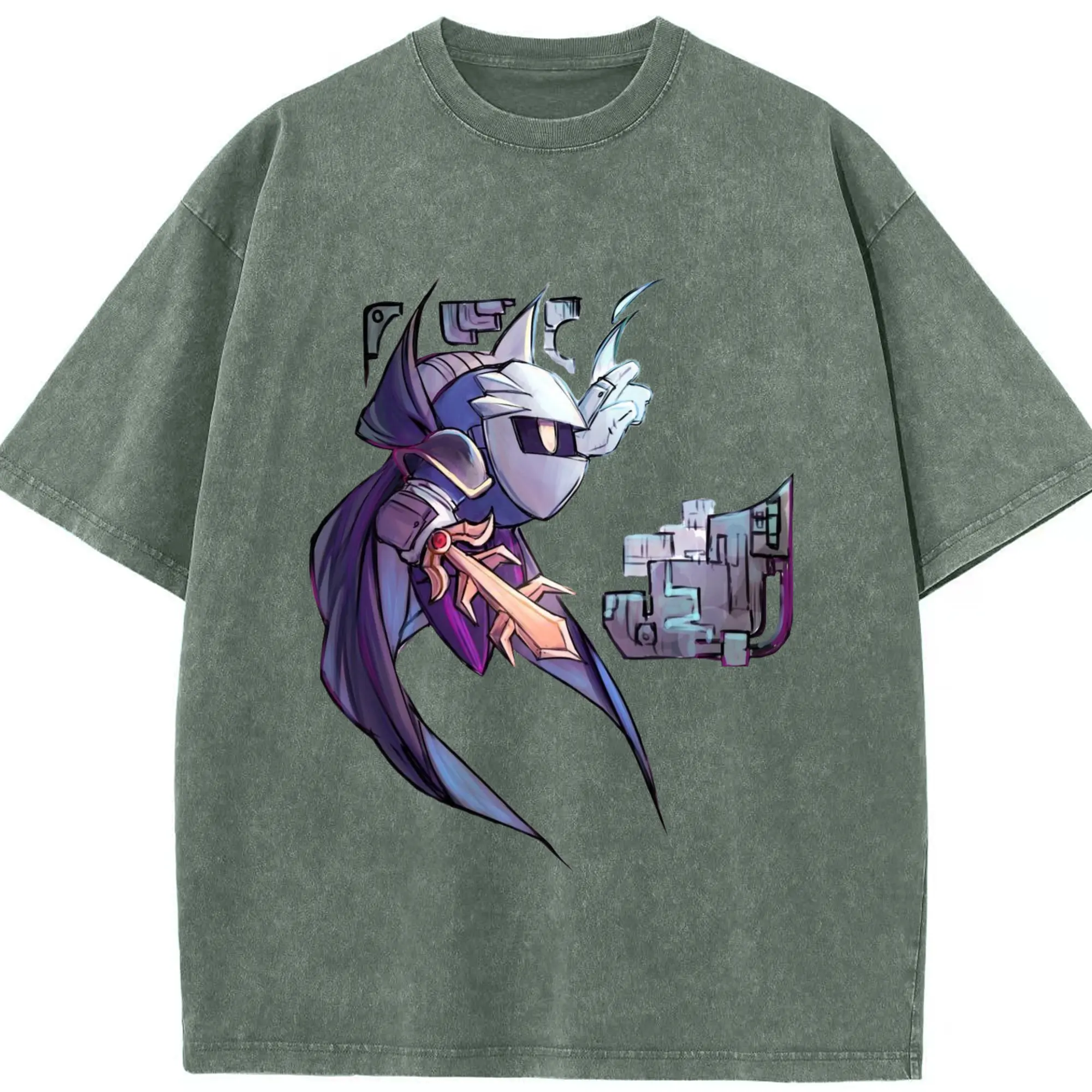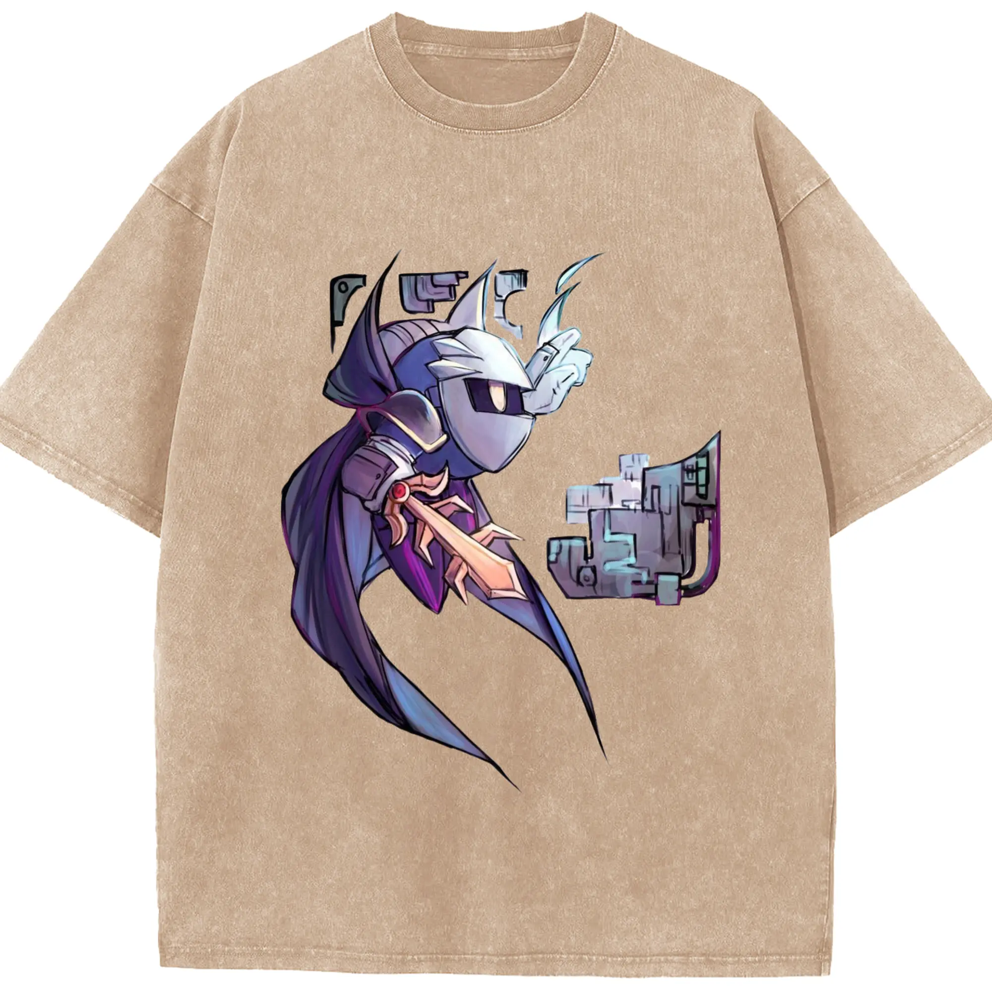Youth Meta Knight art shirt - Washed Vintage Look 230g Cotton Oversized T-Shirt With Front Heat Transfer Print – Soft, Lightweight, Stylish Fit – Comfortable Casual Wear For Sports & Everyday Use