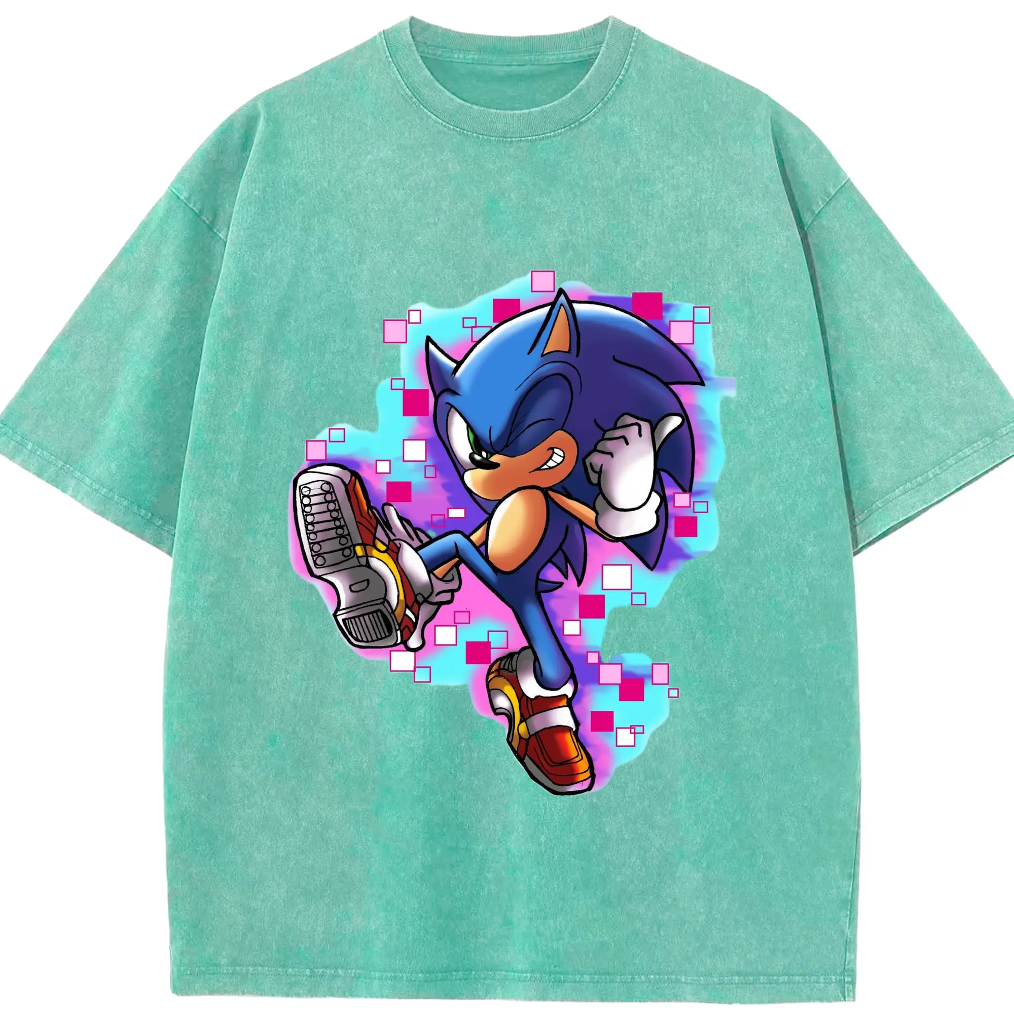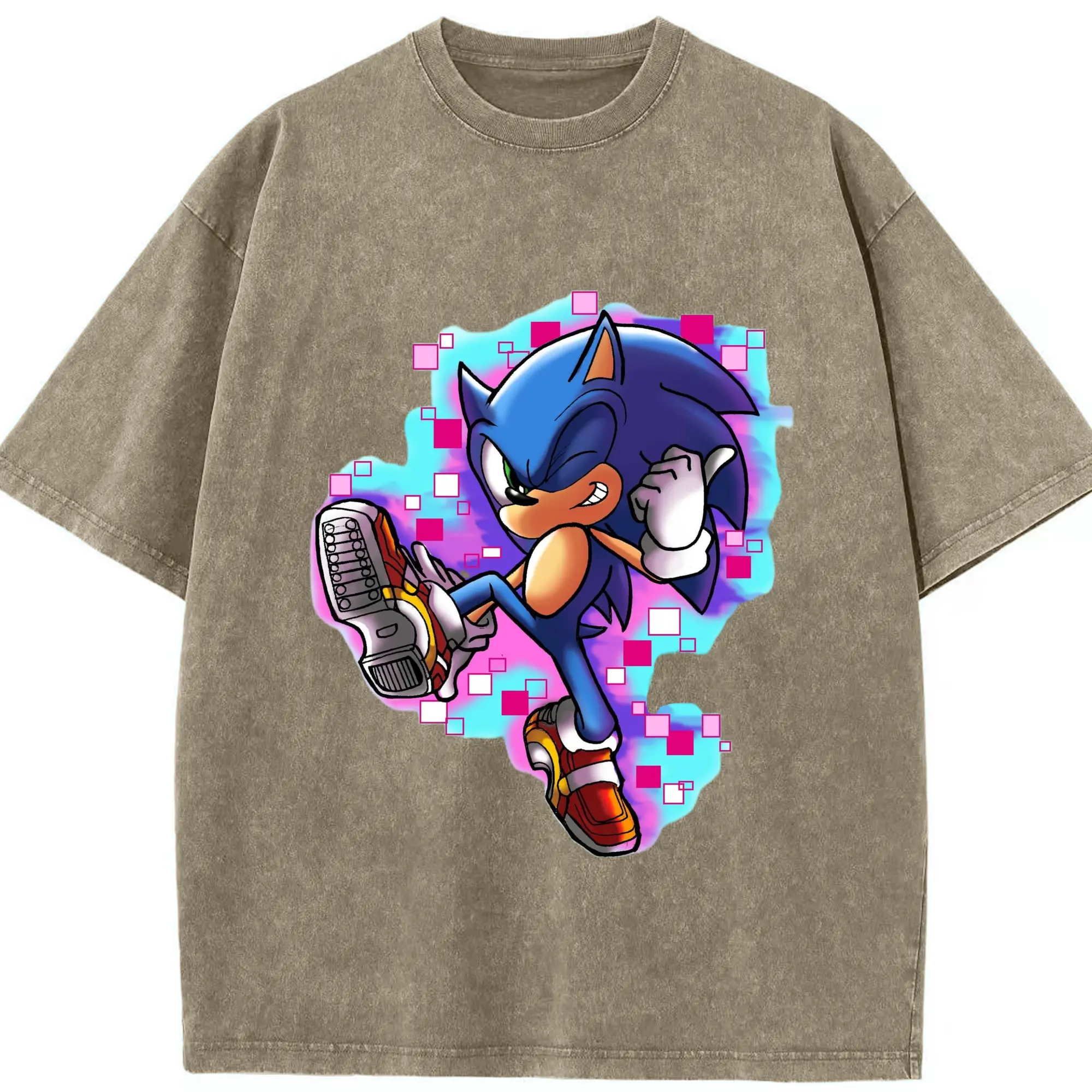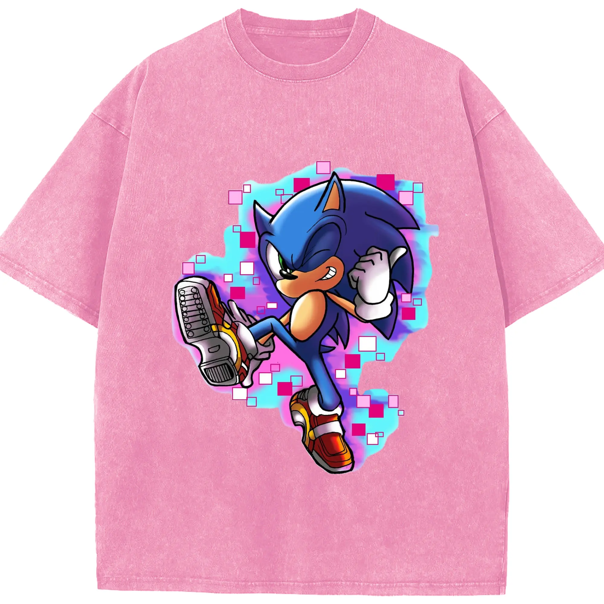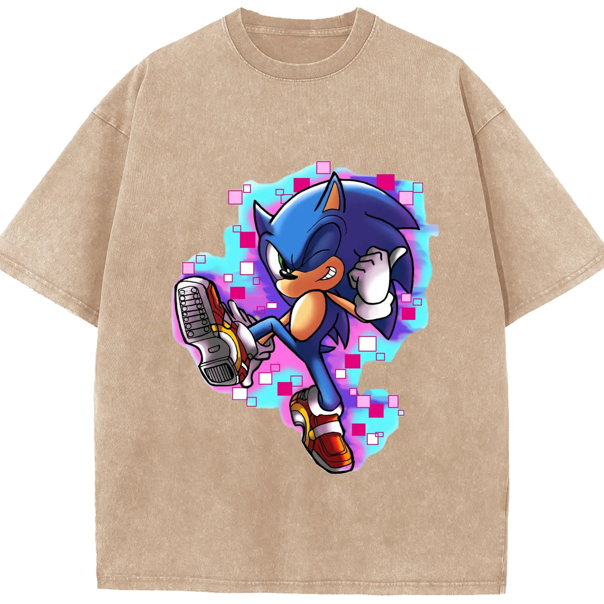 Youth Super Sonic tee - Washed Vintage Look 230g Cotton Oversized T-Shirt With Front Heat Transfer Print – Soft, Lightweight, Stylish Fit – Comfortable Casual Wear For Sports & Everyday Use