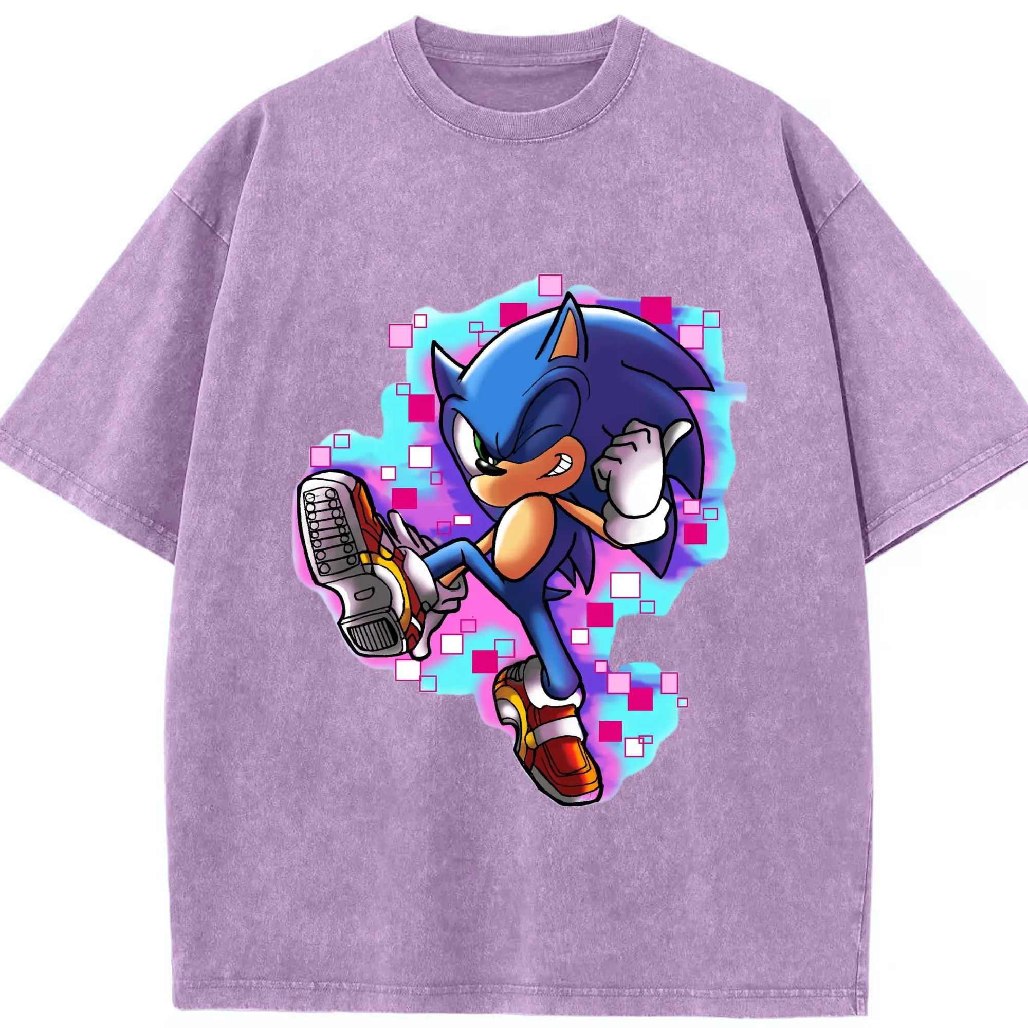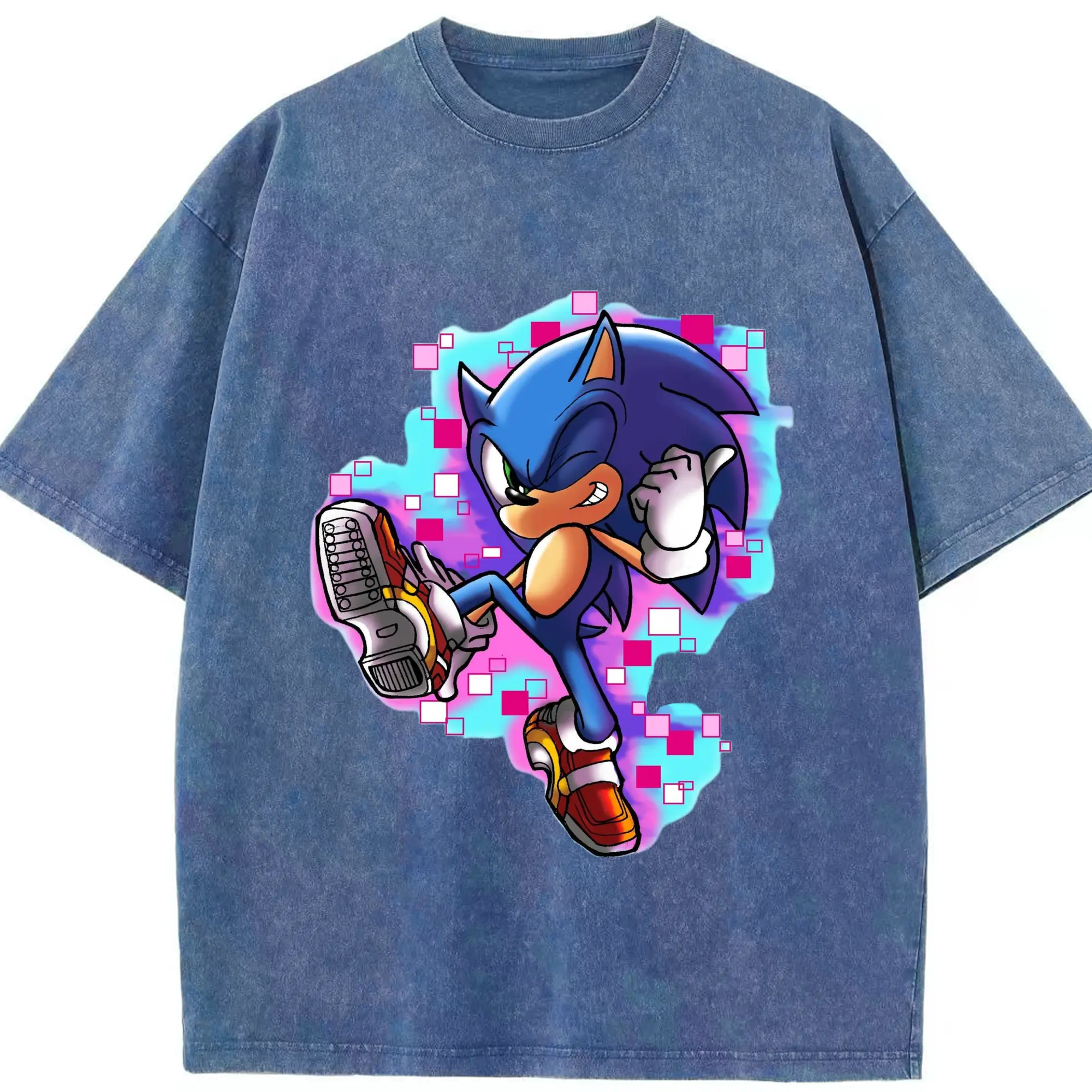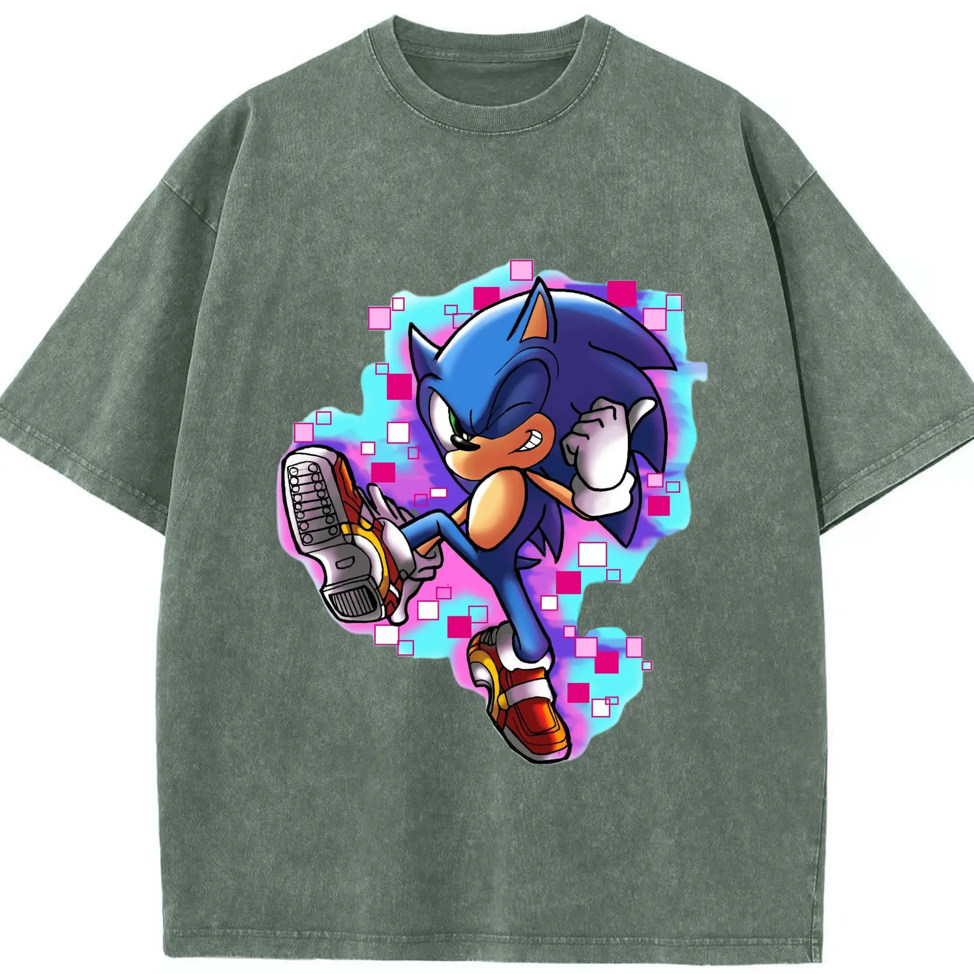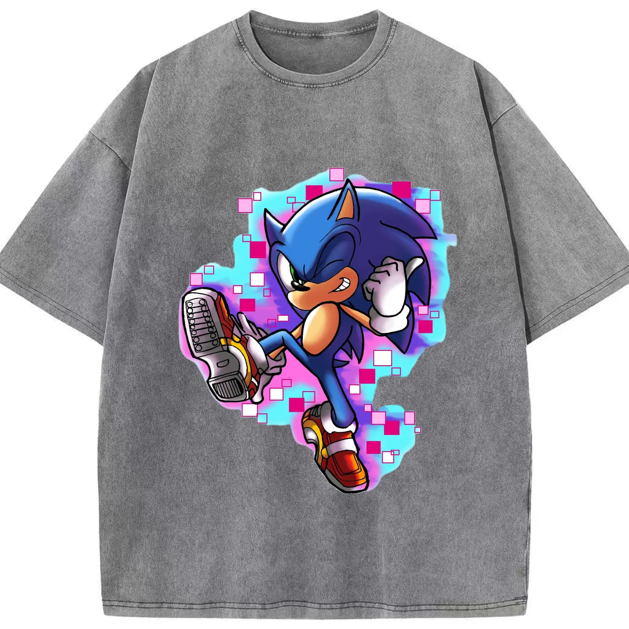 Youth Super Sonic tee - Washed Vintage Look 230g Cotton Oversized T-Shirt With Front Heat Transfer Print – Soft, Lightweight, Stylish Fit – Comfortable Casual Wear For Sports & Everyday Use