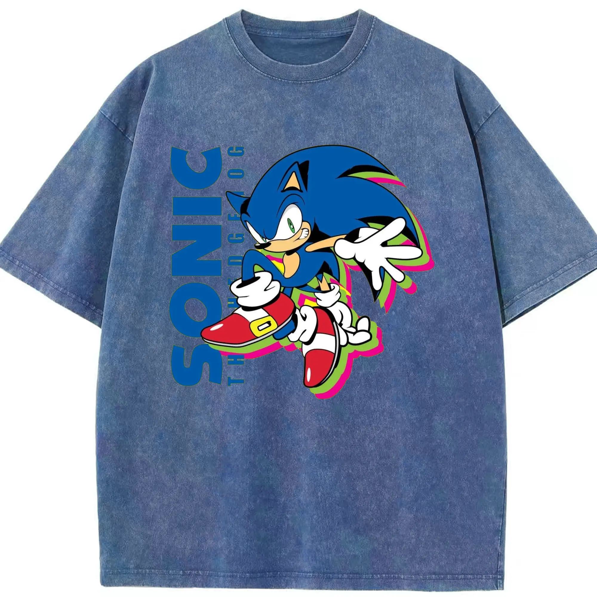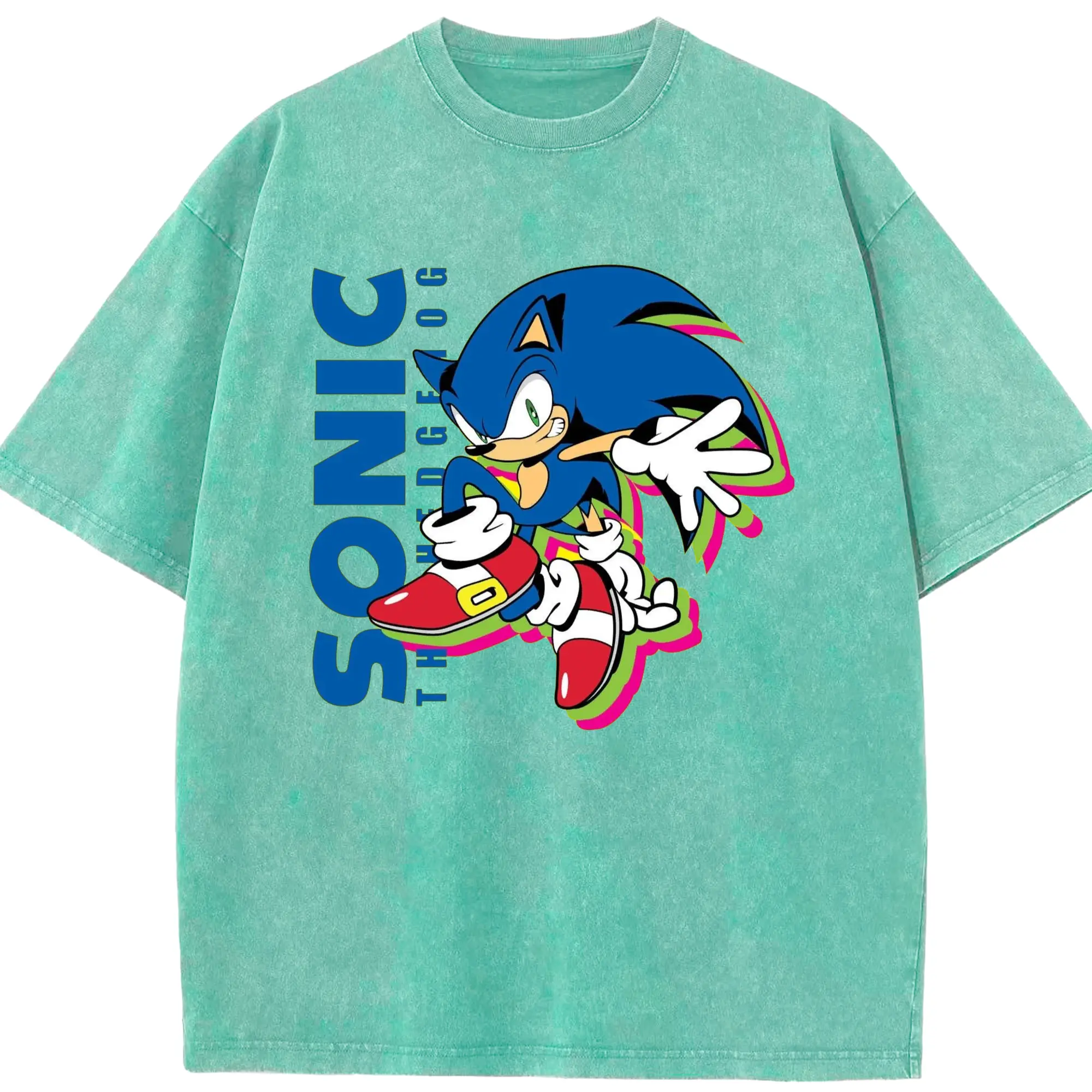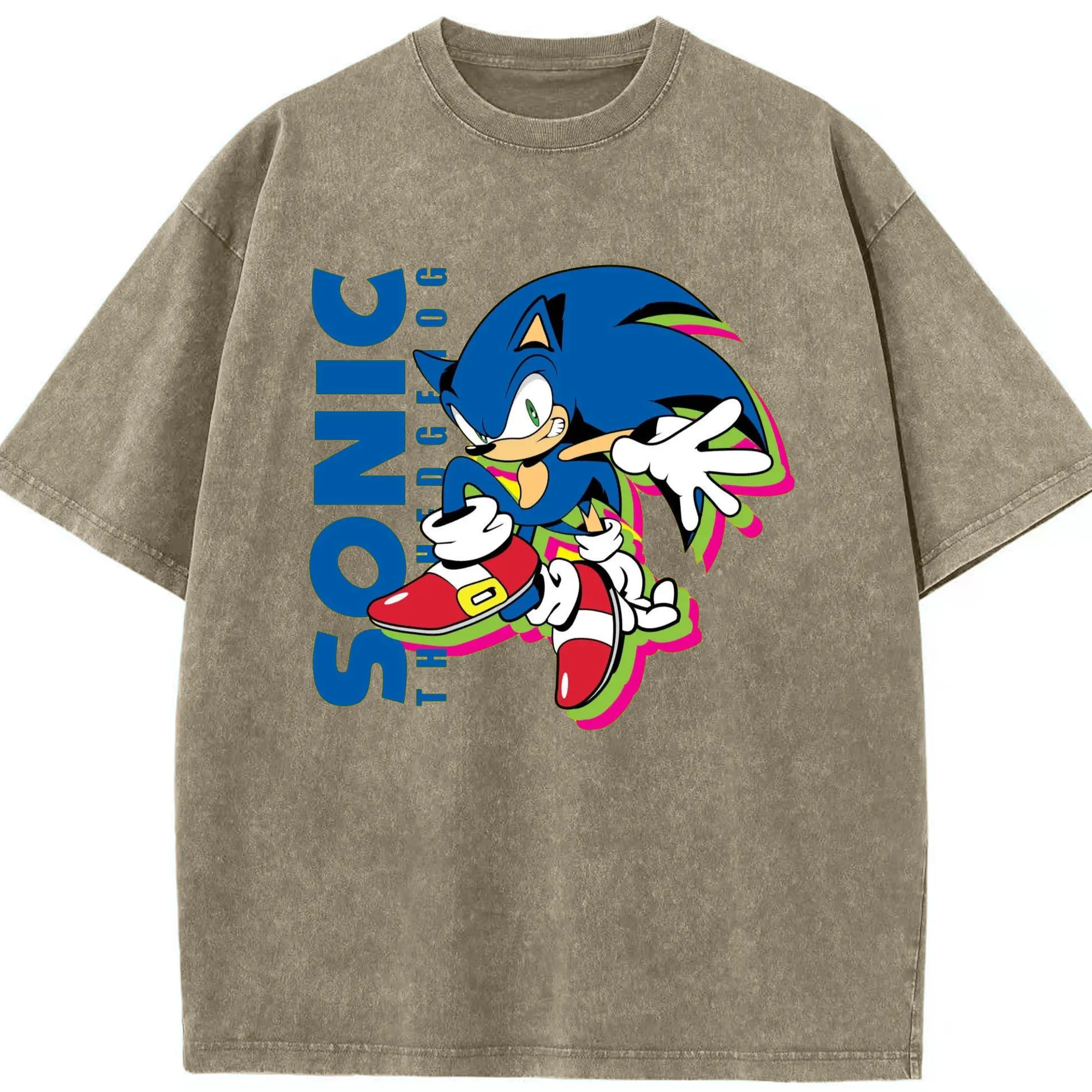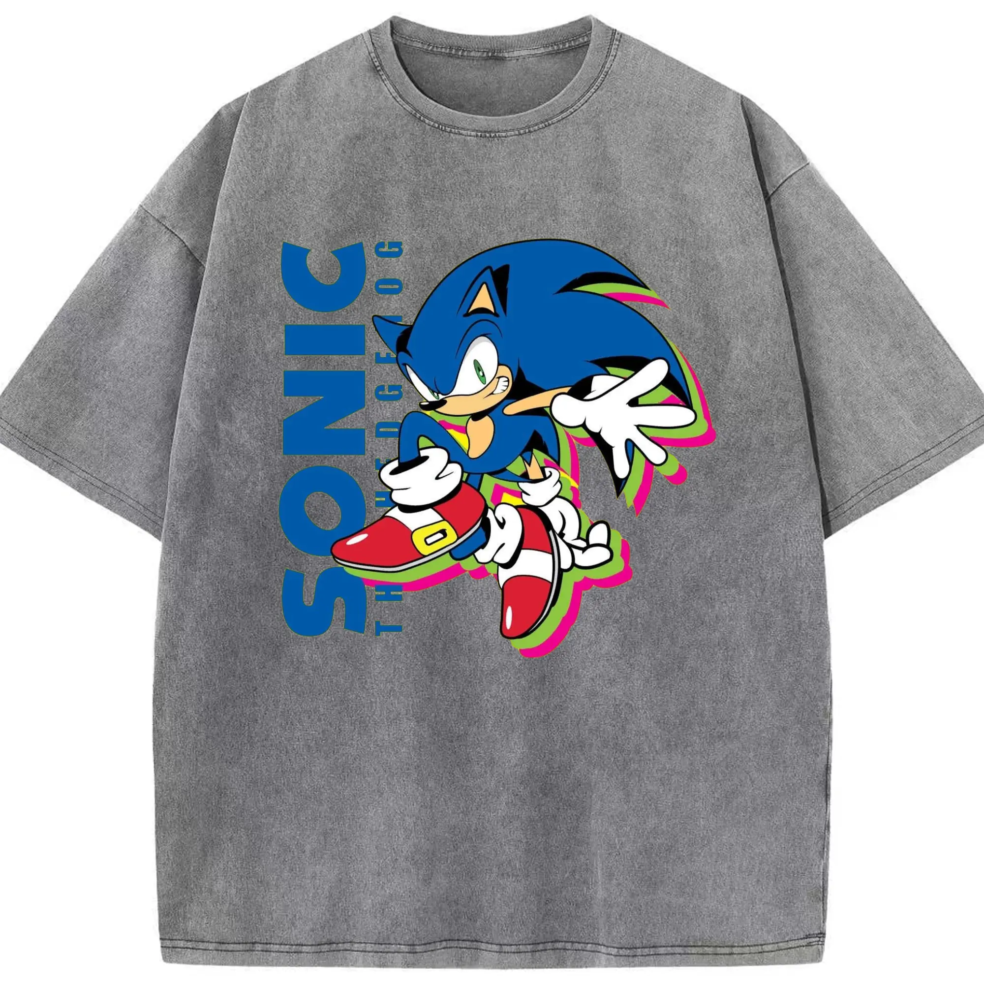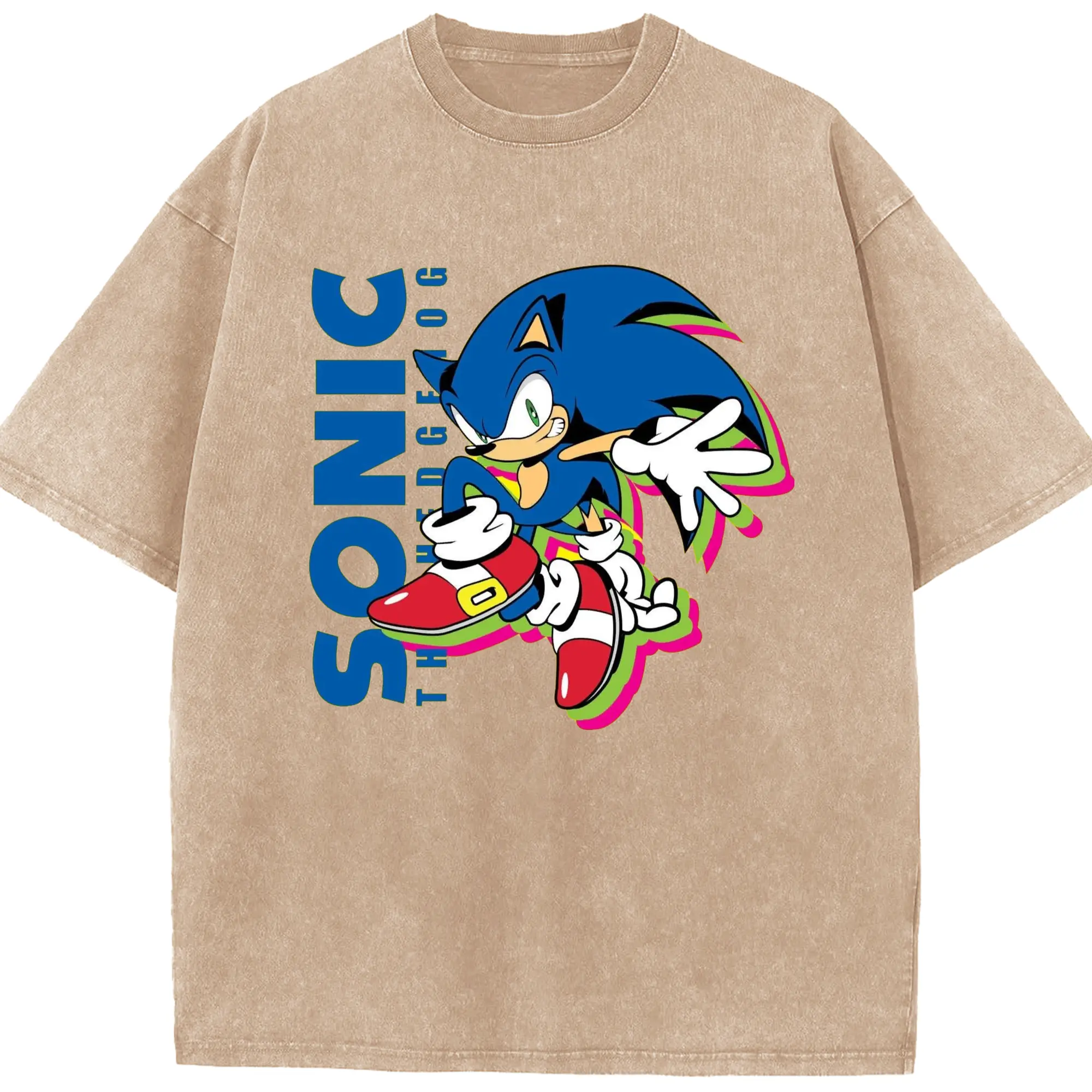 Youth Super Sonic t-shirt - Washed Vintage Look 230g Cotton Oversized T-Shirt With Front Heat Transfer Print – Soft, Lightweight, Stylish Fit – Comfortable Casual Wear For Sports & Everyday Use
