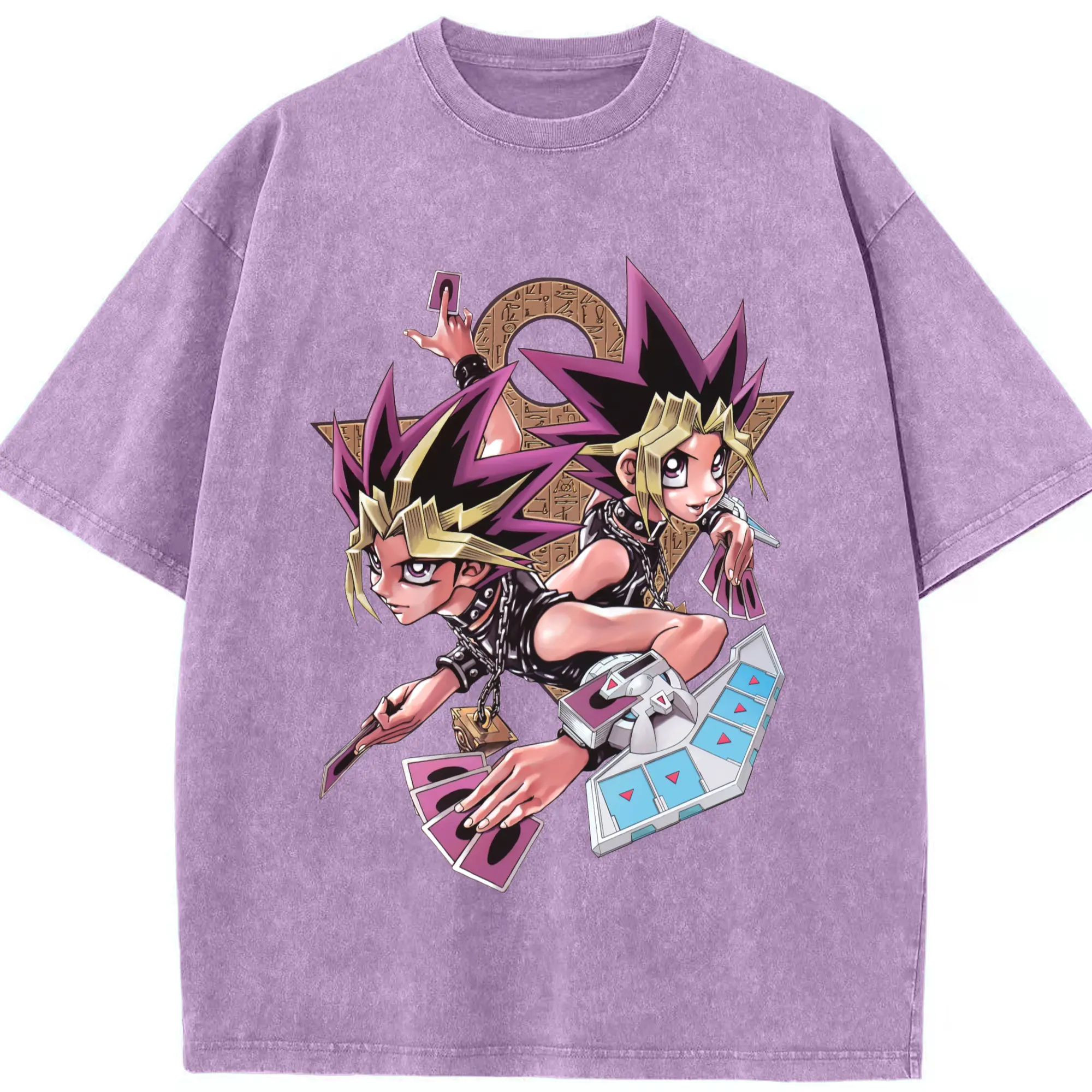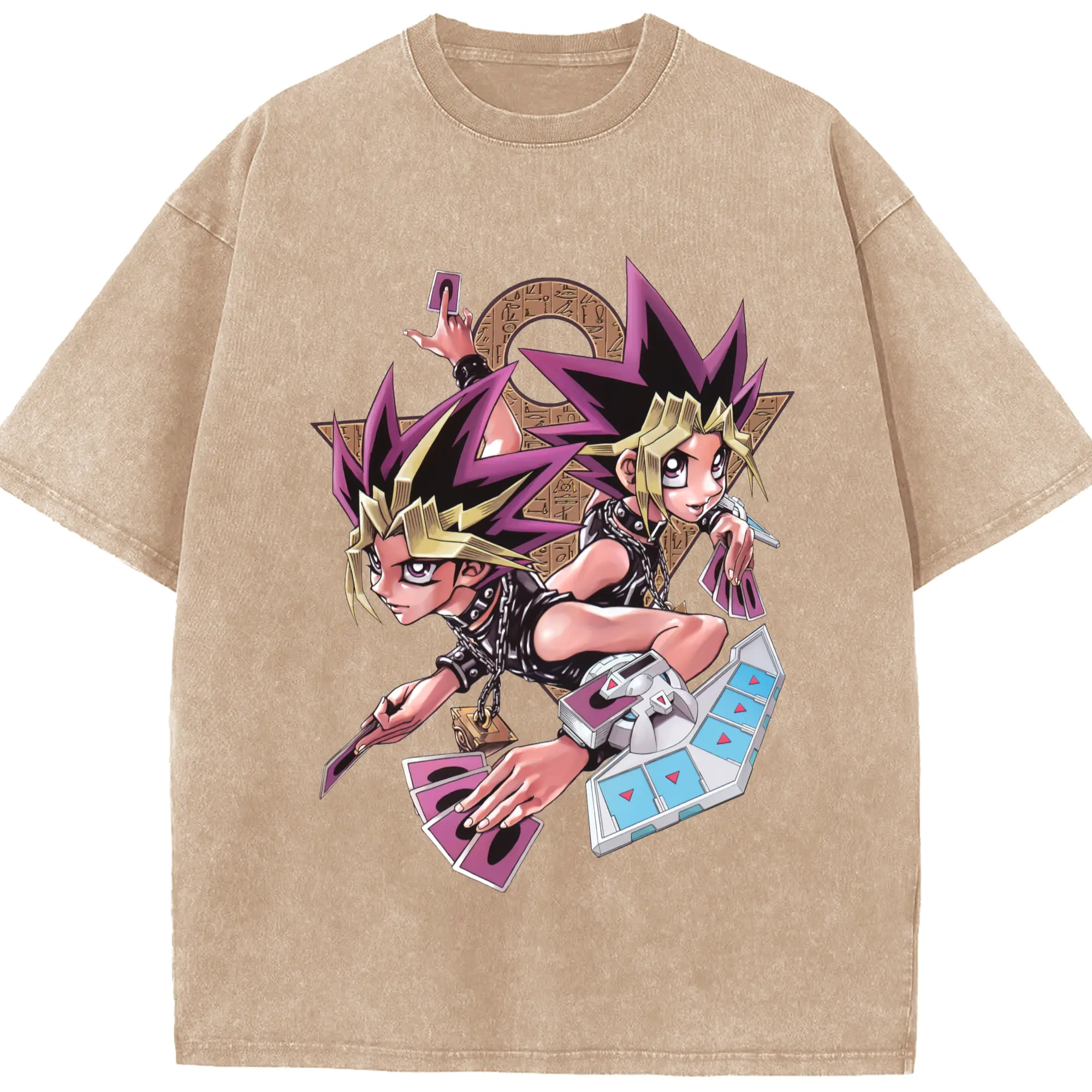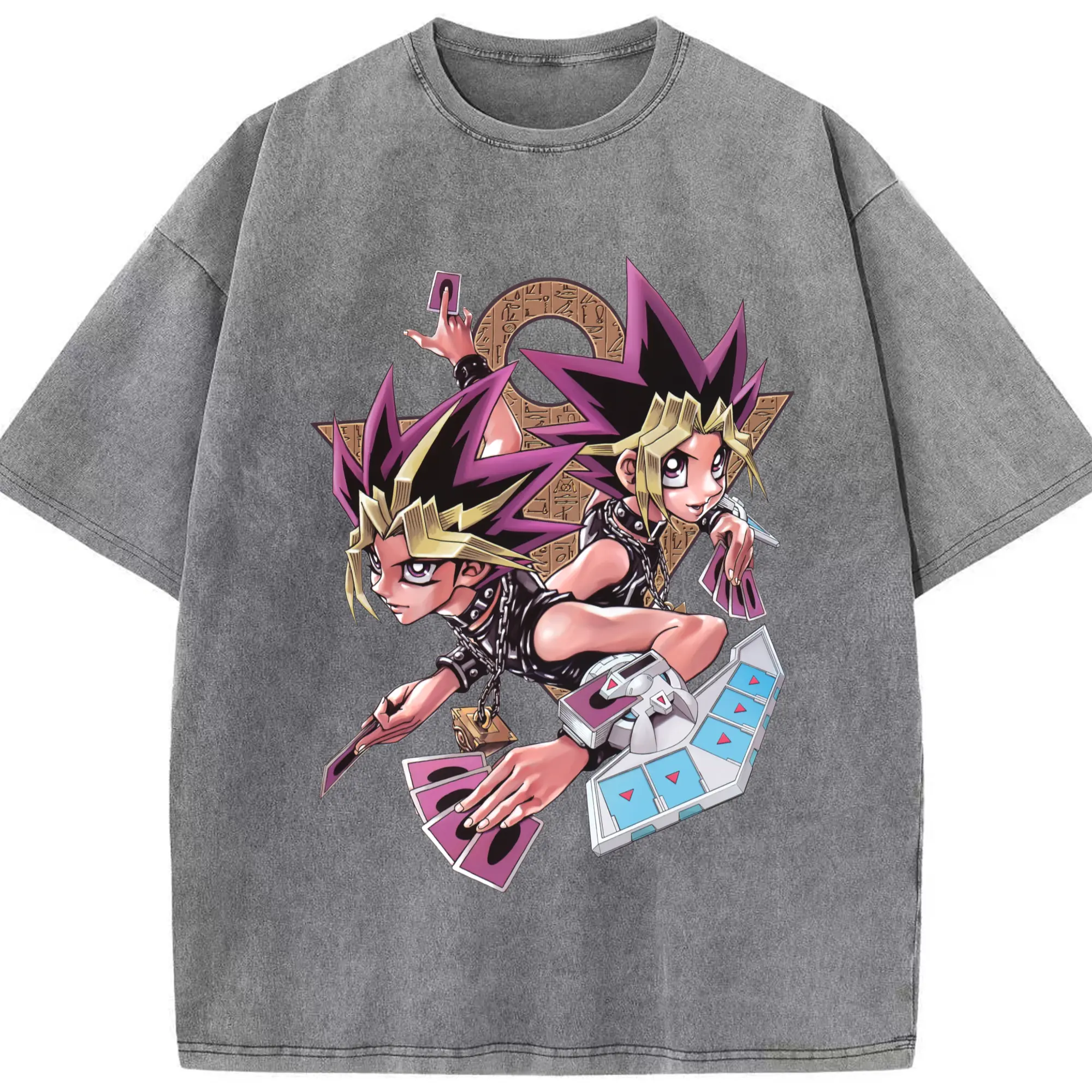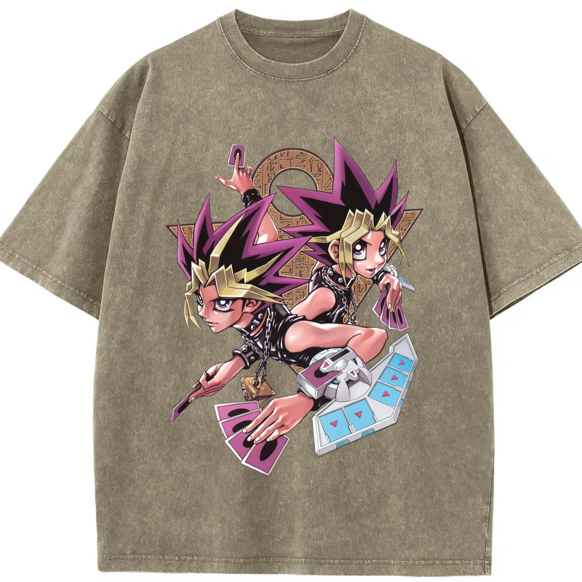 Yu-gi-oh Characters Yugi Muto retro shirt​ - Washed Vintage Look 230g Cotton Oversized T-Shirt With Front Heat Transfer Print – Soft, Lightweight, Stylish Fit – Comfortable Casual Wear For Sports & Everyday Use