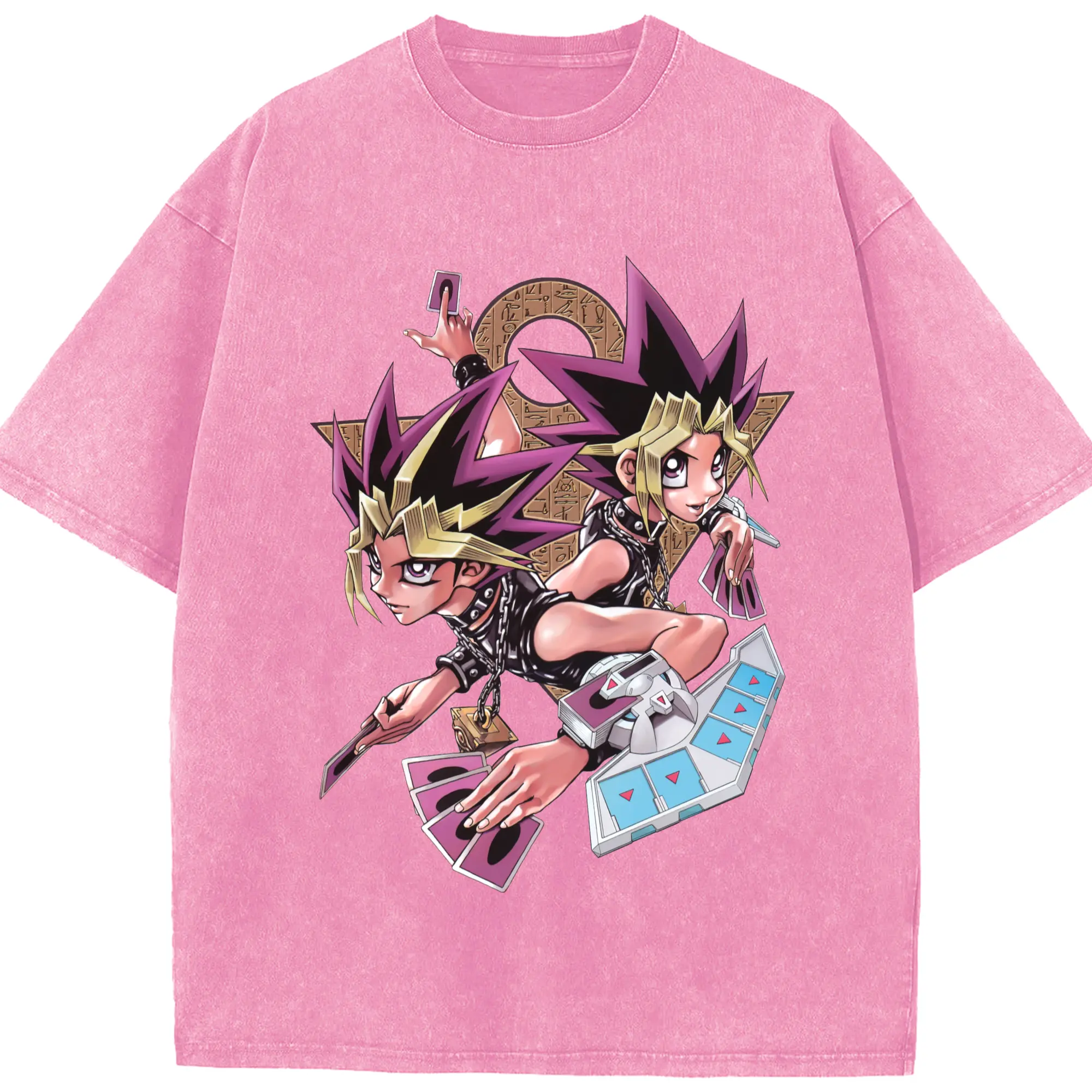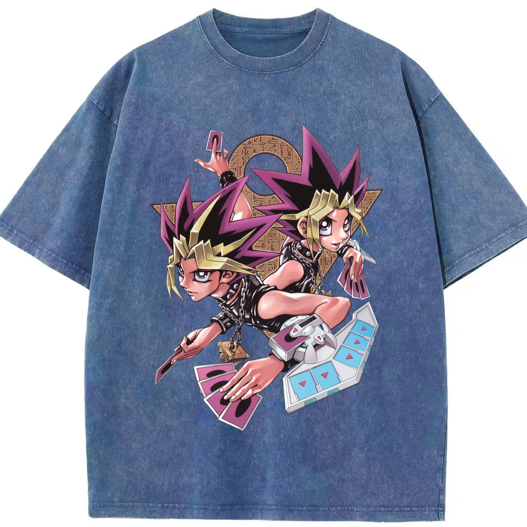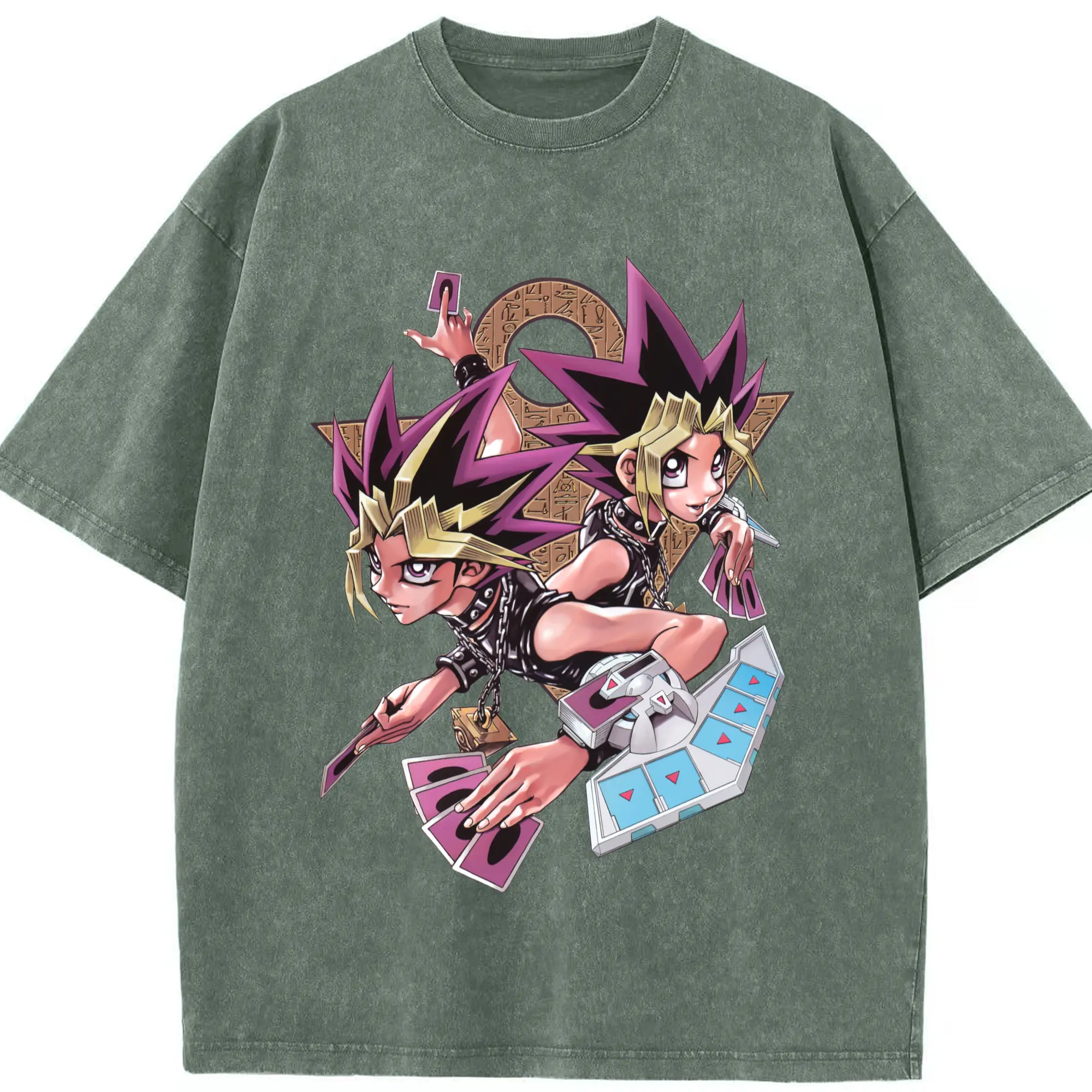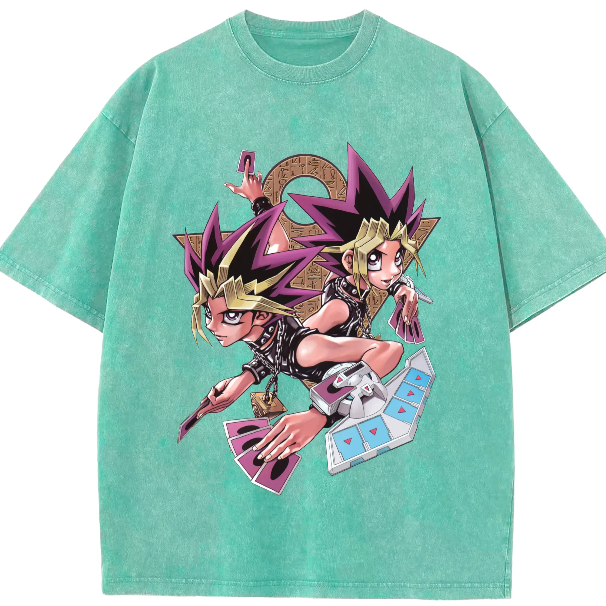 Yu-gi-oh Characters Yugi Muto retro shirt​ - Washed Vintage Look 230g Cotton Oversized T-Shirt With Front Heat Transfer Print – Soft, Lightweight, Stylish Fit – Comfortable Casual Wear For Sports & Everyday Use