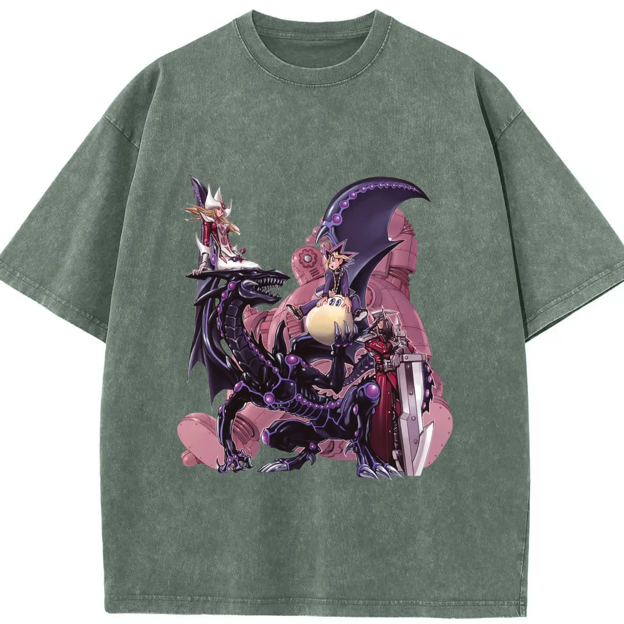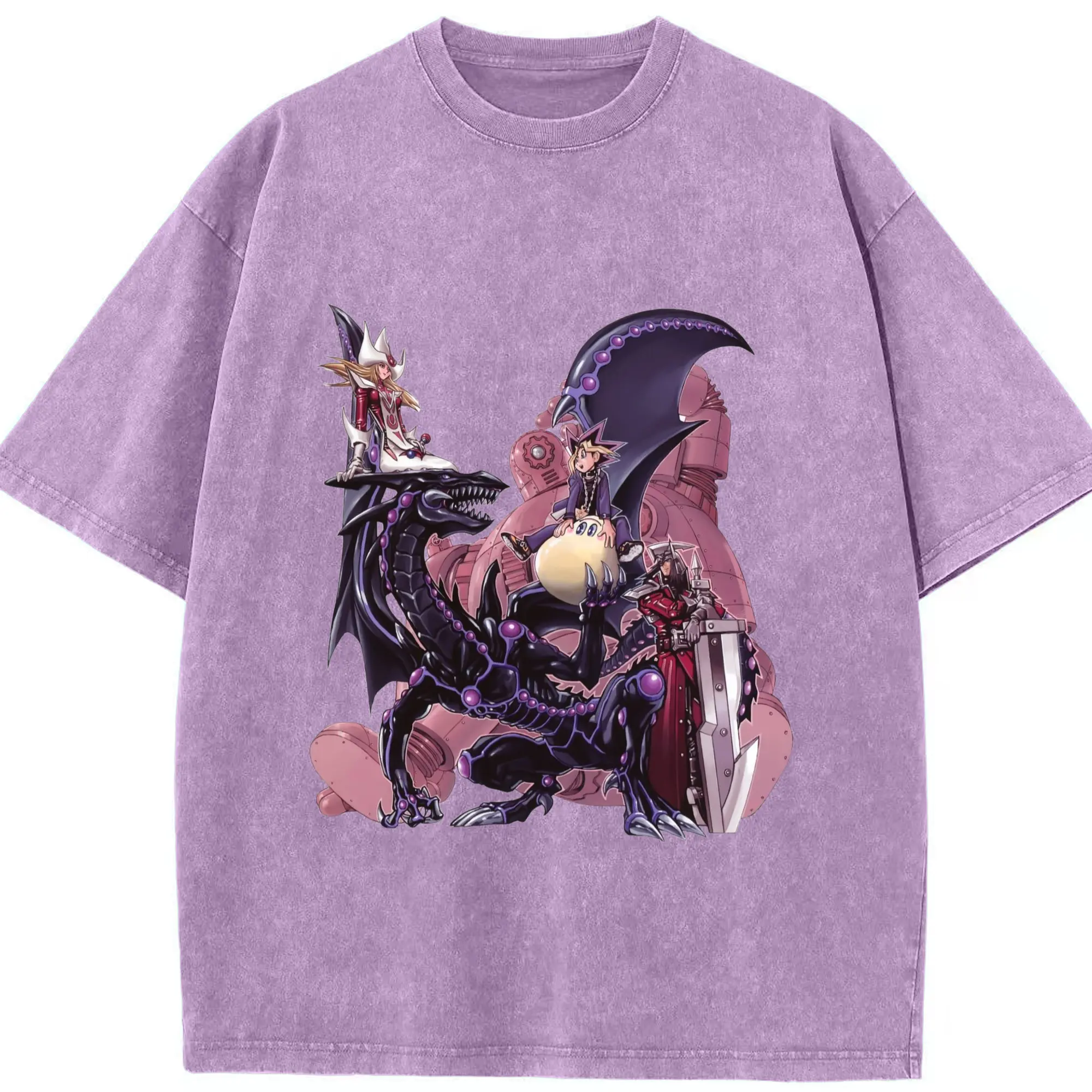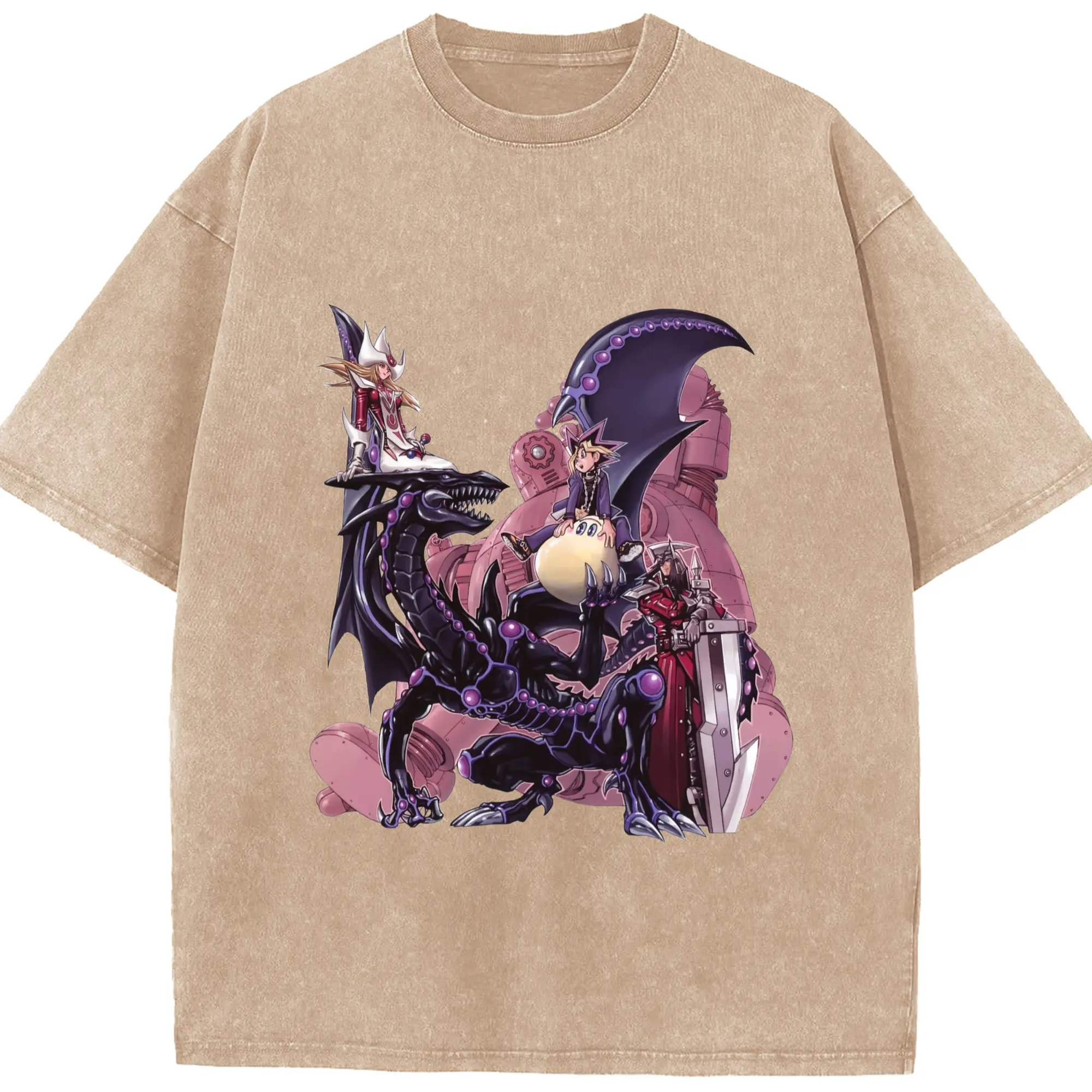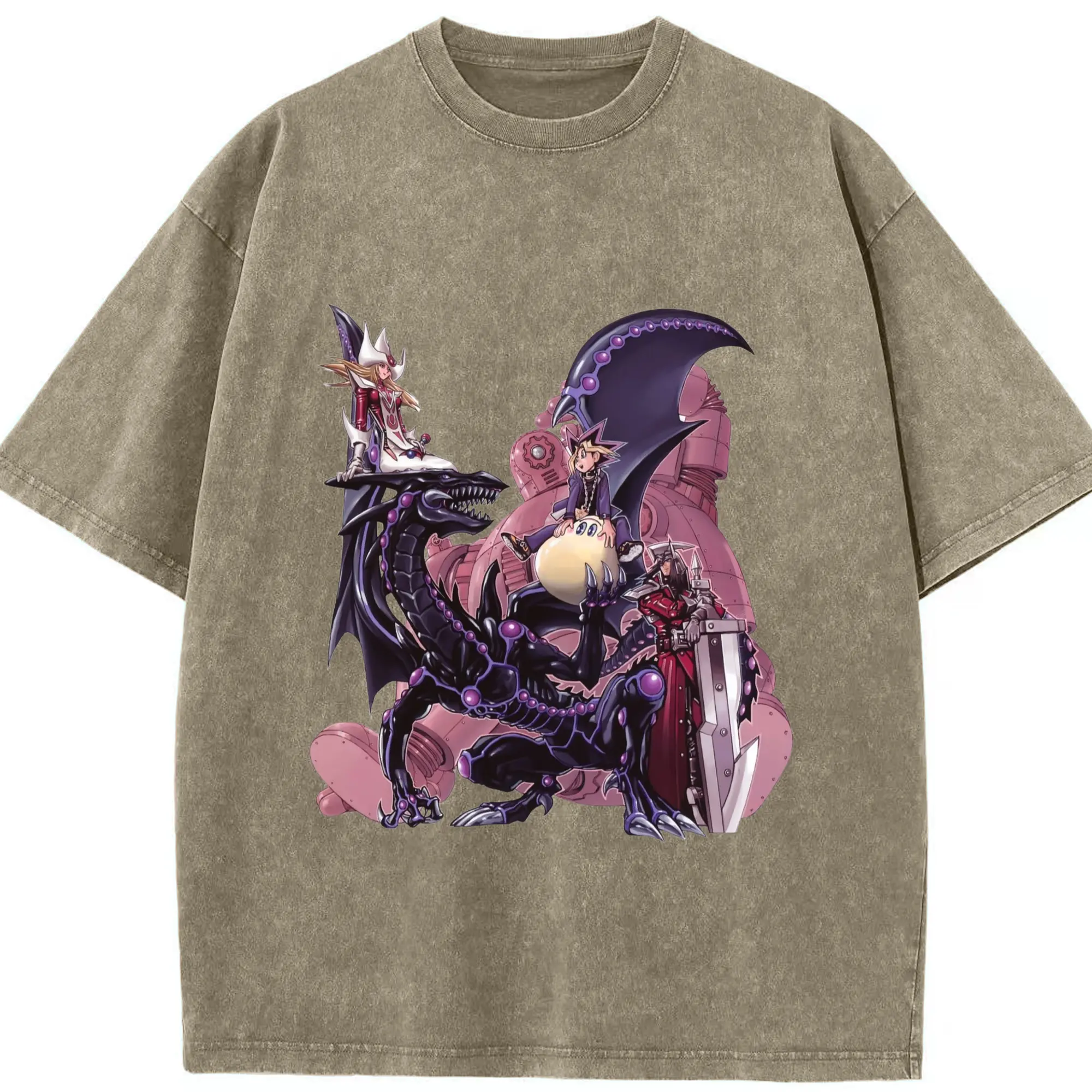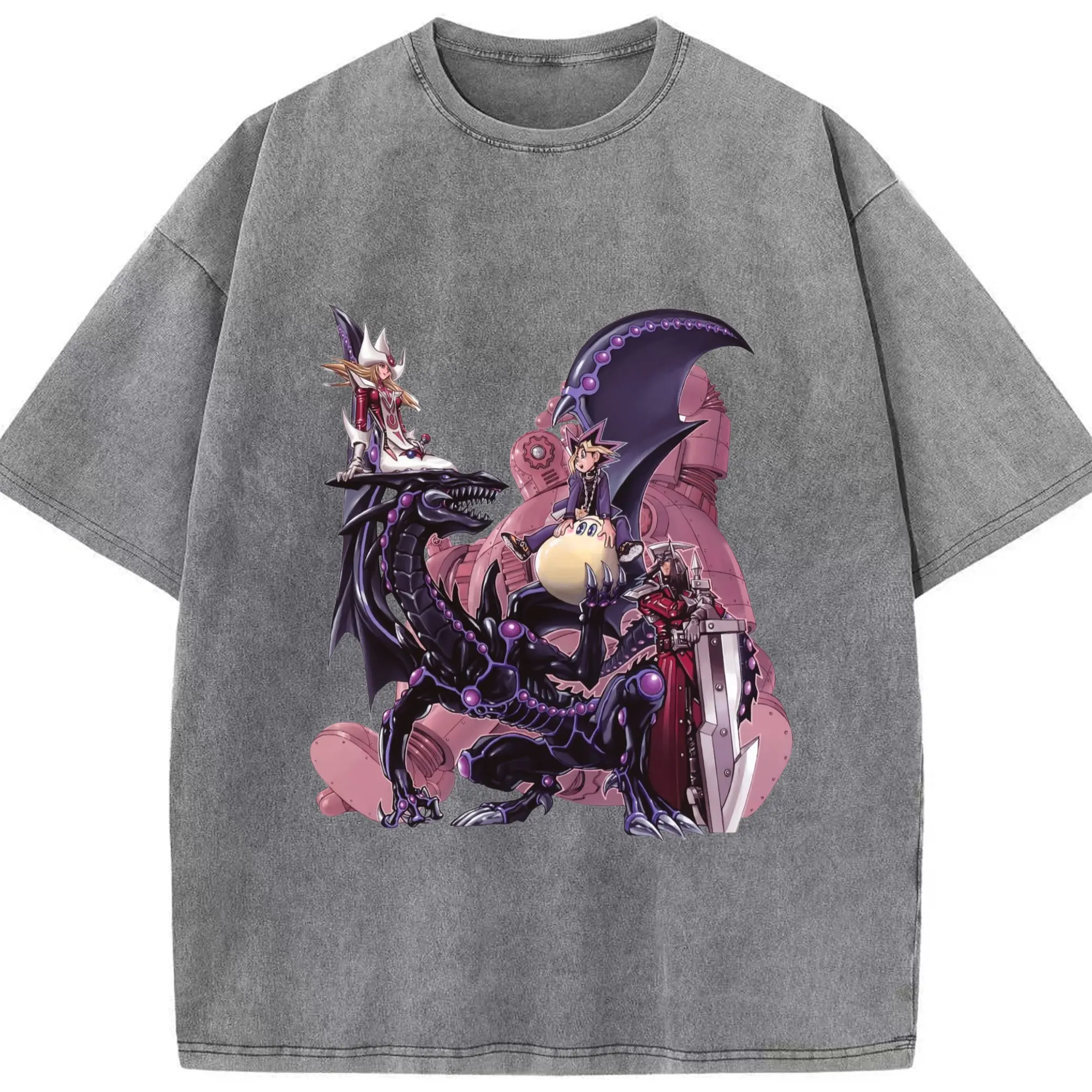 Yu-gi-oh Characters Yugi Muto tee - Washed Vintage Look 230g Cotton Oversized T-Shirt With Front Heat Transfer Print – Soft, Lightweight, Stylish Fit – Comfortable Casual Wear For Sports & Everyday Use