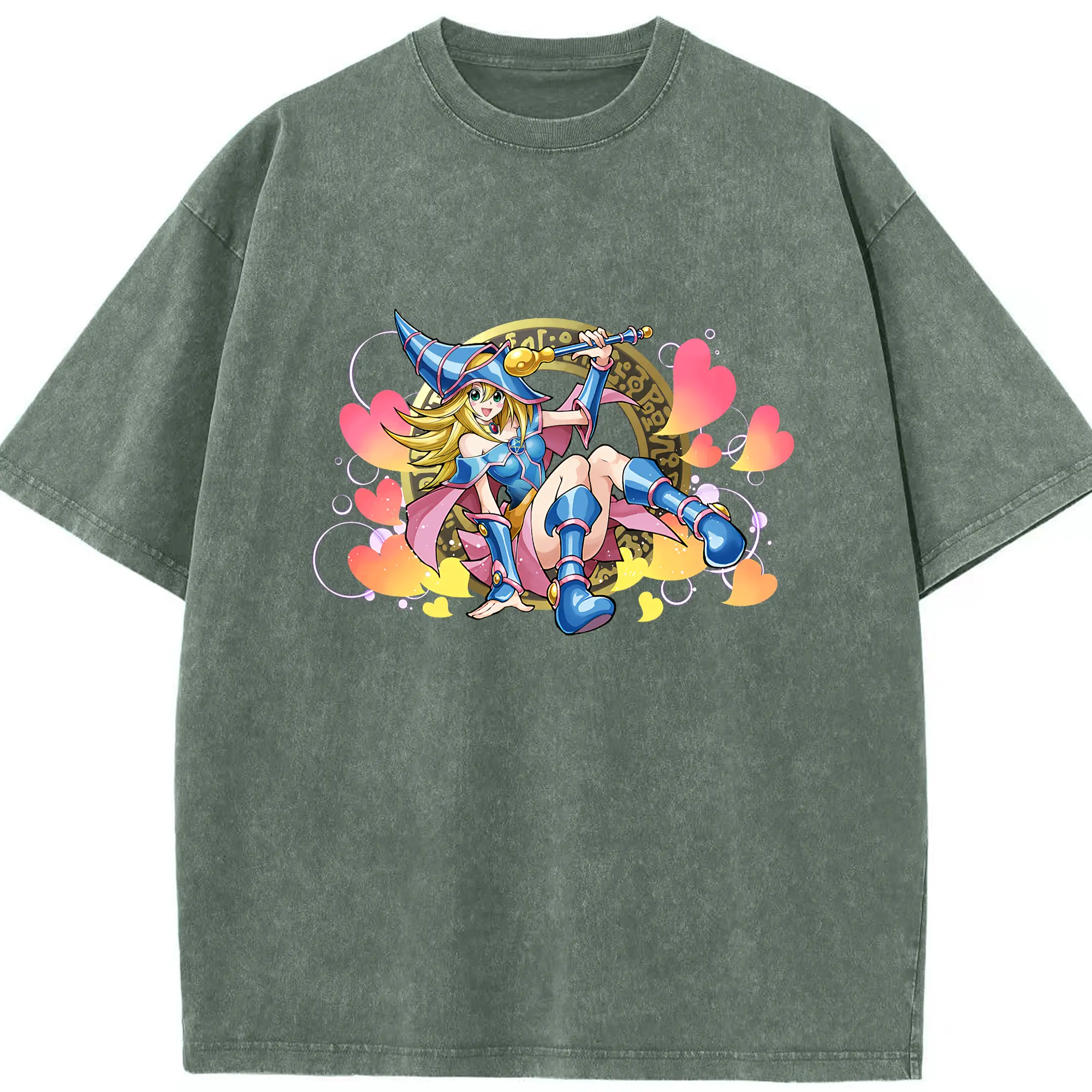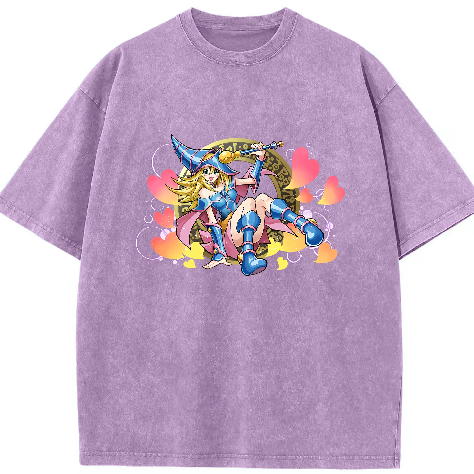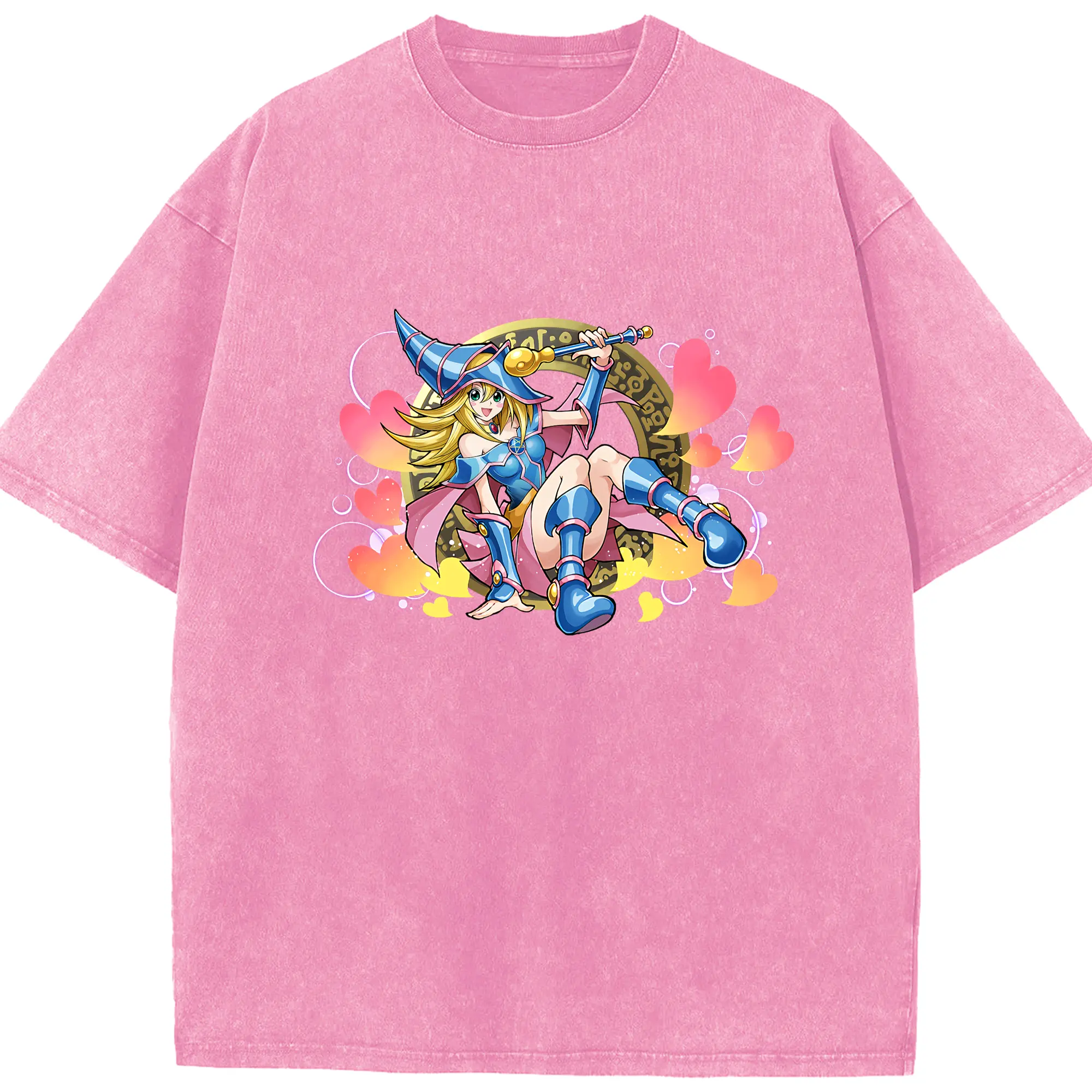 Yu-gi-oh Dark Magician Girl t-shirt - Washed Vintage Look 230g Cotton Oversized T-Shirt With Front Heat Transfer Print – Soft, Lightweight, Stylish Fit – Comfortable Casual Wear For Sports & Everyday Use